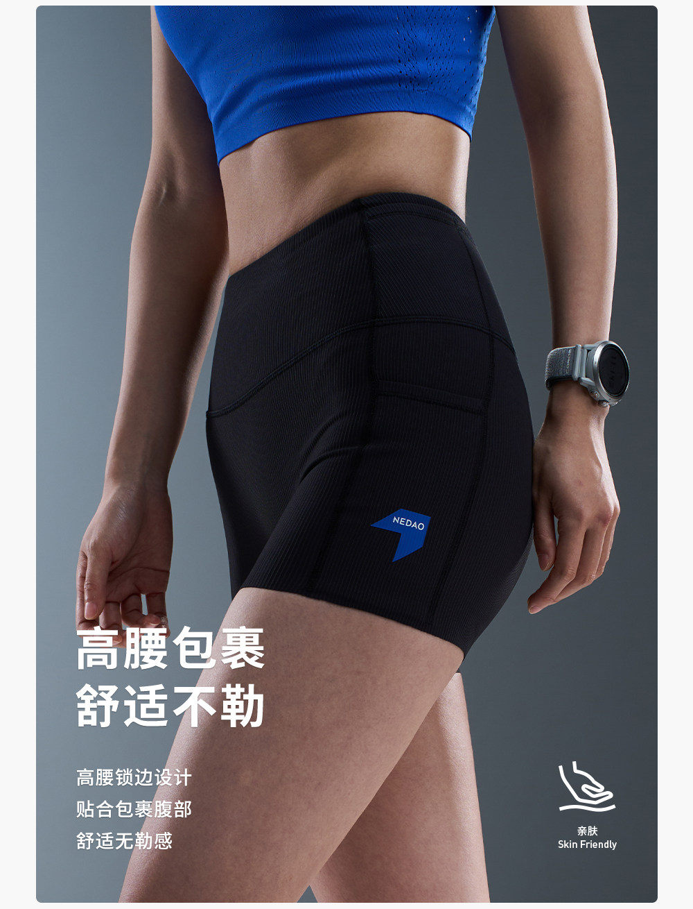 Women's Reflective Running Shorts with Hidden Sweat Lines, Striped, Tight-Fitting, Elastic Waistband, Back Pocket