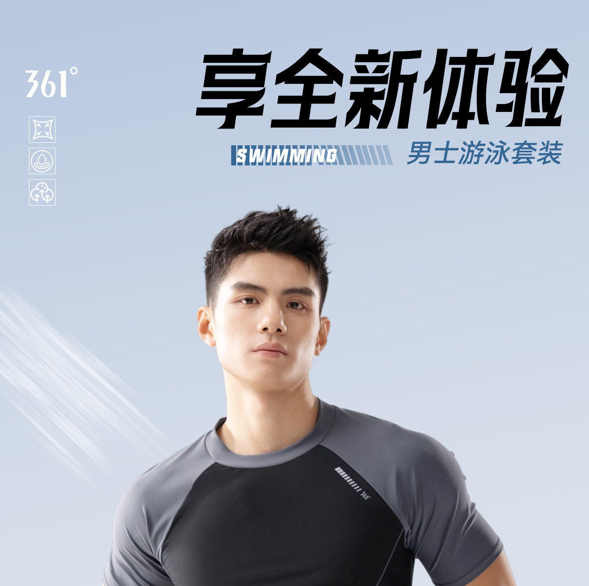 361 Sun Yang Style Men's Swimwear Set 2025 New Model for Hot Springs, Two-Piece Top and Bottom Adult Swimsuit