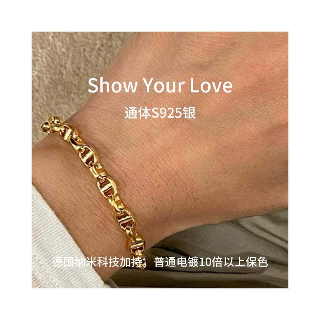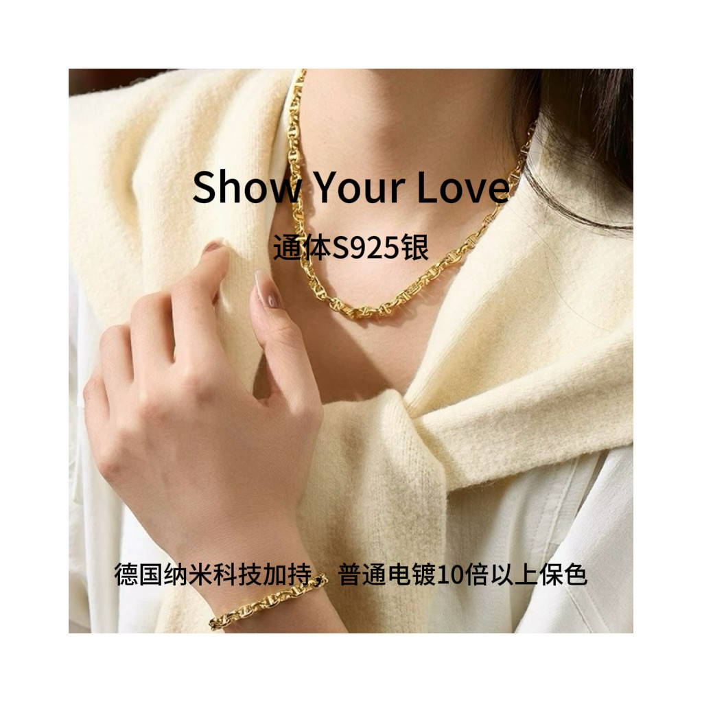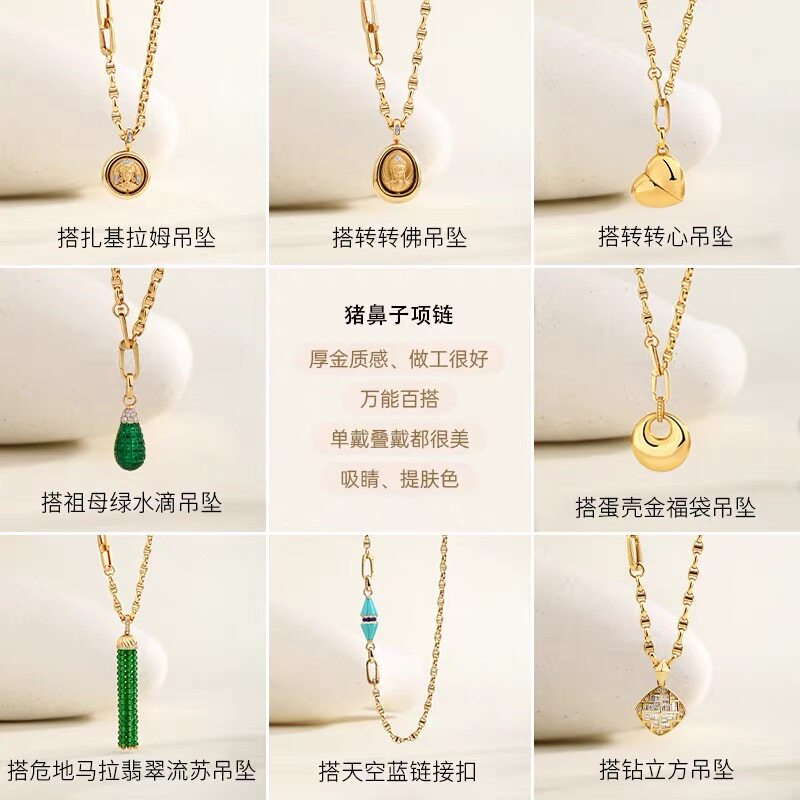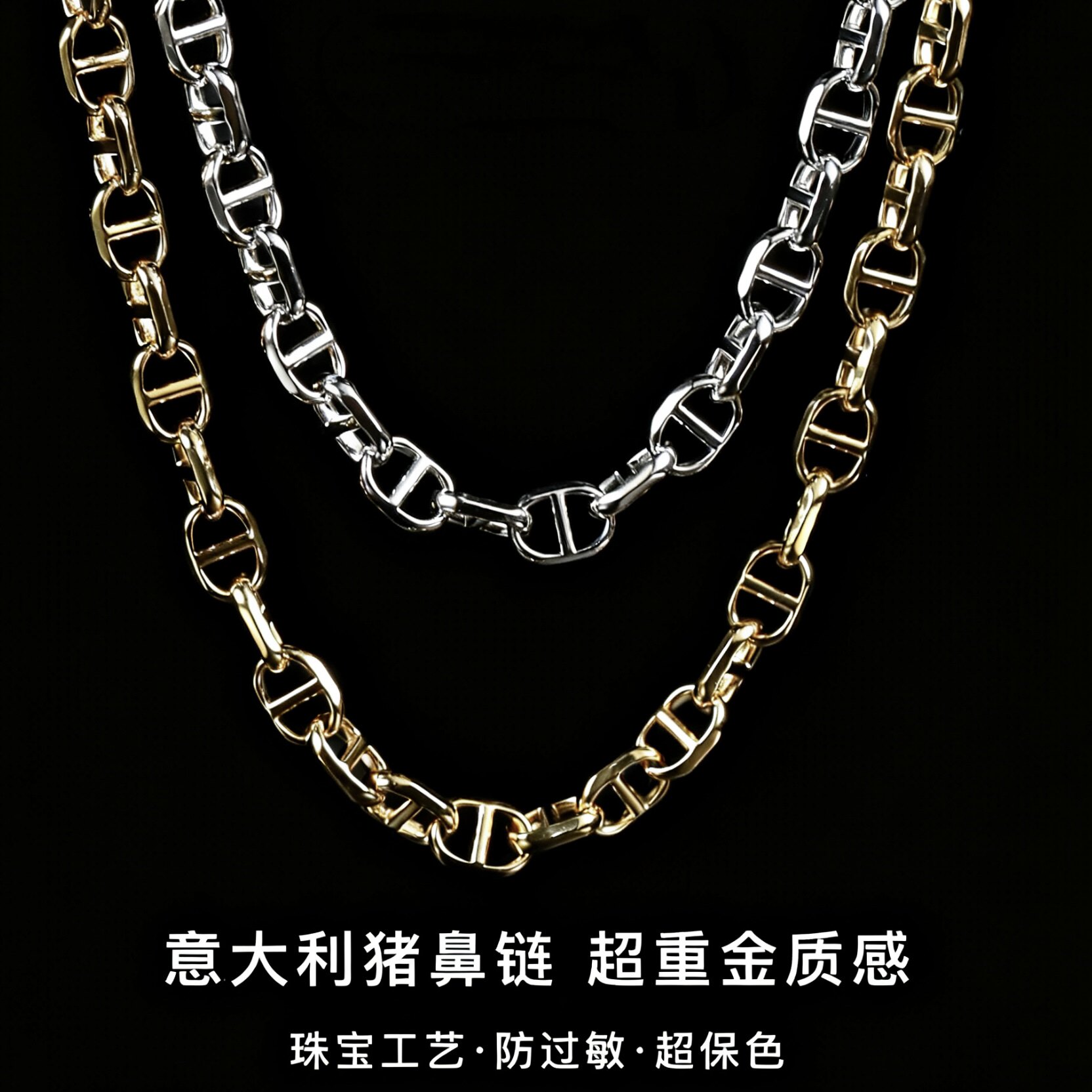Heavy Industry [Show LAOSHU] Width about 6mm Pig Nose Large Gold Chain Necklace Bracelet Versatile Classic Must-Have