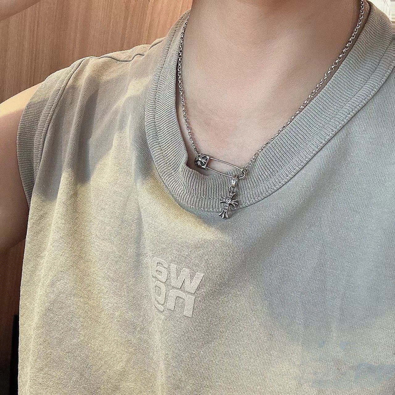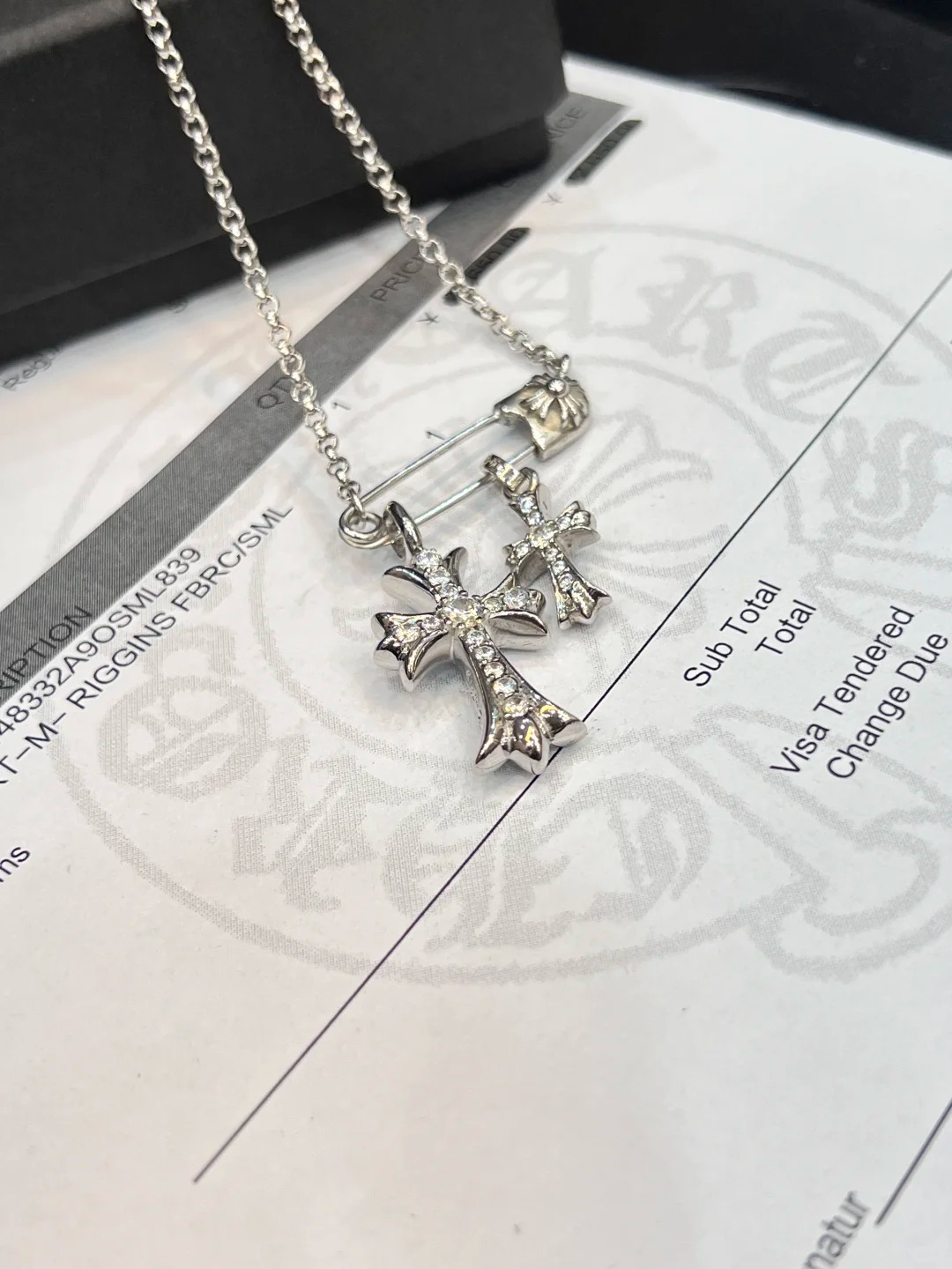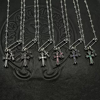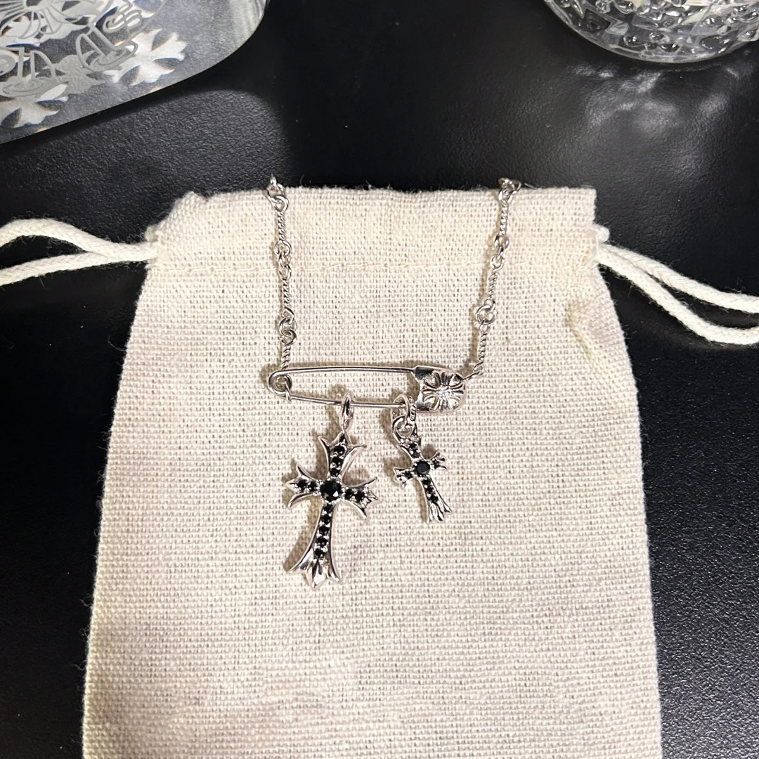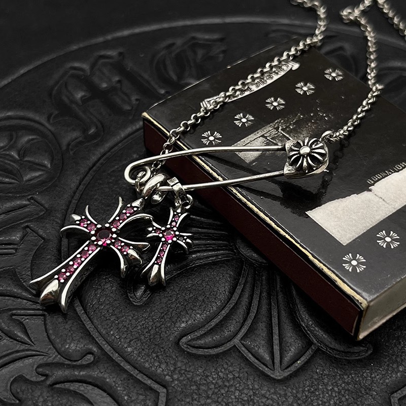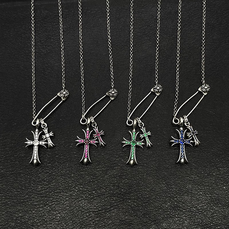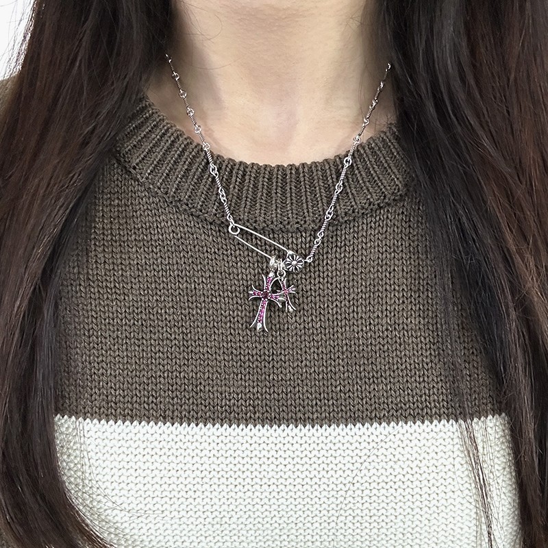 Thai Silver Cross Pin Twist Necklace with Purple Diamond Plated S925 Silver Jackson Wang Bamboo Chain Punk Double Cross Pendant