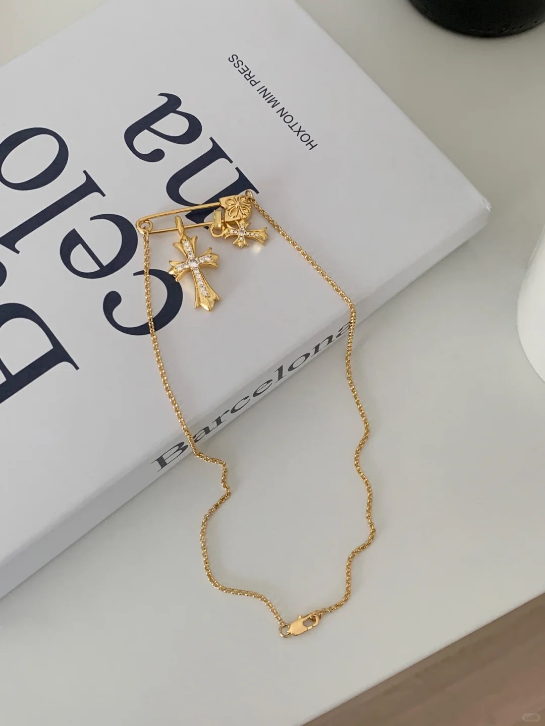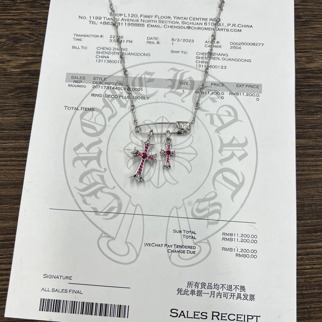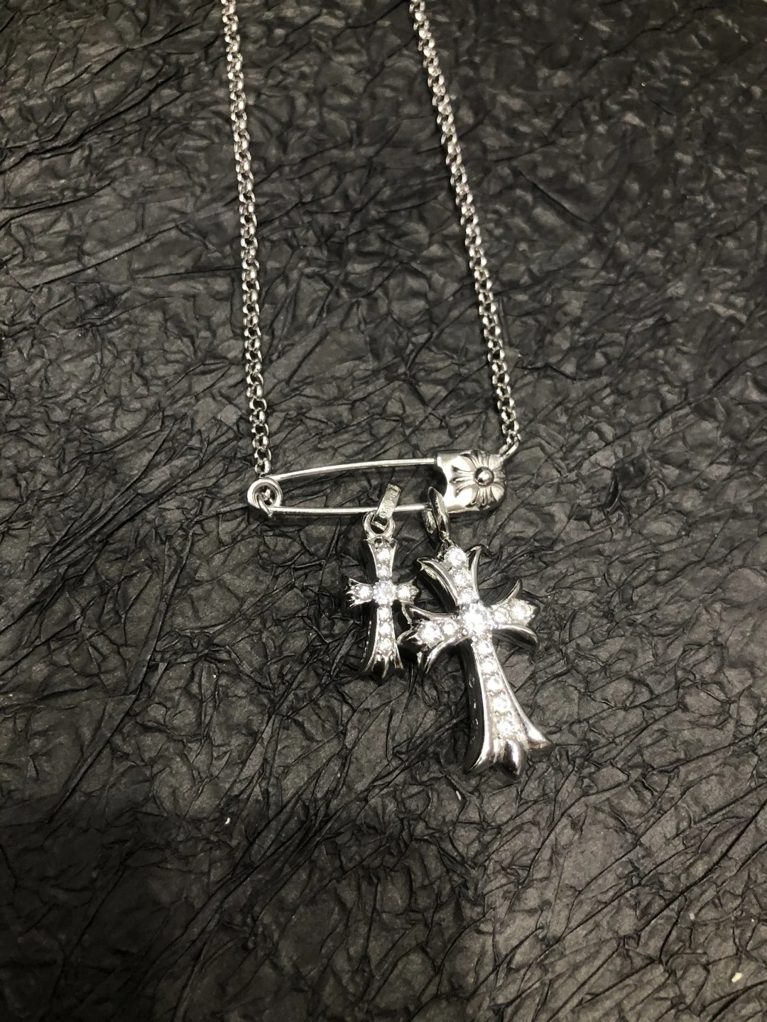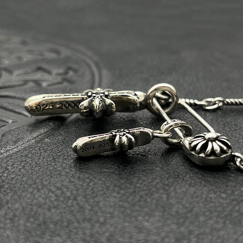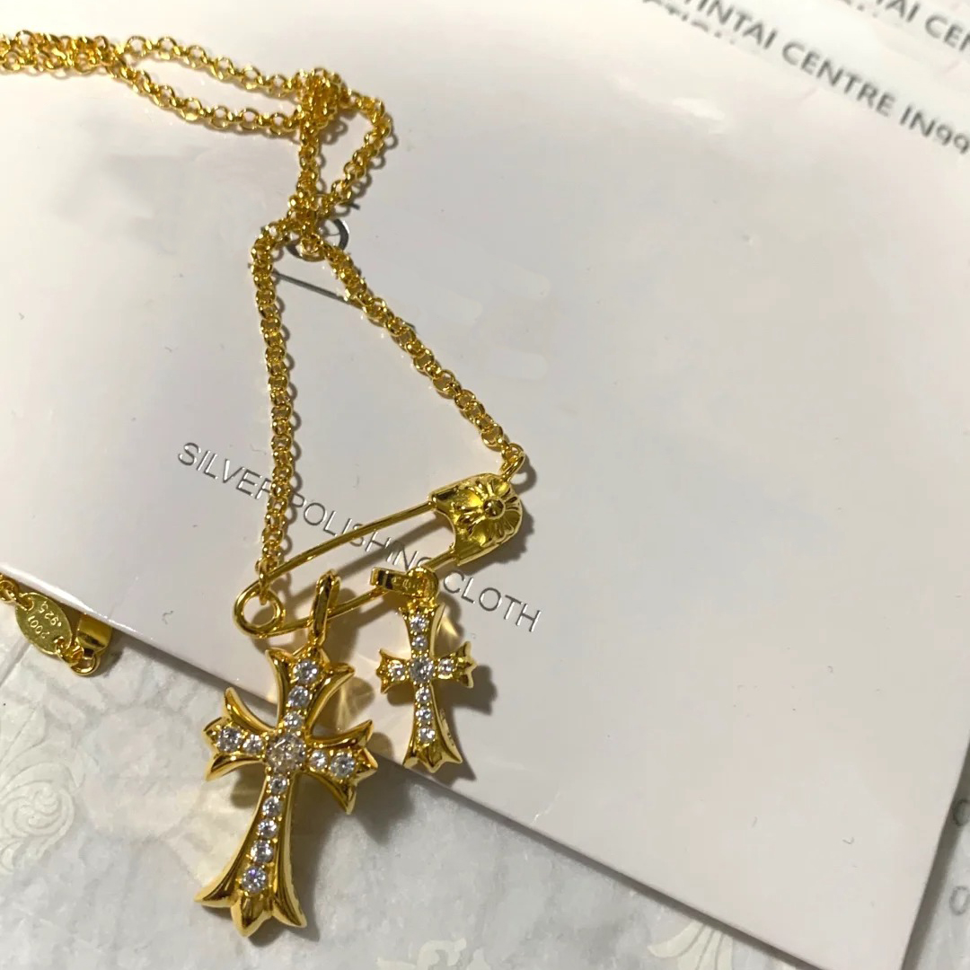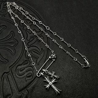 Thai Silver Cross Pin Twist Necklace with Purple Diamond Plated S925 Silver Jackson Wang Bamboo Chain Punk Double Cross Pendant