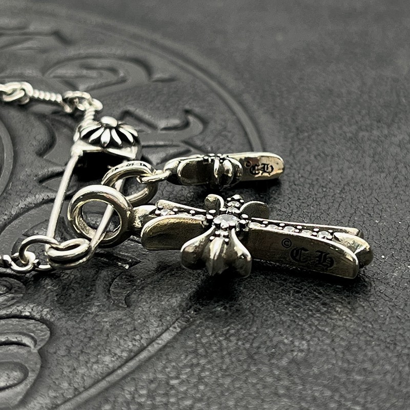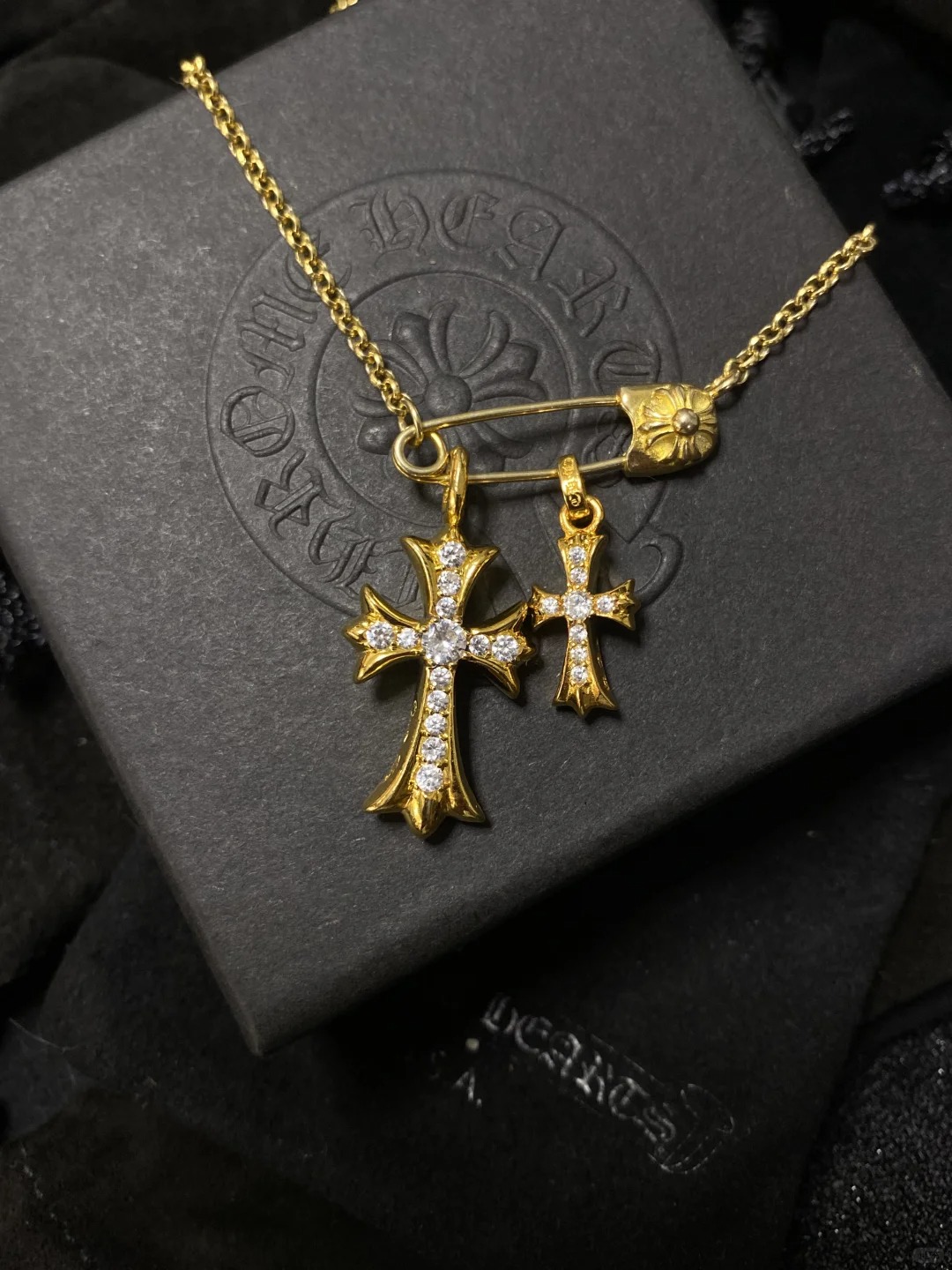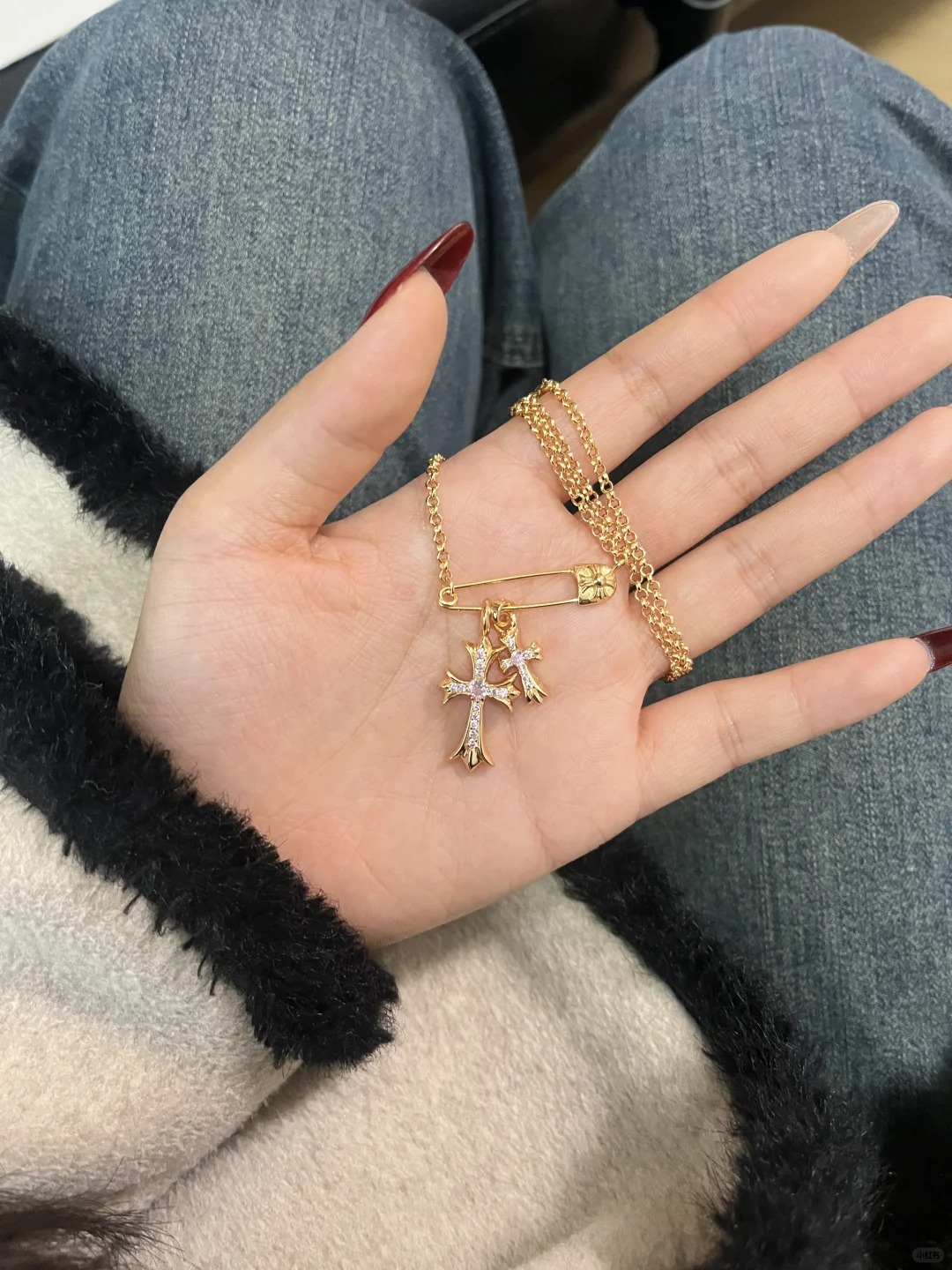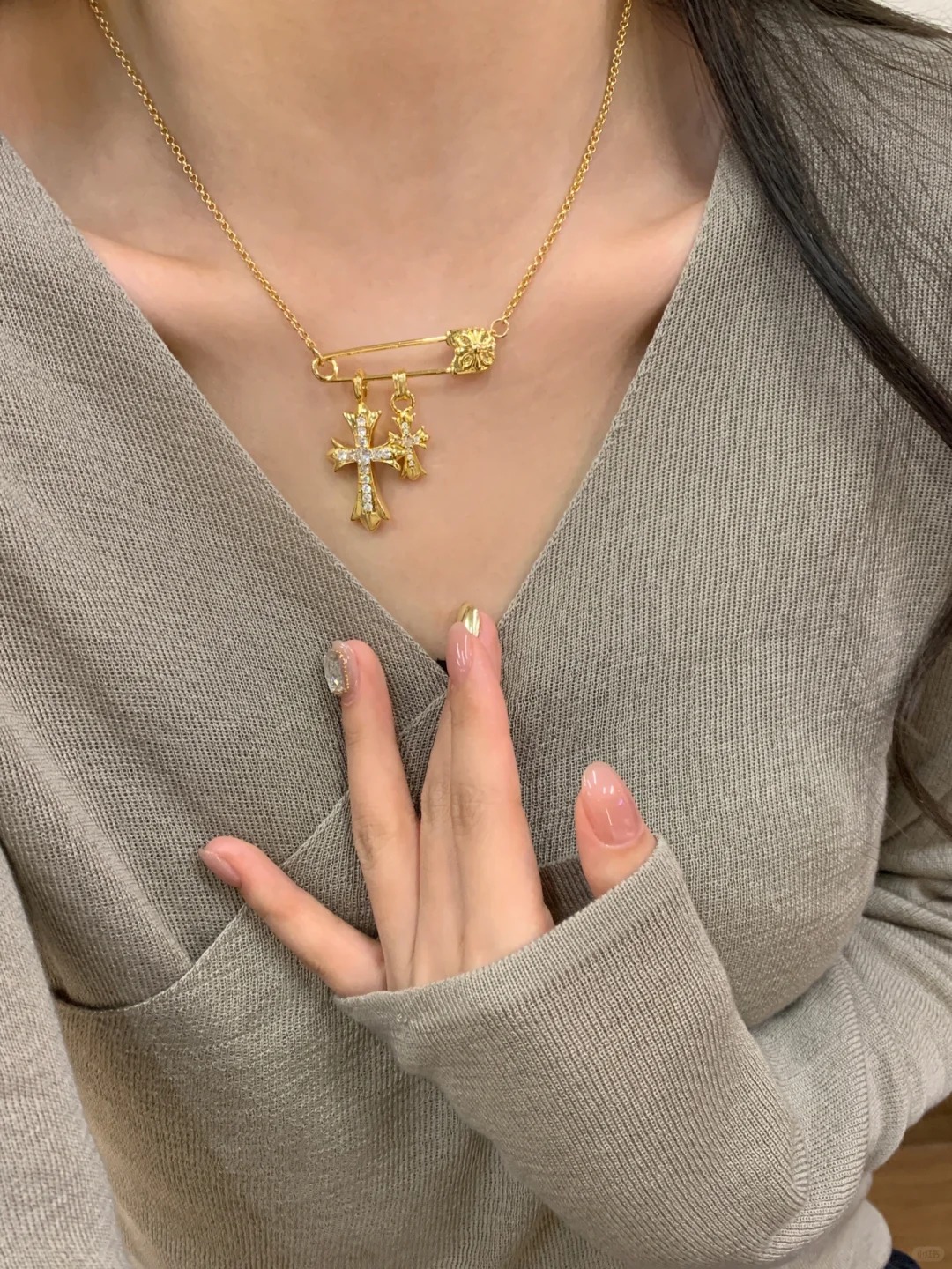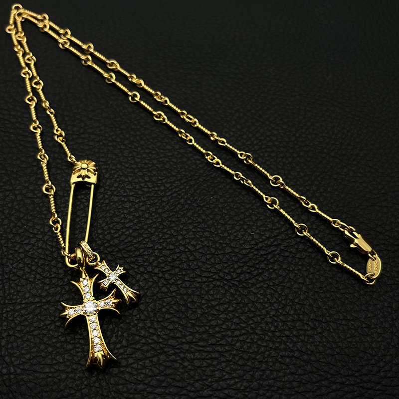 Thai Silver Cross Pin Twist Necklace with Purple Diamond Plated S925 Silver Jackson Wang Bamboo Chain Punk Double Cross Pendant