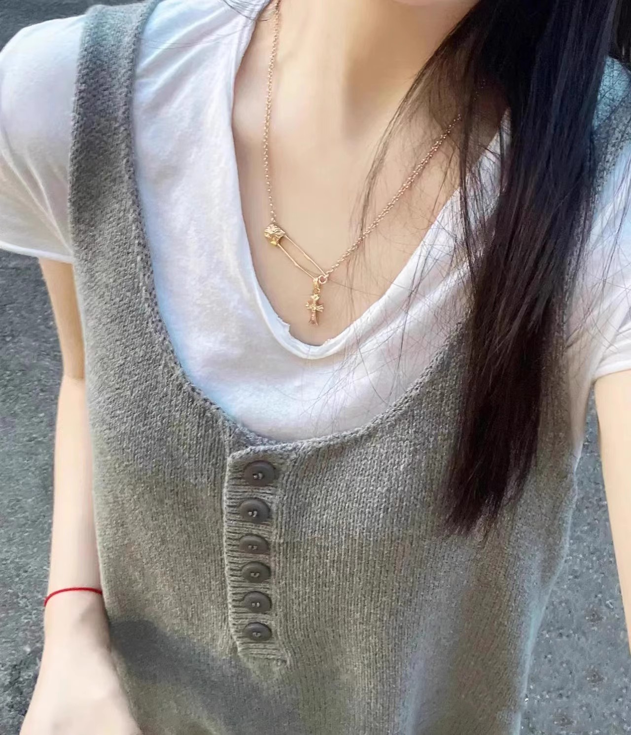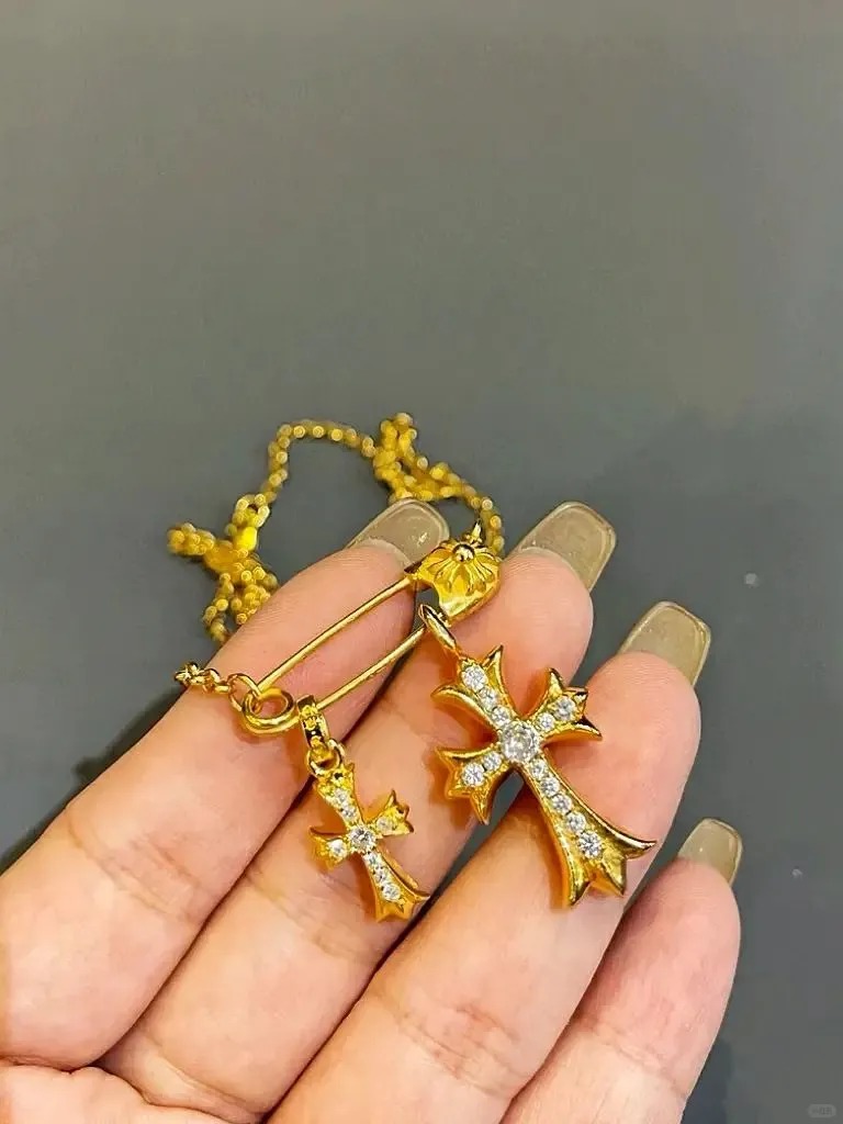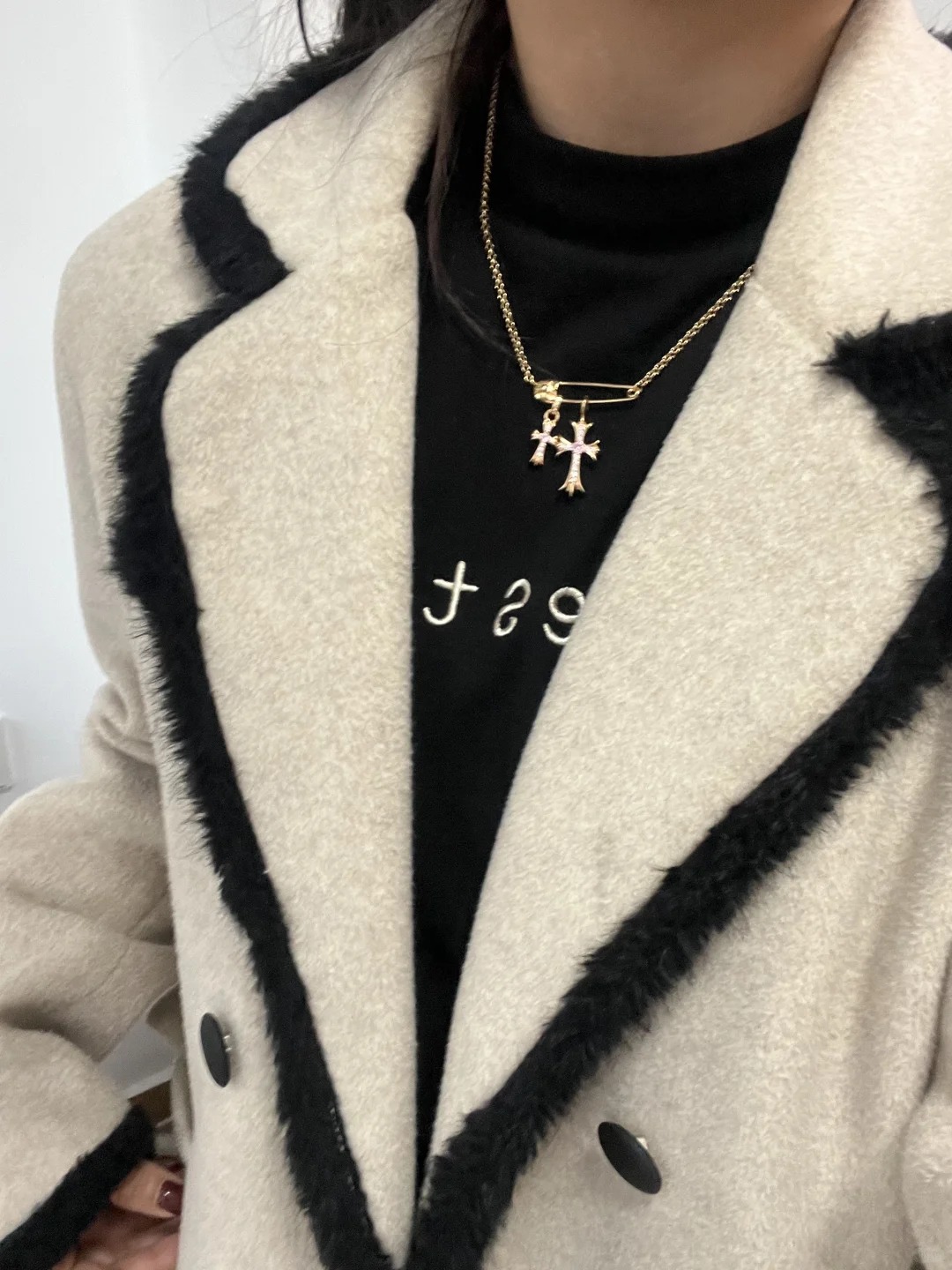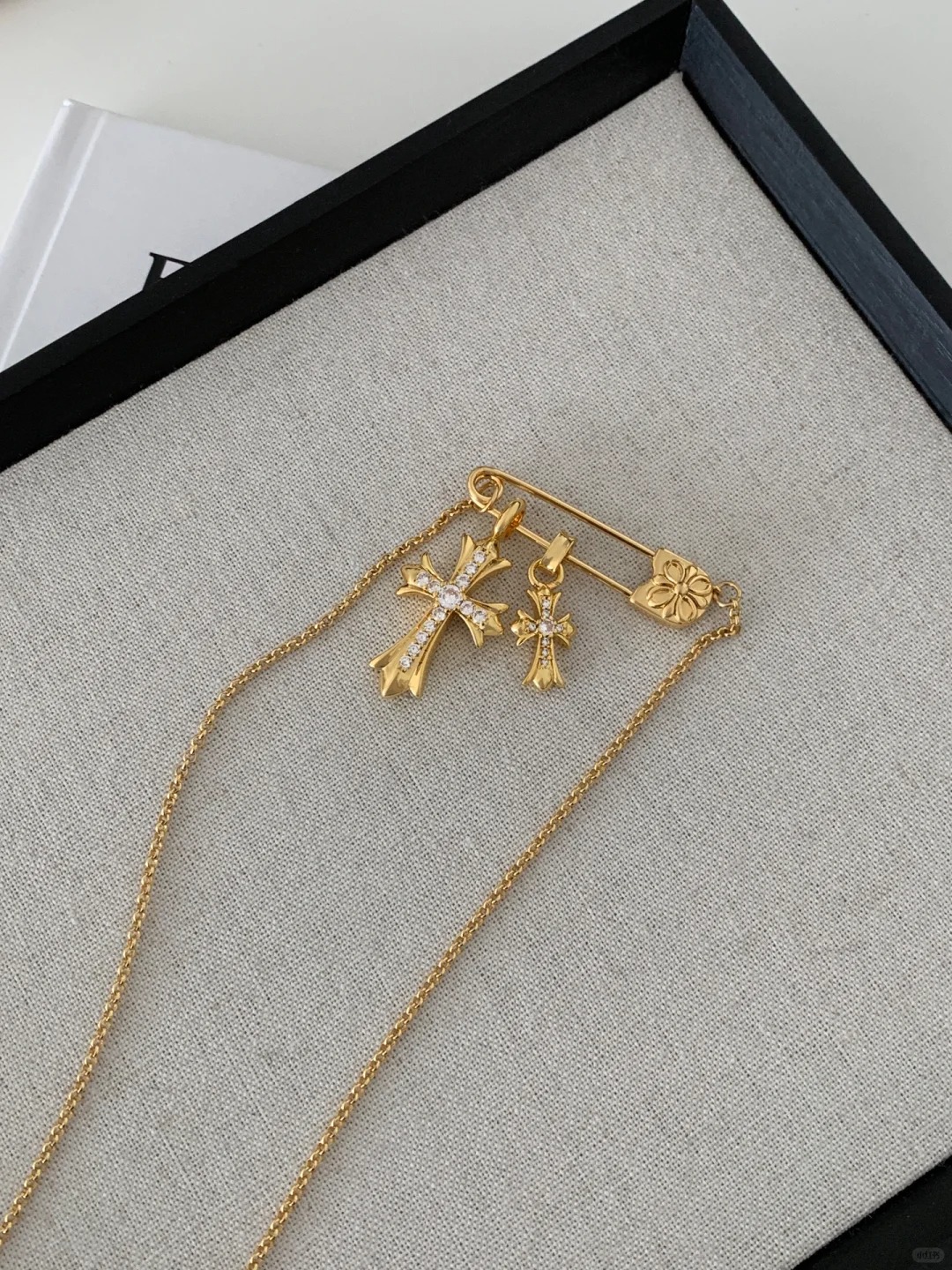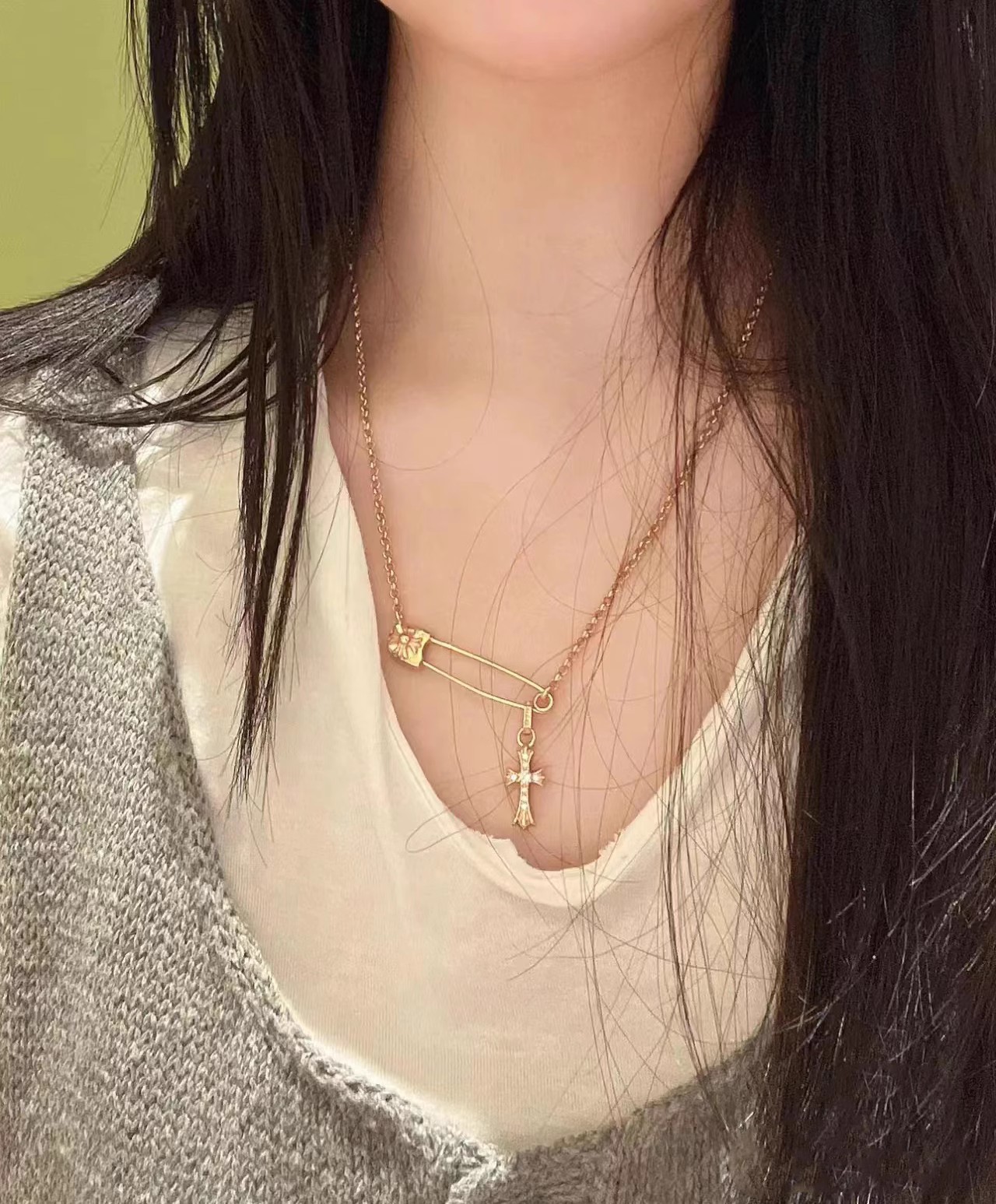 Thai Silver Cross Pin Twist Necklace with Purple Diamond Plated S925 Silver Jackson Wang Bamboo Chain Punk Double Cross Pendant