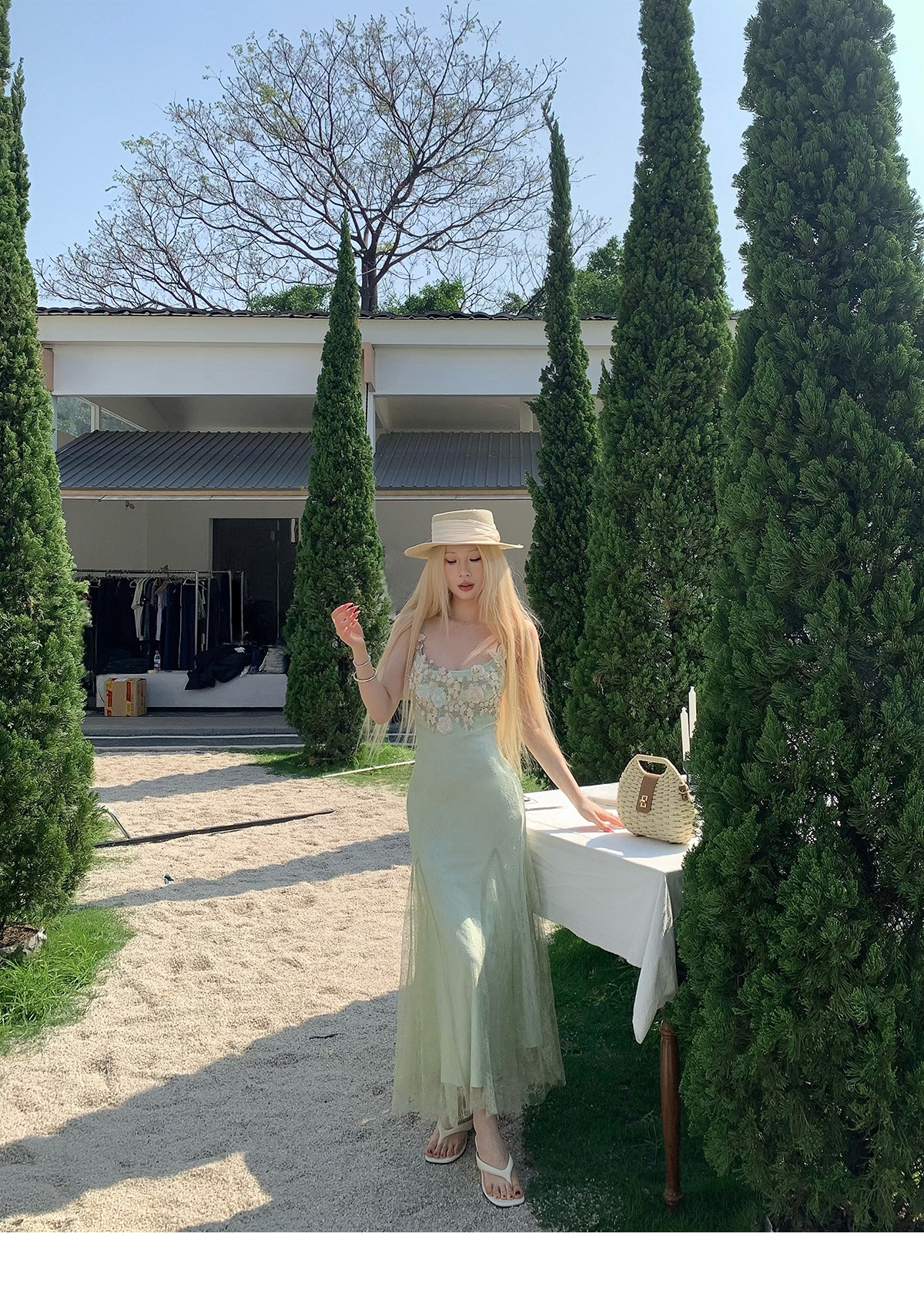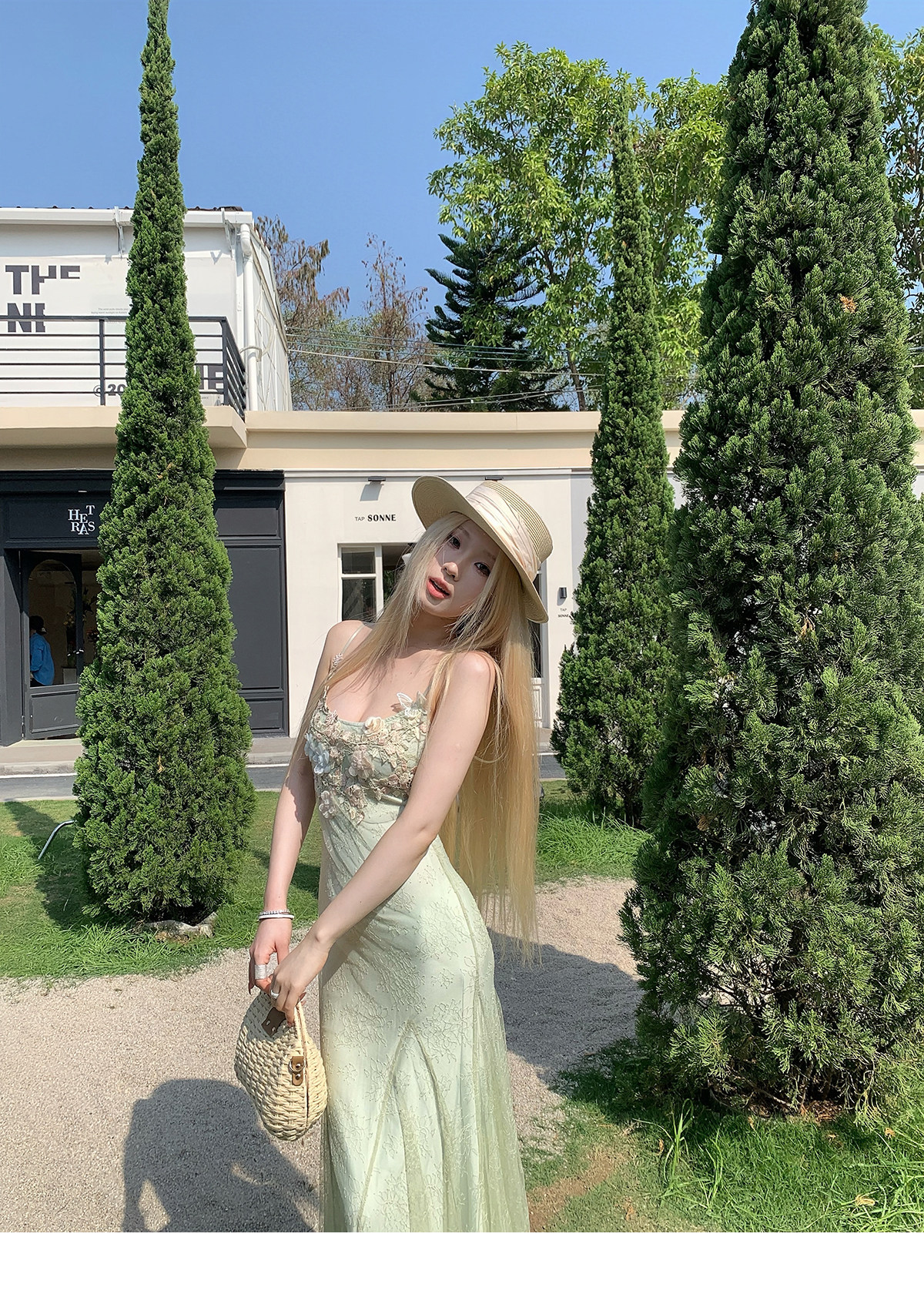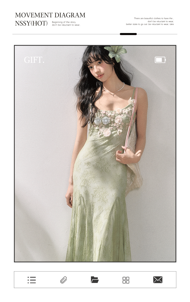 Nssy Drowning Three Fishes Seaside Vacation Strap Dress Green Dress Women's Spring Stunning Beautiful Bodycon Slim Long Dress