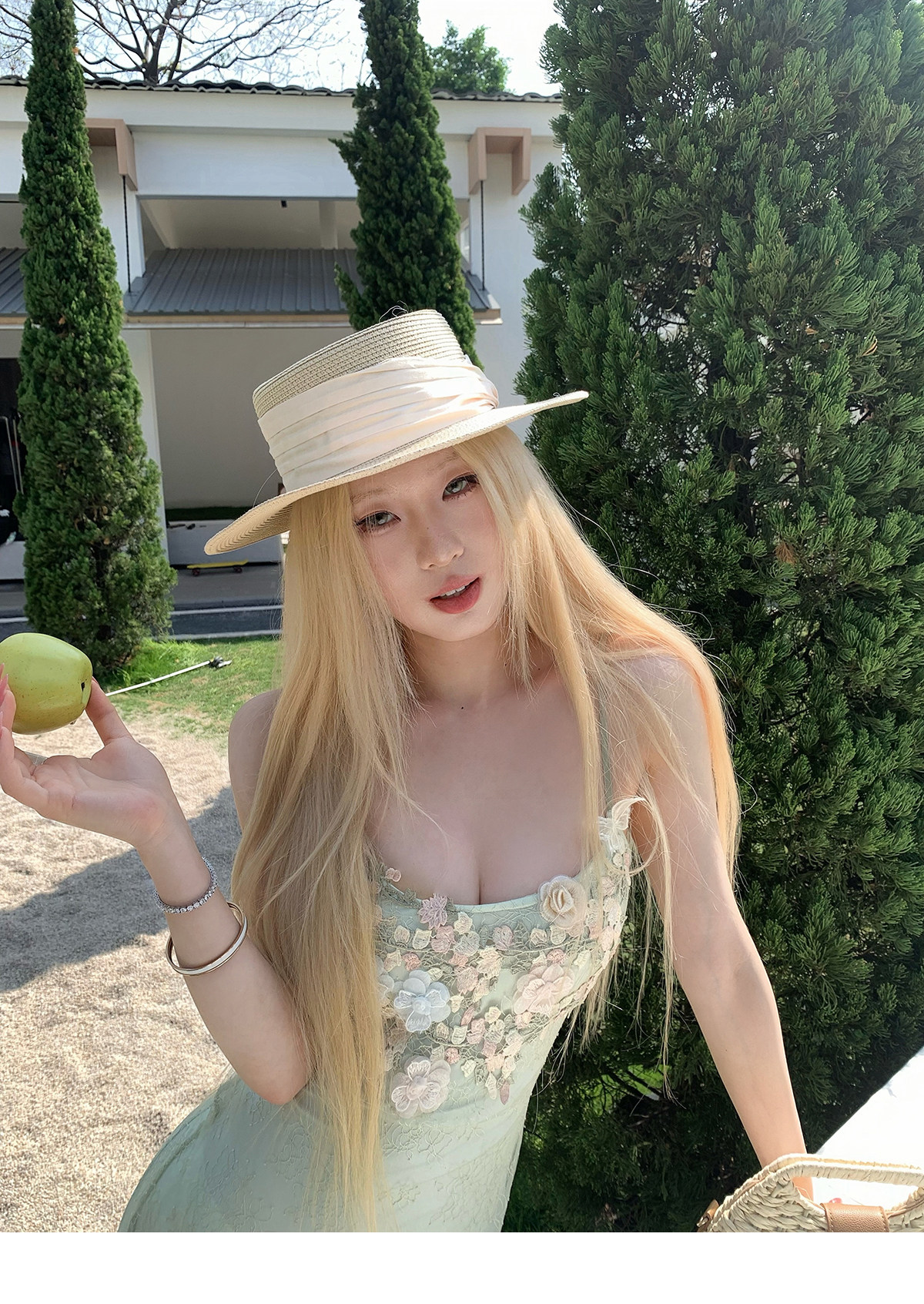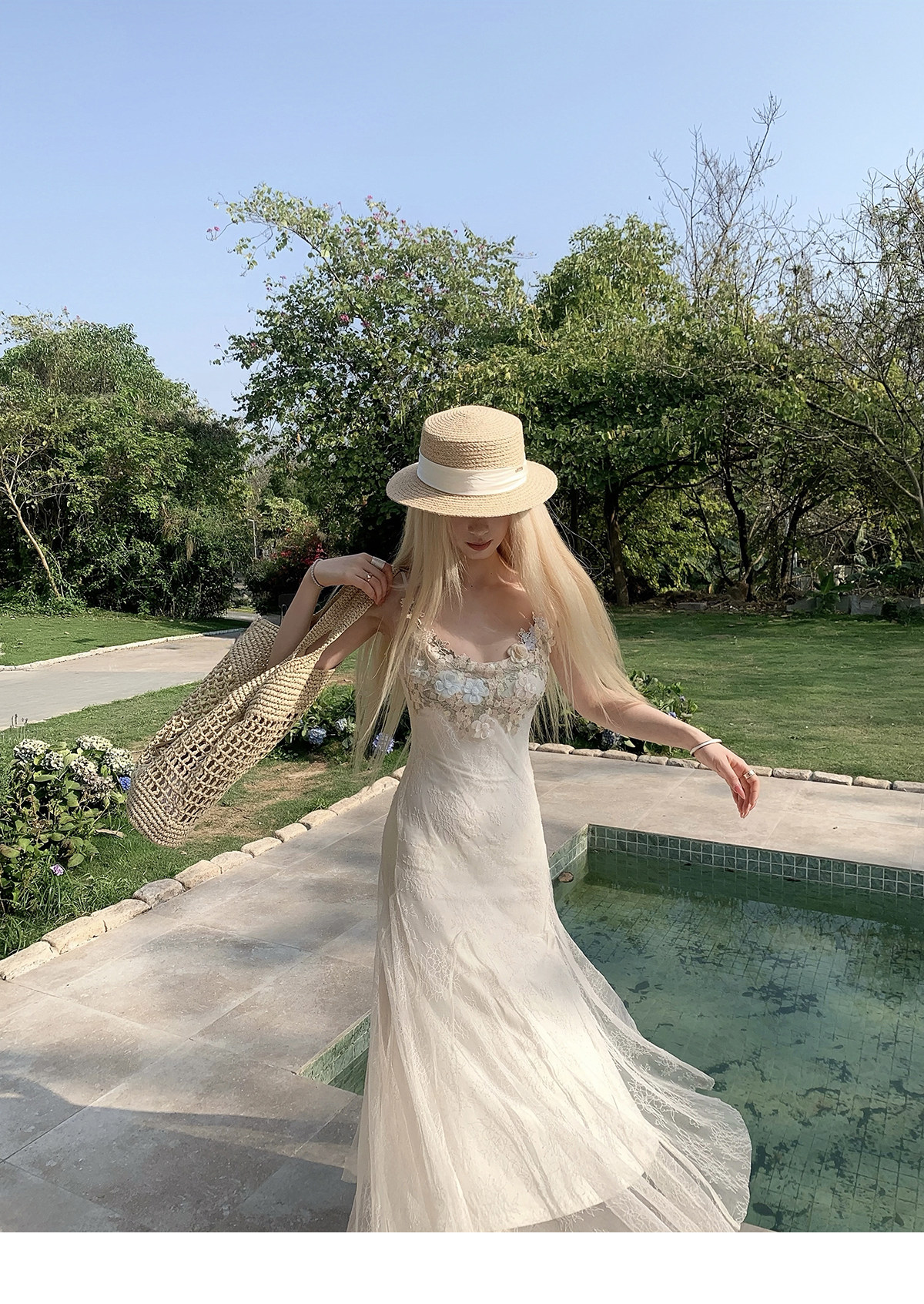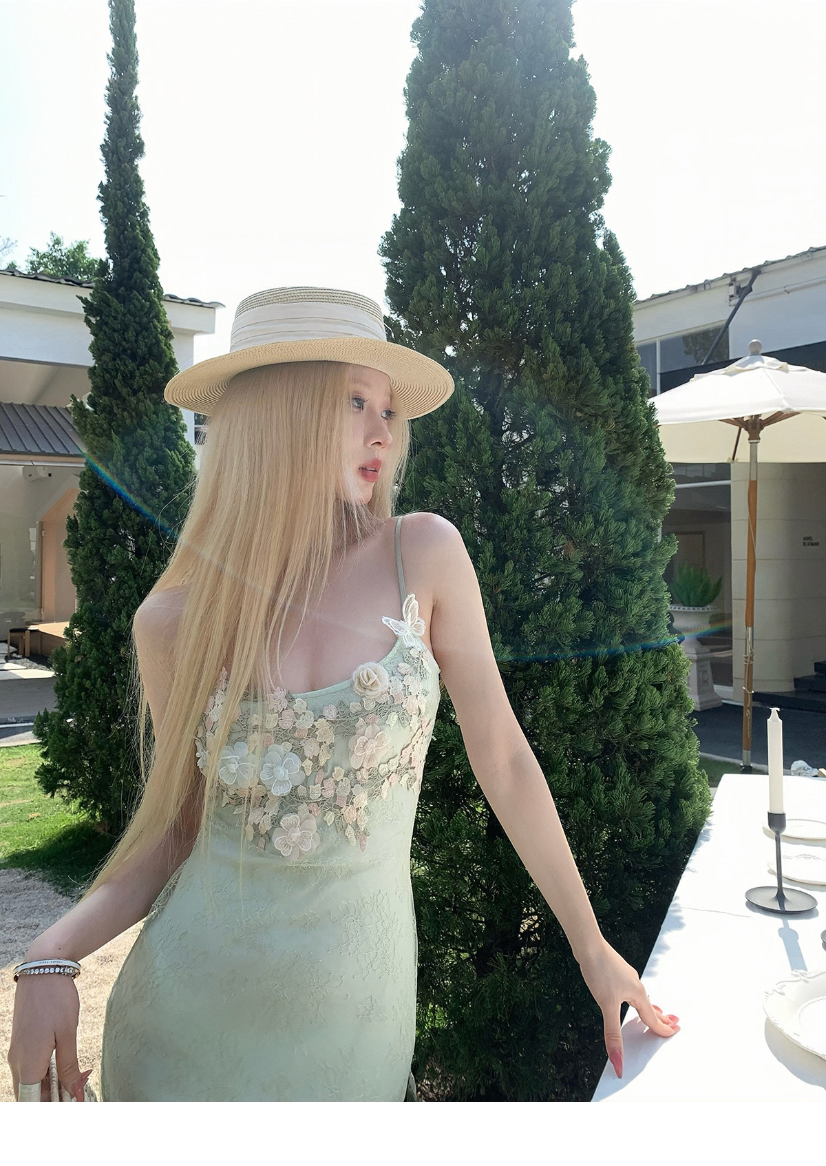 Nssy Drowning Three Fishes Seaside Vacation Strap Dress Green Dress Women's Spring Stunning Beautiful Bodycon Slim Long Dress