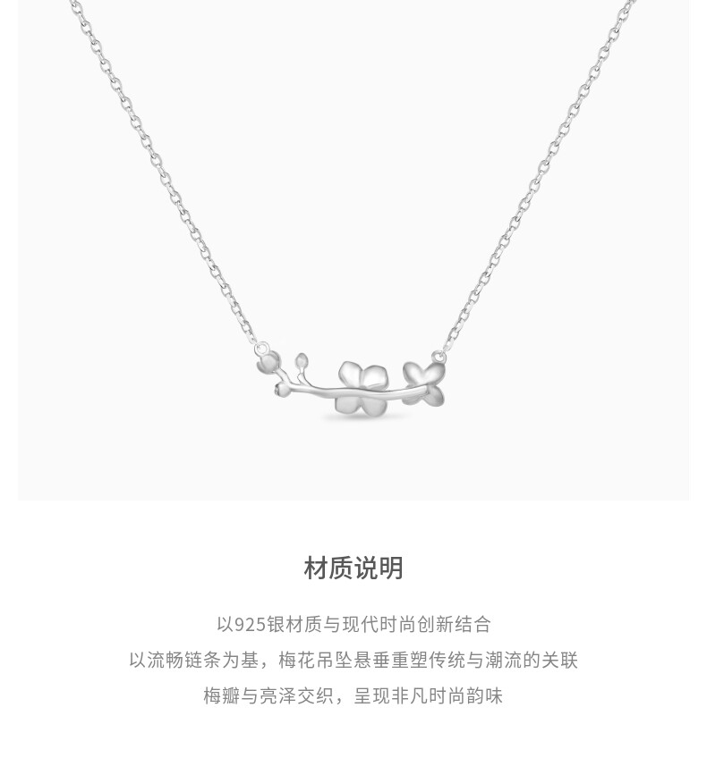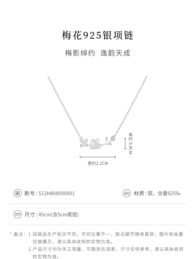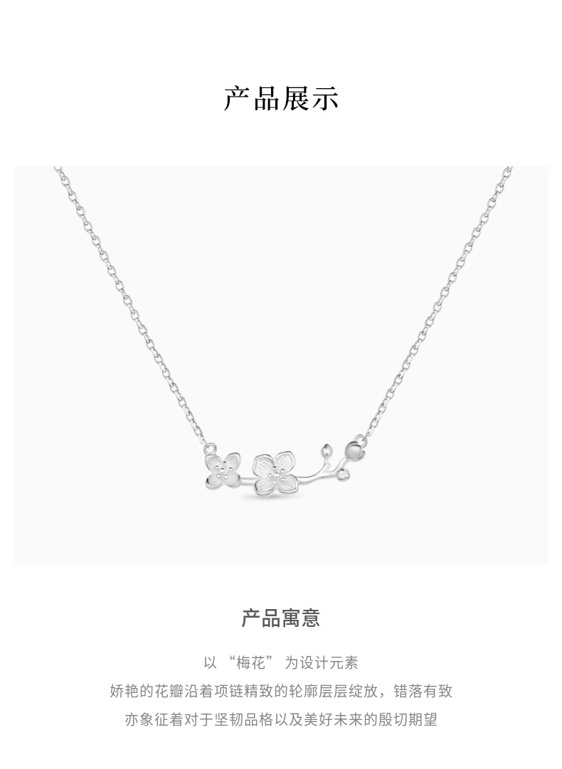 Lao Fengxiang Three-Dimensional Plum Blossom 925 New Chinese Style Clavicle Chain Silver Necklace Holiday Gift for Women