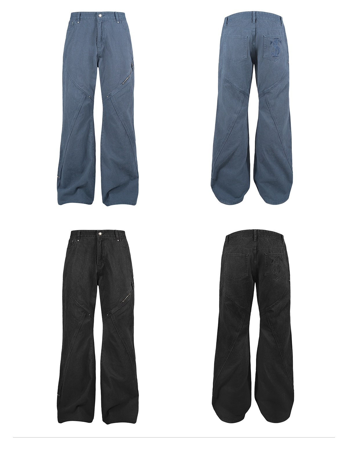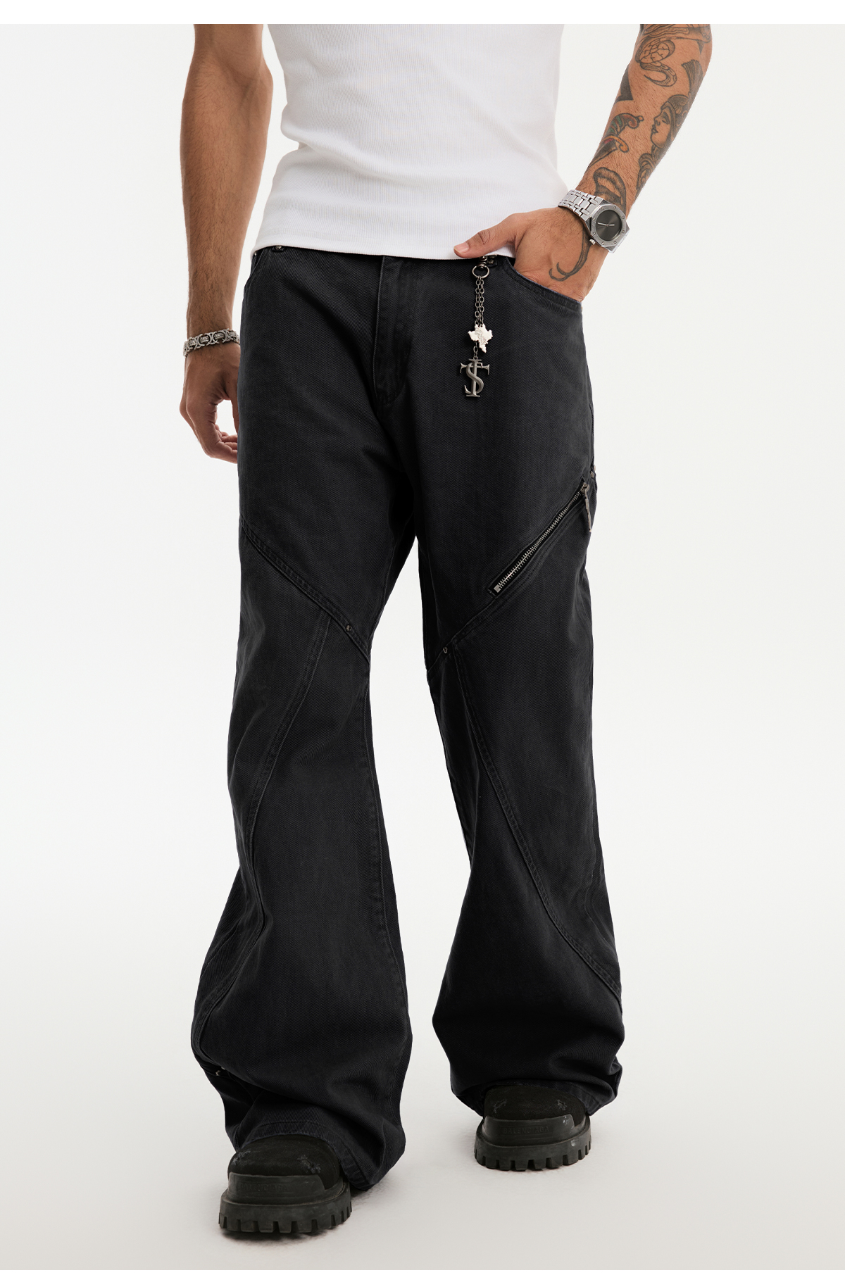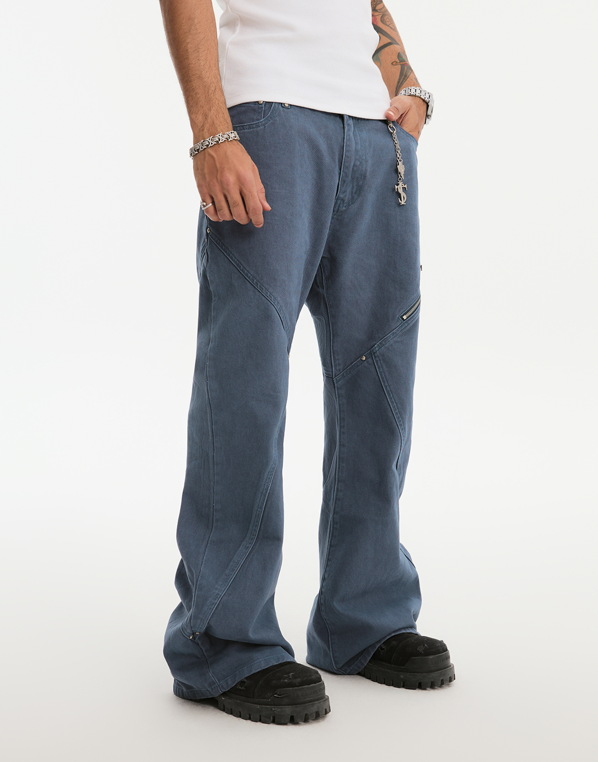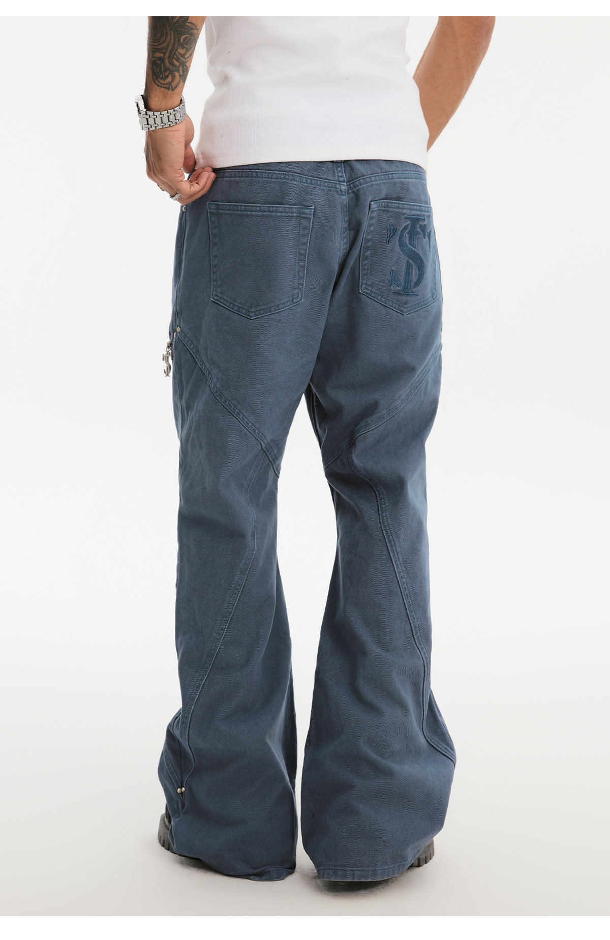 Stk Smalltownkid American Retro Washed Curved Hem Flared Deconstructed Pants Niche Slimming Men's Trousers
