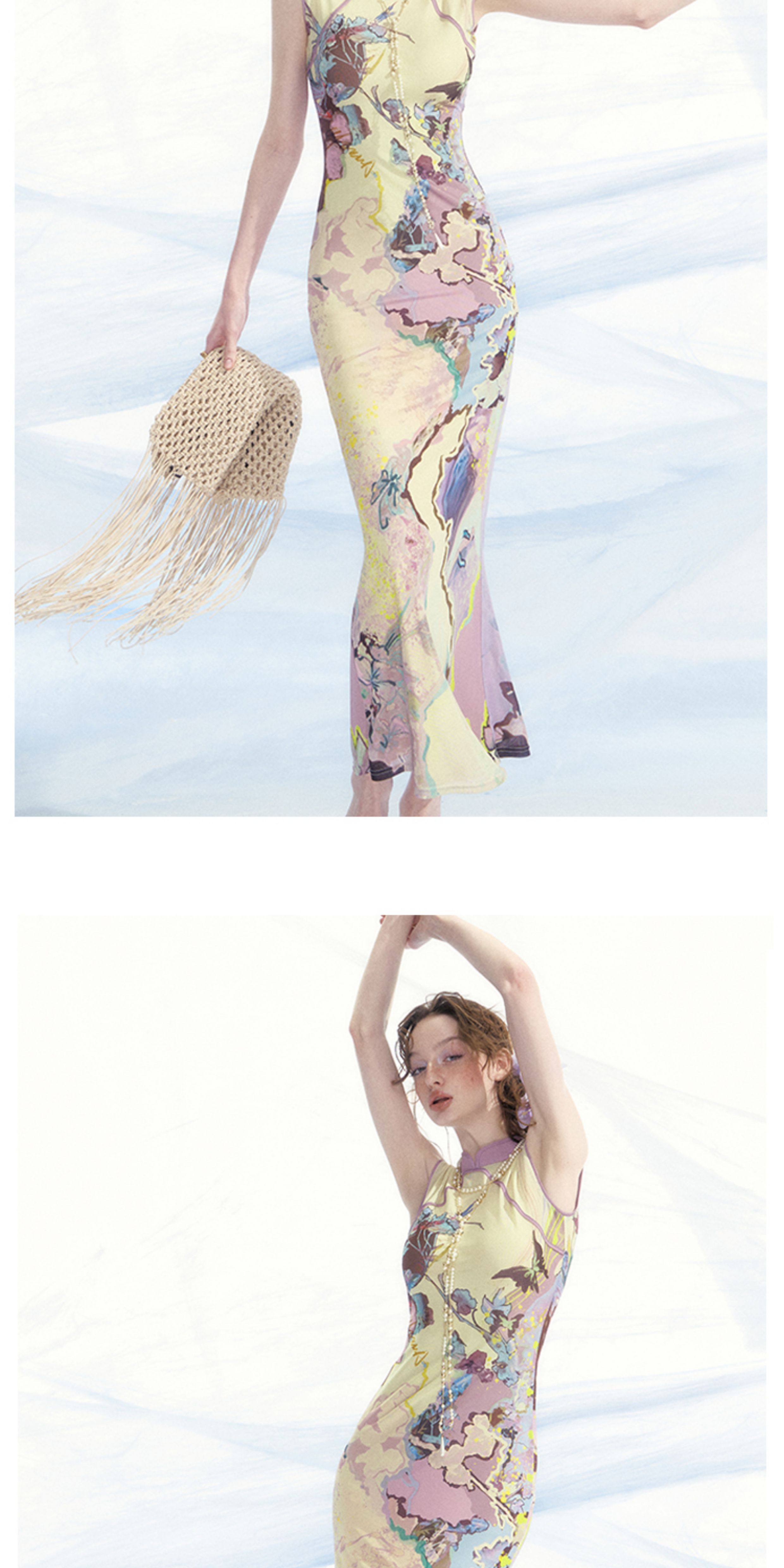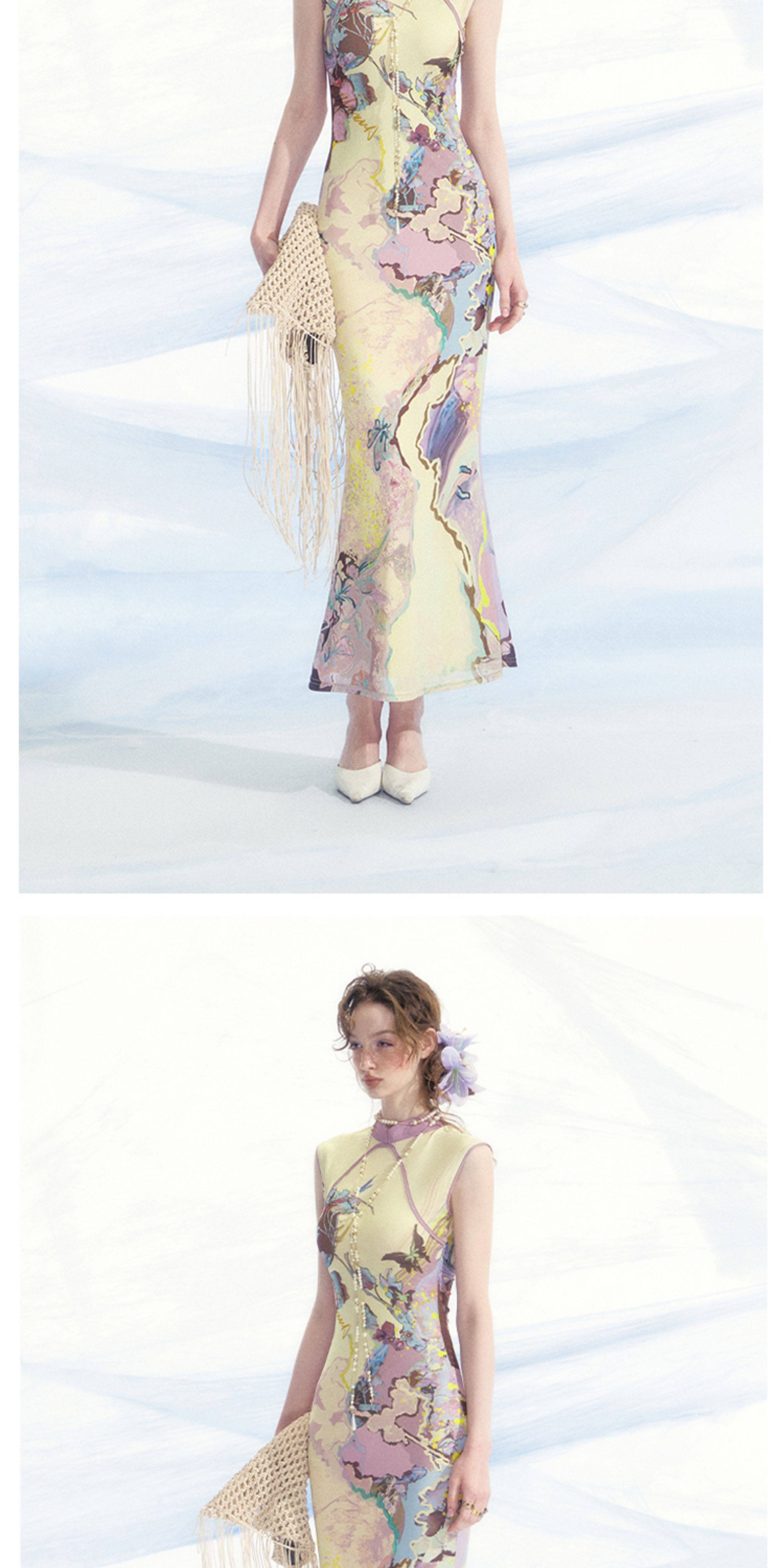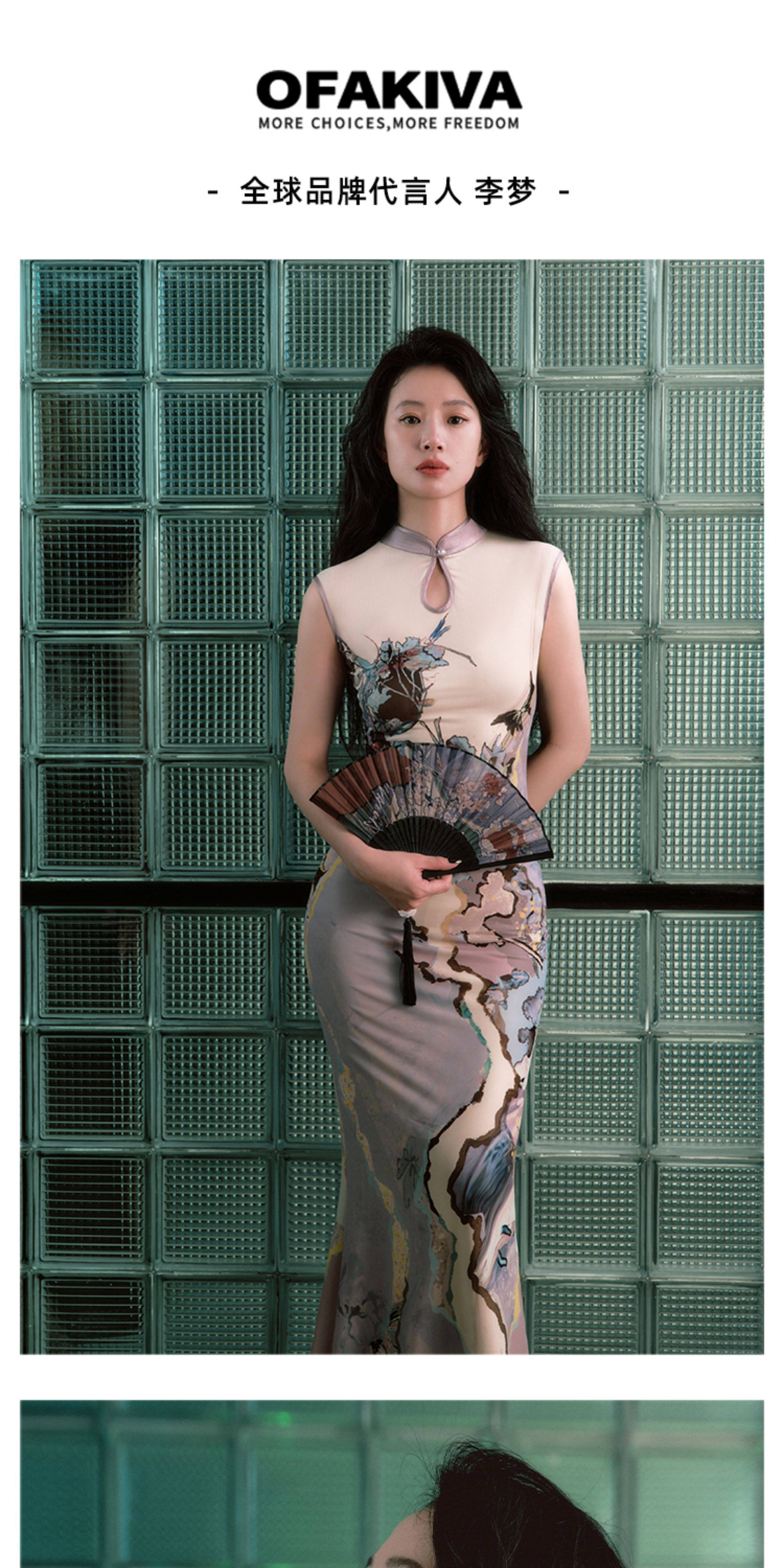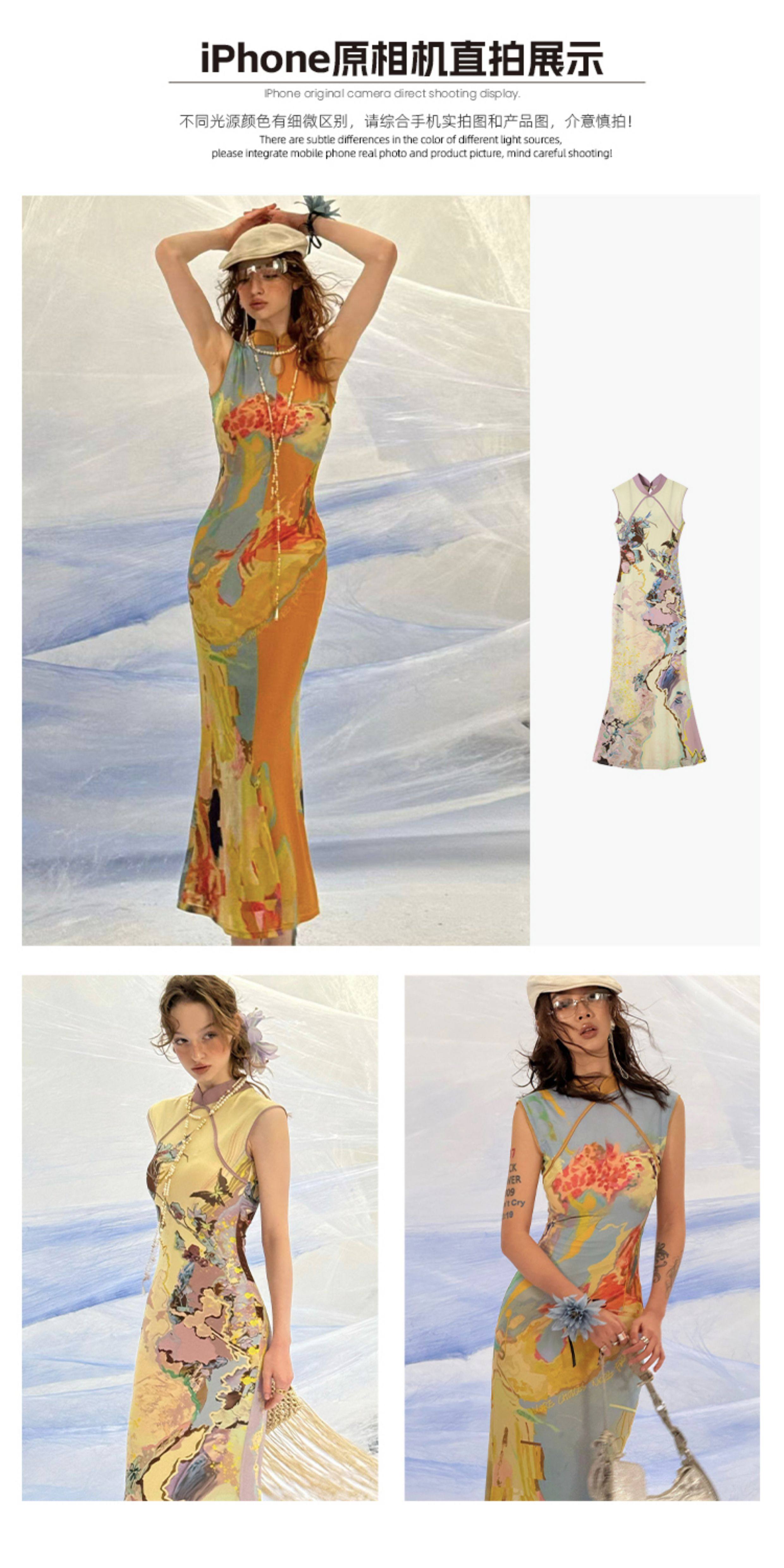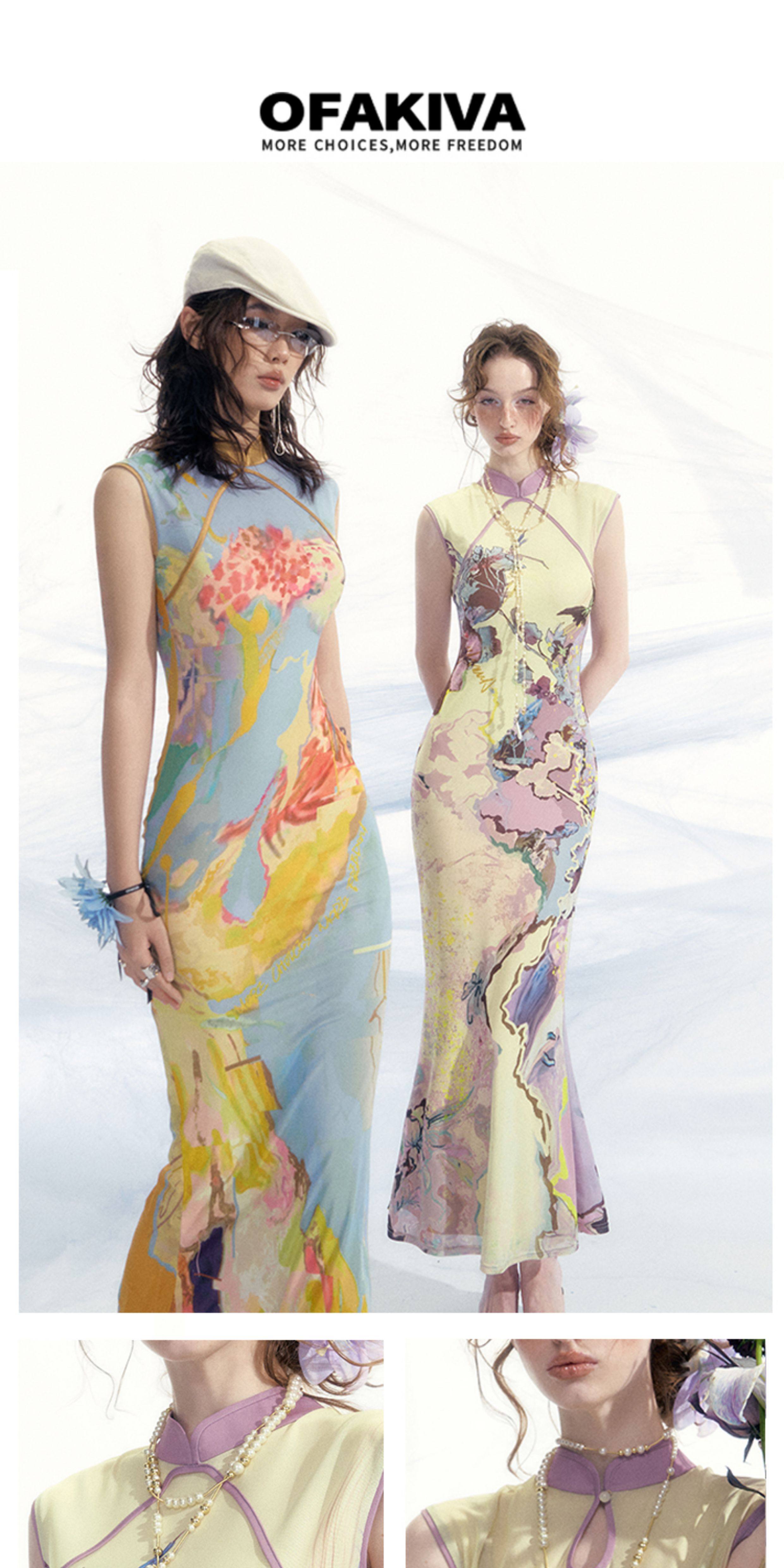 [Same Style as Li Meng] Ofakiva “Roman Poetry” New Chinese-Style Printed Cheongsam Dress Women's Tank Top Long Dress