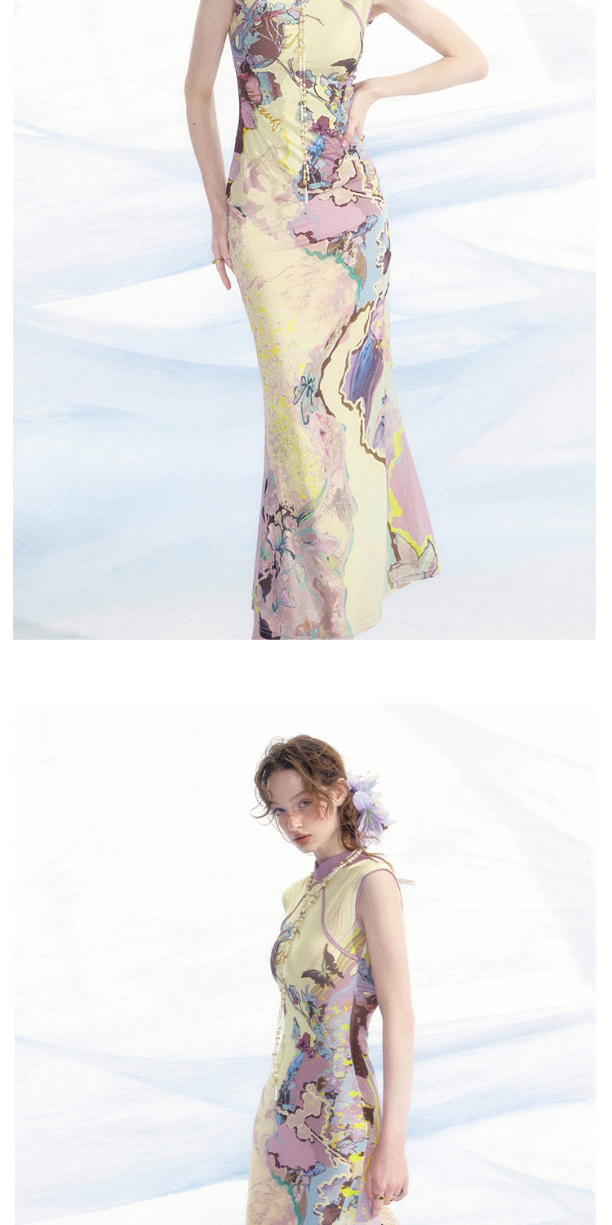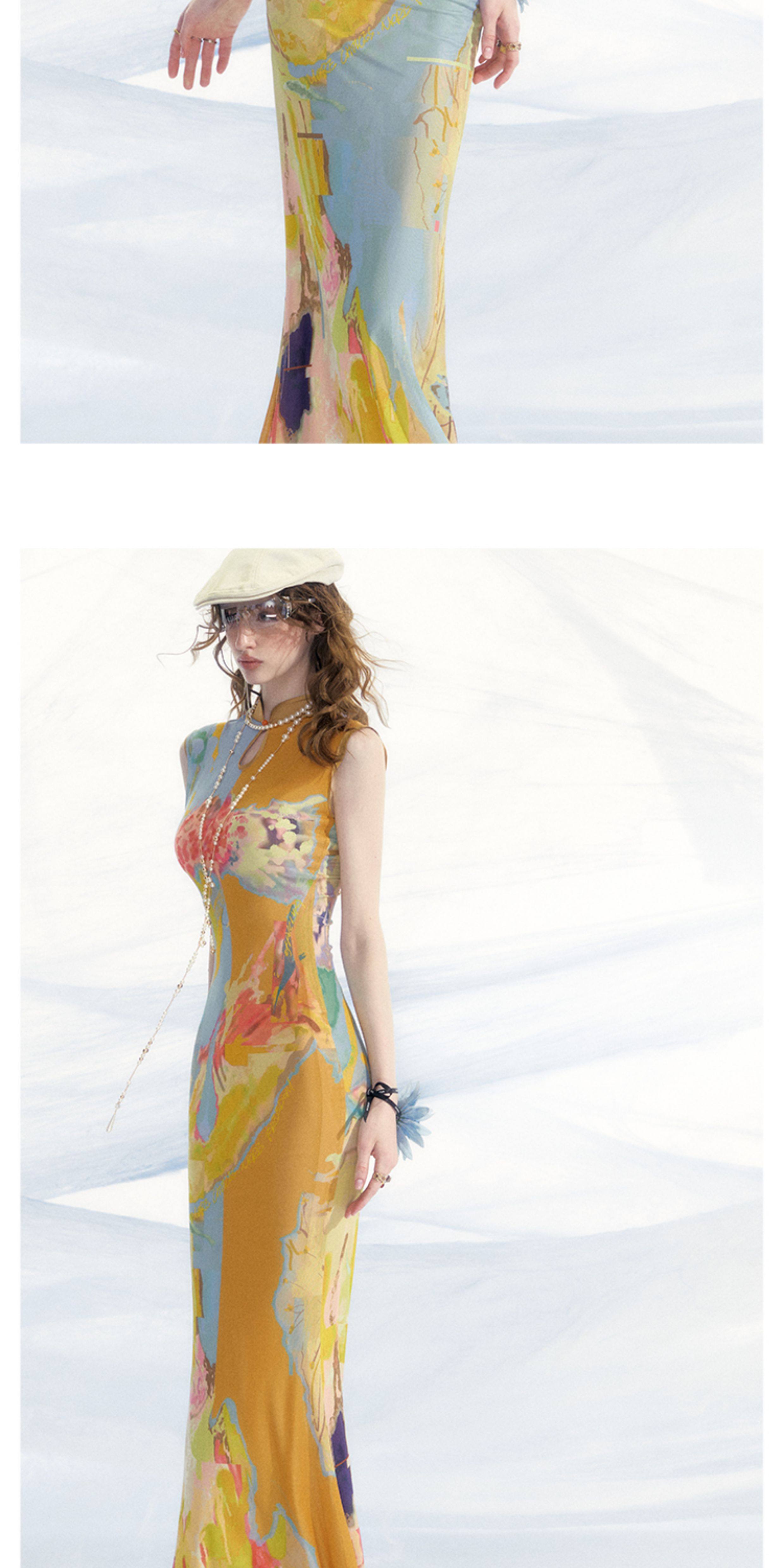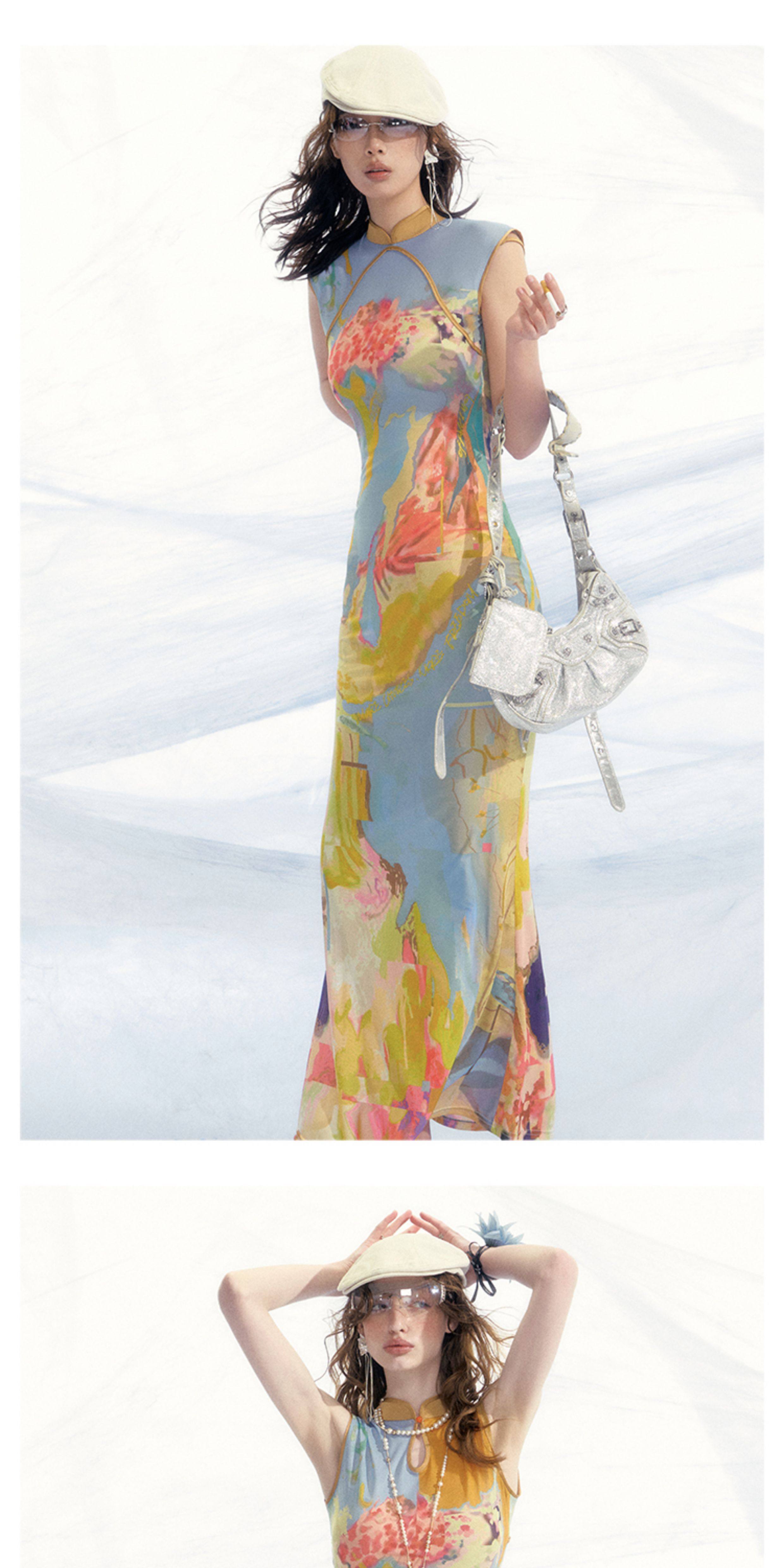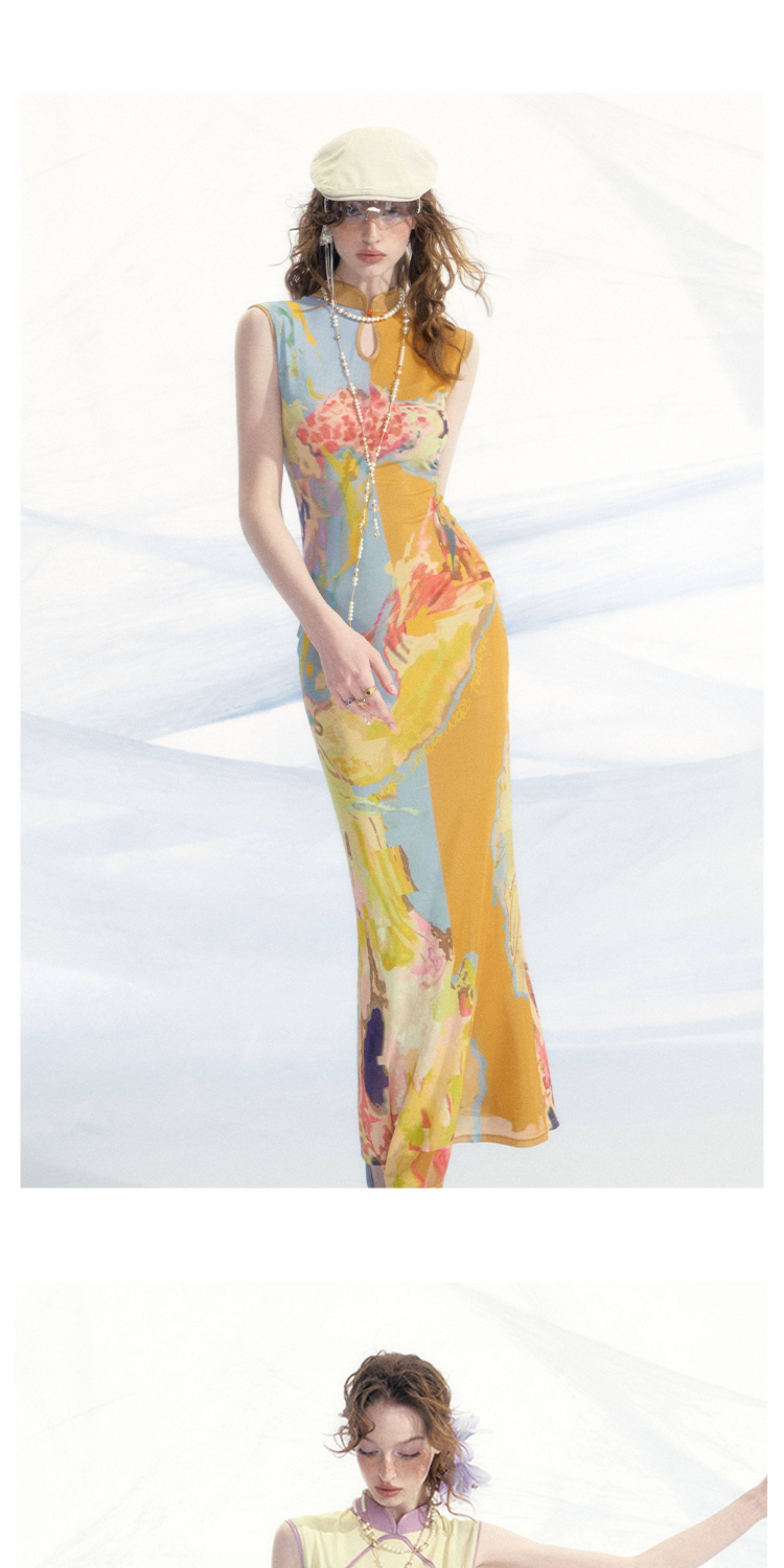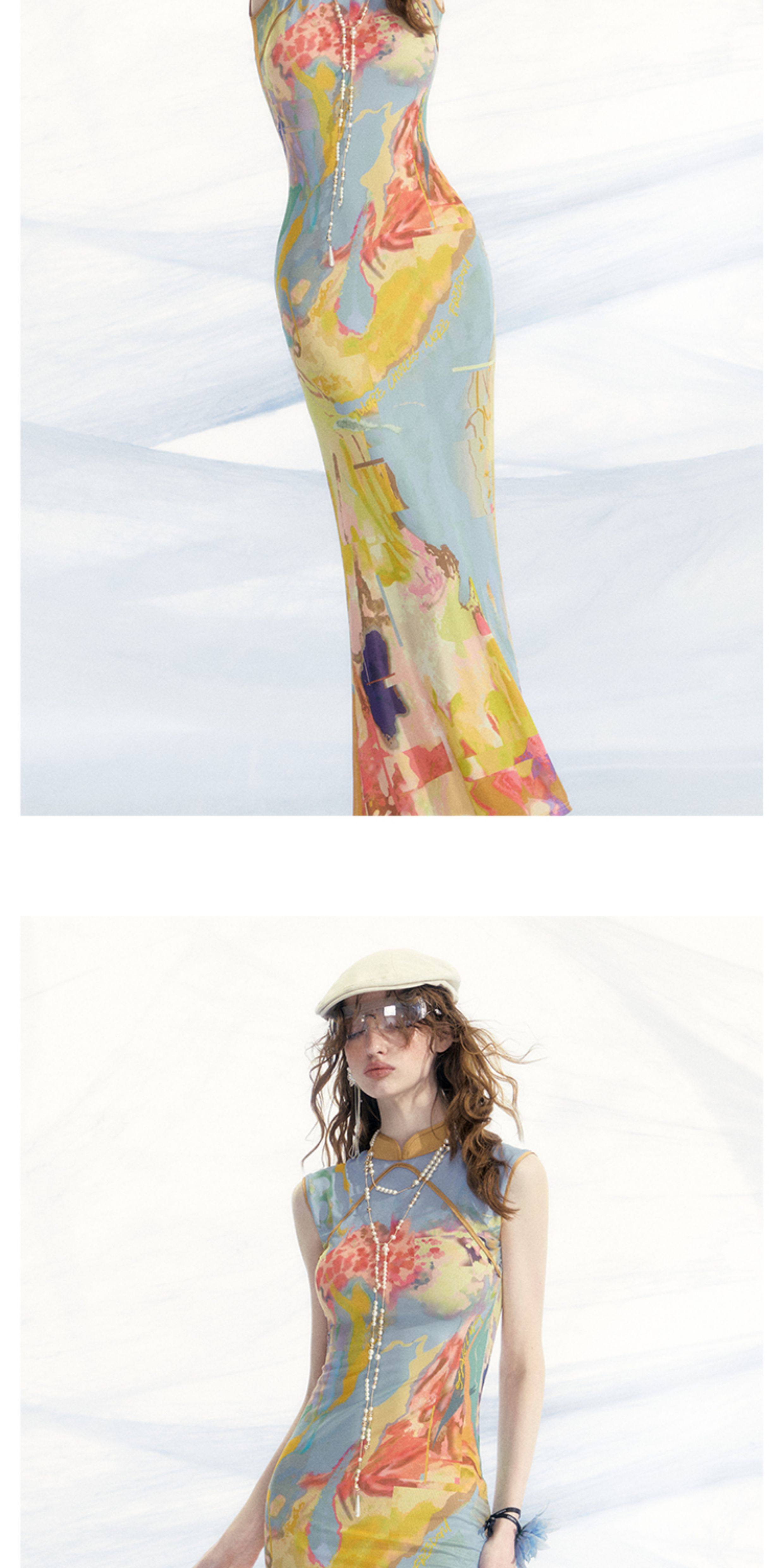 [Same Style as Li Meng] Ofakiva “Roman Poetry” New Chinese-Style Printed Cheongsam Dress Women's Tank Top Long Dress