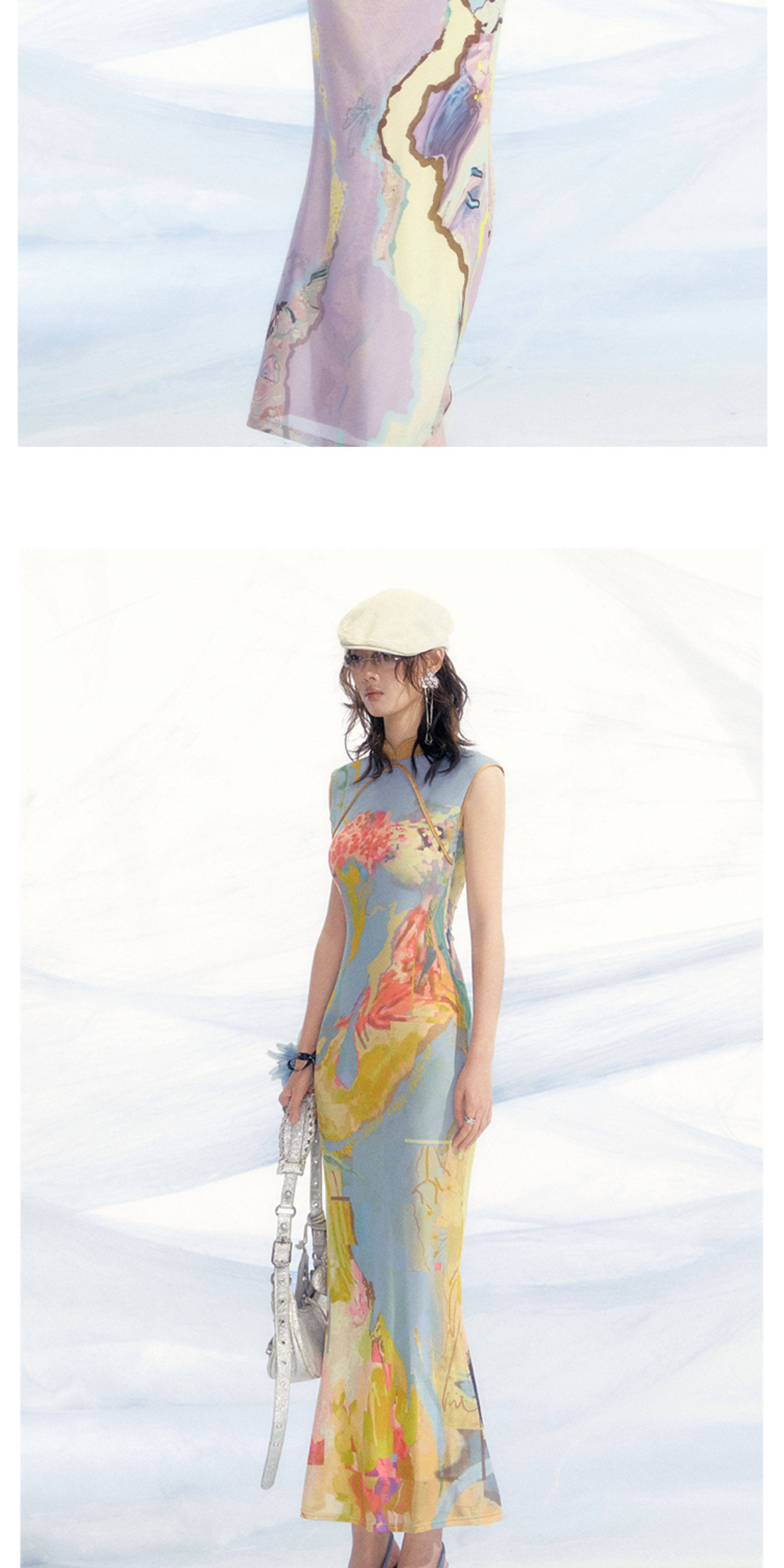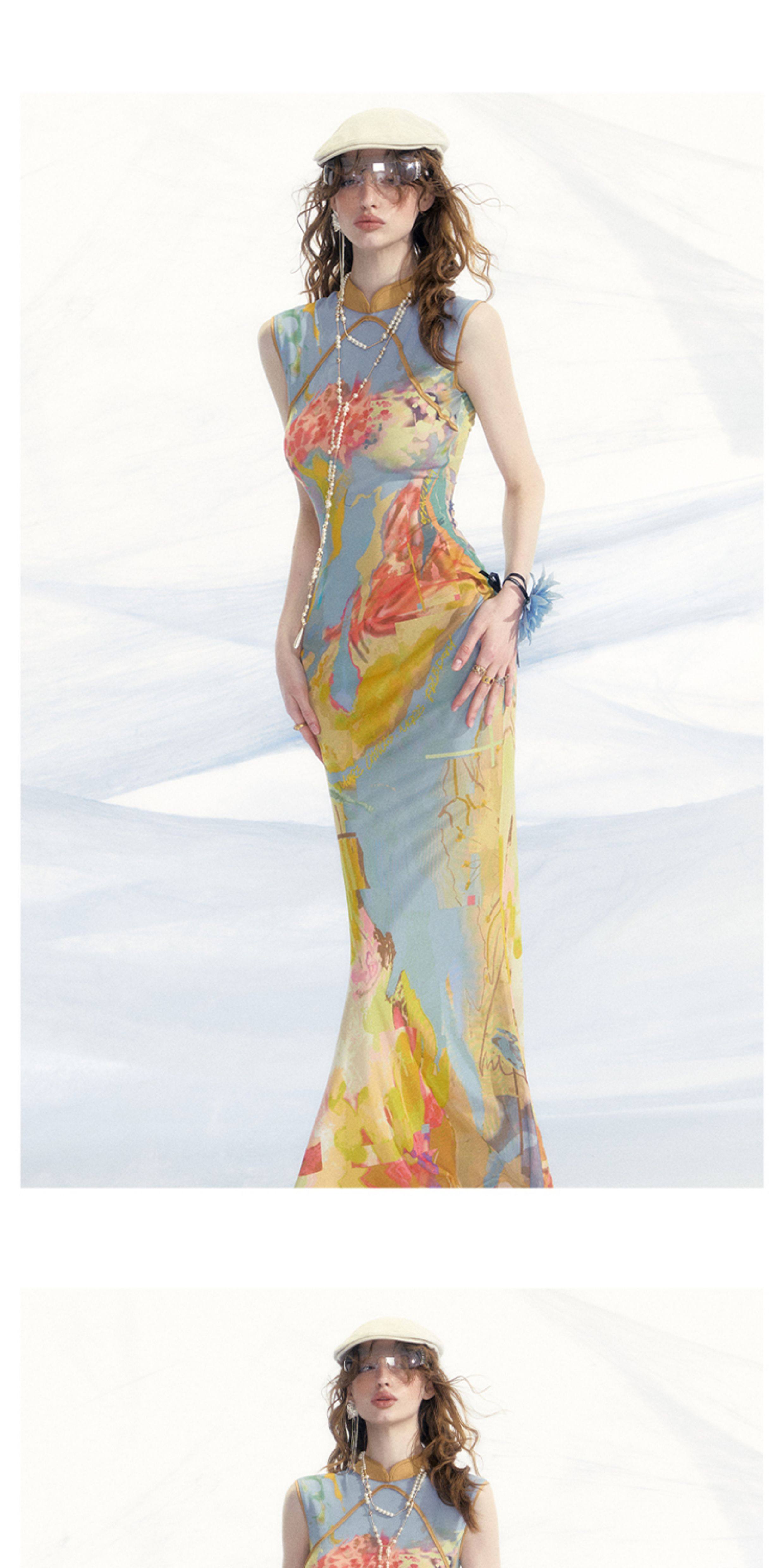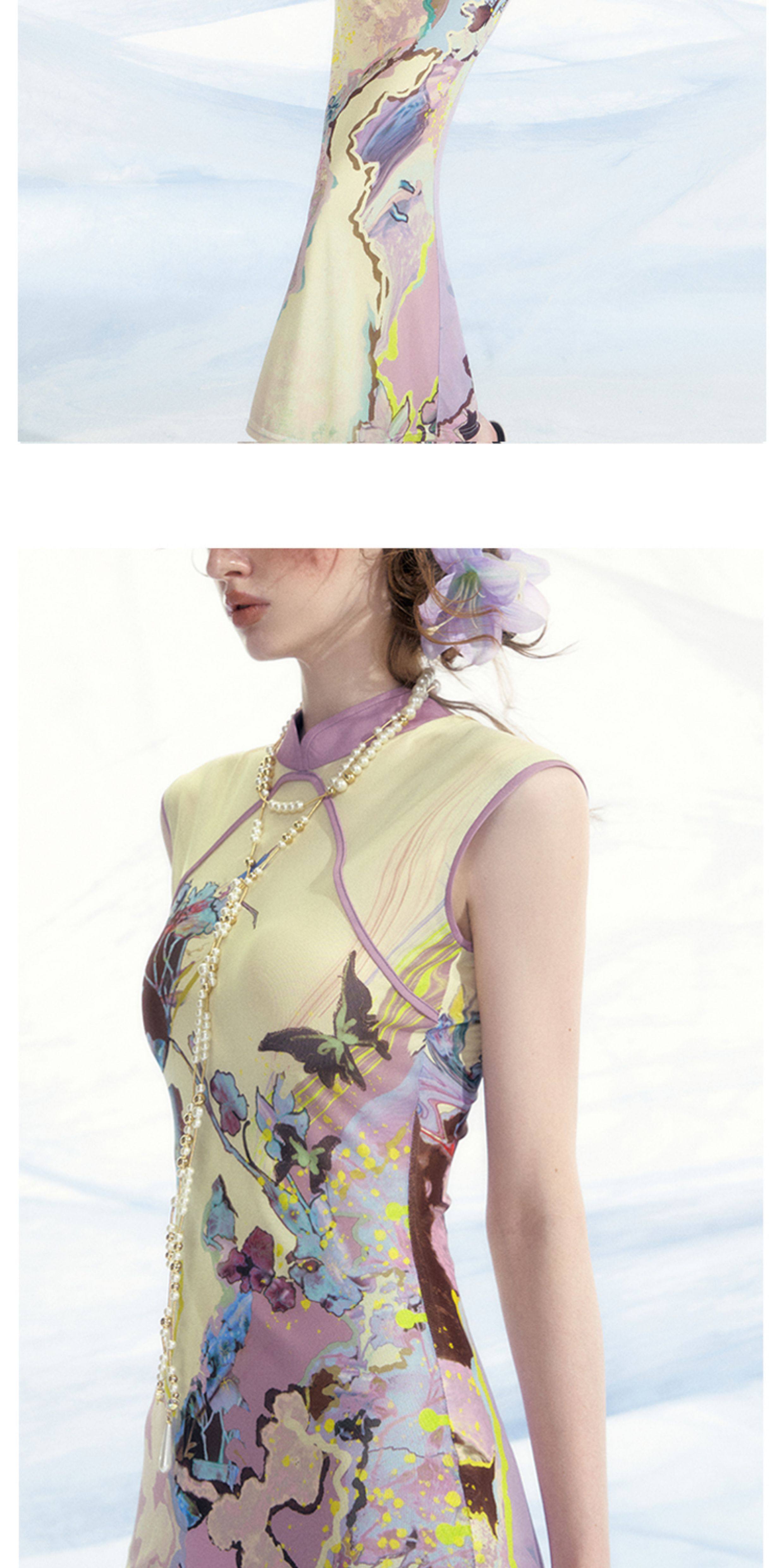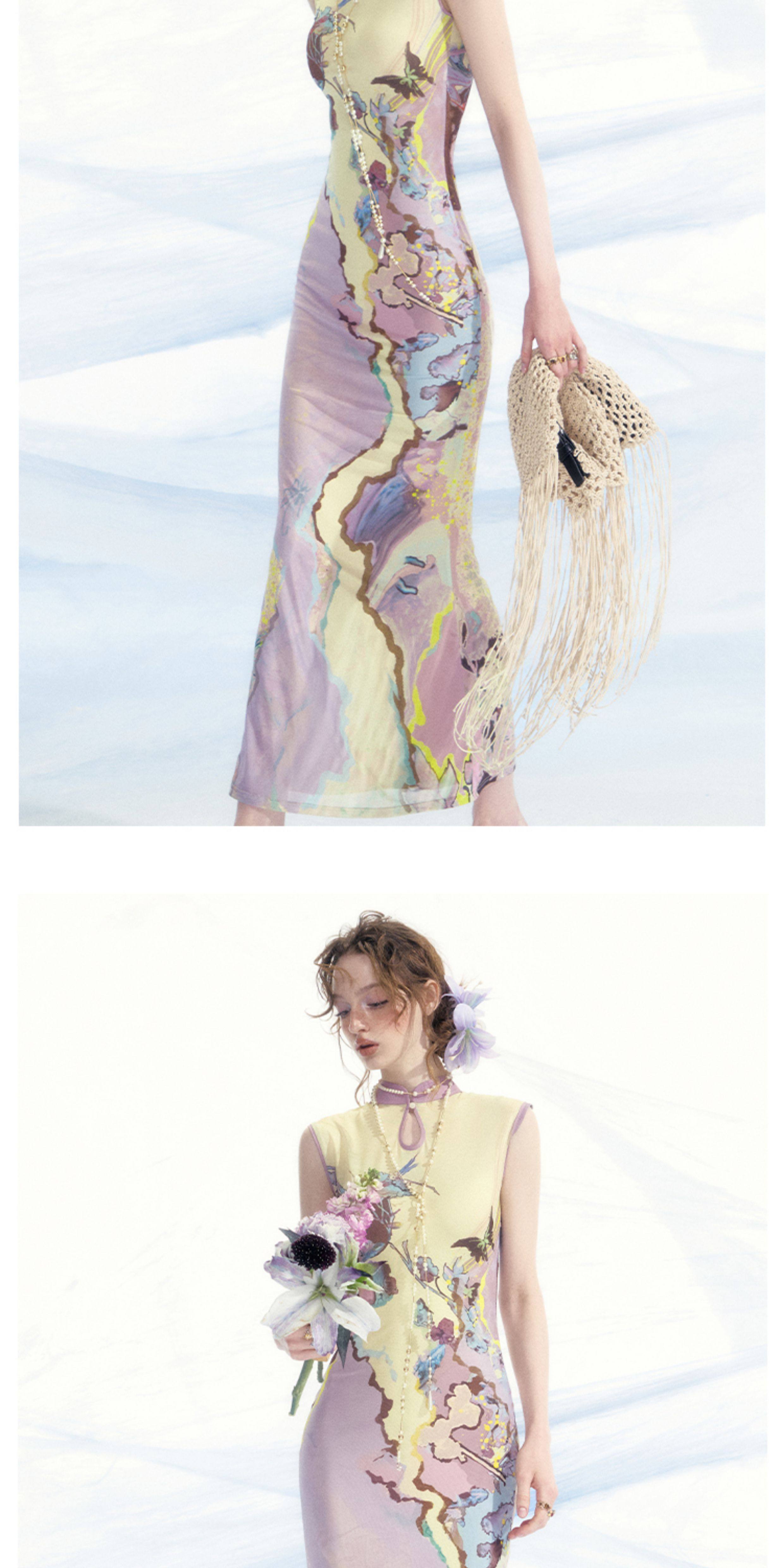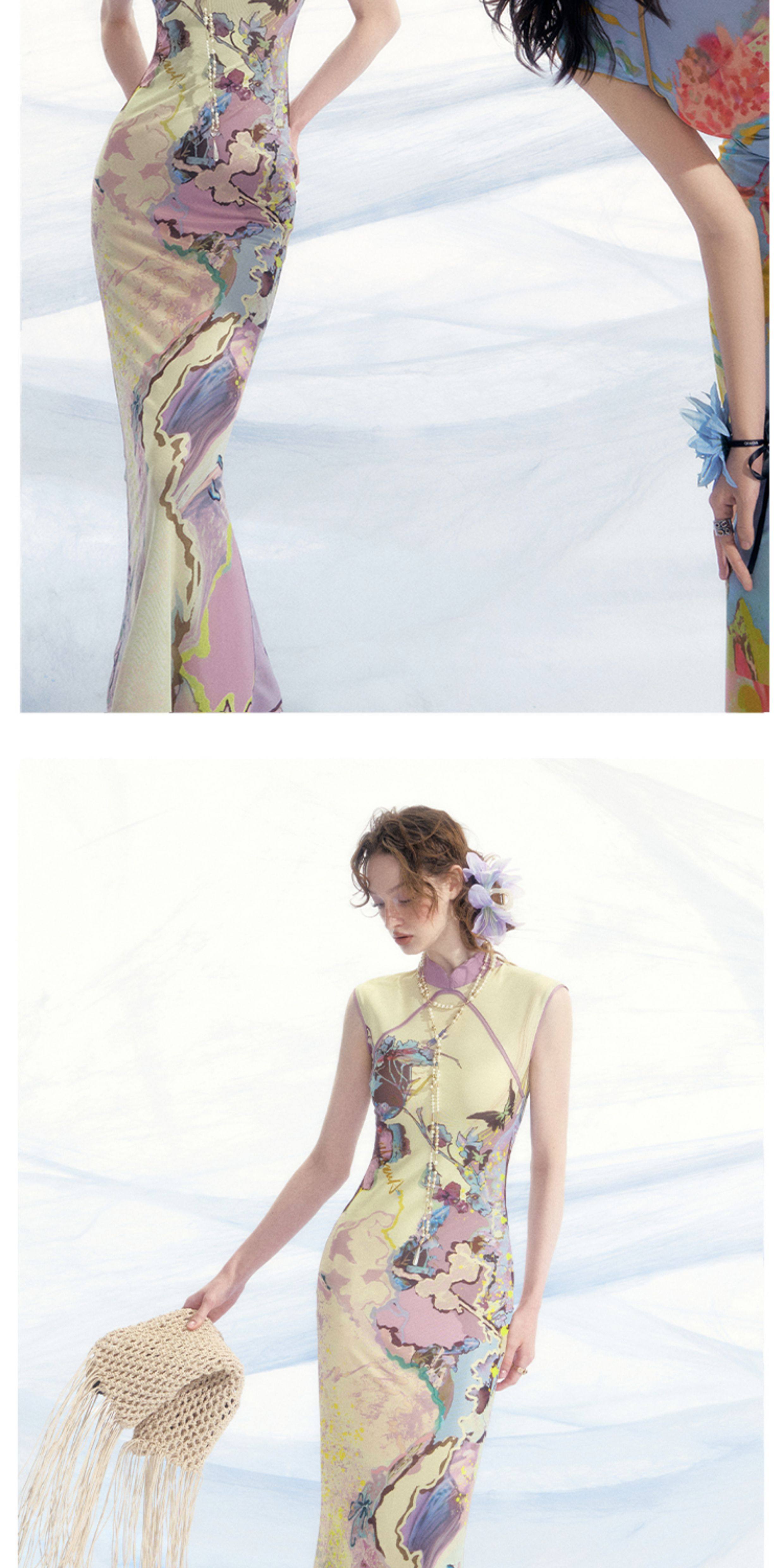 [Same Style as Li Meng] Ofakiva “Roman Poetry” New Chinese-Style Printed Cheongsam Dress Women's Tank Top Long Dress