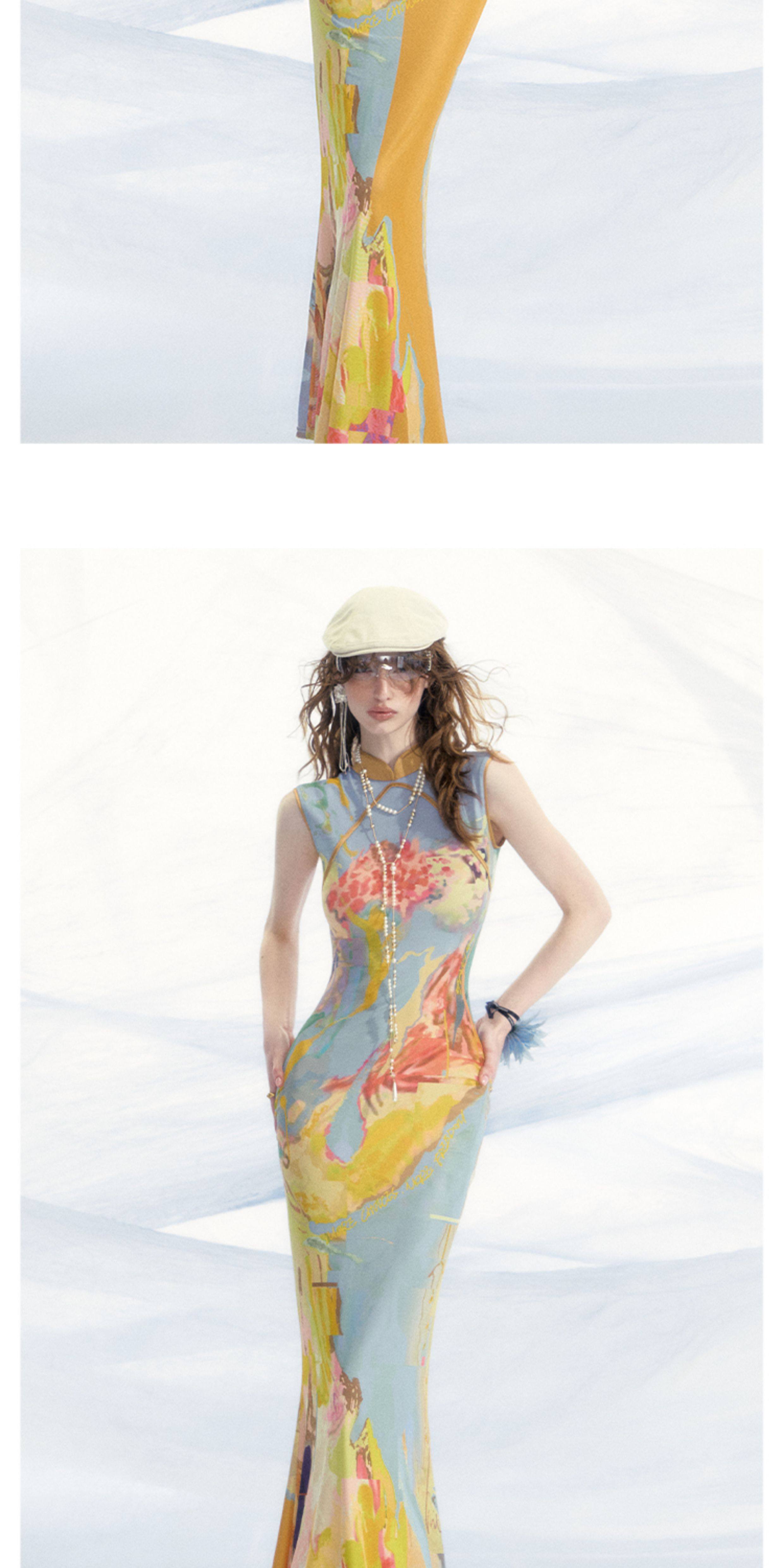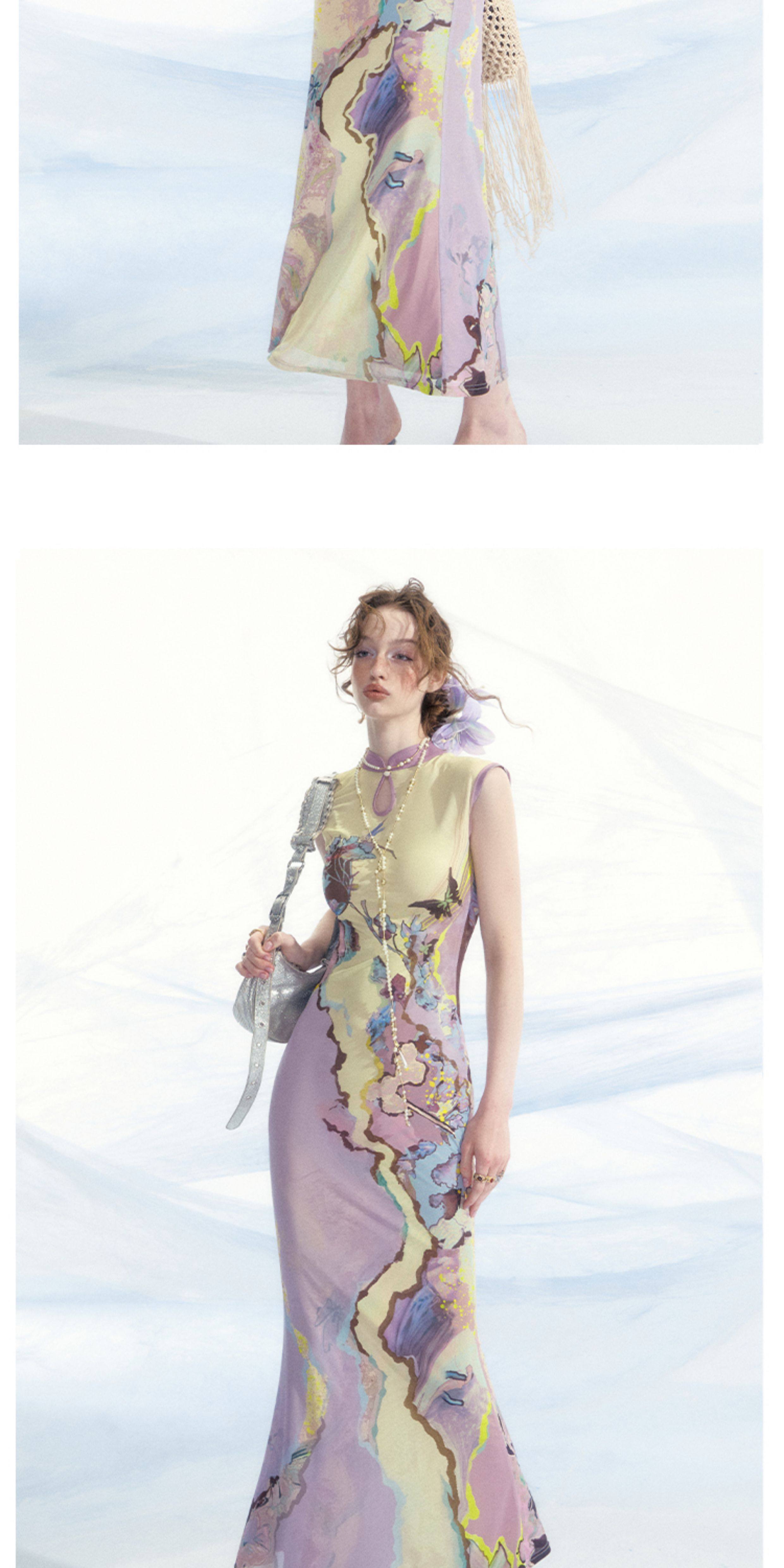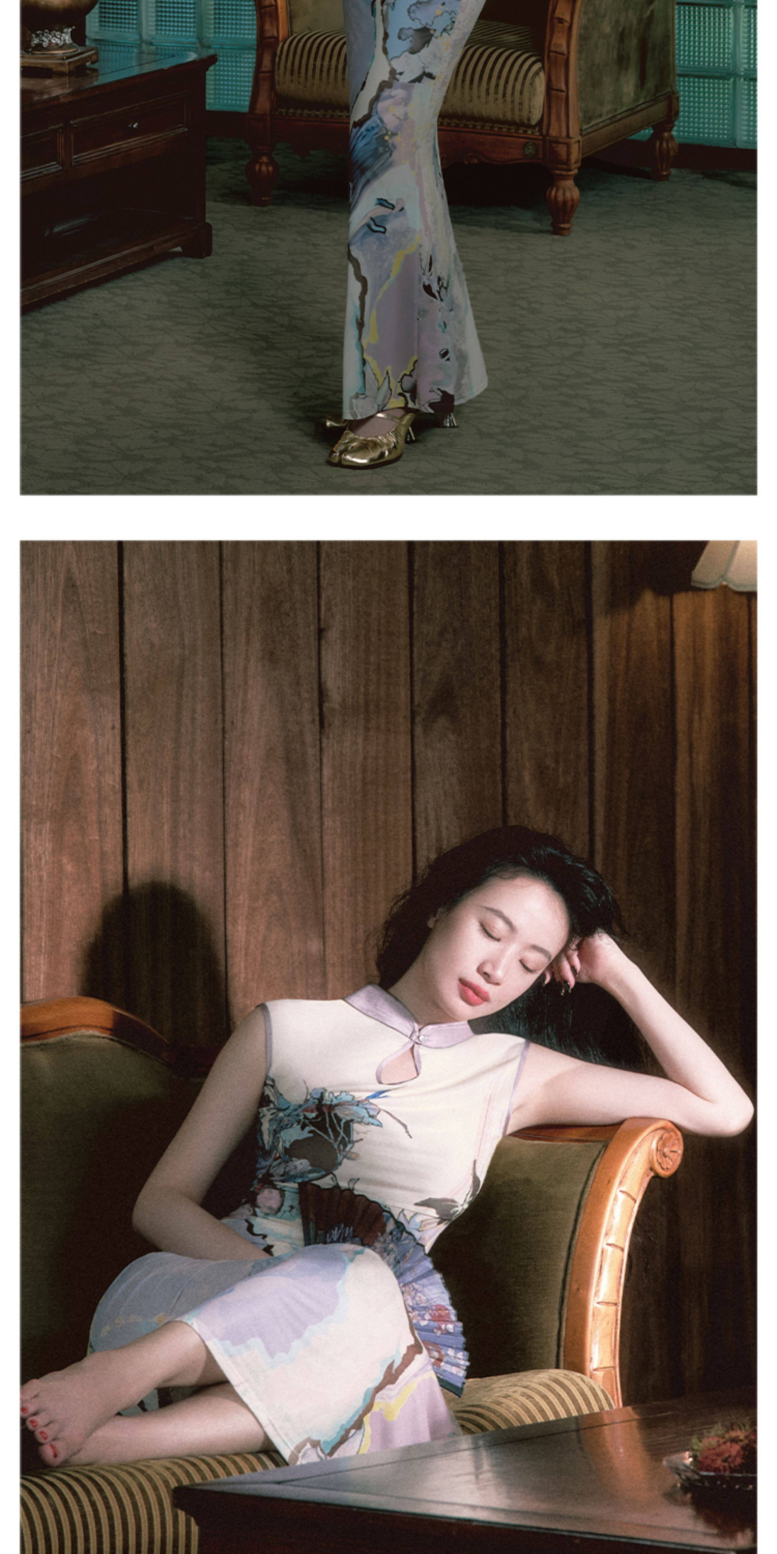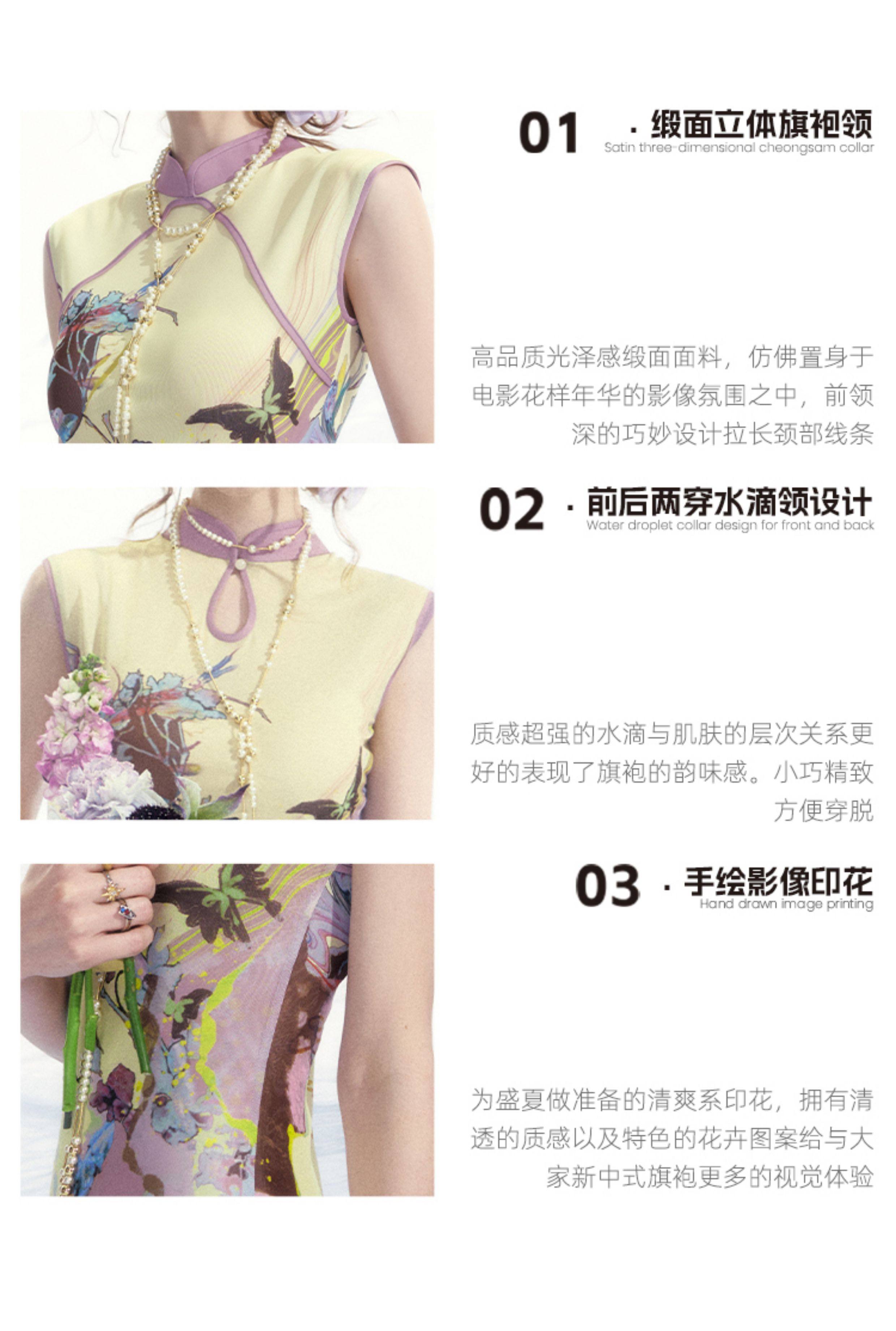 [Same Style as Li Meng] Ofakiva “Roman Poetry” New Chinese-Style Printed Cheongsam Dress Women's Tank Top Long Dress