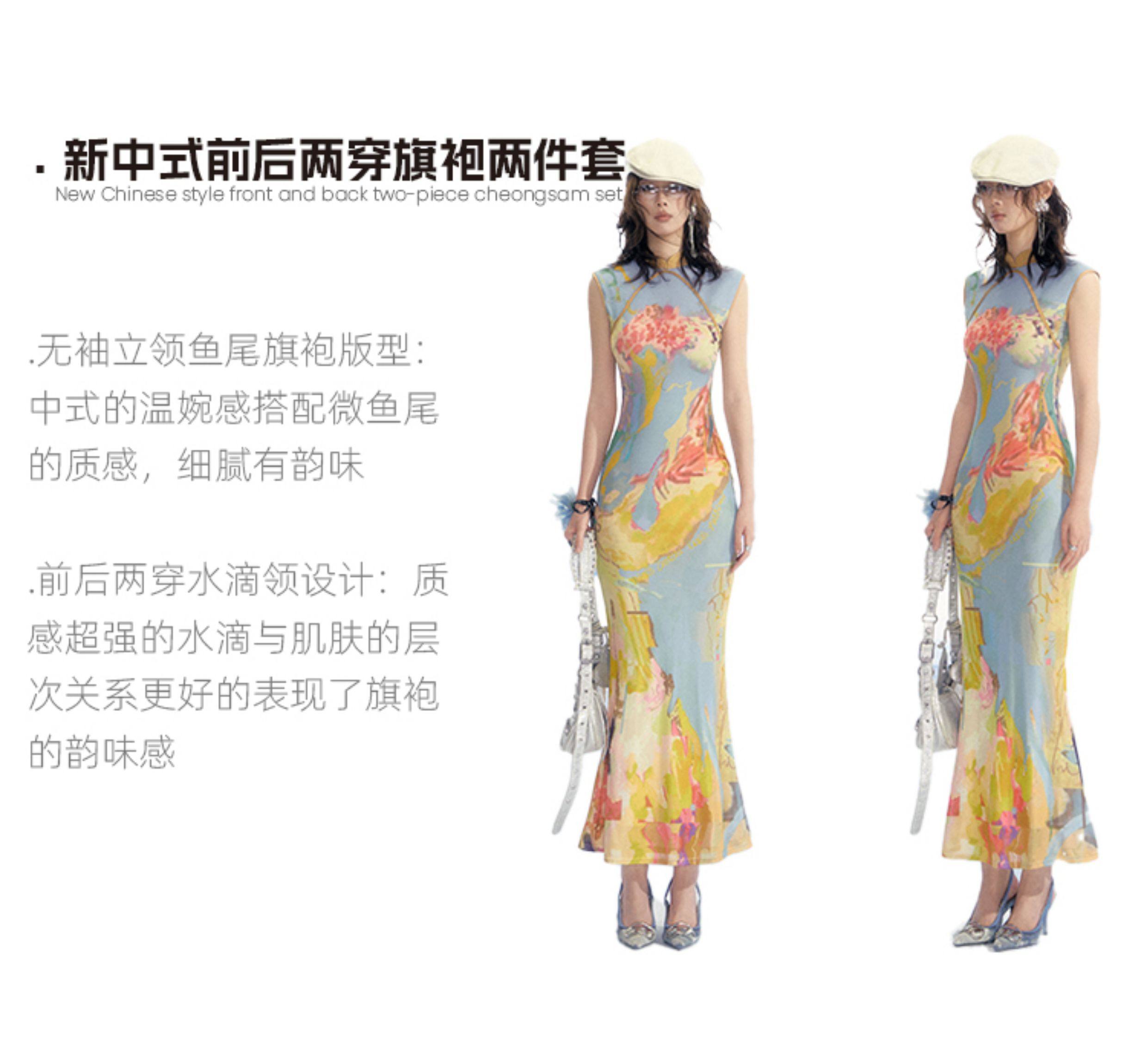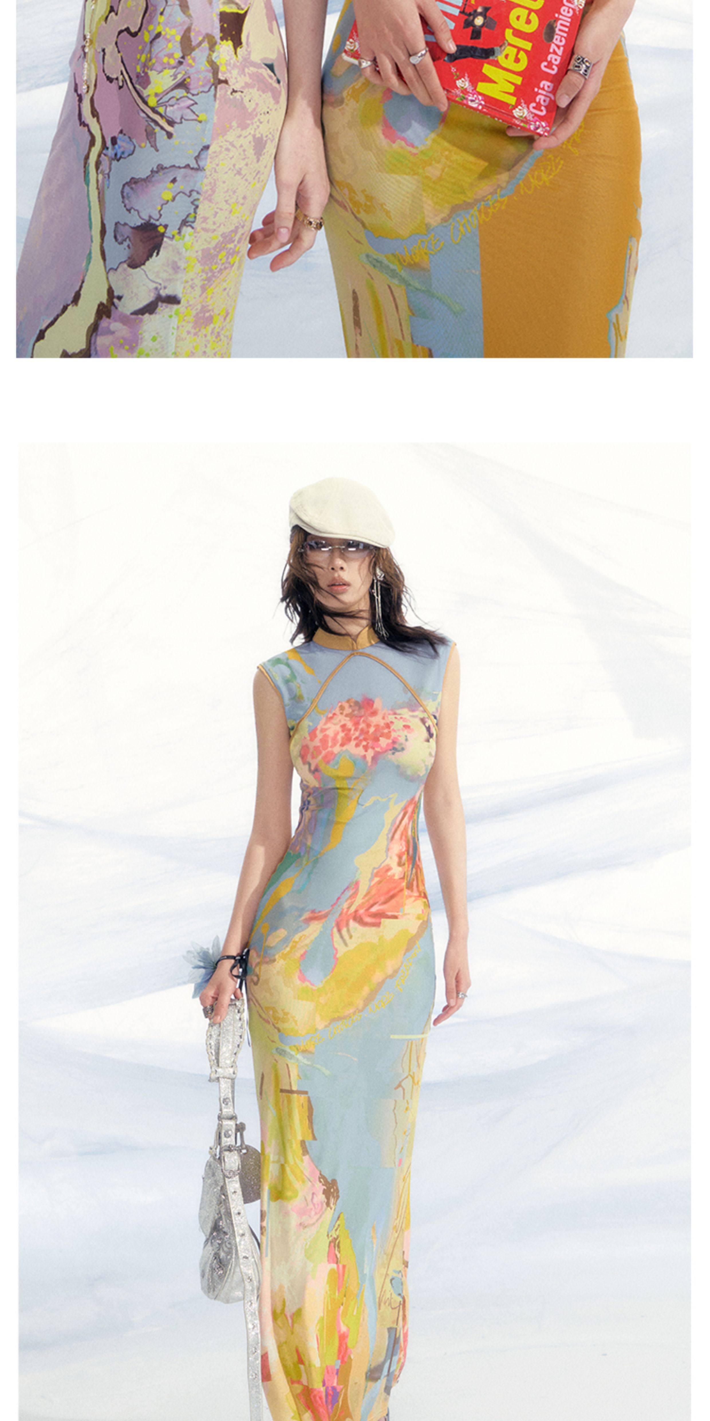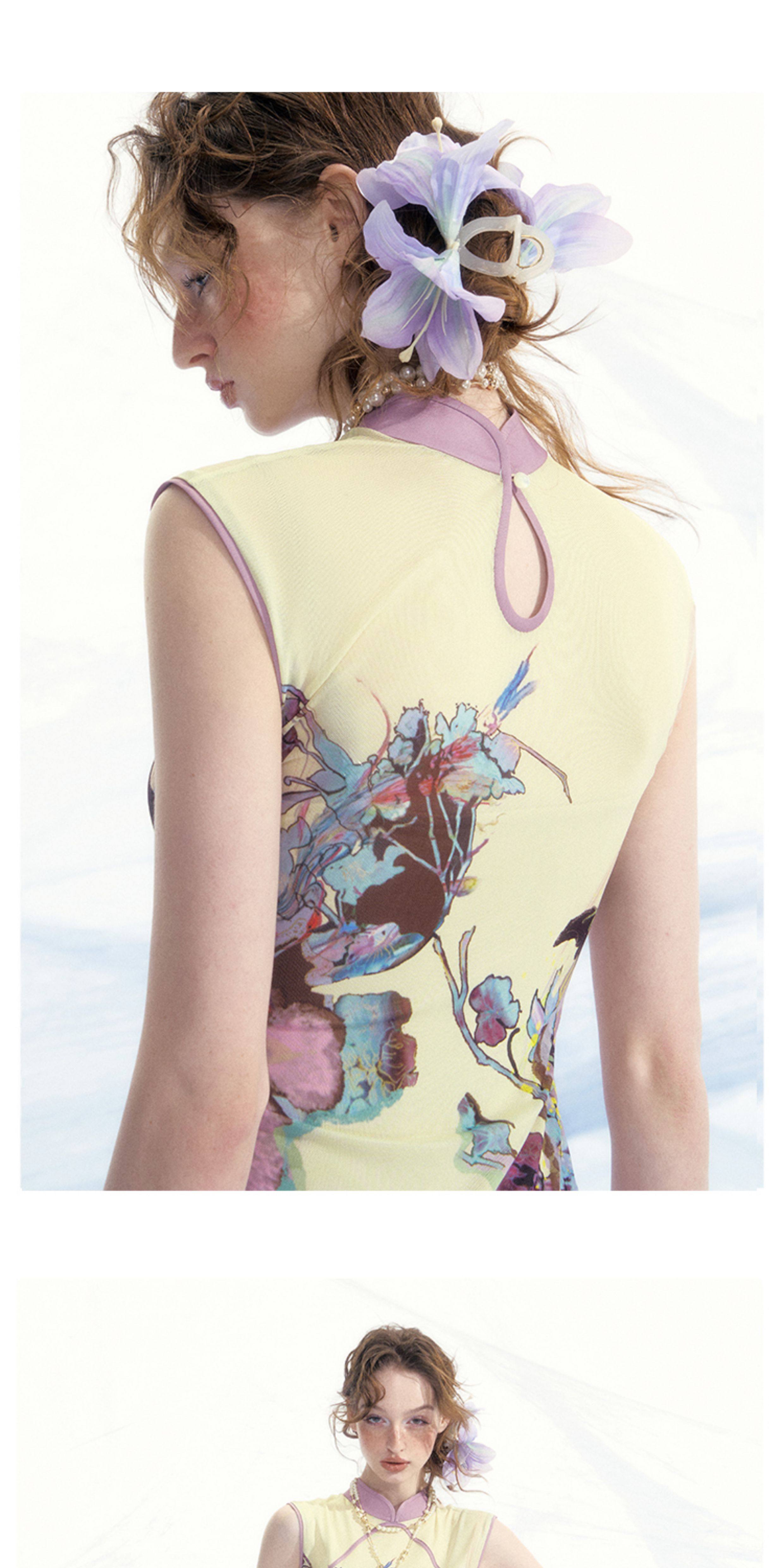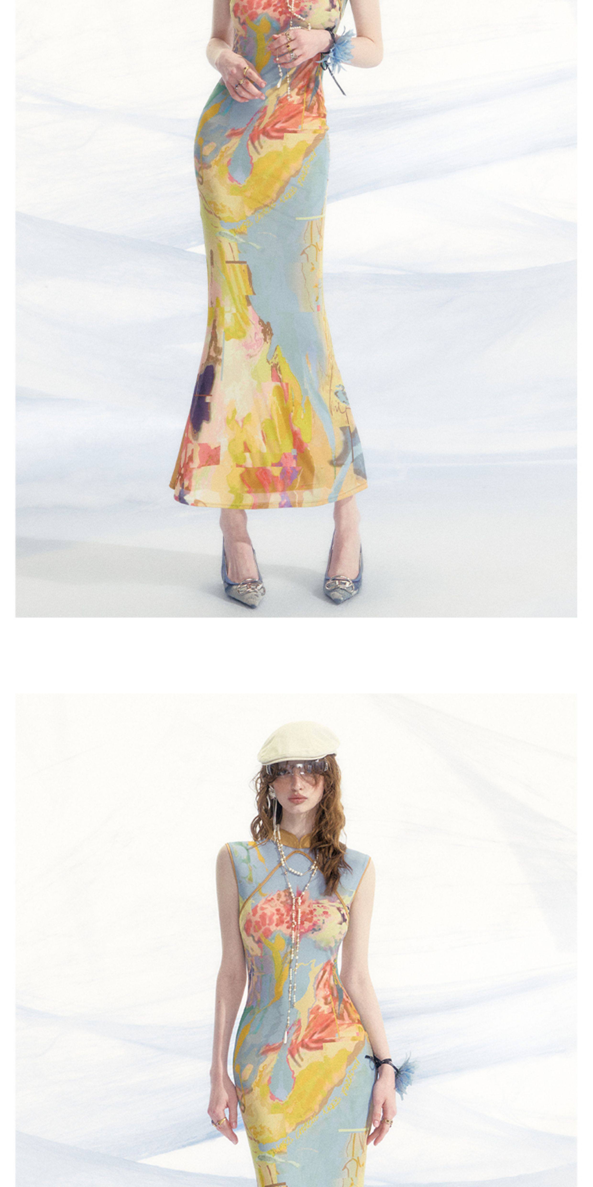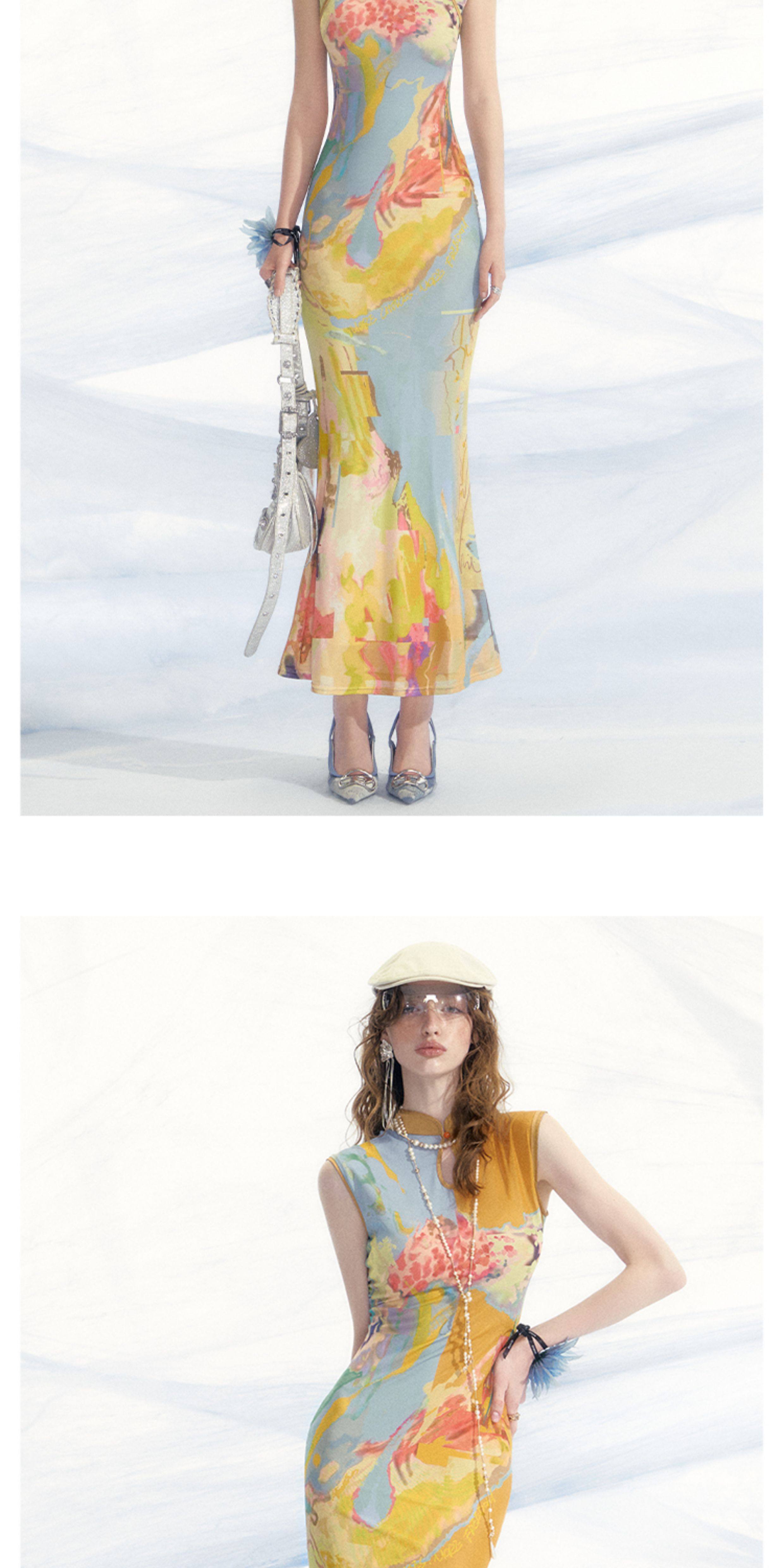 [Same Style as Li Meng] Ofakiva “Roman Poetry” New Chinese-Style Printed Cheongsam Dress Women's Tank Top Long Dress