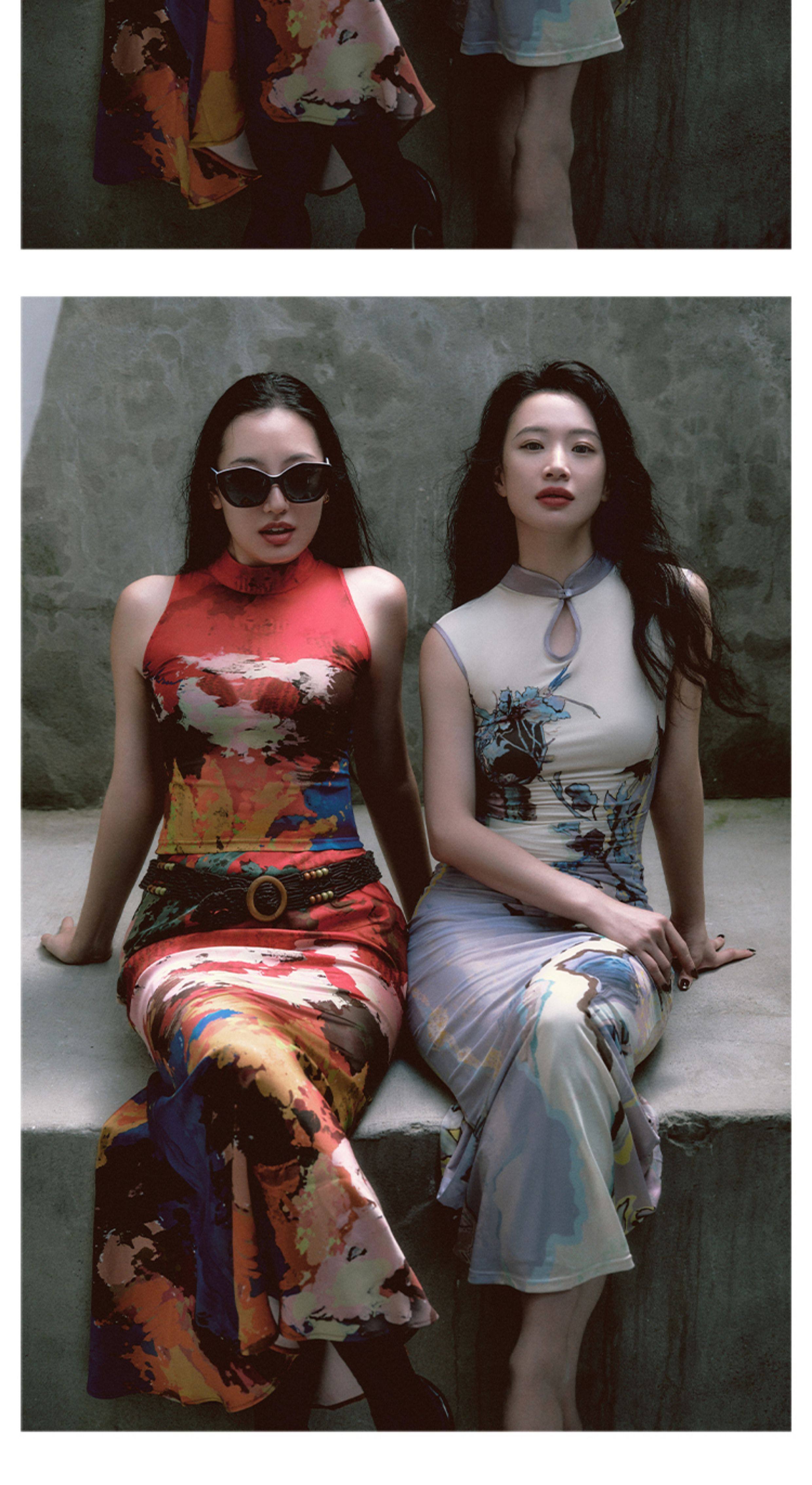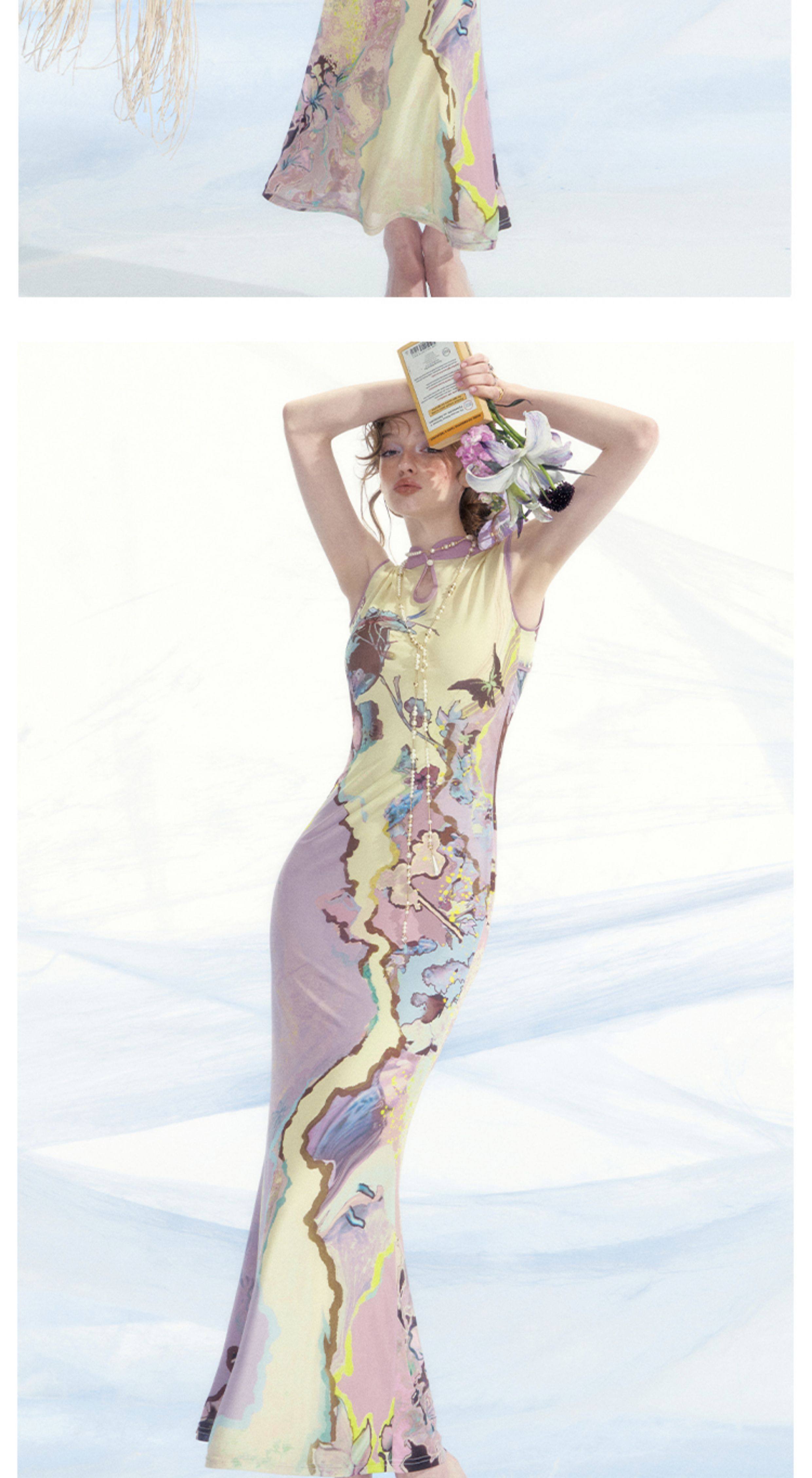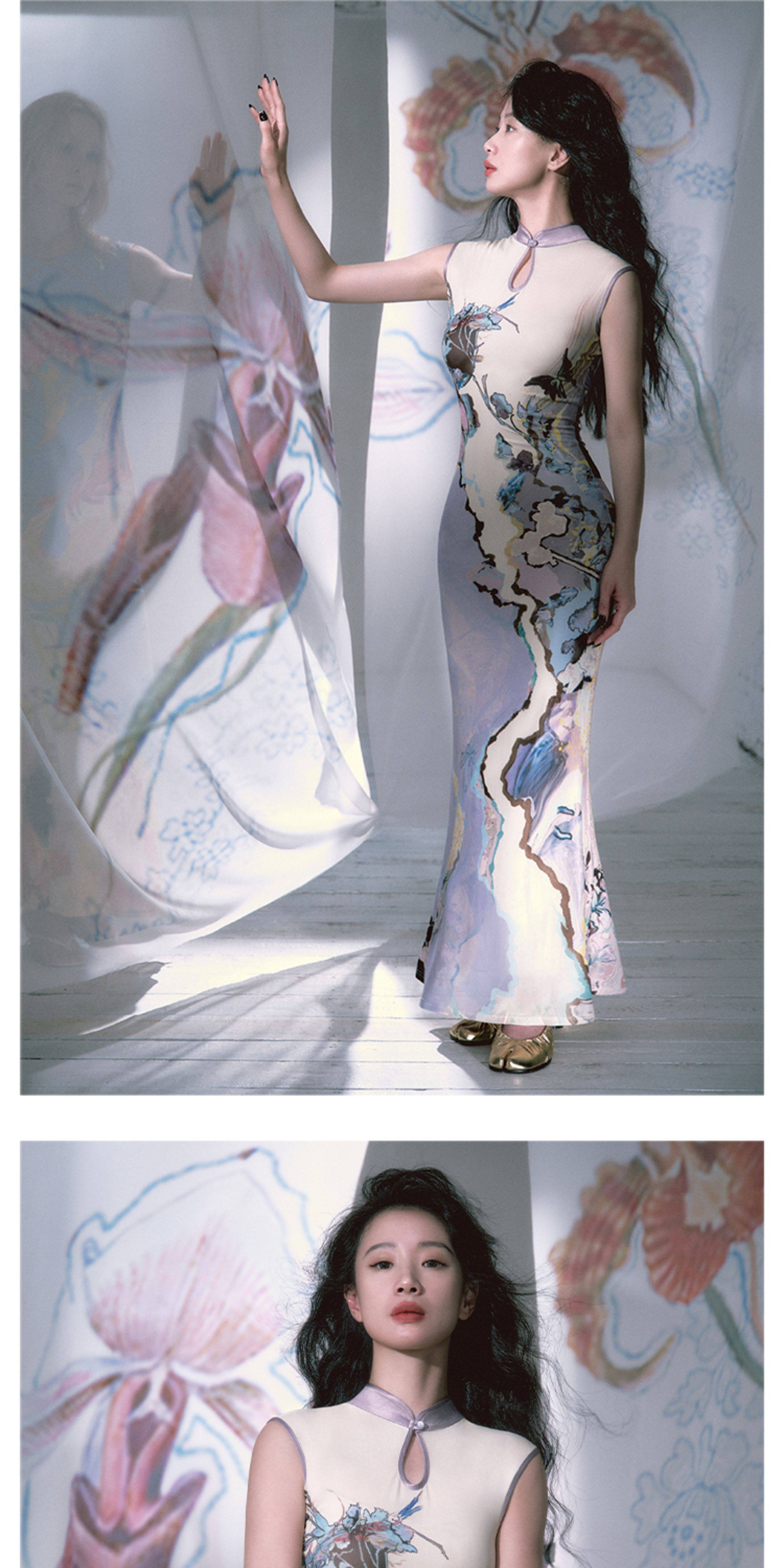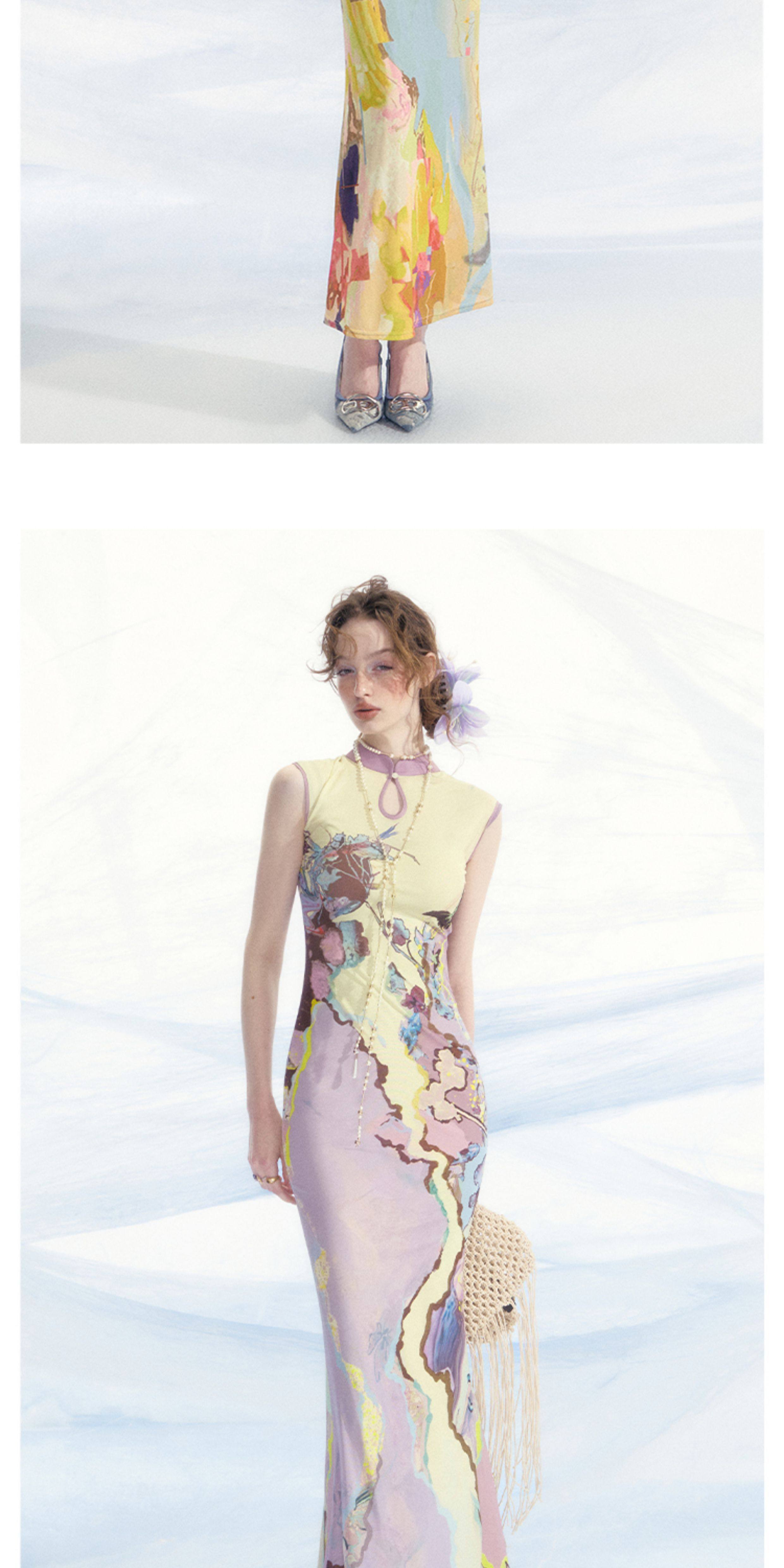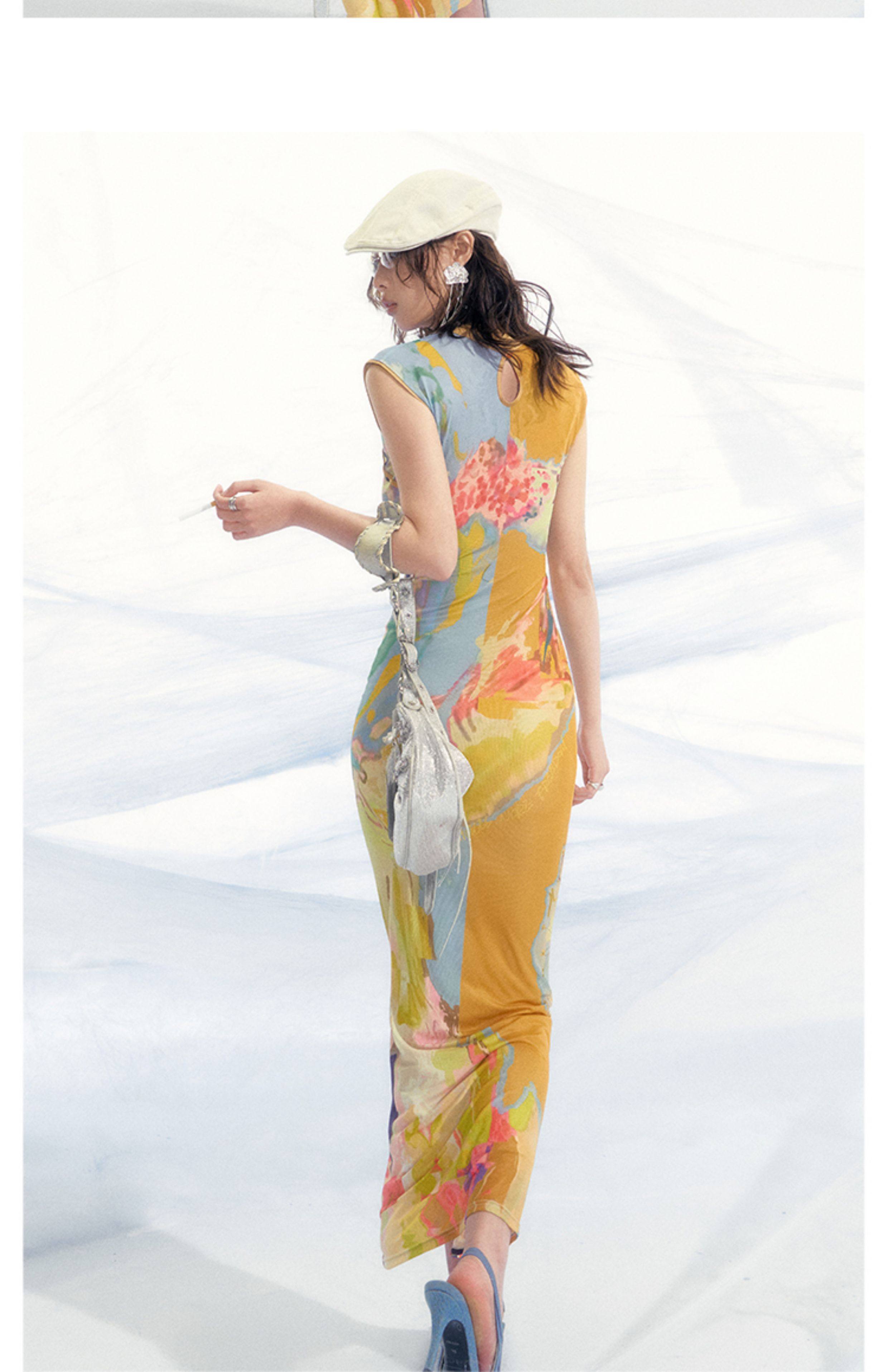 [Same Style as Li Meng] Ofakiva “Roman Poetry” New Chinese-Style Printed Cheongsam Dress Women's Tank Top Long Dress