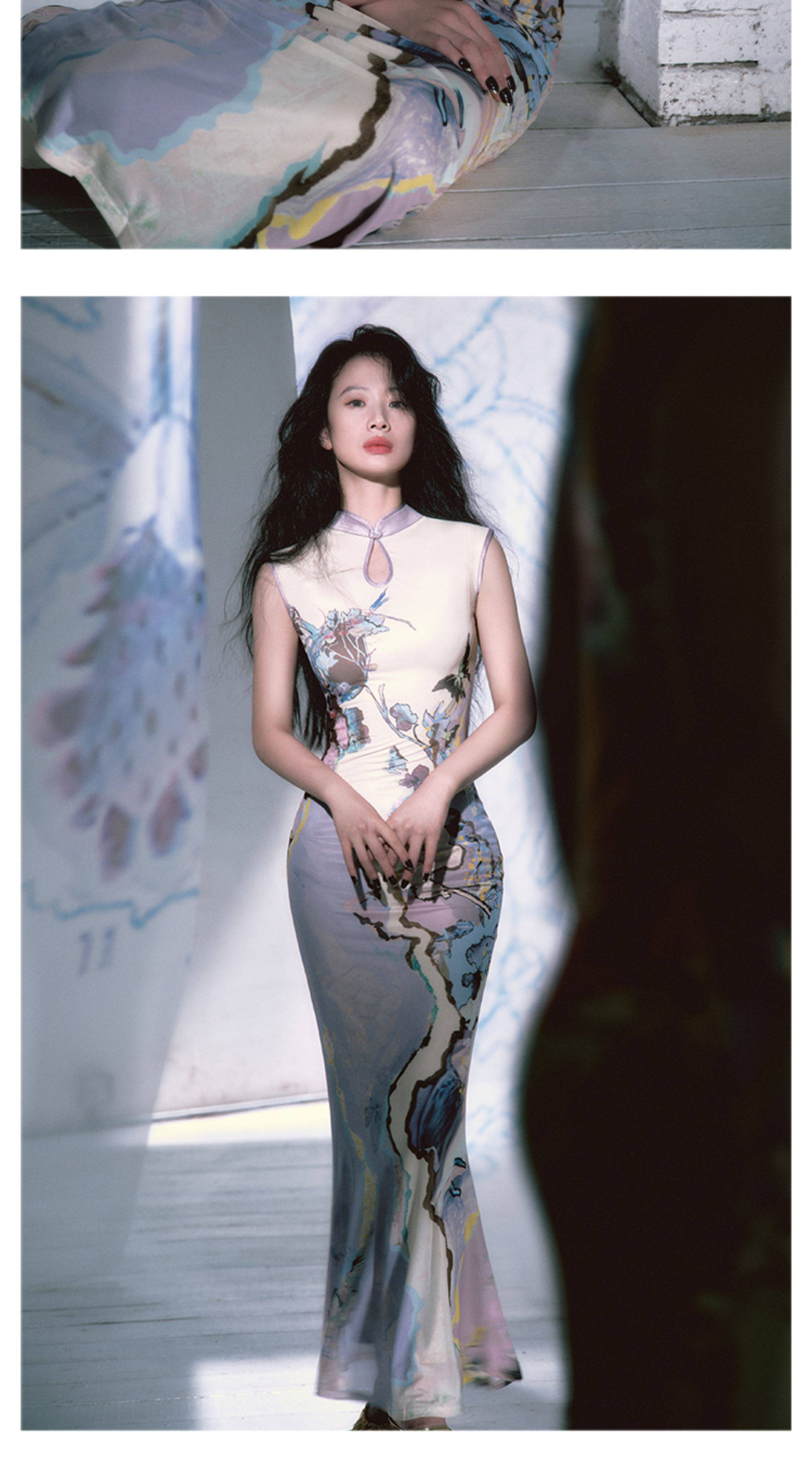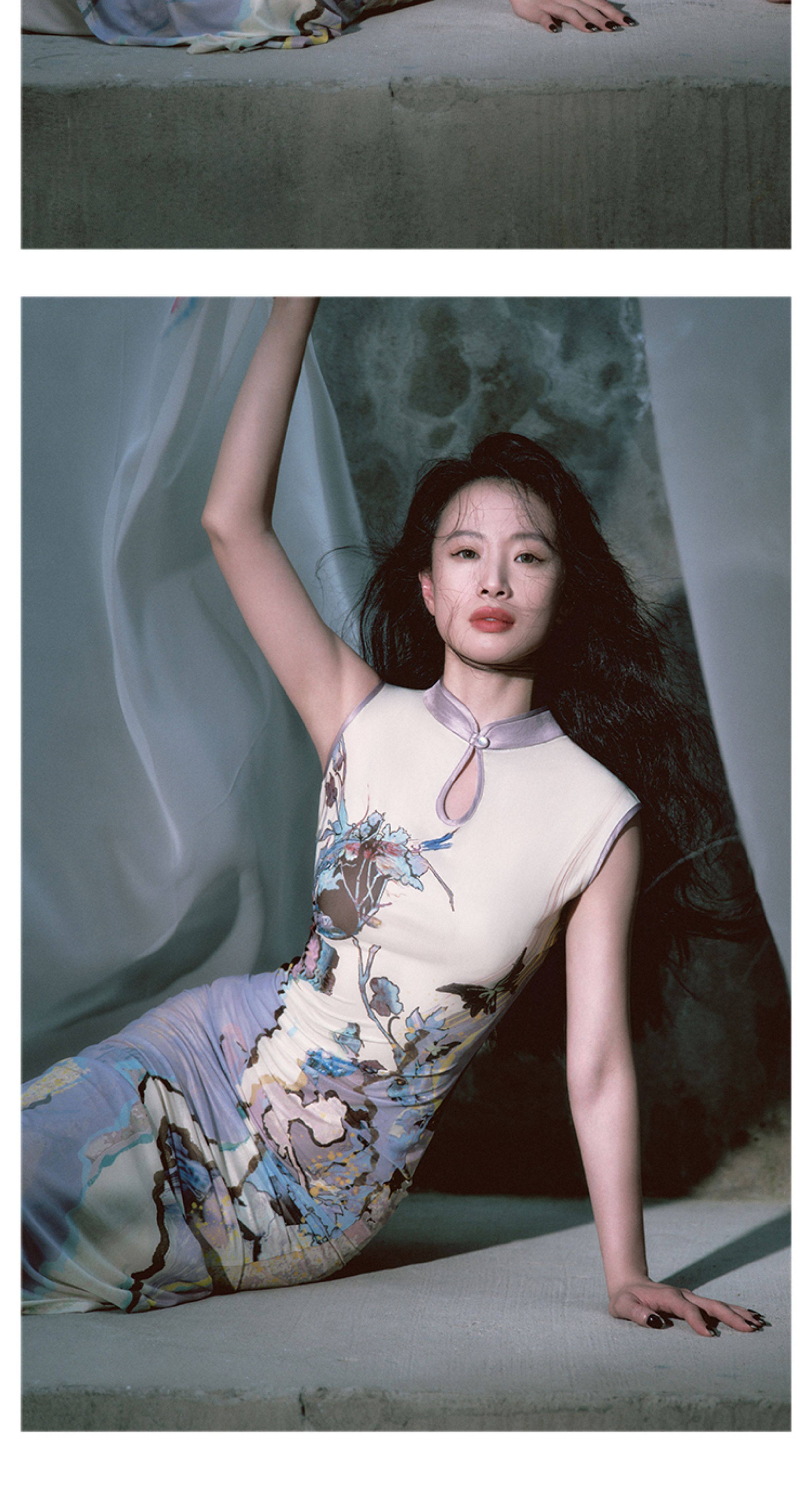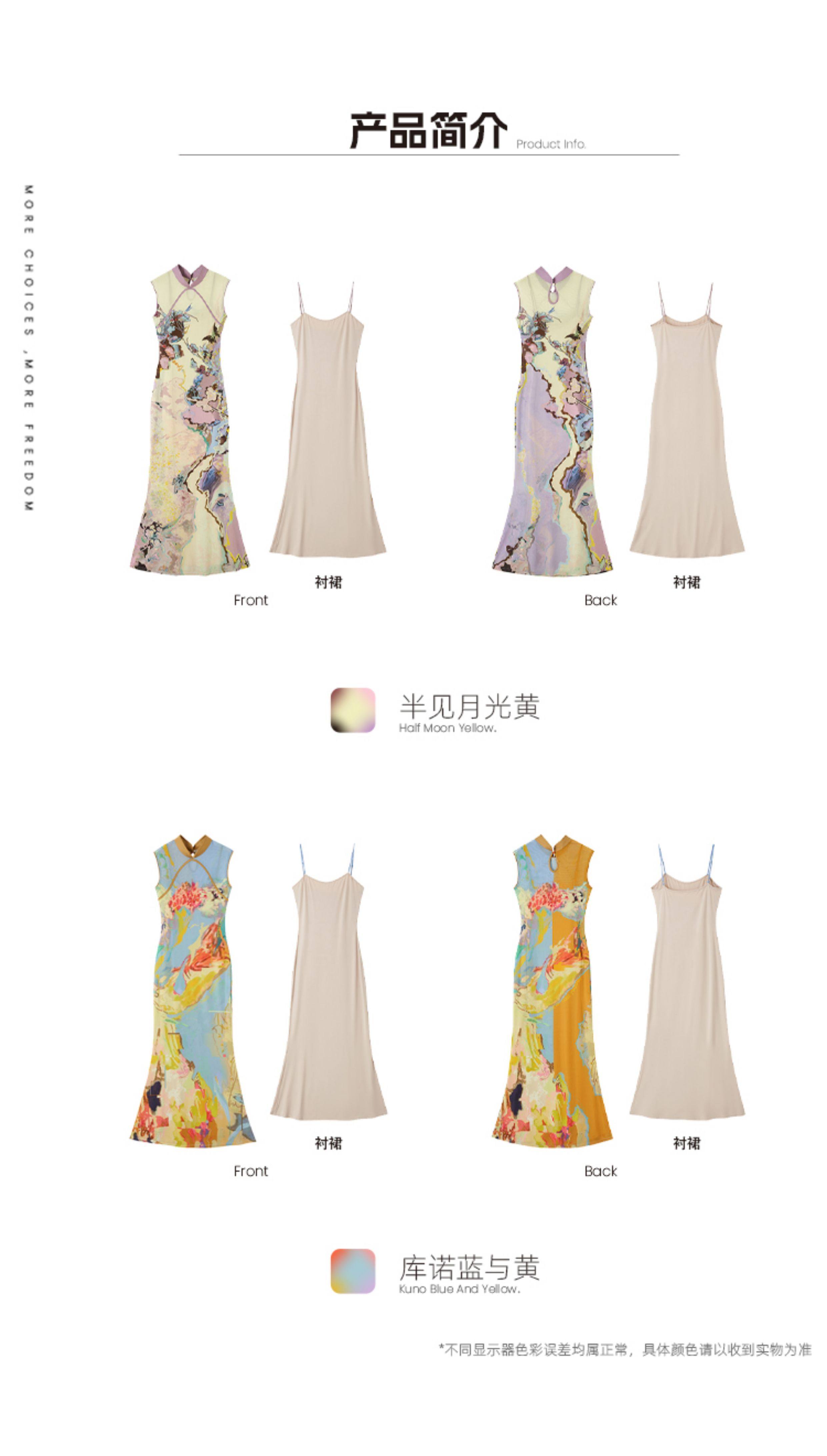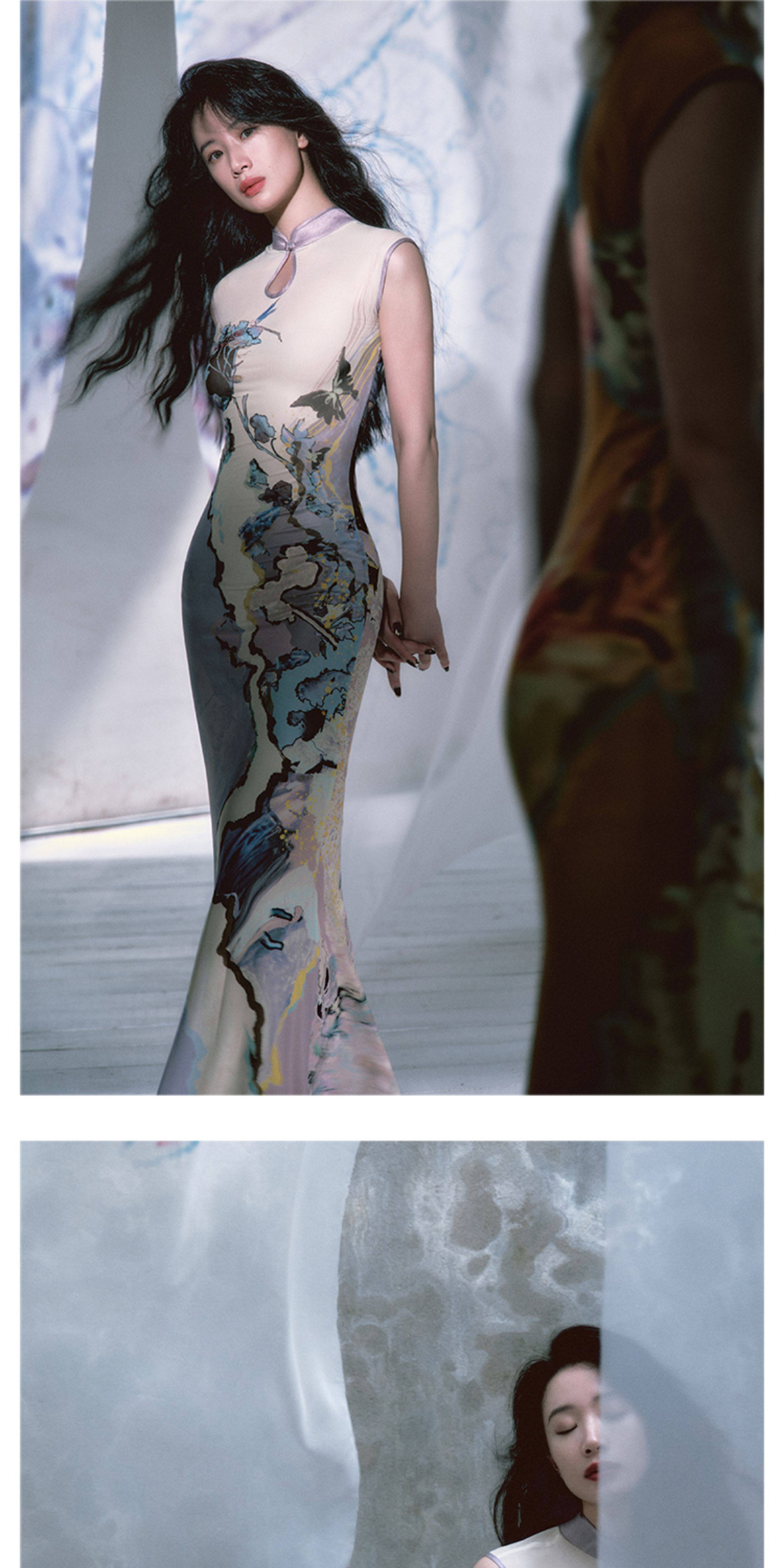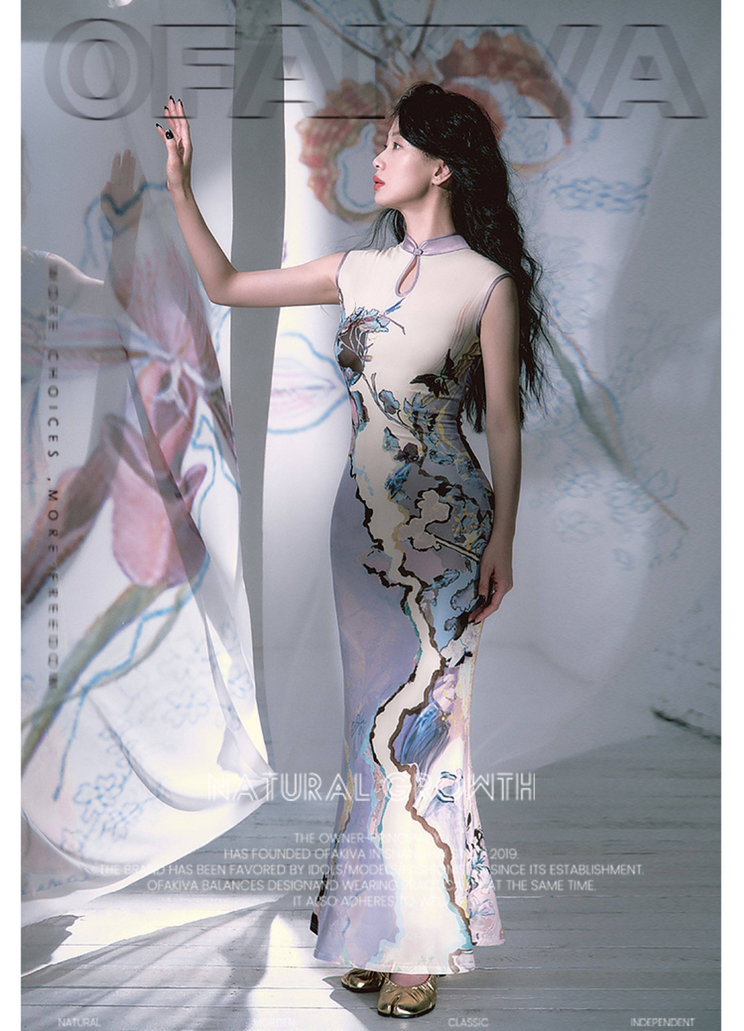 [Same Style as Li Meng] Ofakiva “Roman Poetry” New Chinese-Style Printed Cheongsam Dress Women's Tank Top Long Dress