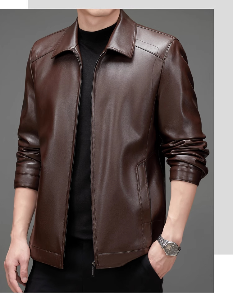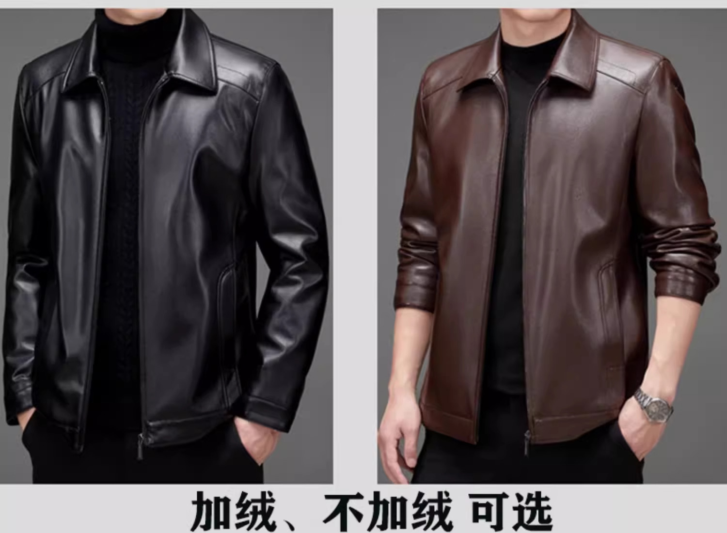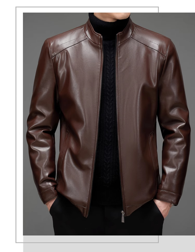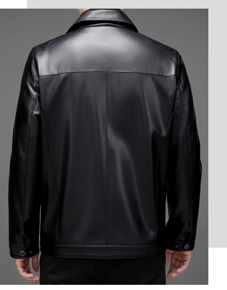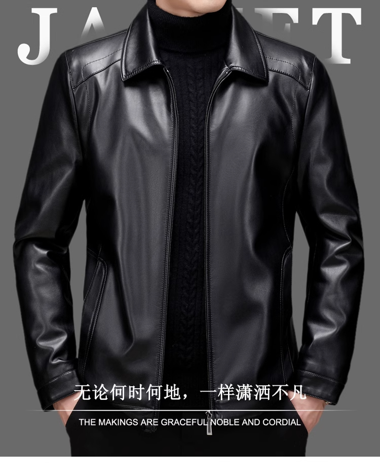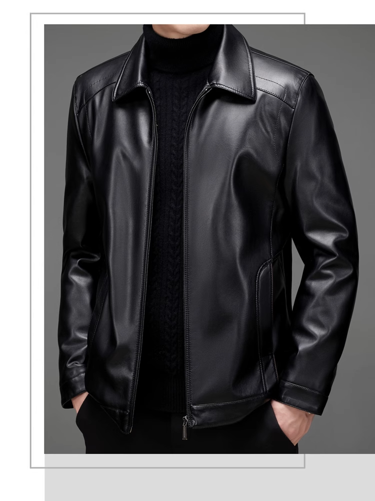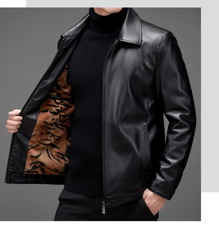 Pierre Cardin Genuine Leather Jacket for Men, Soft Leather Autumn and Winter Fleece-Lined Thickened Sheepskin Coat for Middle-Aged and Elderly Fathers