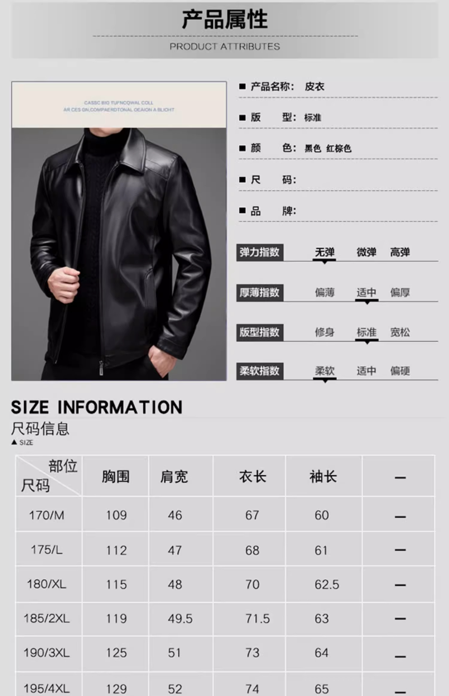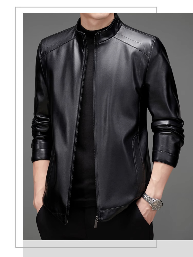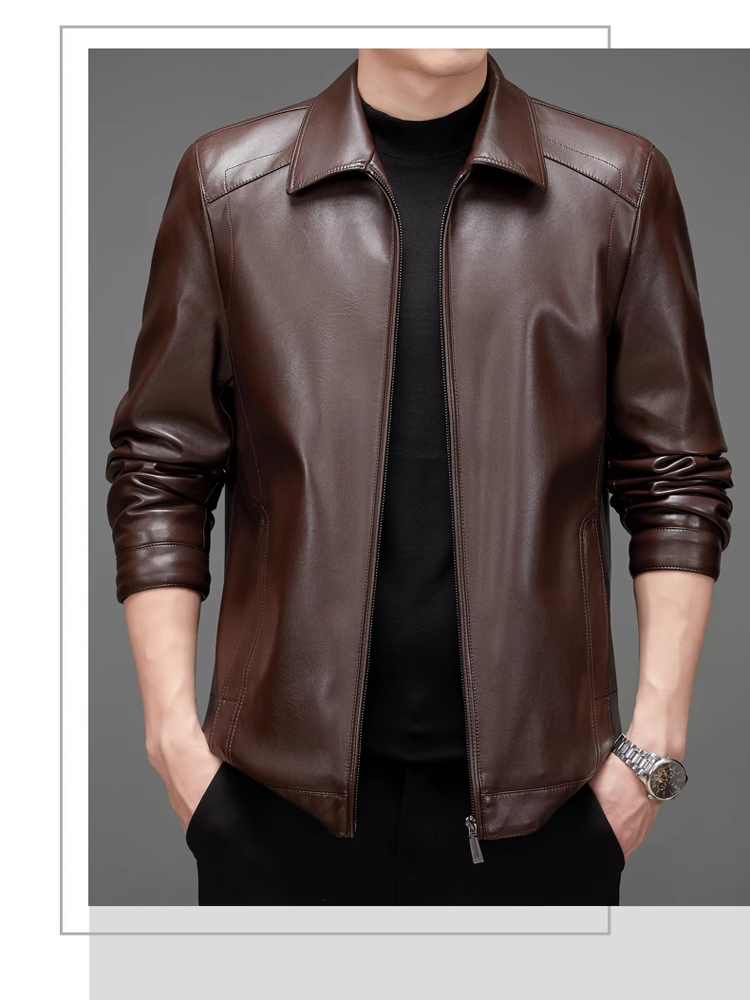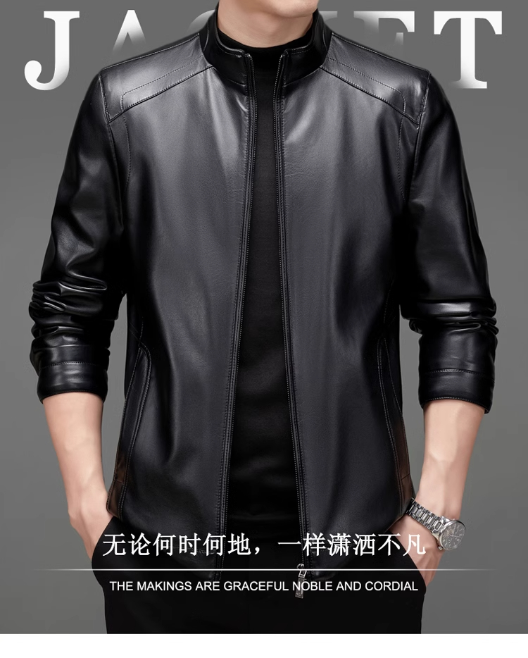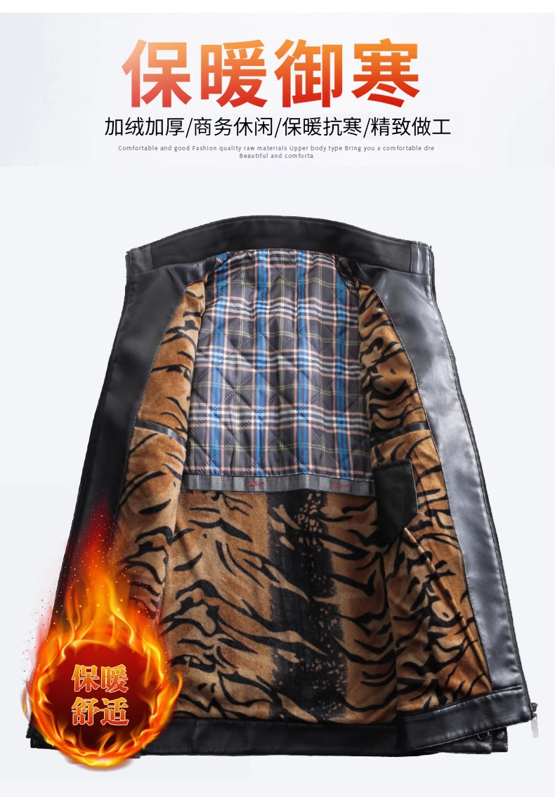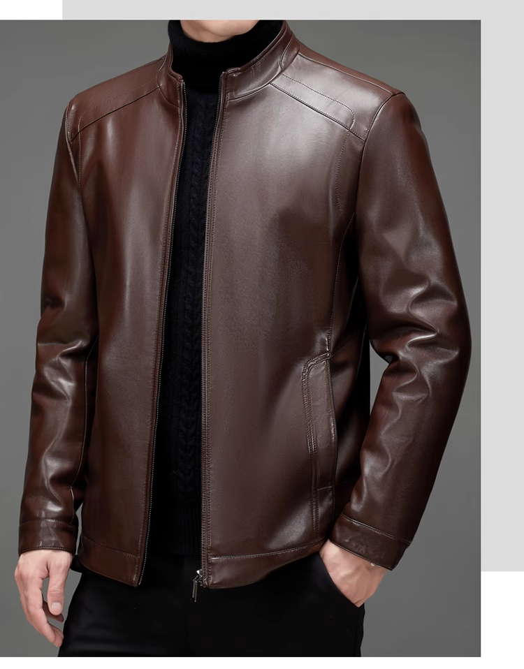 Pierre Cardin Genuine Leather Jacket for Men, Soft Leather Autumn and Winter Fleece-Lined Thickened Sheepskin Coat for Middle-Aged and Elderly Fathers