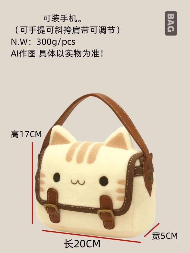 Cute Cat Plush Small Bag for Women 2026 New High-Value Cartoon Plush Doll Clutch Bag for Women