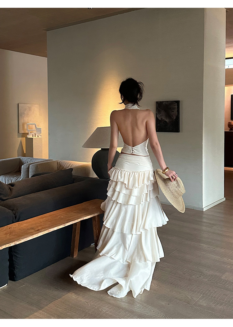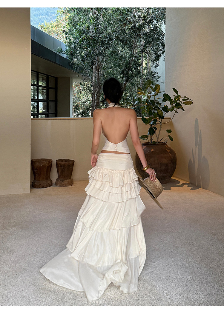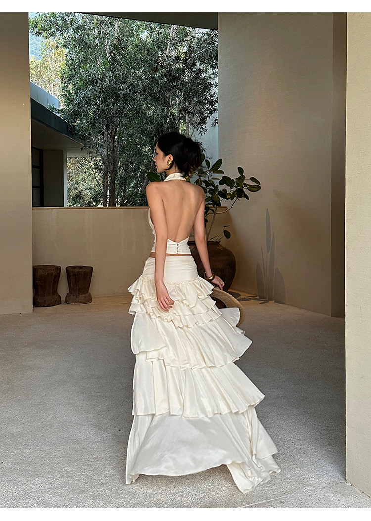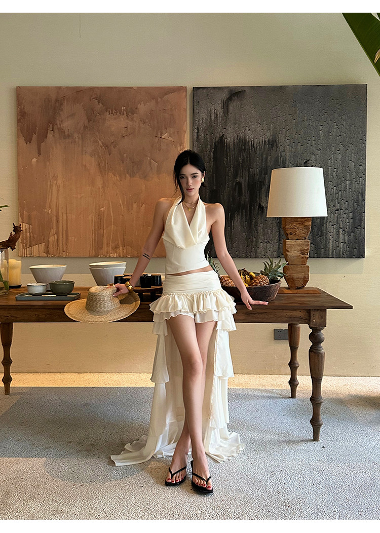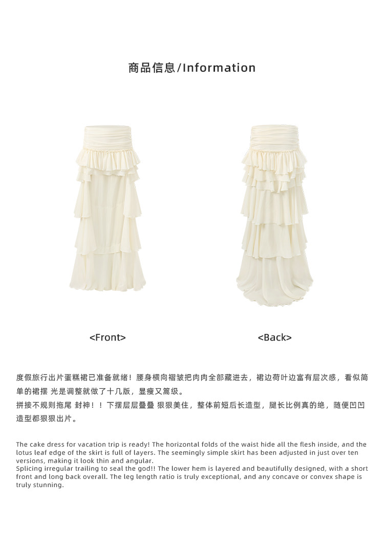 Rovente Apricot Ruffled Skirt for Women, Summer Design, Low-Waisted Cake Skirt, Sexy French Floor-Length Short Skirt
