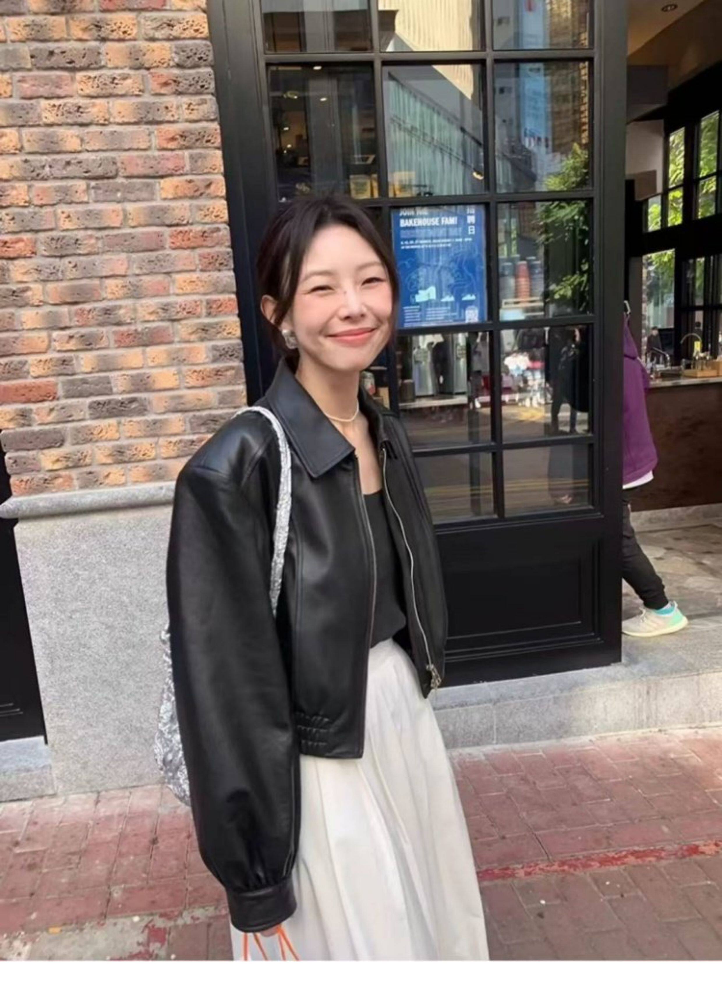 2026 New Spring and Autumn Popular Leather Jacket for Women, Short Zipper American Retro Hong Kong Style Black Jacket for Petite Women