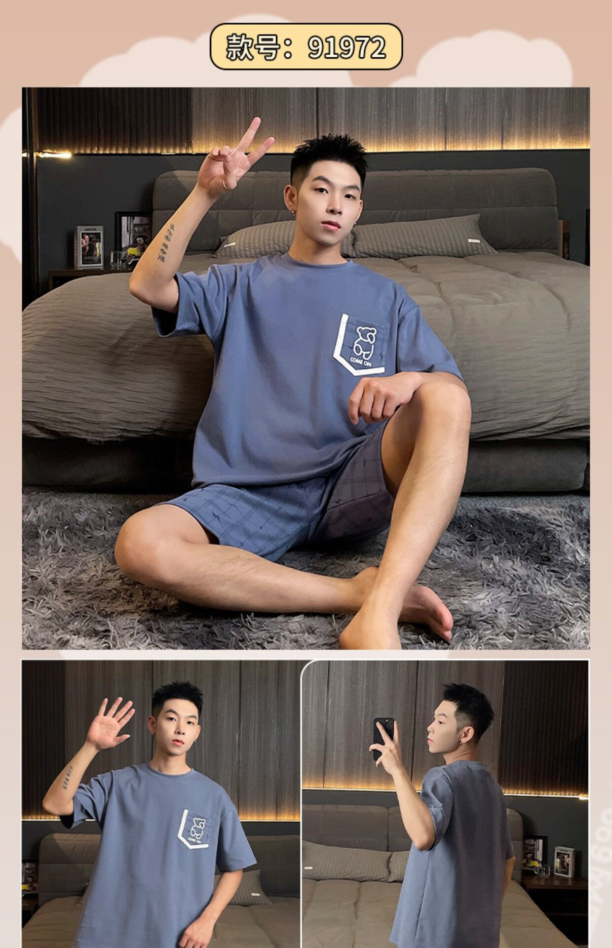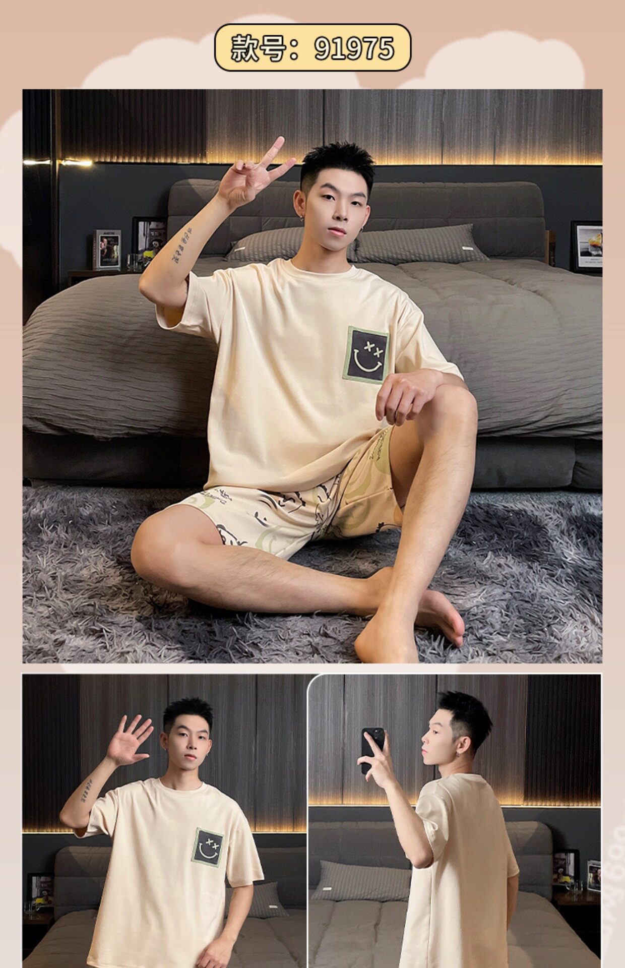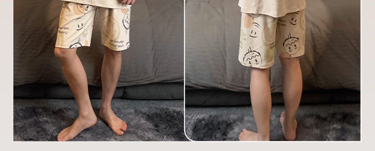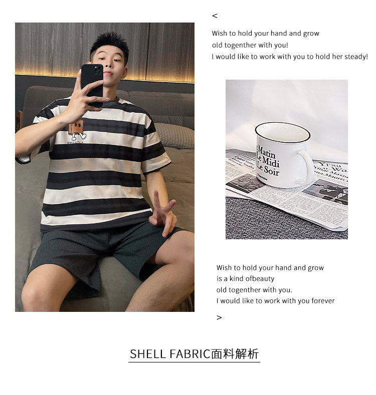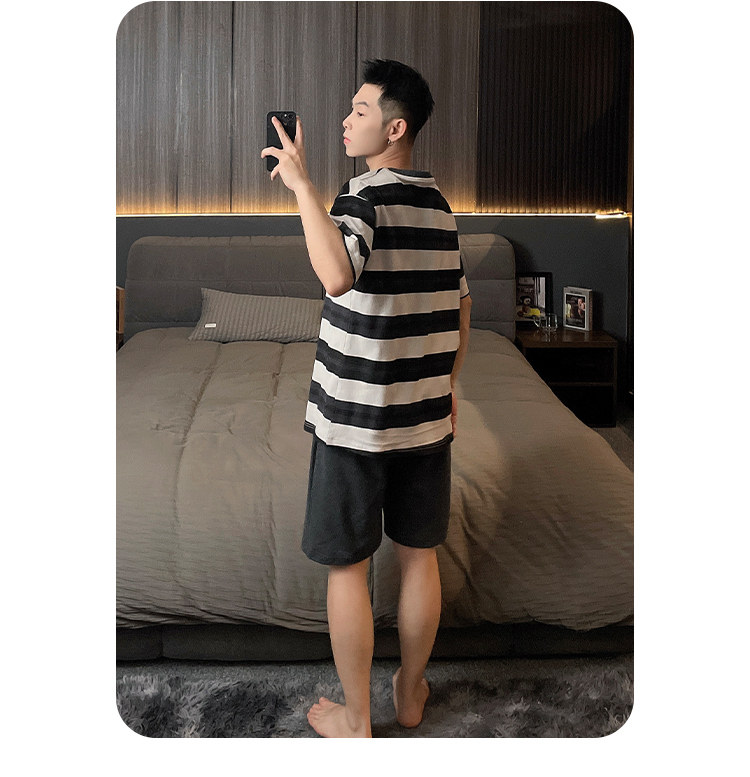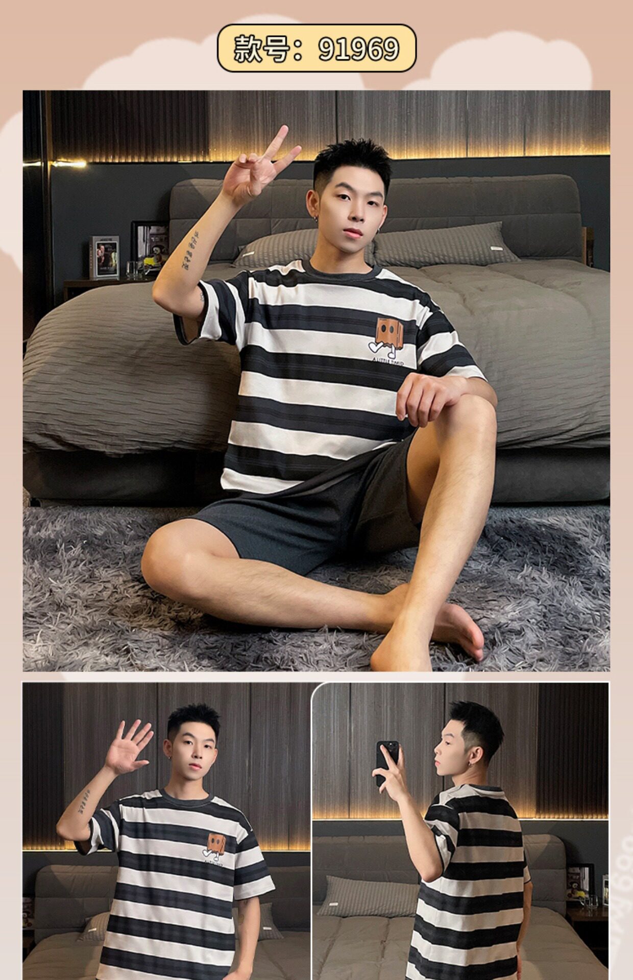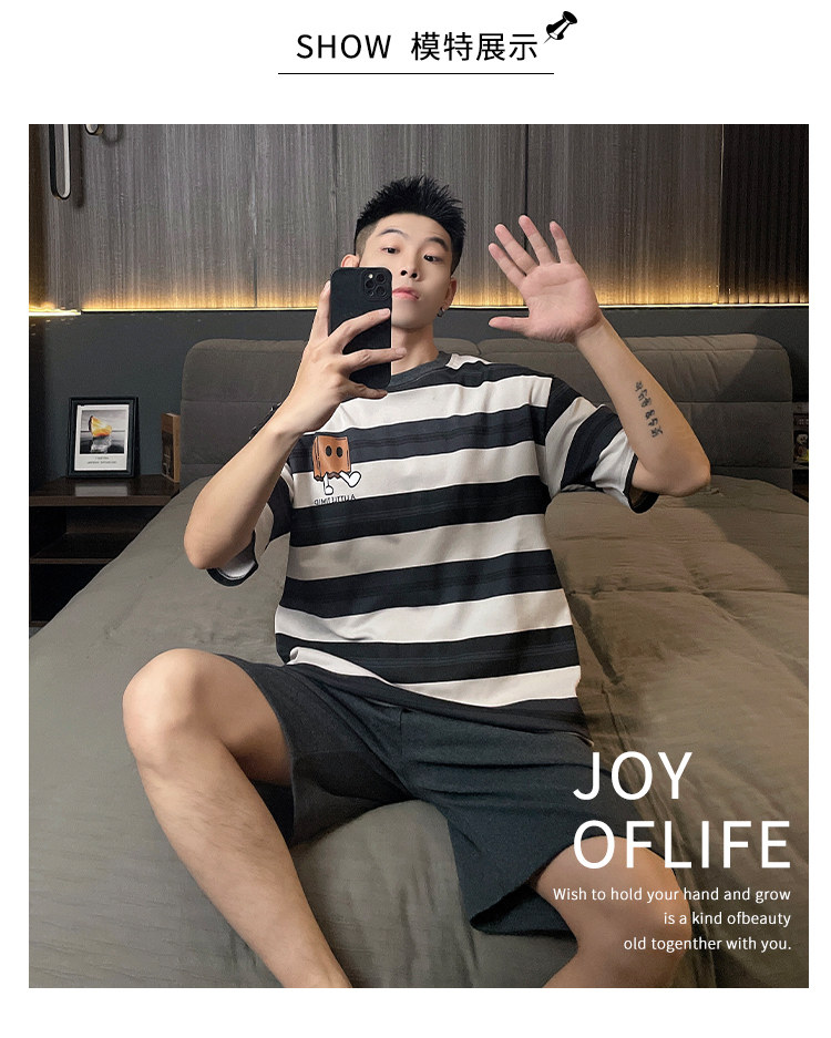 Summer New Men's Pajamas, Large Size, Can Be Worn Outside, Striped Cartoon Short-Sleeved Shorts, Loose Casual Home Wear Set
