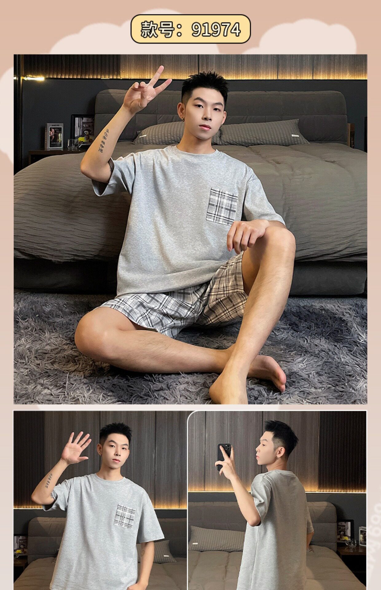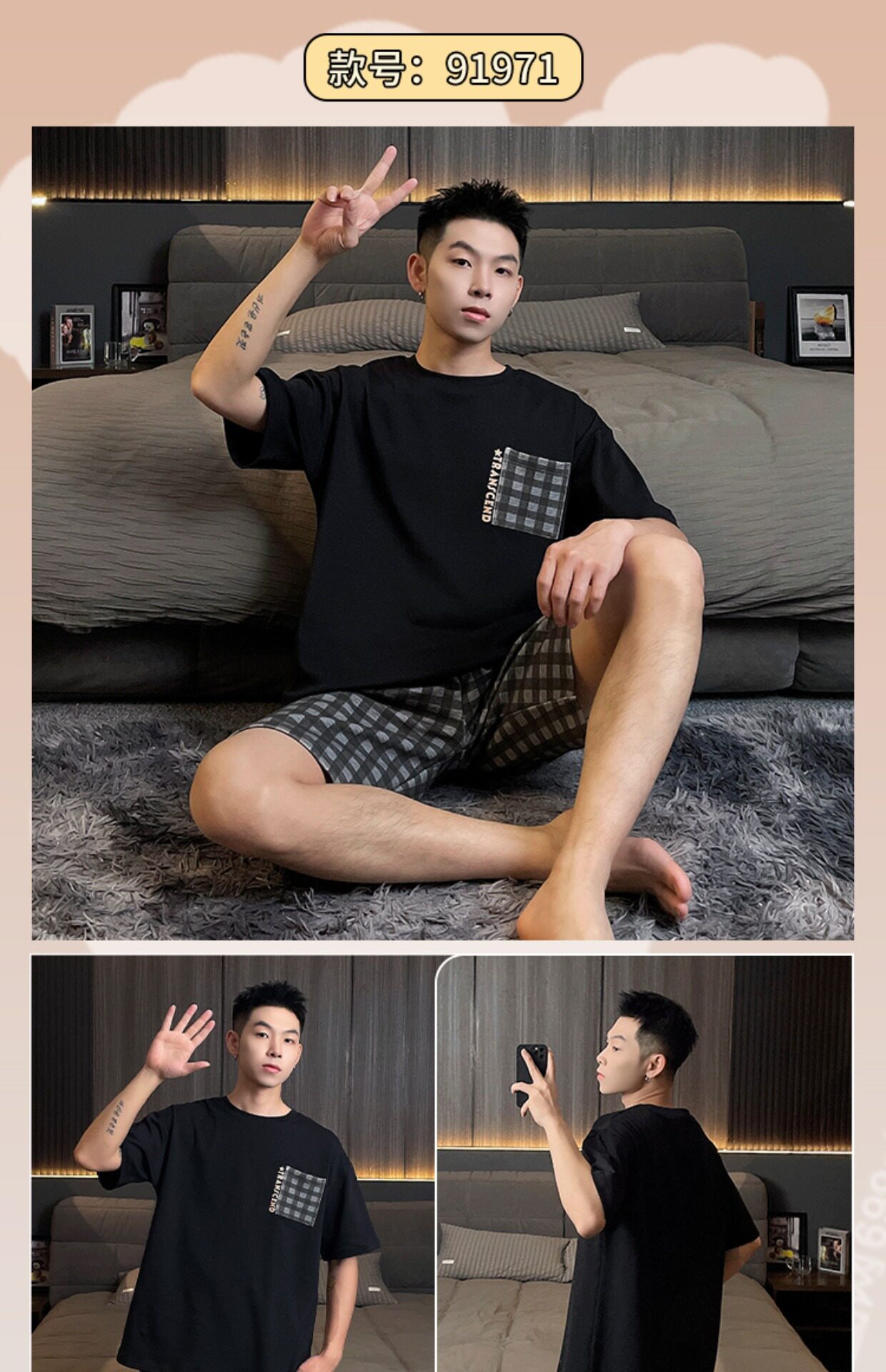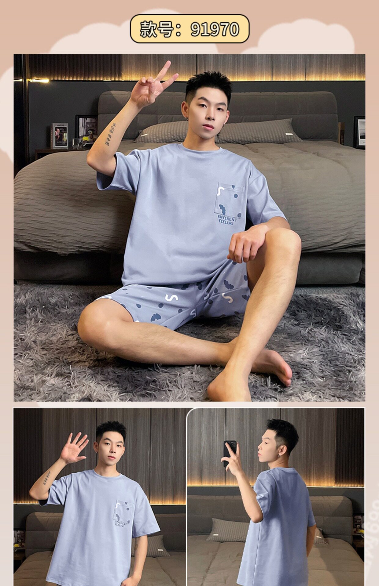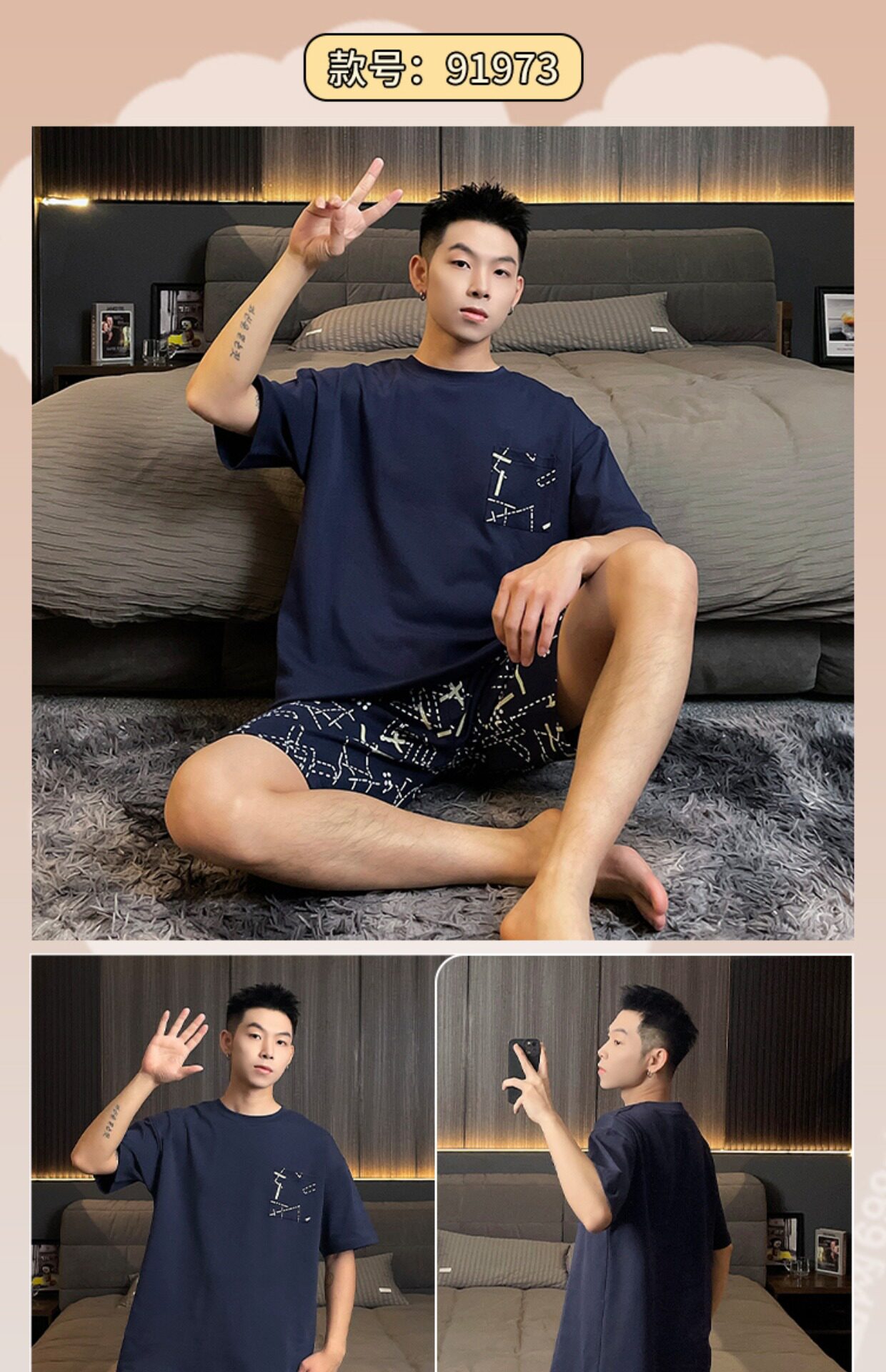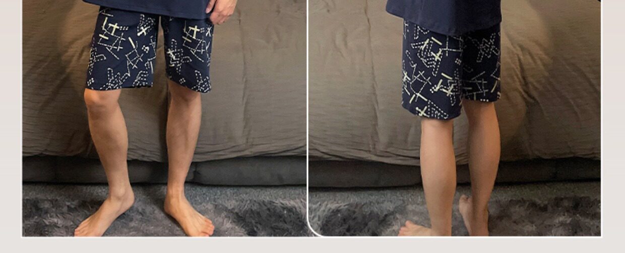 Summer New Men's Pajamas, Large Size, Can Be Worn Outside, Striped Cartoon Short-Sleeved Shorts, Loose Casual Home Wear Set