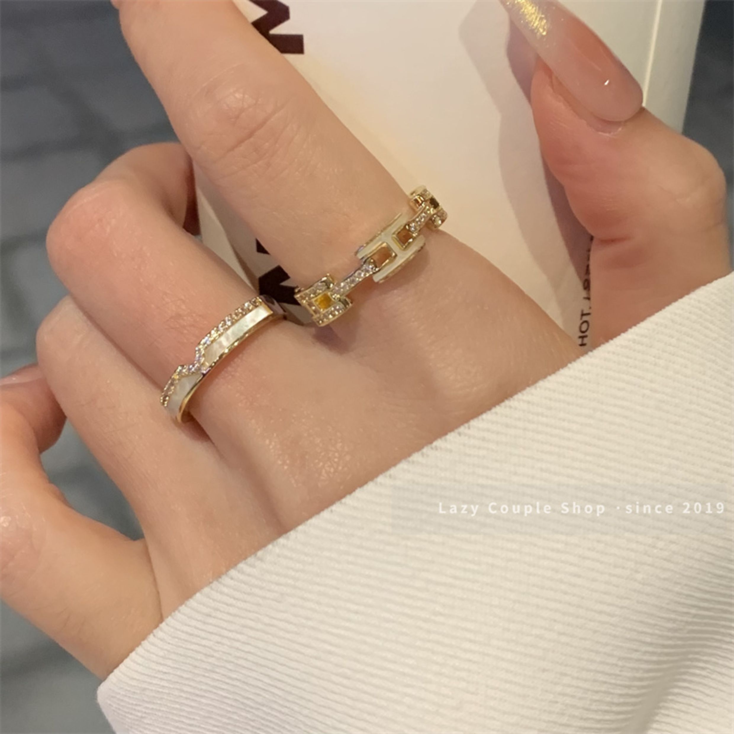 Hot Item! Light Luxury Socialite Shell Letter Exquisite Stacking Rings for Women ins Niche High-End Fashion Rings
