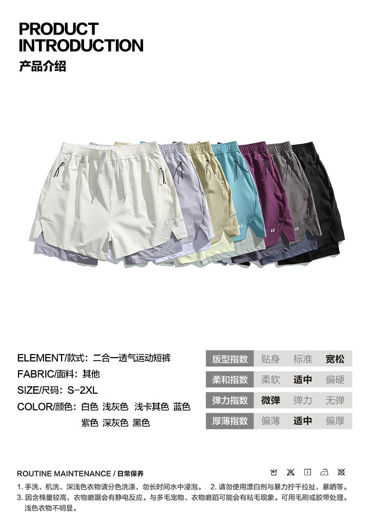 Gpstudio Summer Outdoor Two-In-One Double-Layer Running Sports Shorts for Men, Anti-Exposure, Quick-Drying Cycling Training Pants