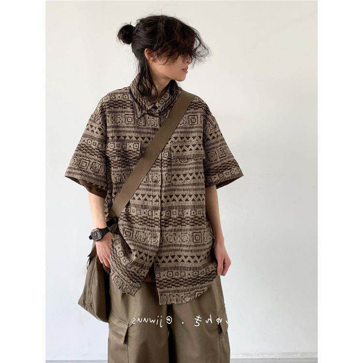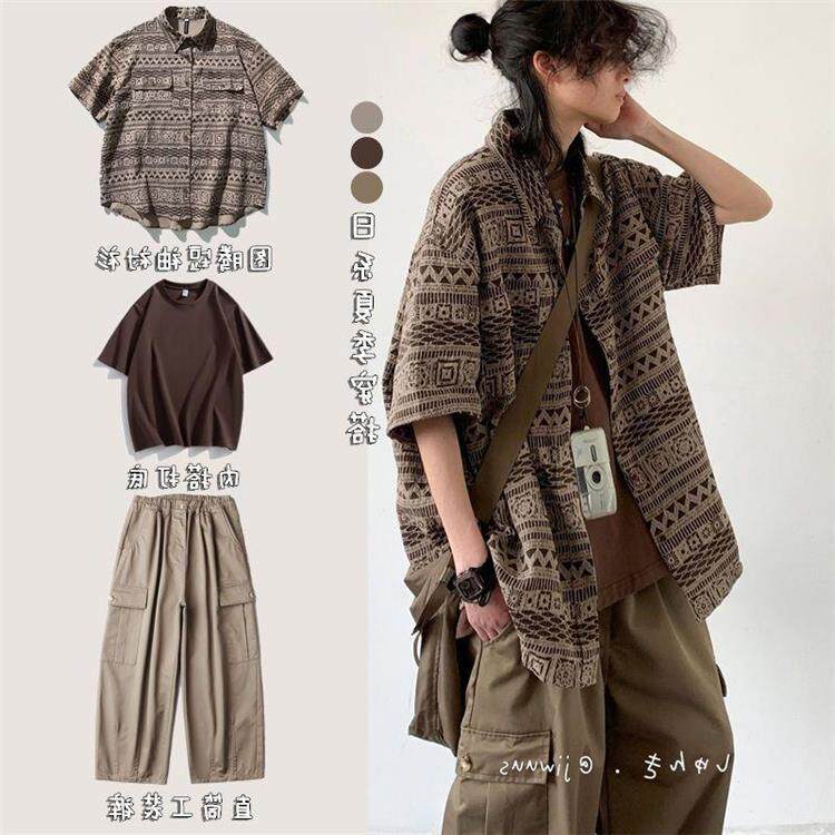 Summer New Japanese Retro Style Outfit Complete Set Vintage-Inspired Short-Sleeve Shirt Unisex Casual Shirt Jacket