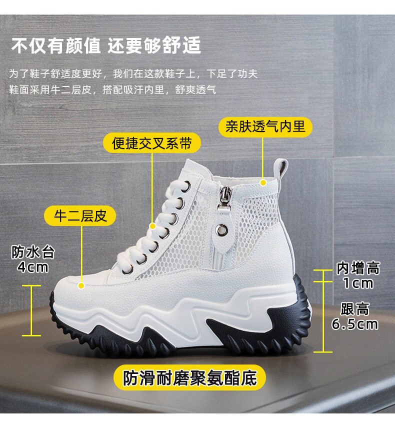 Hong Kong High-Top Dad Shoes for Women, 2025 Winter, Fleece-Lined, Zippered, Genuine Leather White Shoes, British Style, Height-Increasing Martin Boots