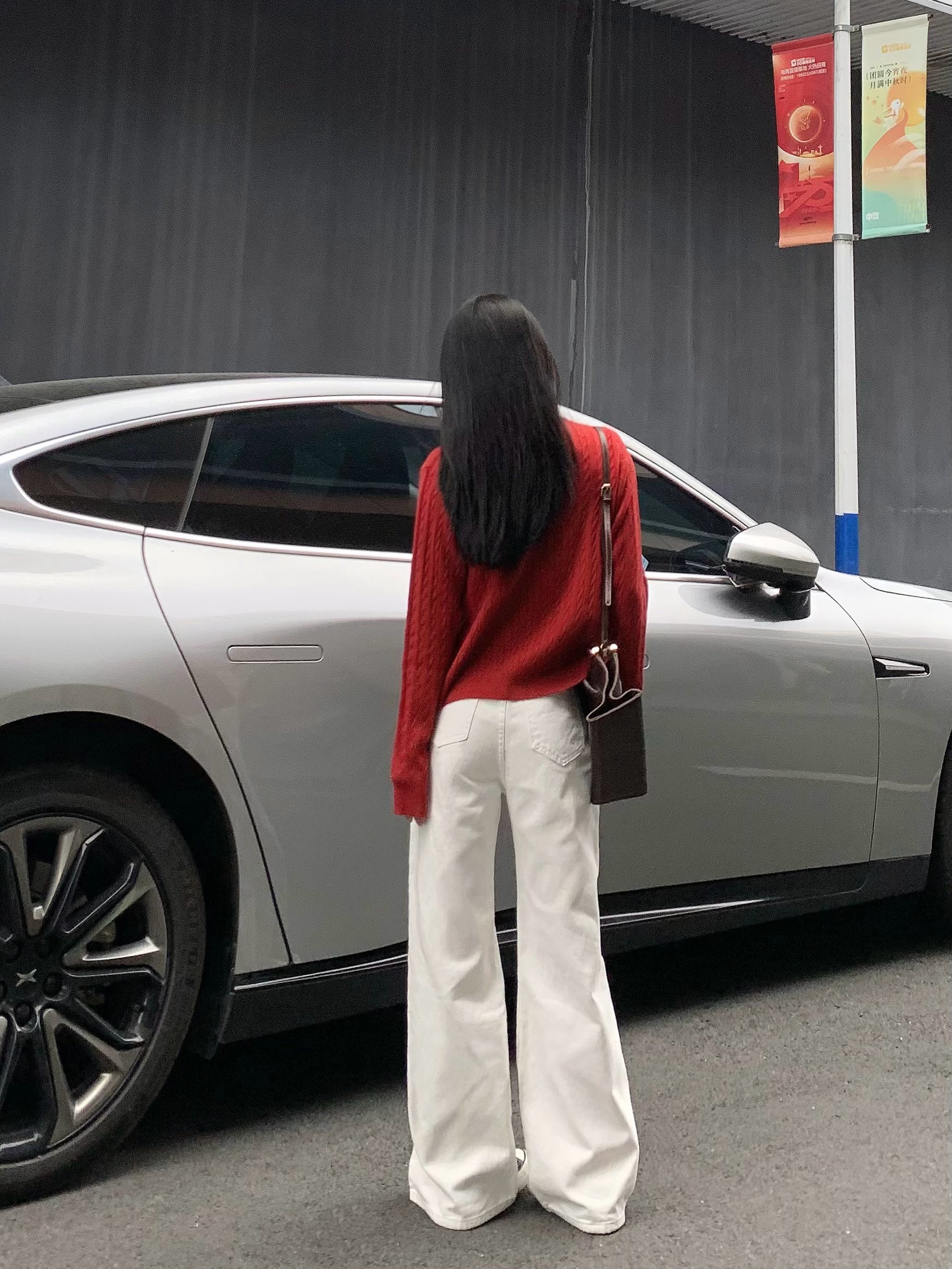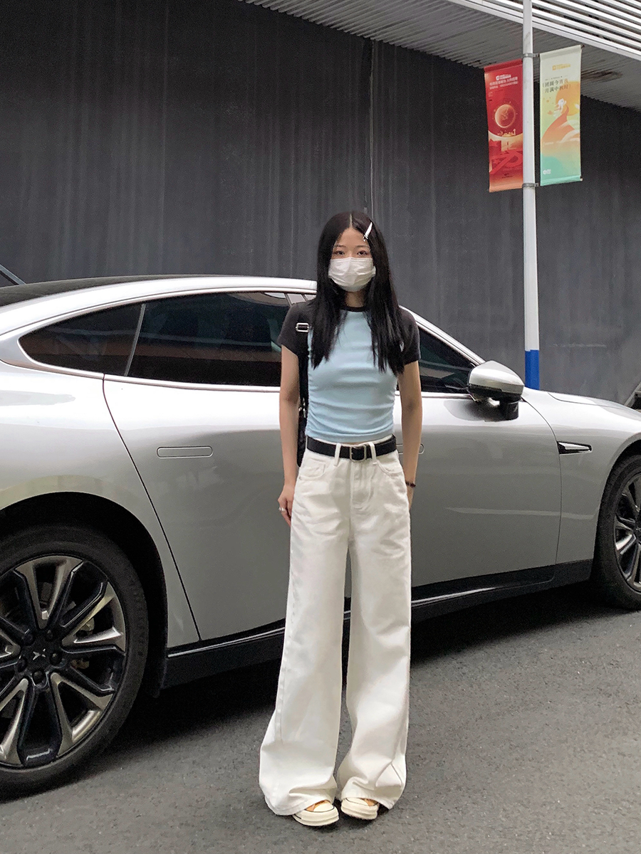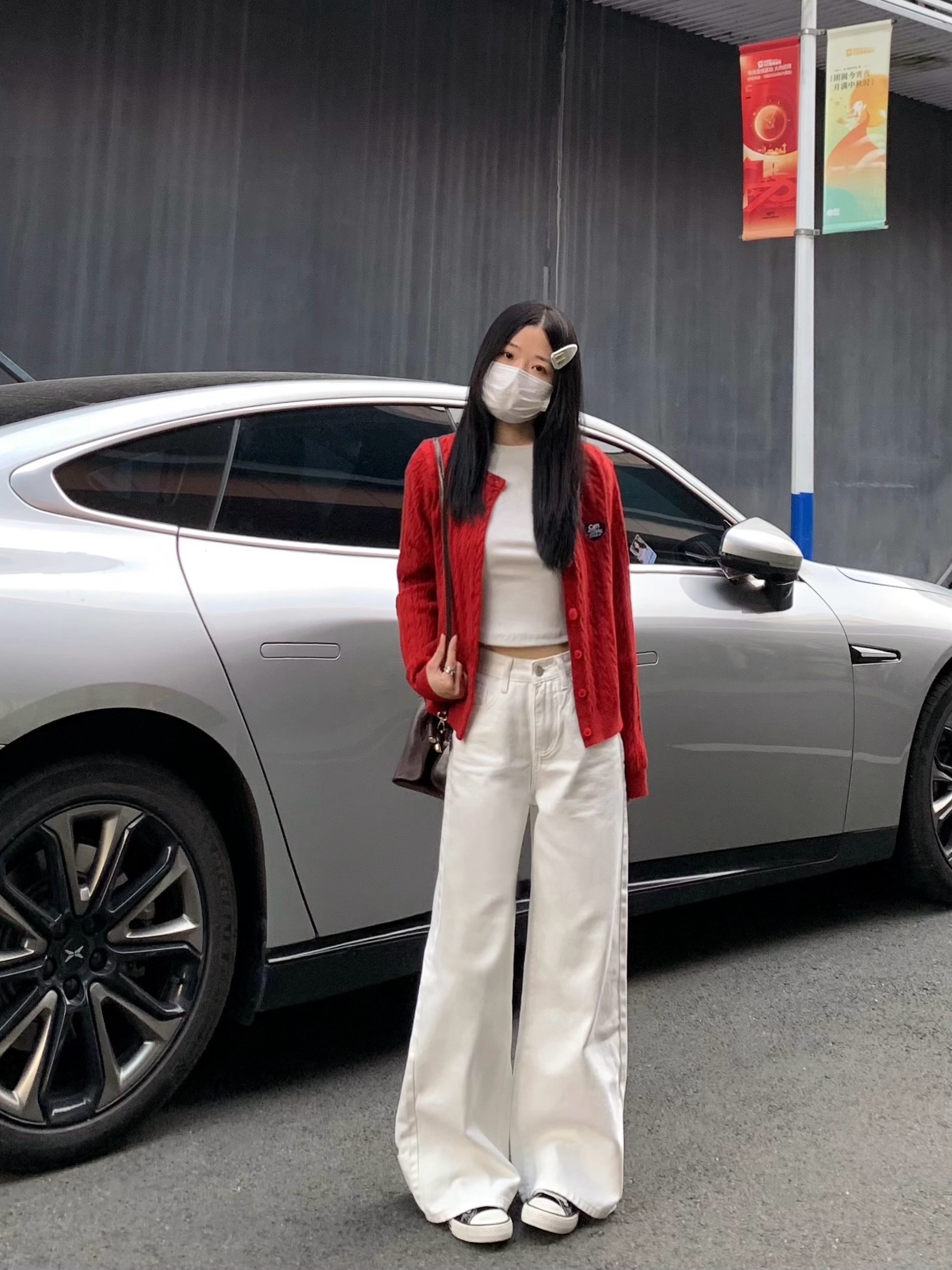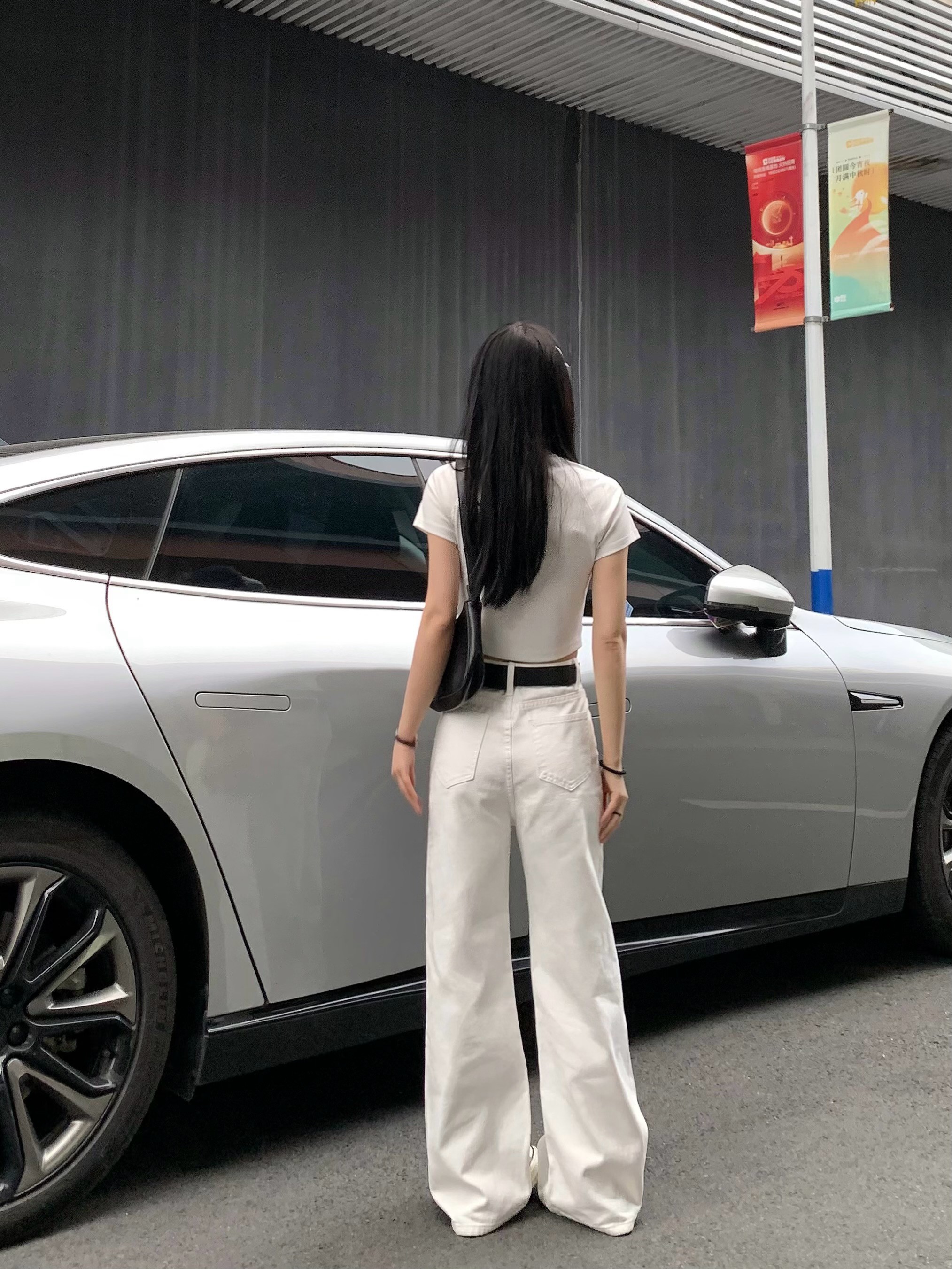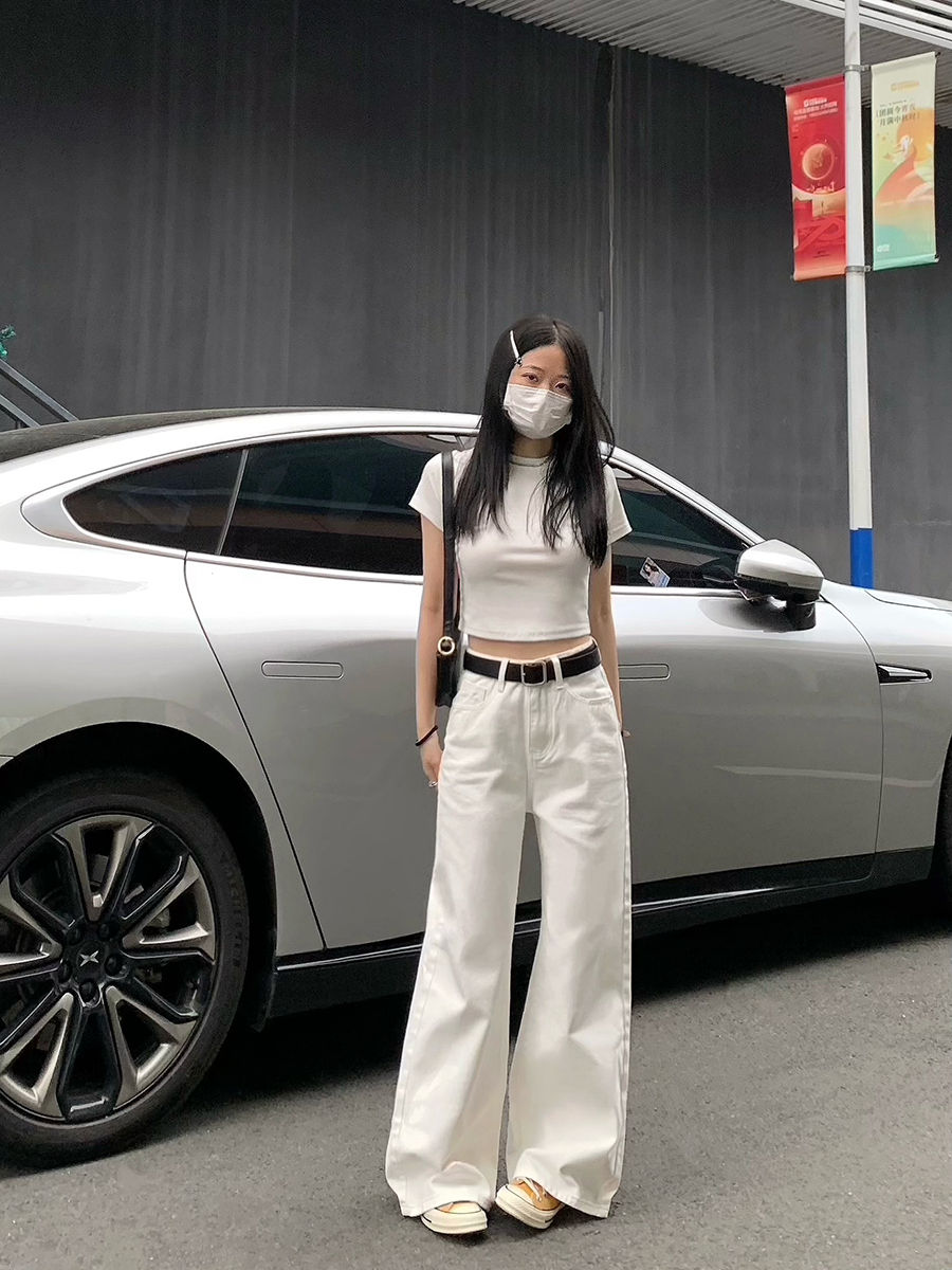 Chun Ge's White Wide-Leg Jeans for Women, 2025 Autumn and Winter New Style, High-Waisted, Loose, Slimming, Straight-Leg, Floor-Length Pants