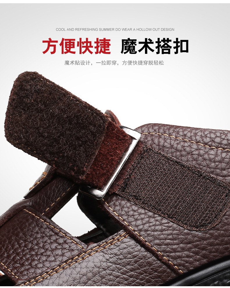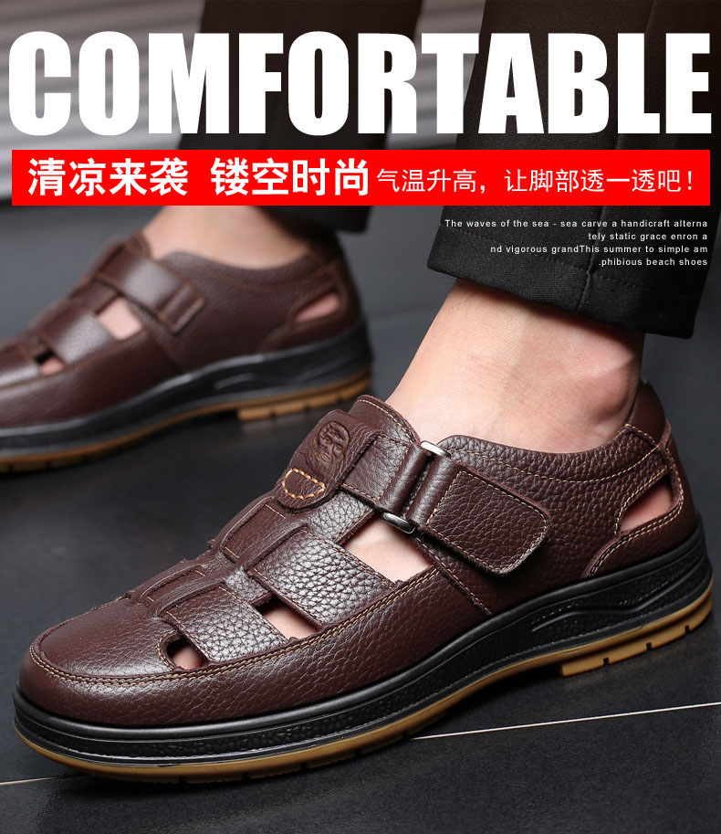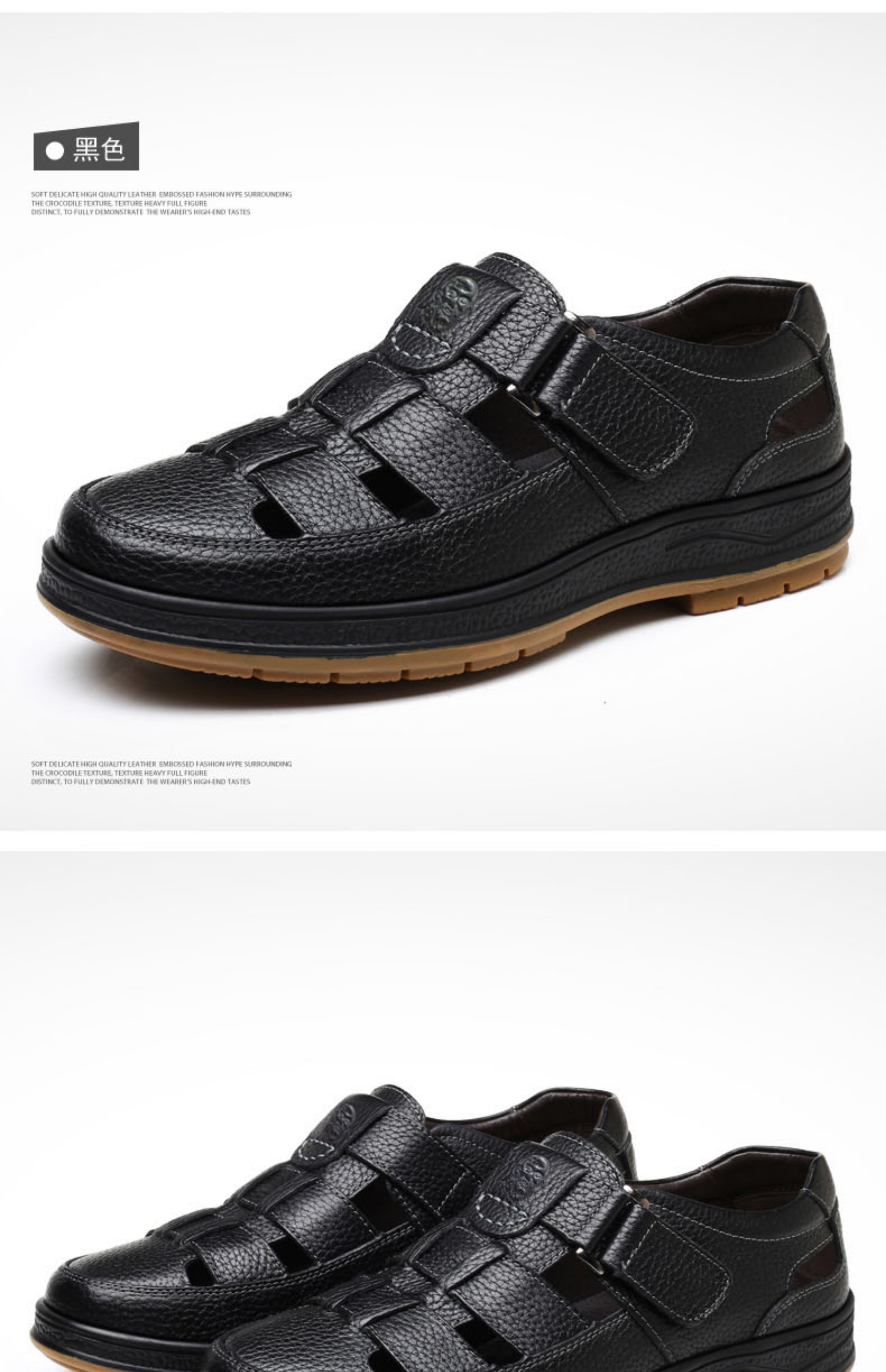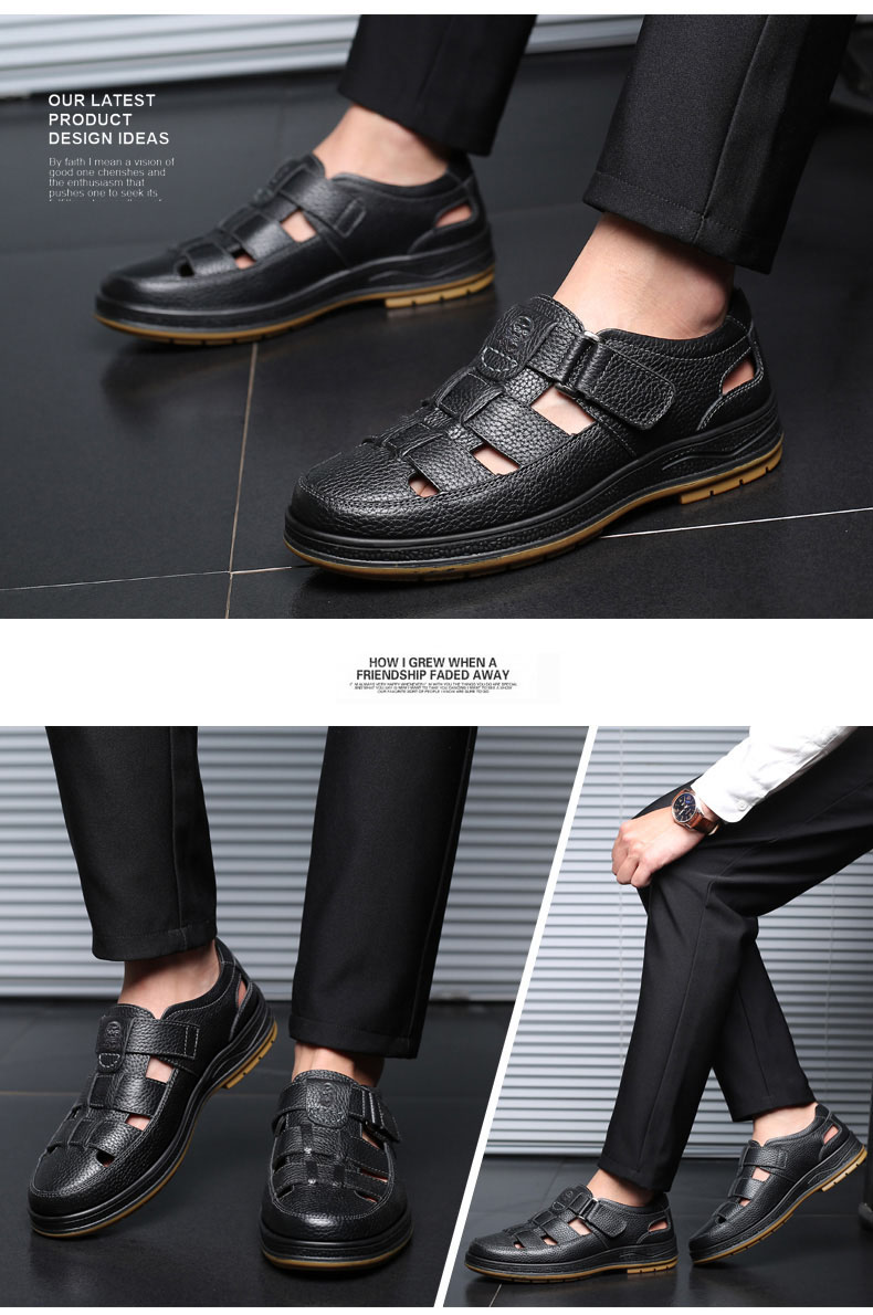 Elderly Men's 2025 Summer Size 45 Genuine Leather Casual Rubber Sole Hollow Breathable Dad's Hole Sandals for Men