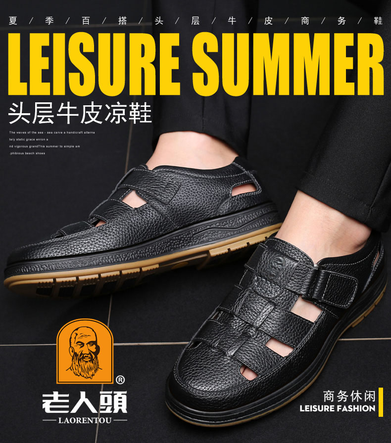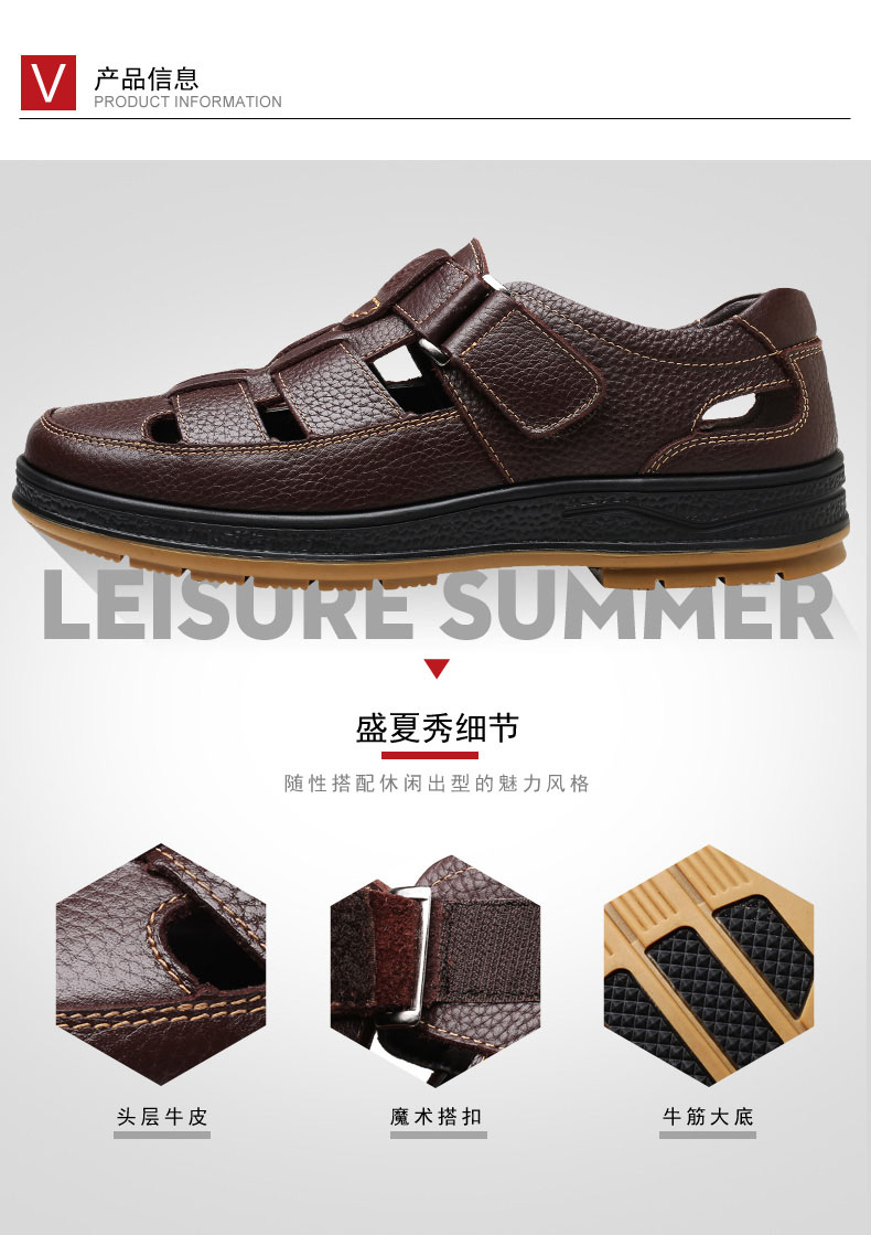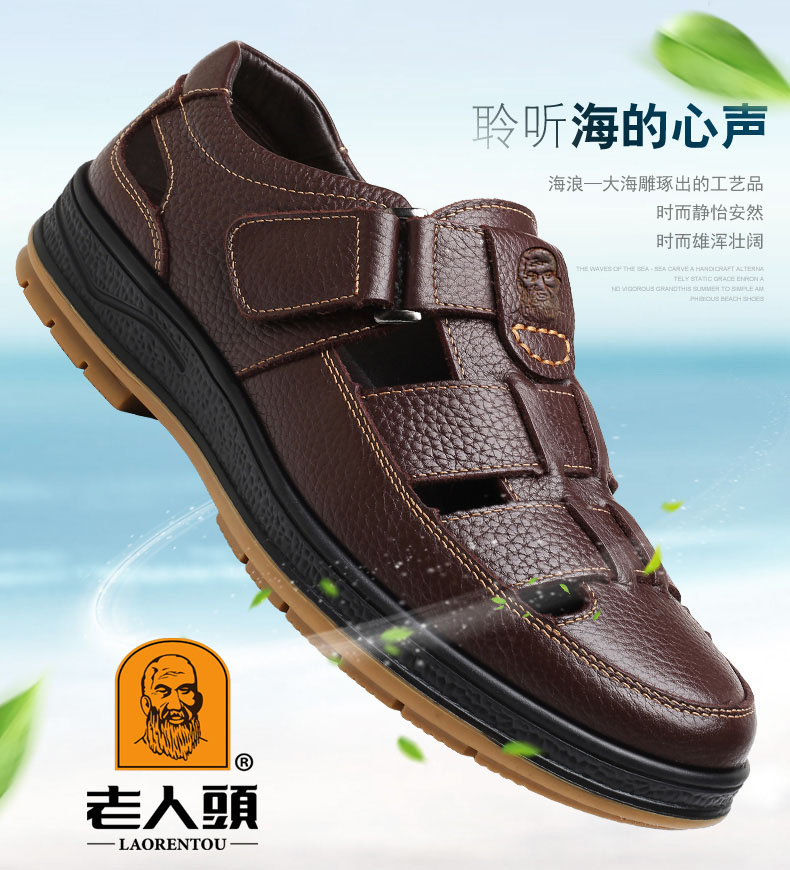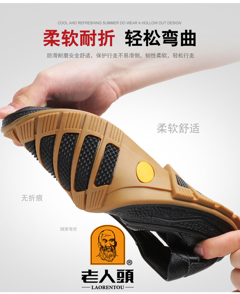 Elderly Men's 2025 Summer Size 45 Genuine Leather Casual Rubber Sole Hollow Breathable Dad's Hole Sandals for Men