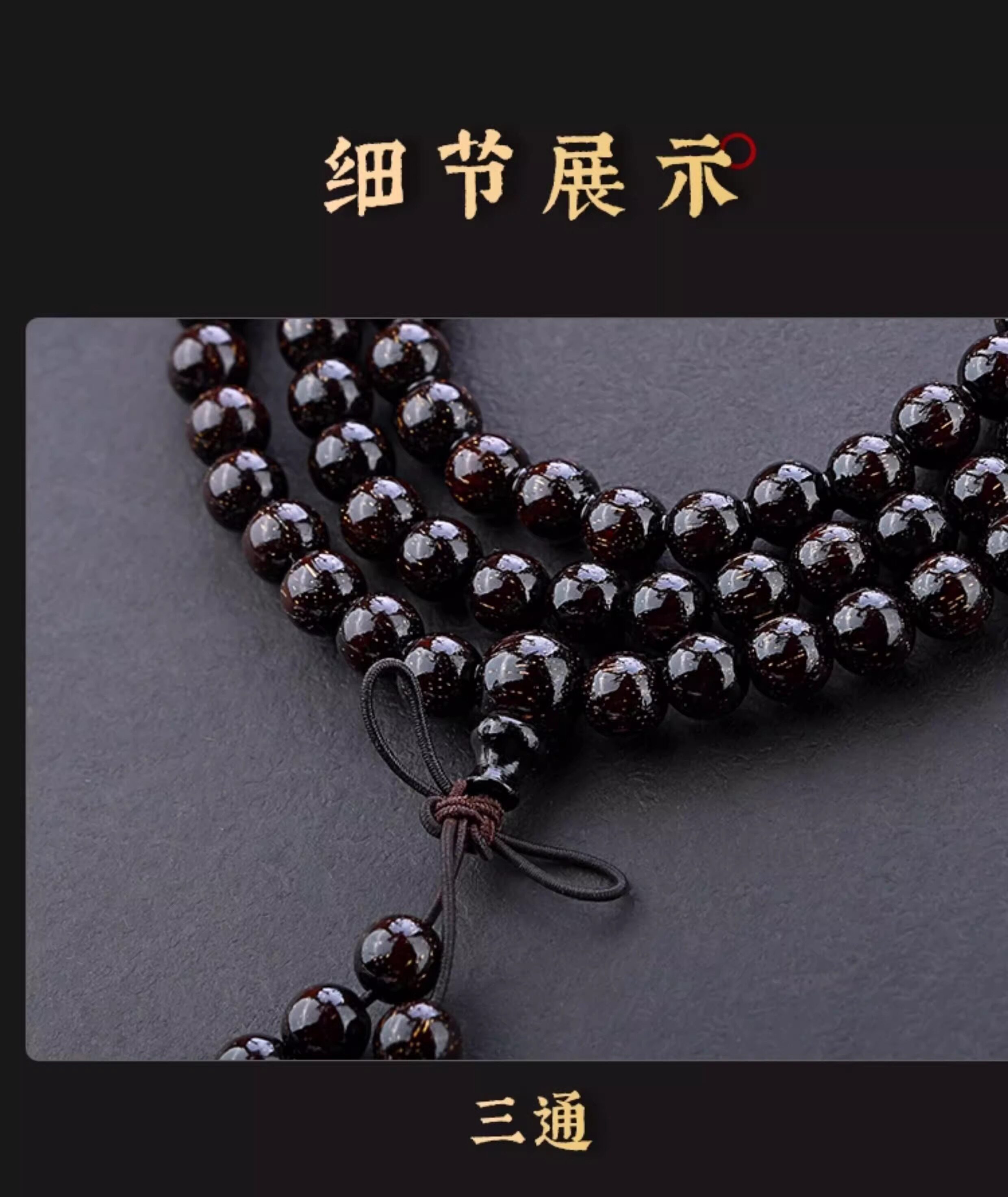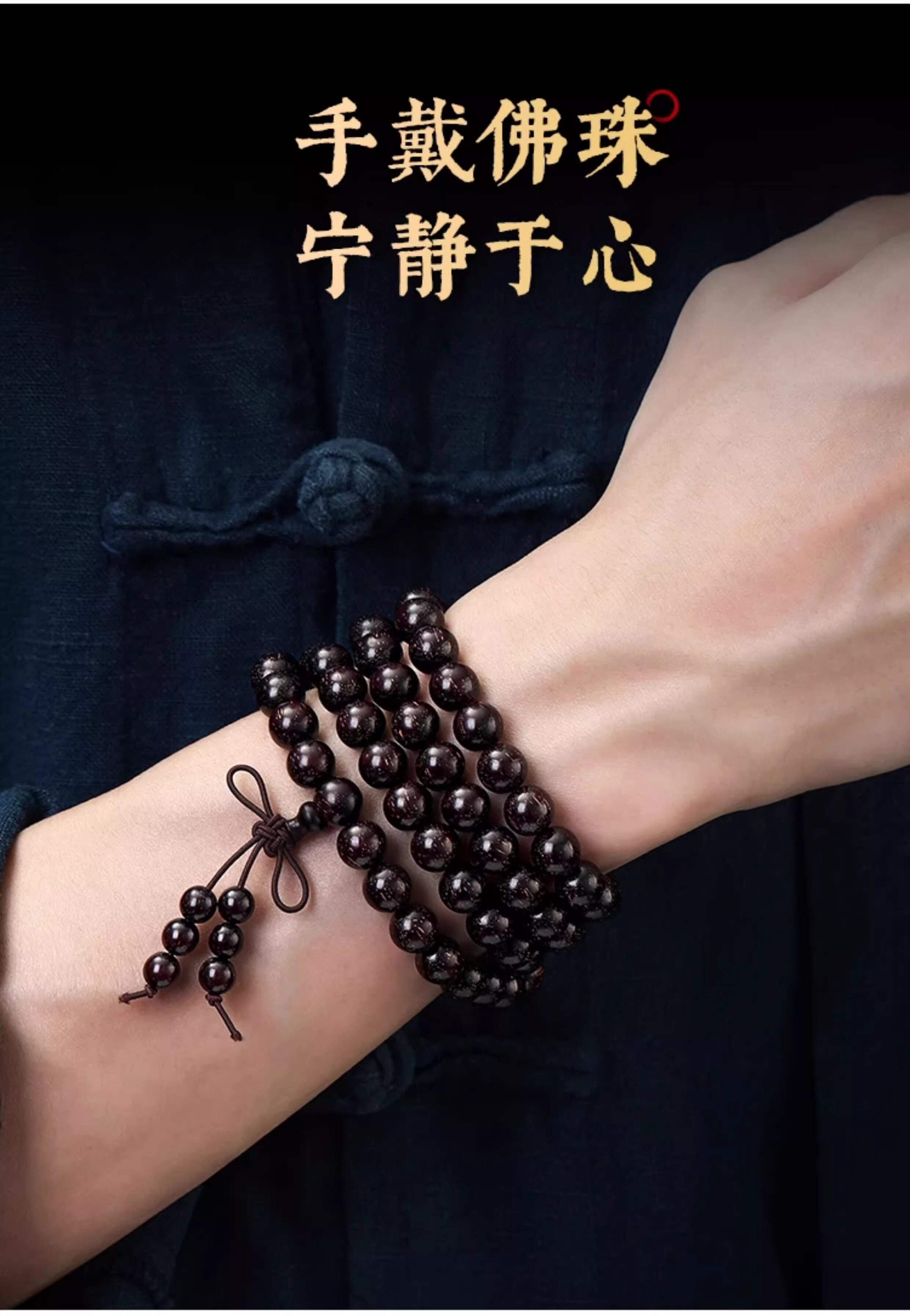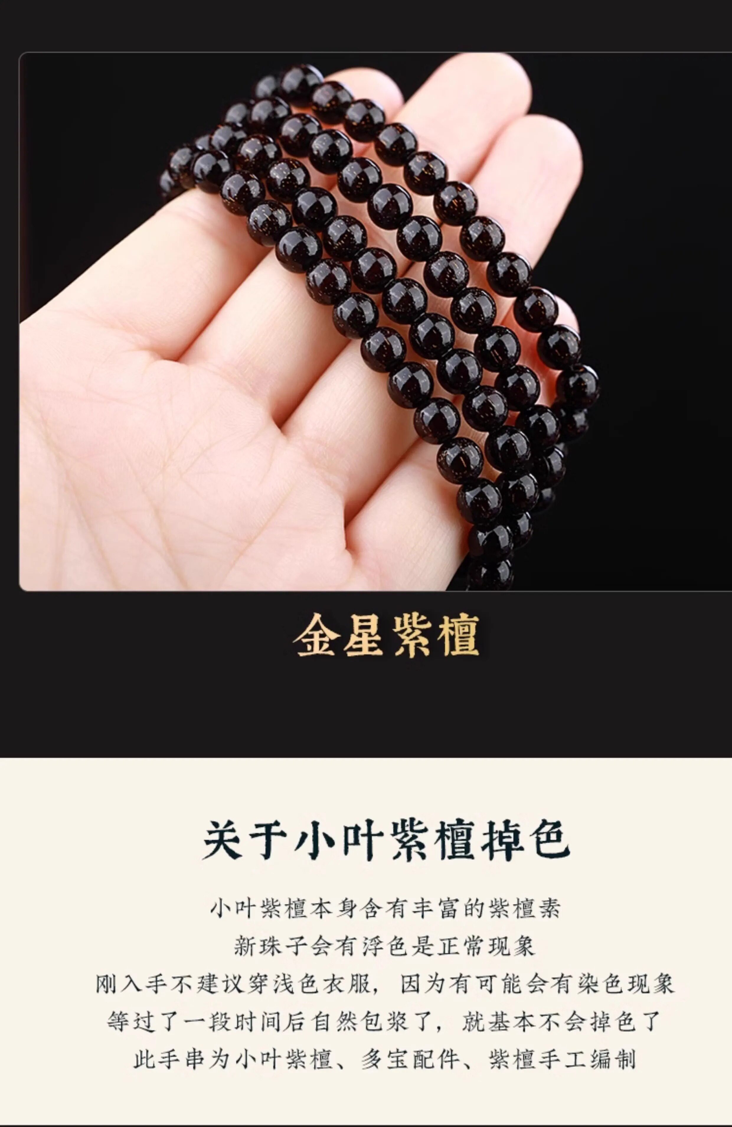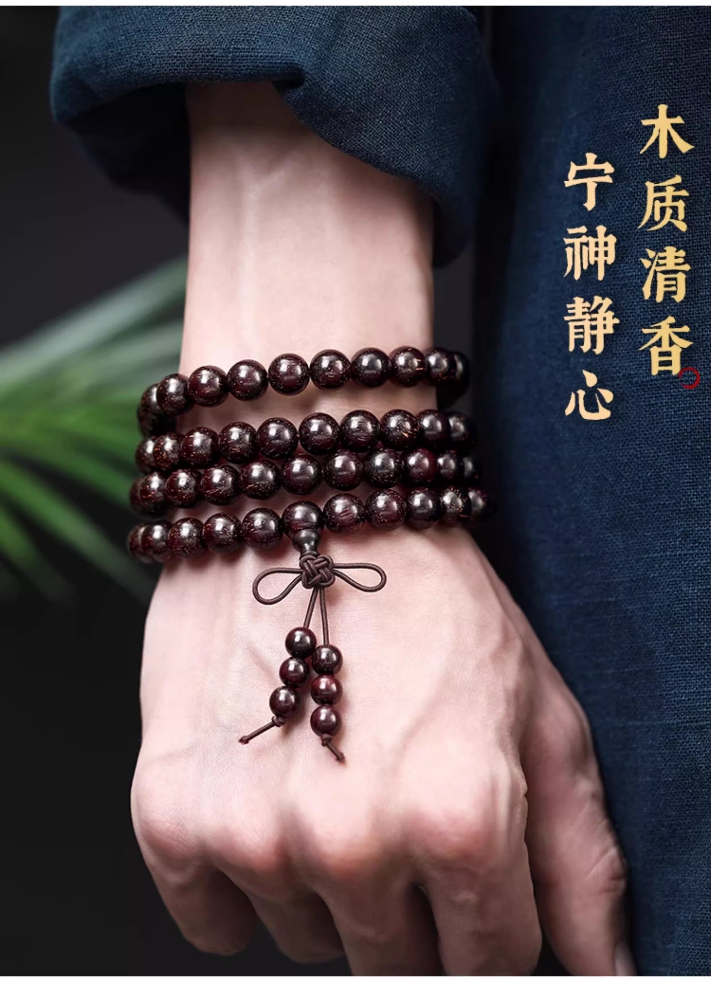 Indian Small-Leaf Rosewood Bracelet with Gold Star Beads, Zodiac Animal Guardian Deity Bracelet, 108 Sandalwood Beads, Unisex