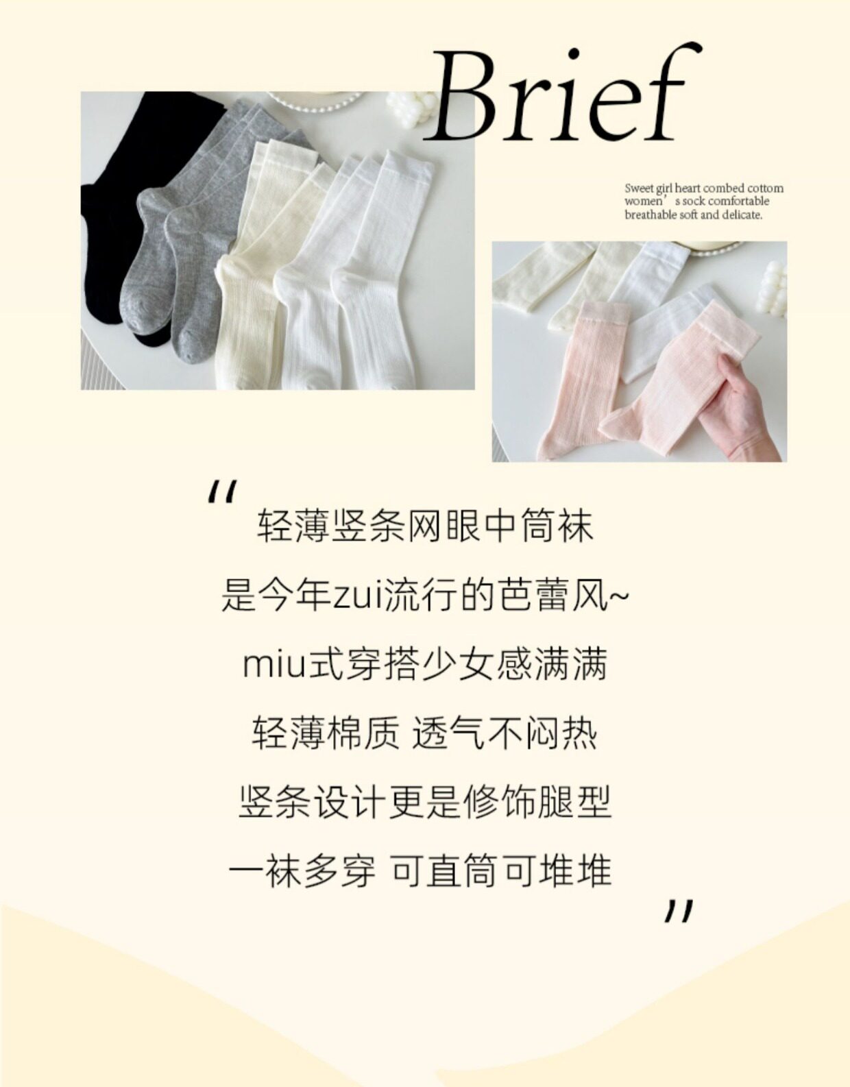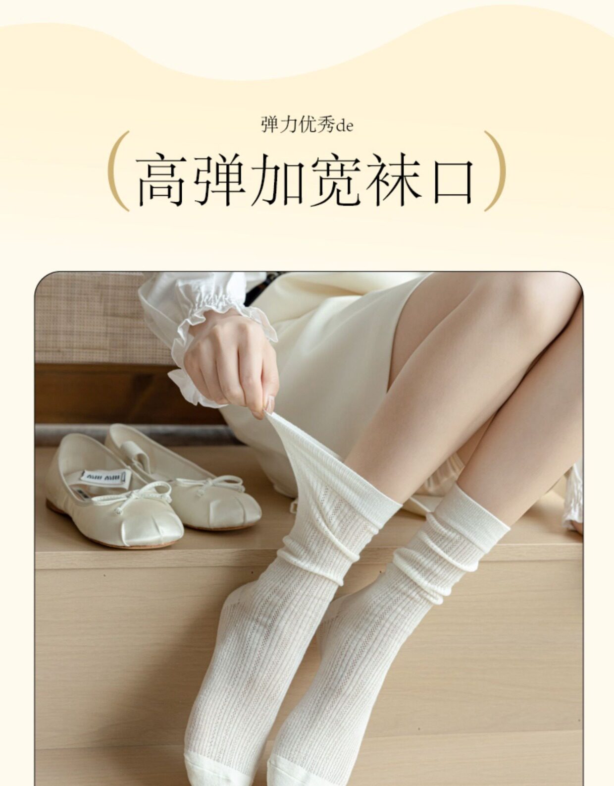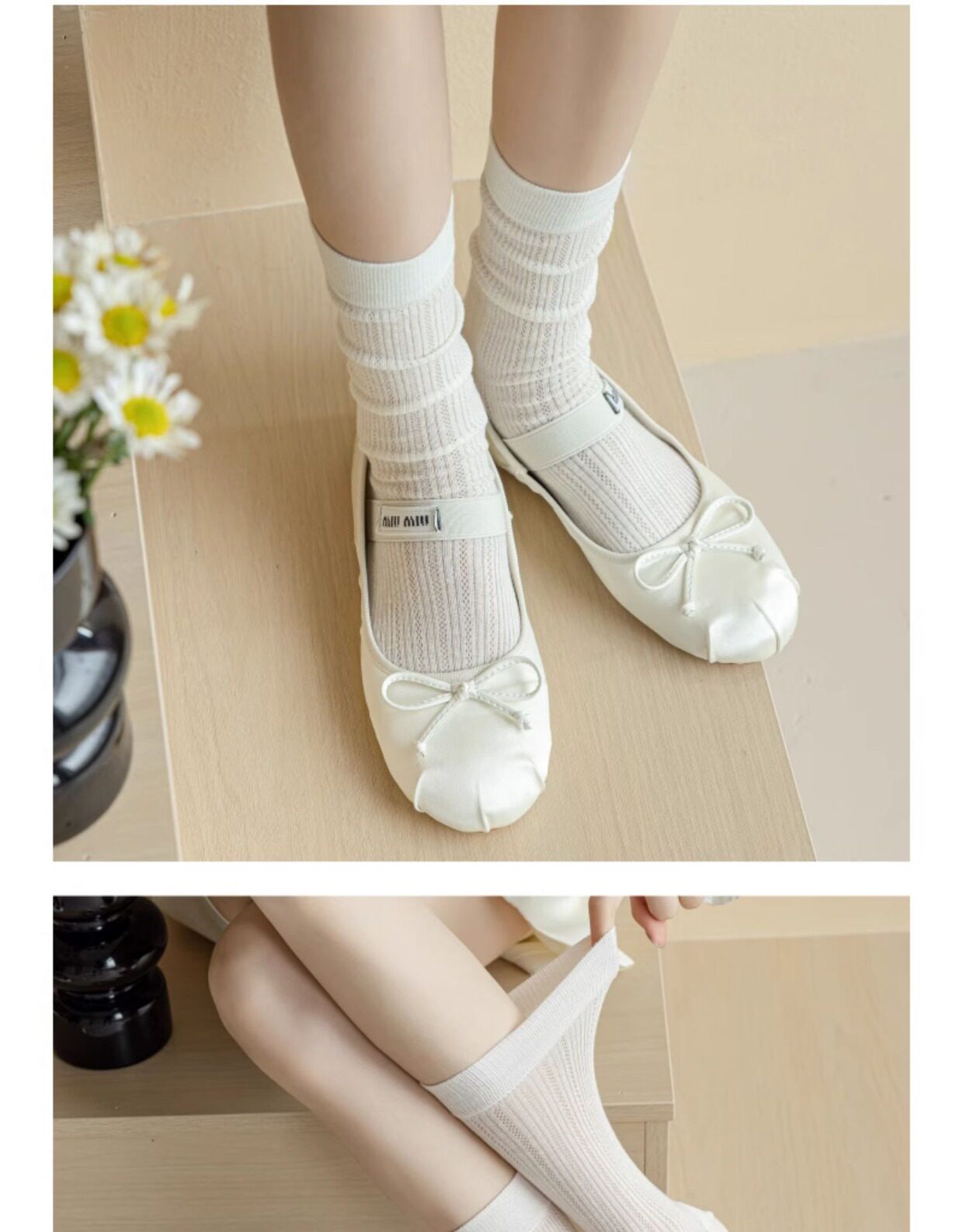 Ballet Style White Socks for Women, Mid-Calf Socks, Spring and Summer Thin Seamless Mesh Breathable Long Socks, Summer Slouch Socks