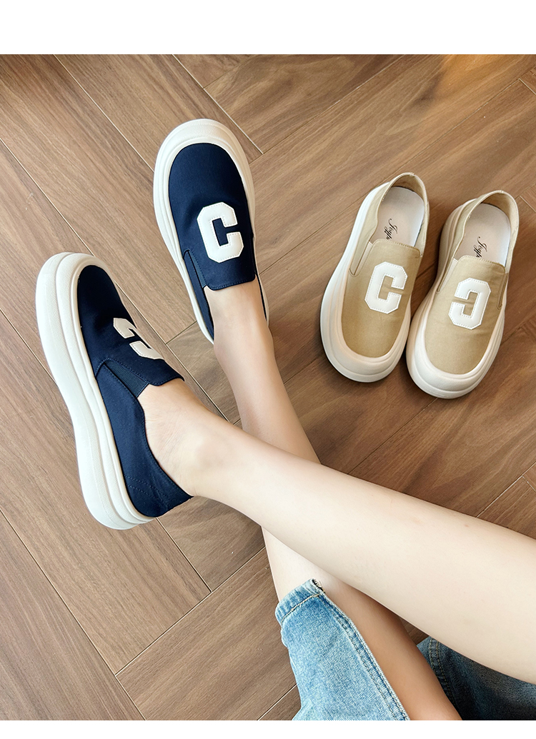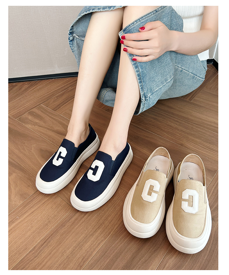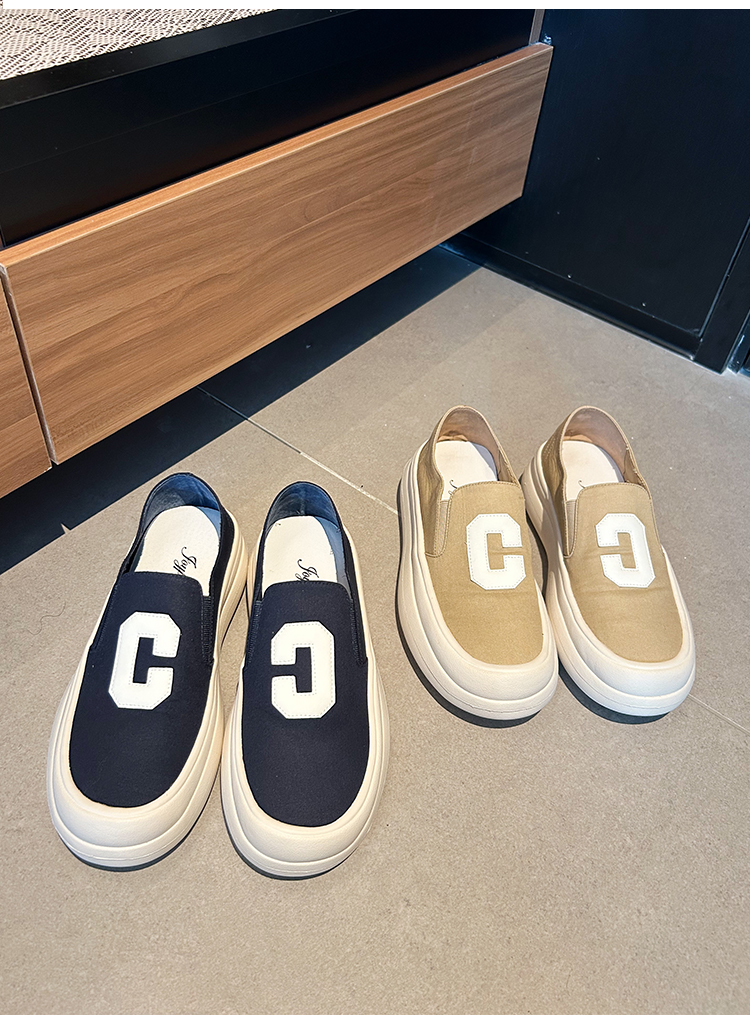 Joy Is Comfortable! C Letter Canvas Shoes, Loafers for Women, Slip-On Thick-Soled Lazy Shoes, Single Shoes, 2025 New Model