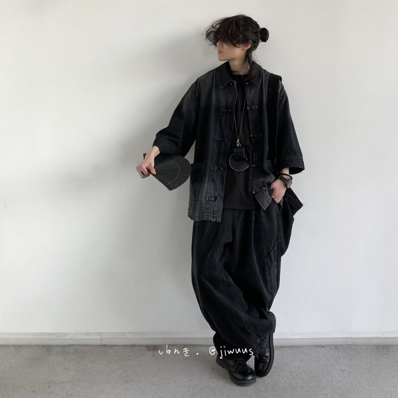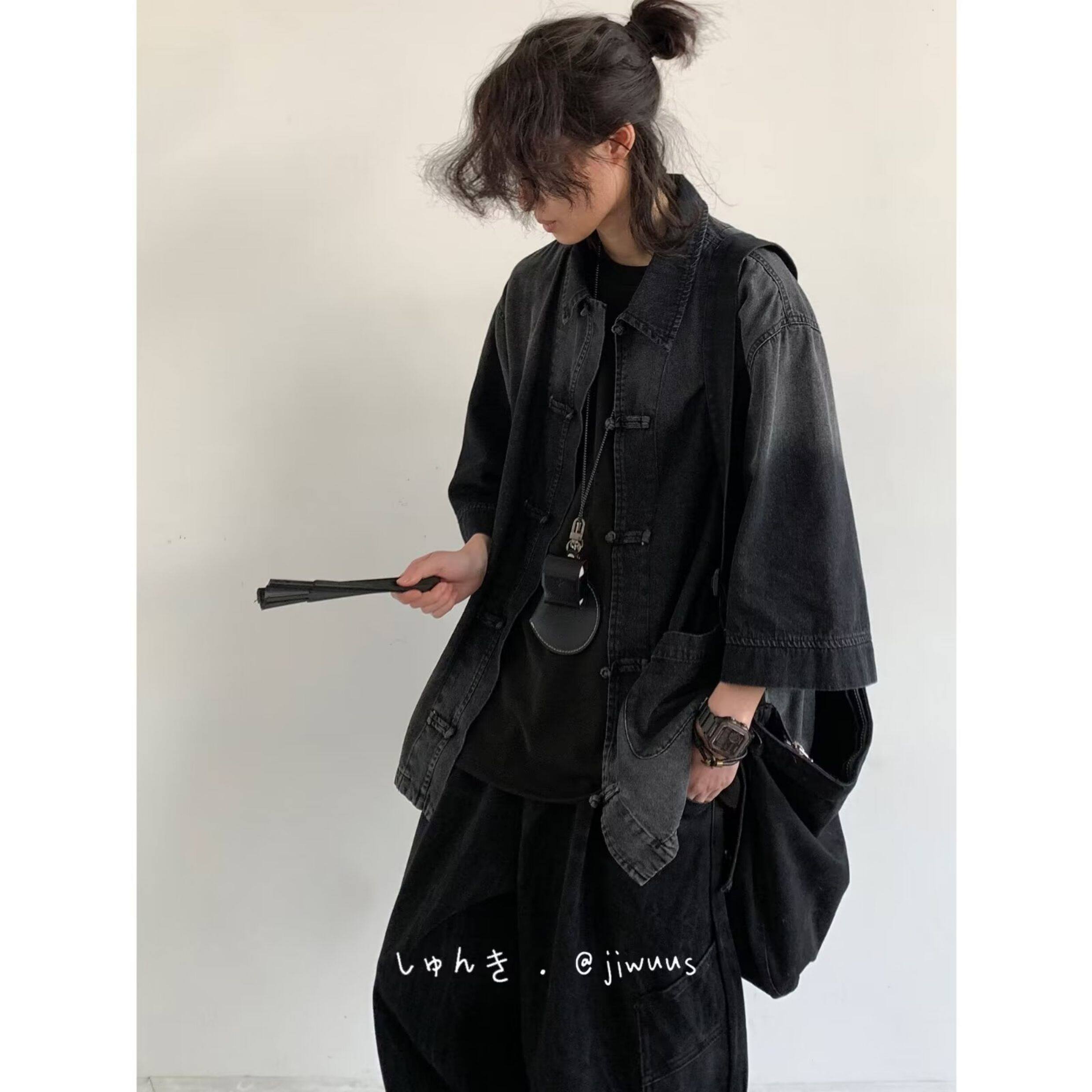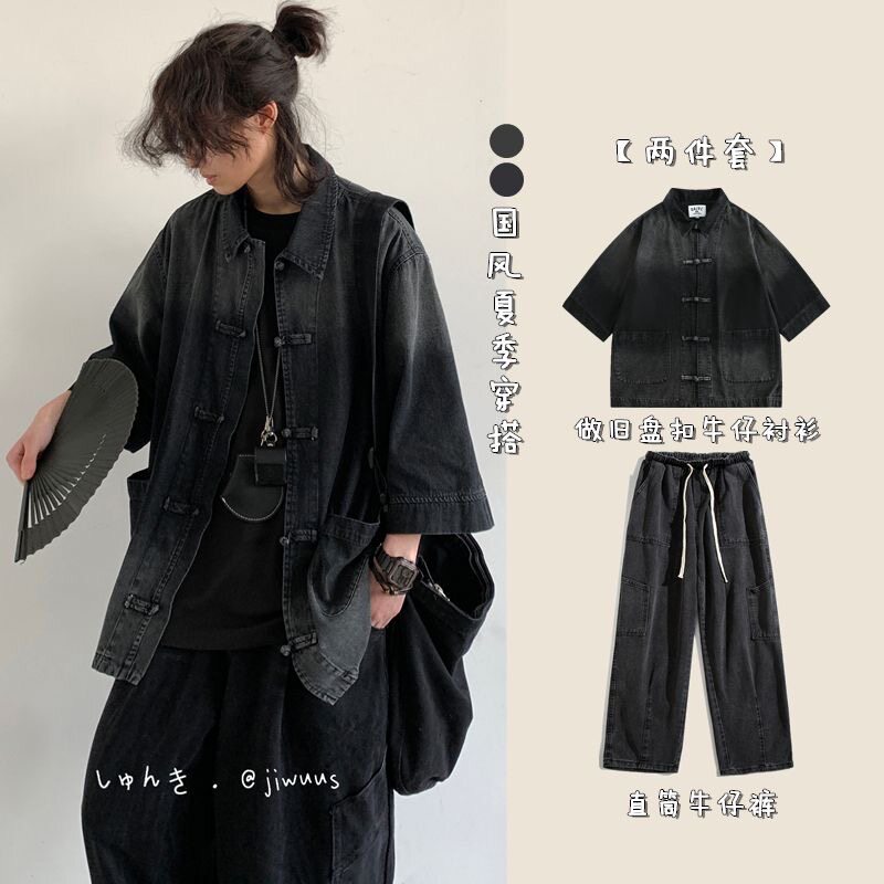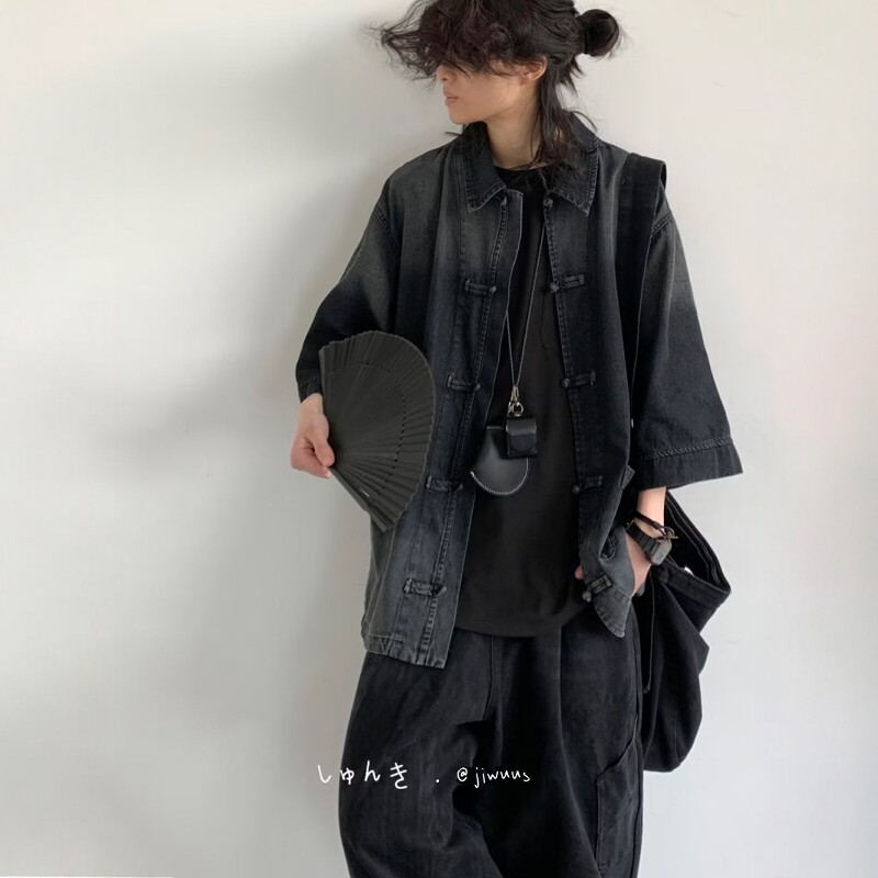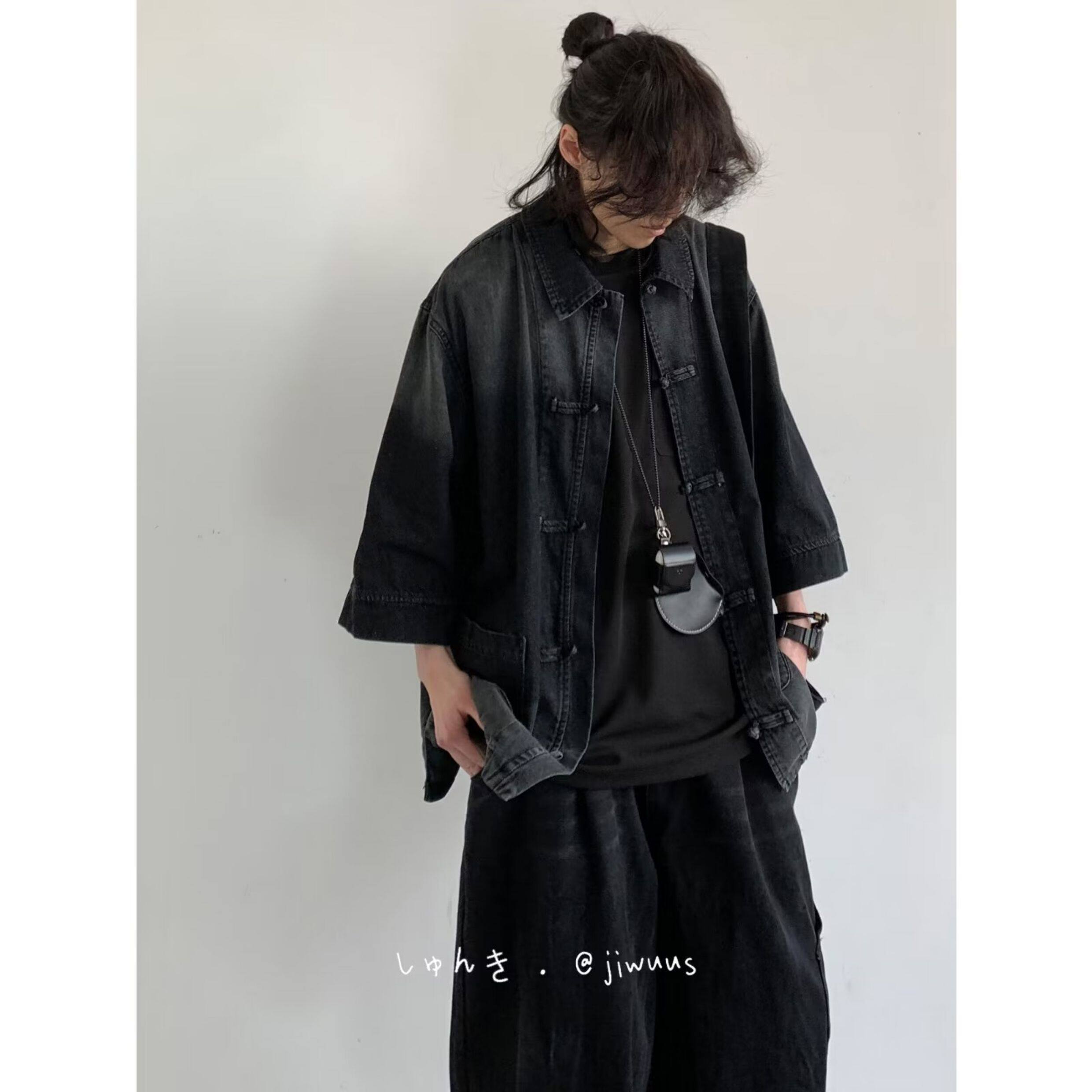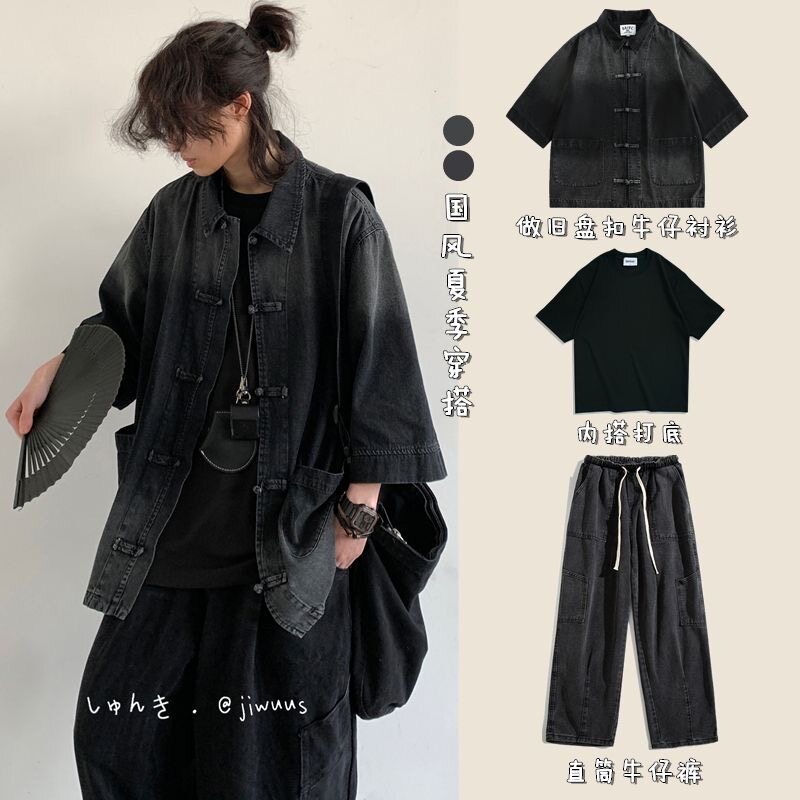 Summer Outfit: a Complete Set of Japanese-Style Loose-Fitting New Chinese-Style Denim Jackets for Men and Women, Vintage Button-Up Washed Tops