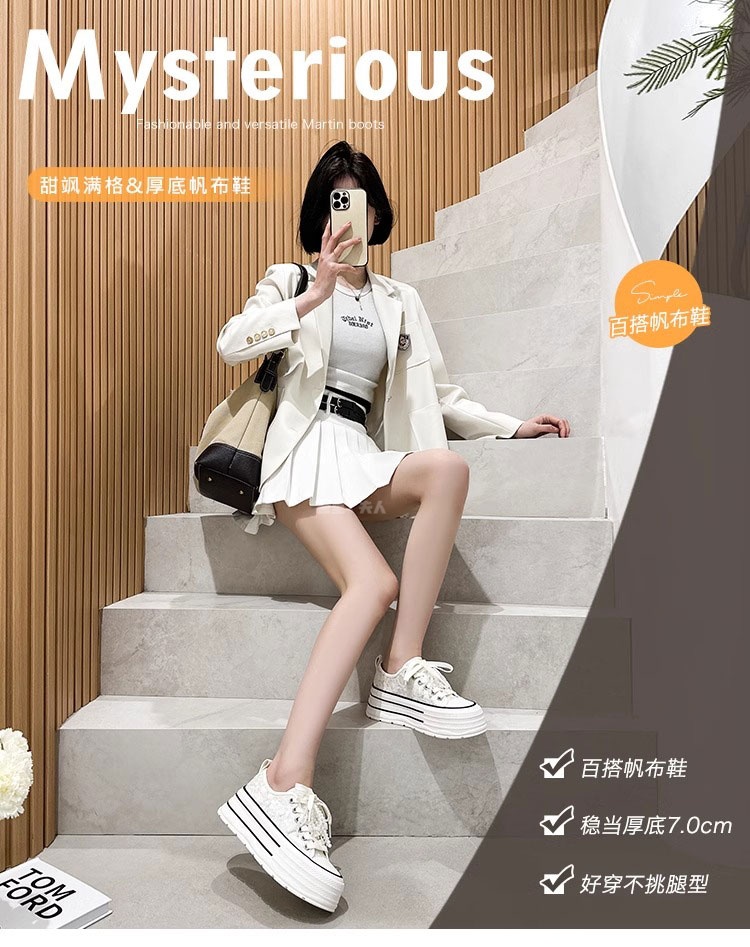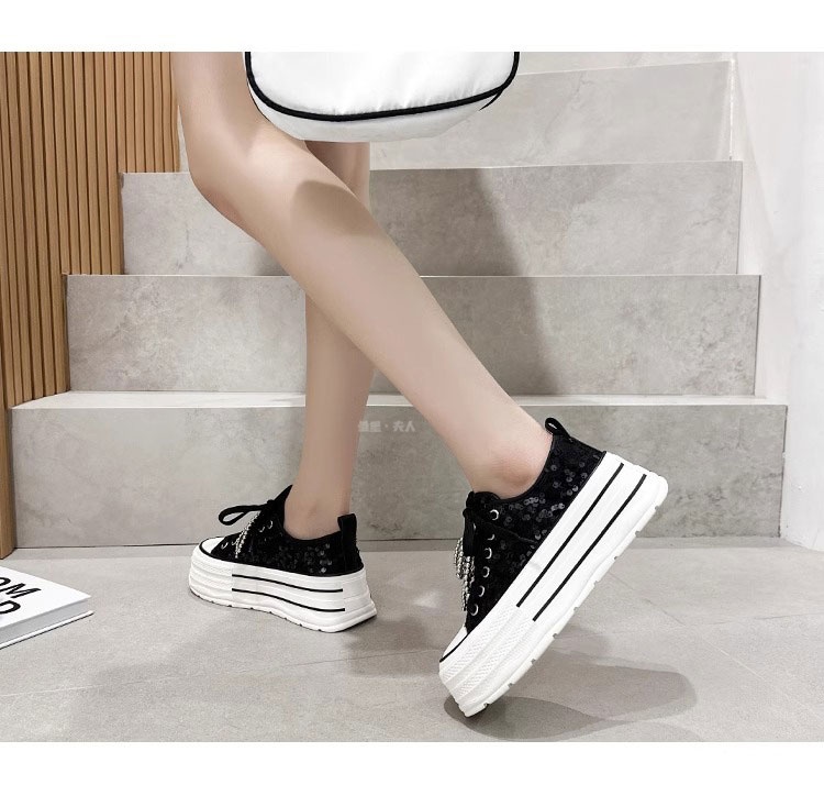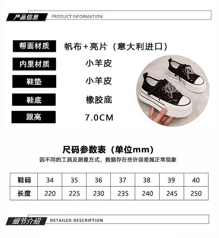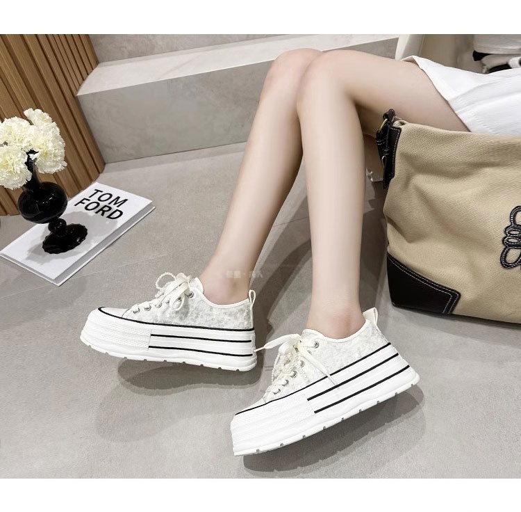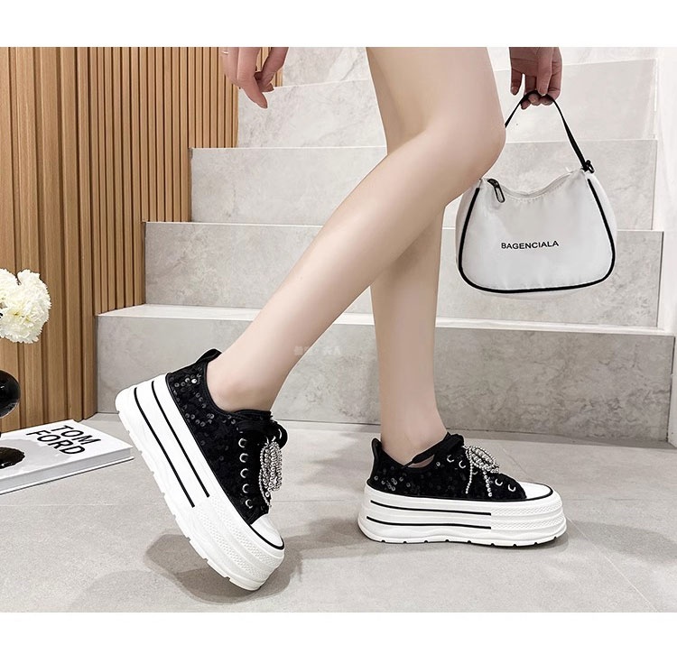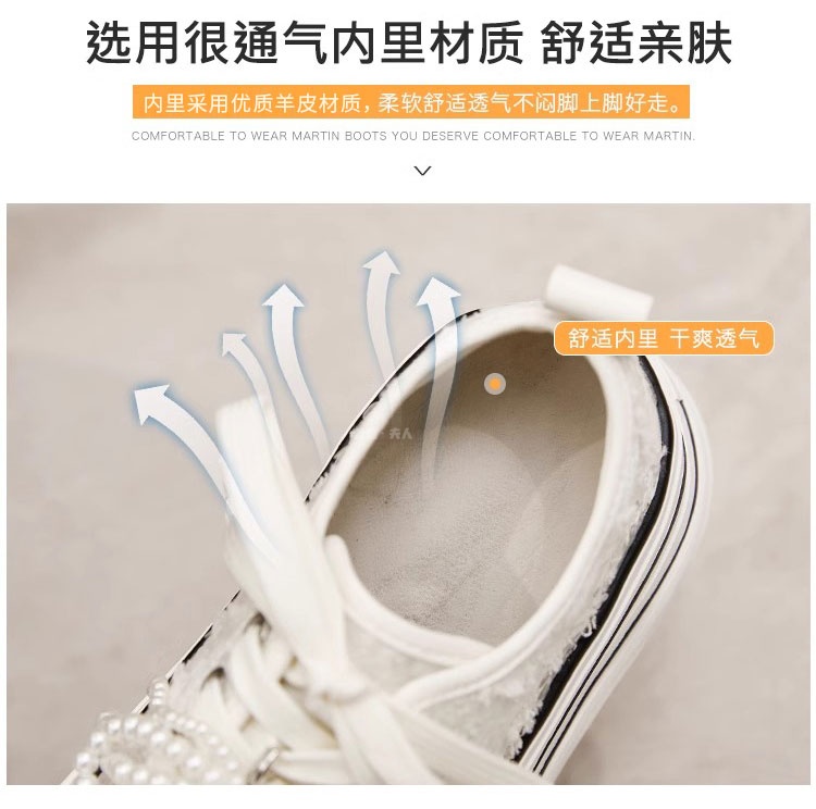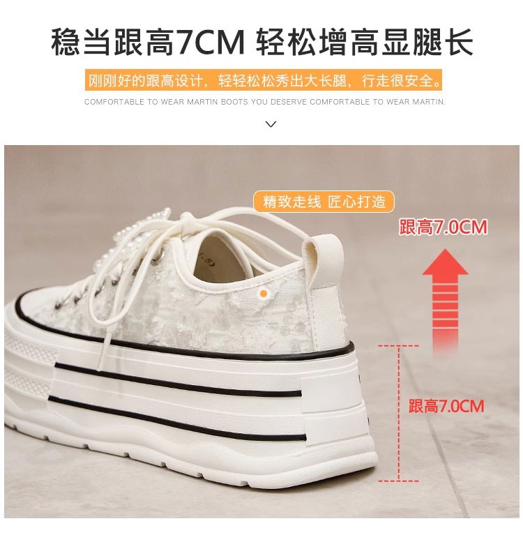 Sanli Small-Sized Thick-Soled Height-Increasing Canvas Shoes for Women, 2025 Spring and Summer New Style, Pearl Lace-Up Round-Toe Casual Sneakers, Trendy