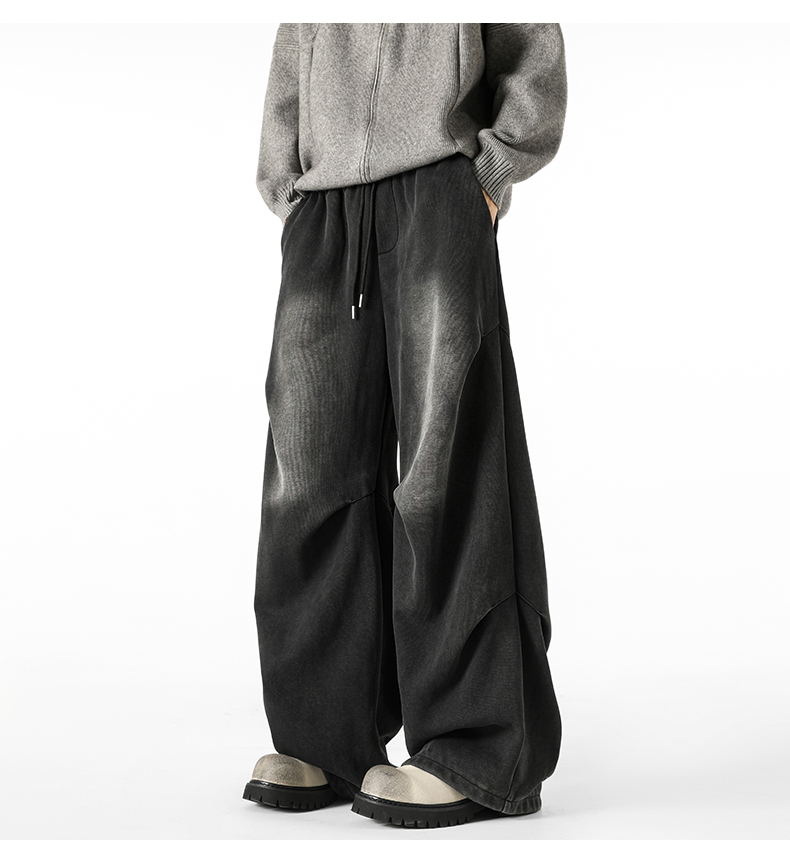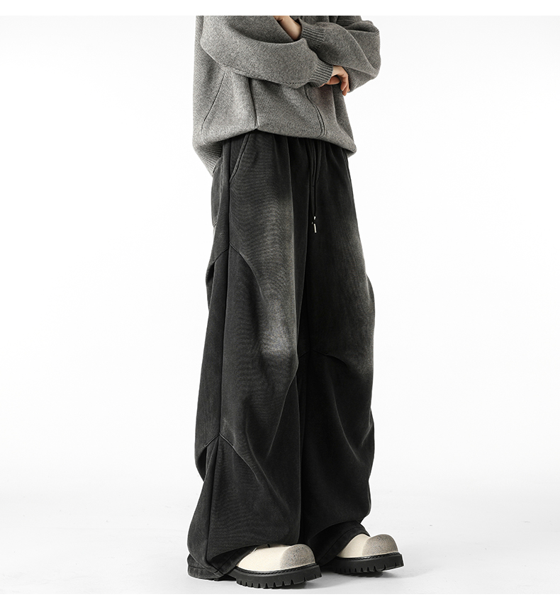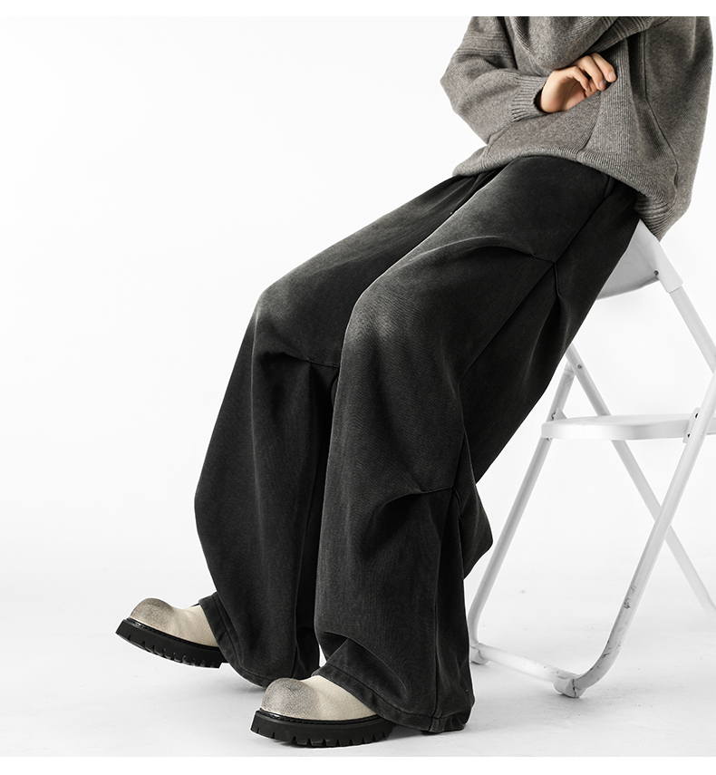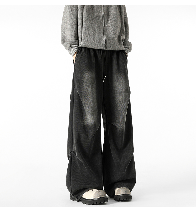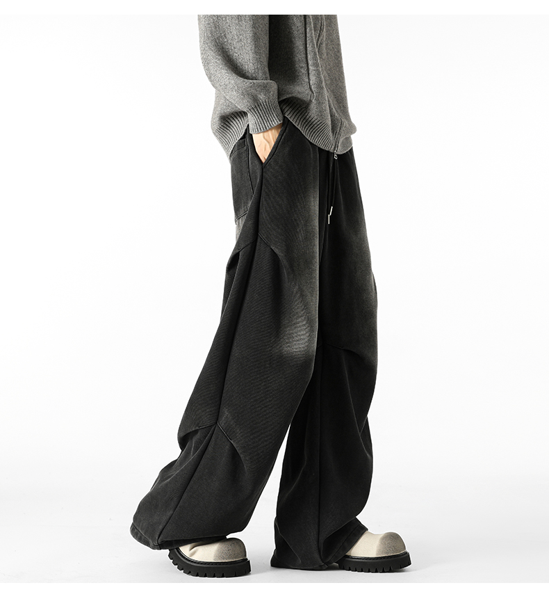 Wassup Happy Autumn/Winter Work Pants for Men, American Style, Fleece-Lined, Draped Wide-Leg, Trendy Brand, Straight-Leg Casual Pants