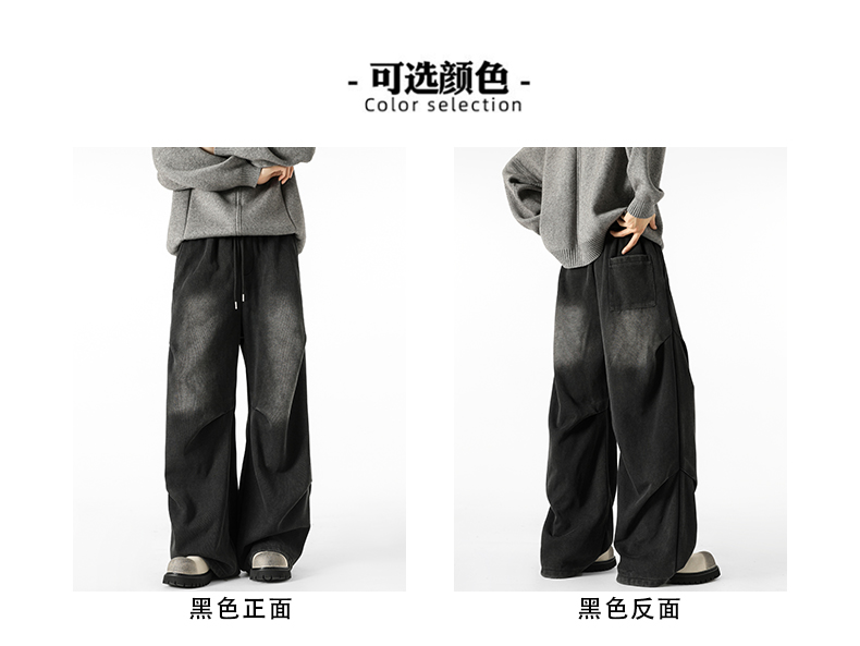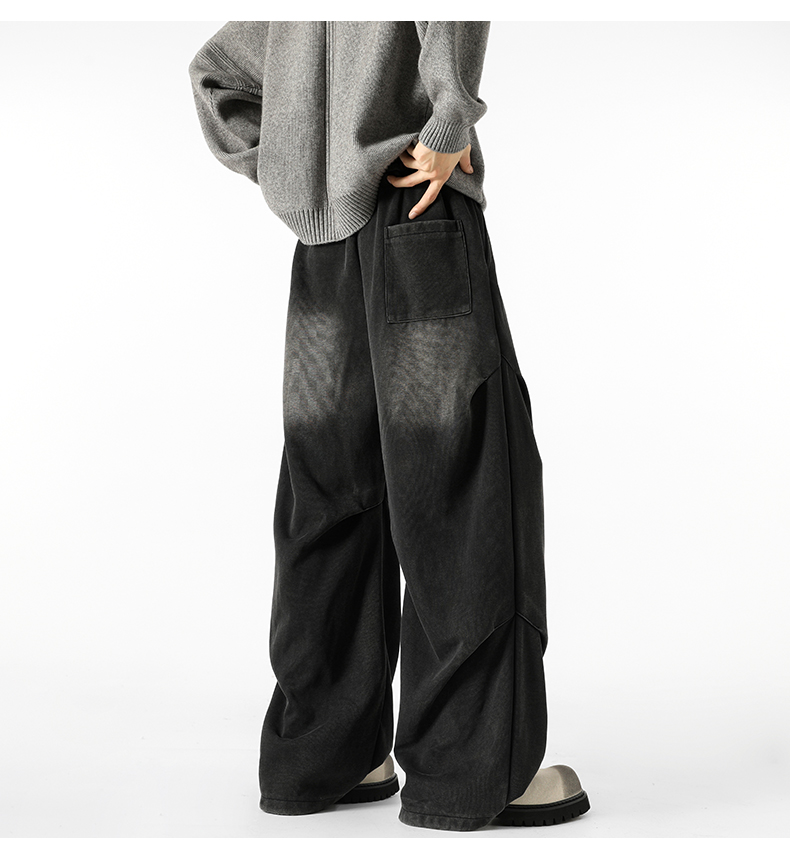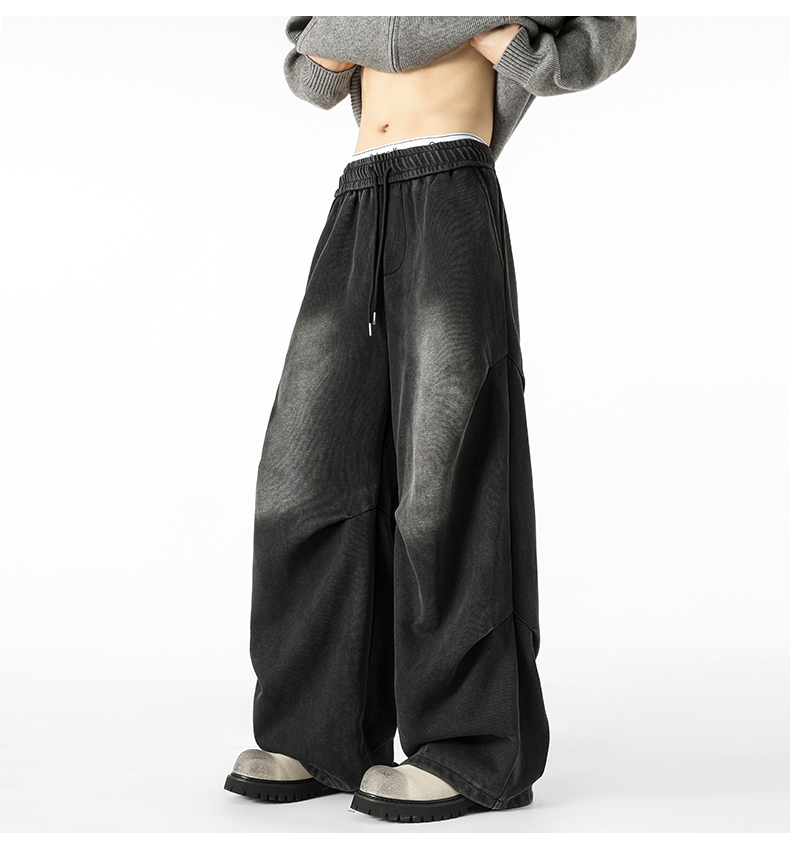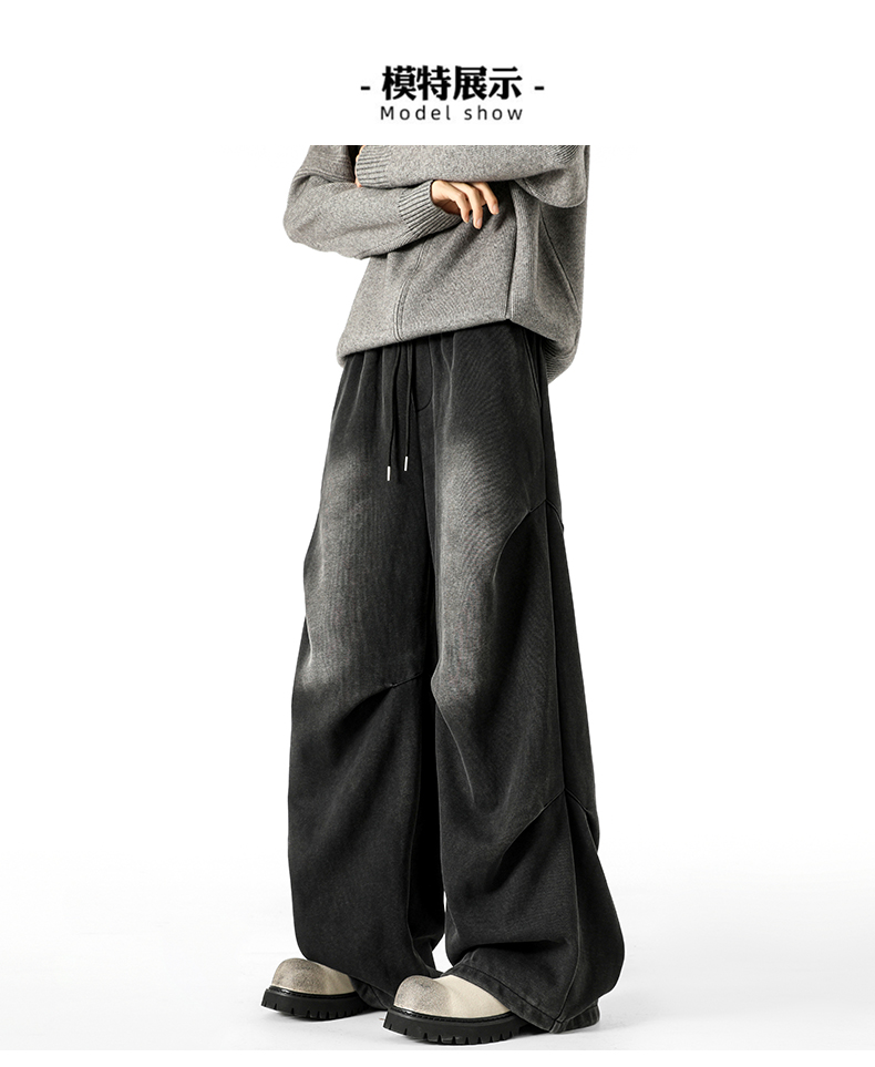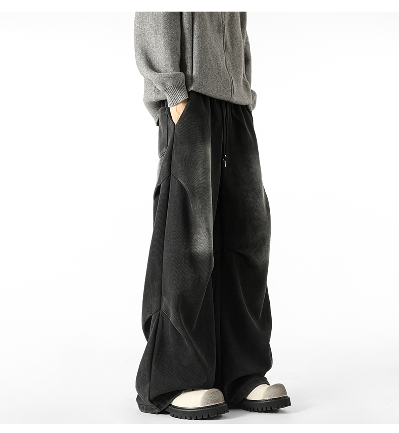 Wassup Happy Autumn/Winter Work Pants for Men, American Style, Fleece-Lined, Draped Wide-Leg, Trendy Brand, Straight-Leg Casual Pants