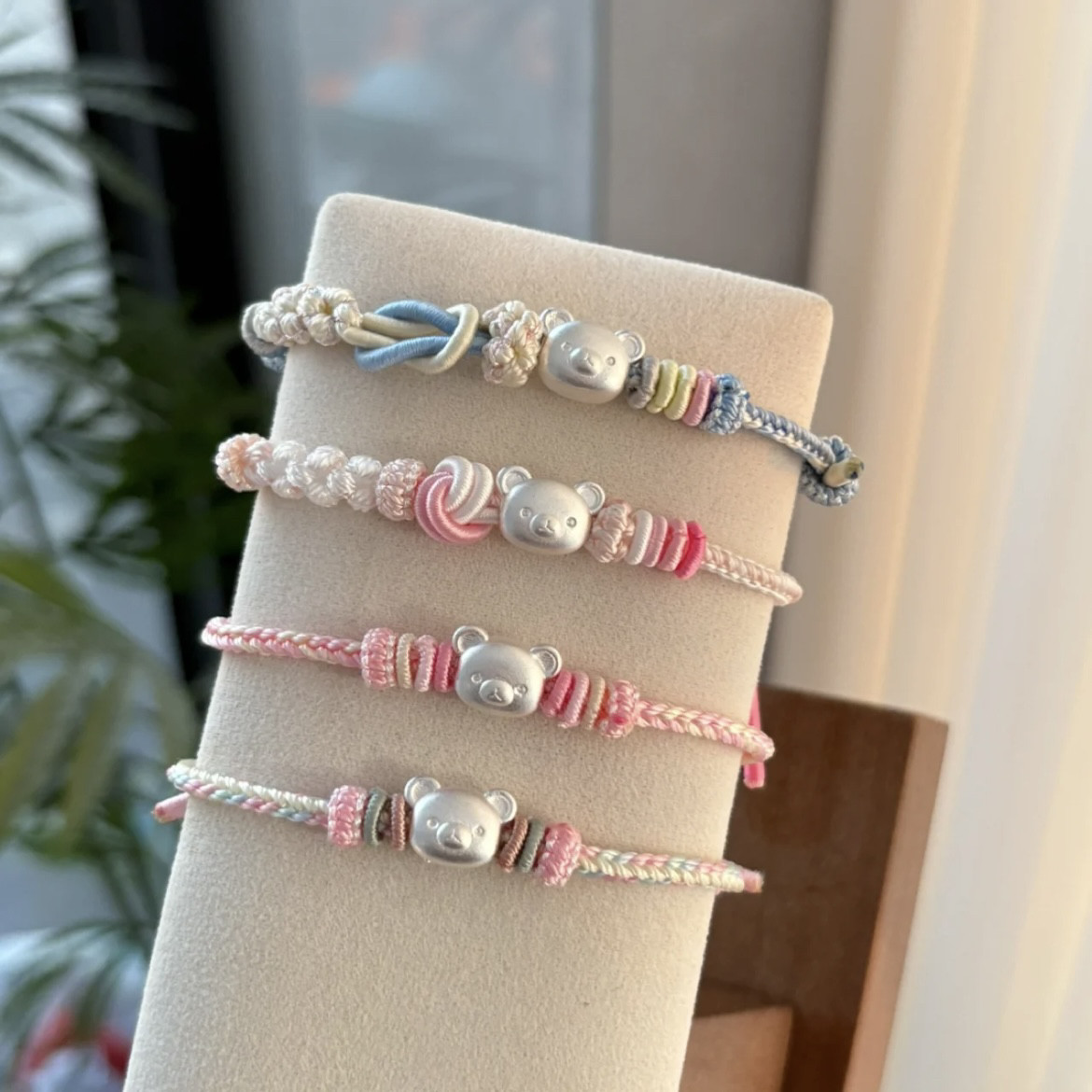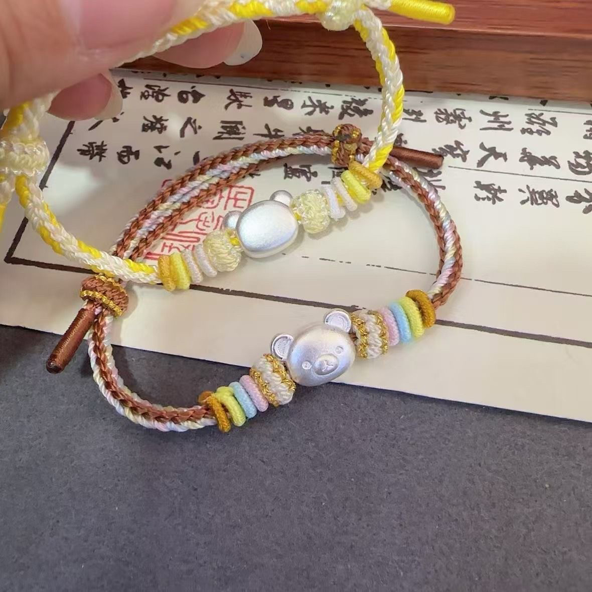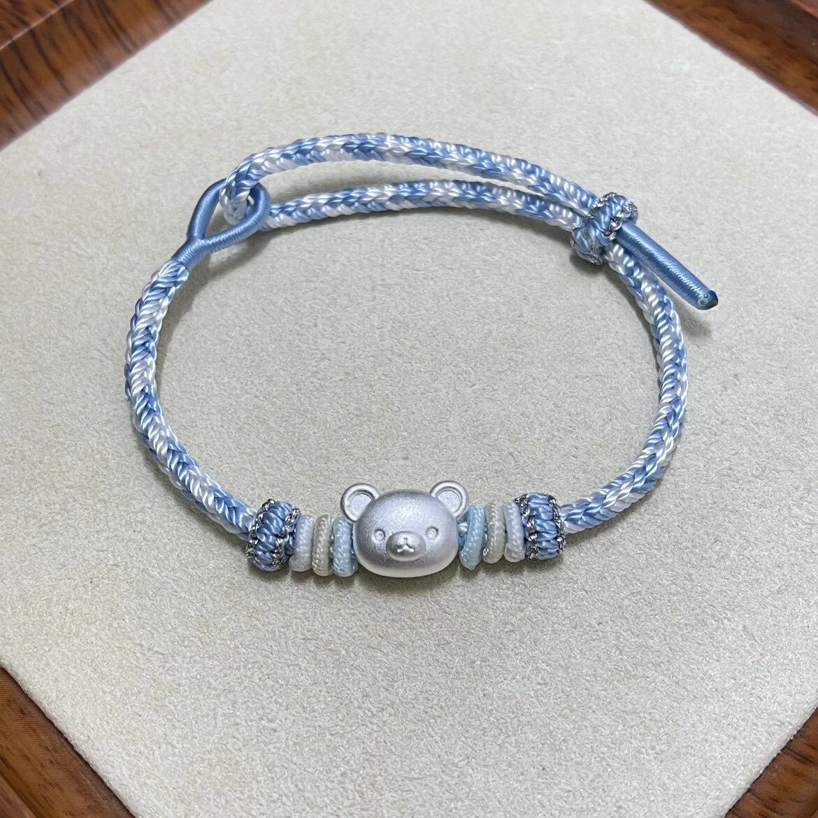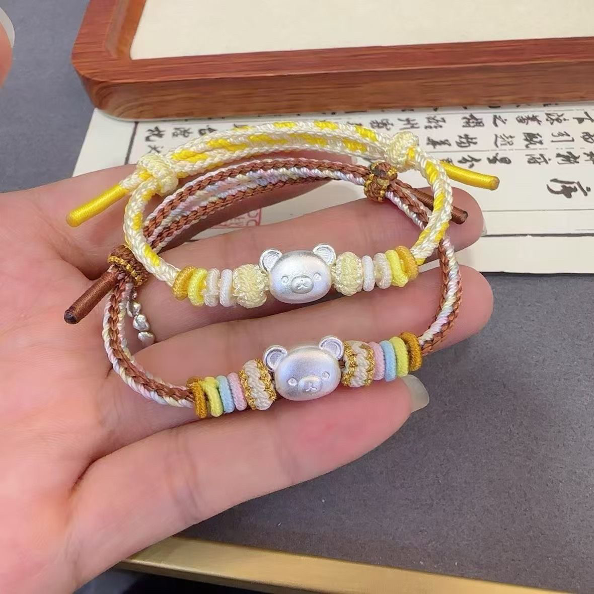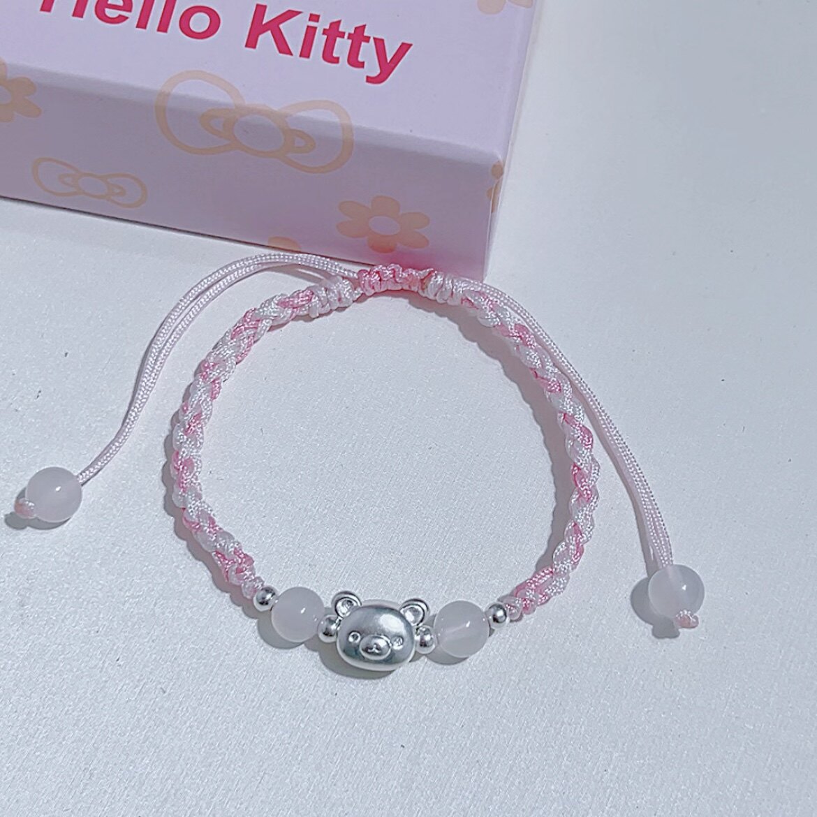 Pure Silver 999 Rilakkuma Bracelet with Cute Bear 3D Hard Silver Beads, Gift for Best Friend or Girlfriend