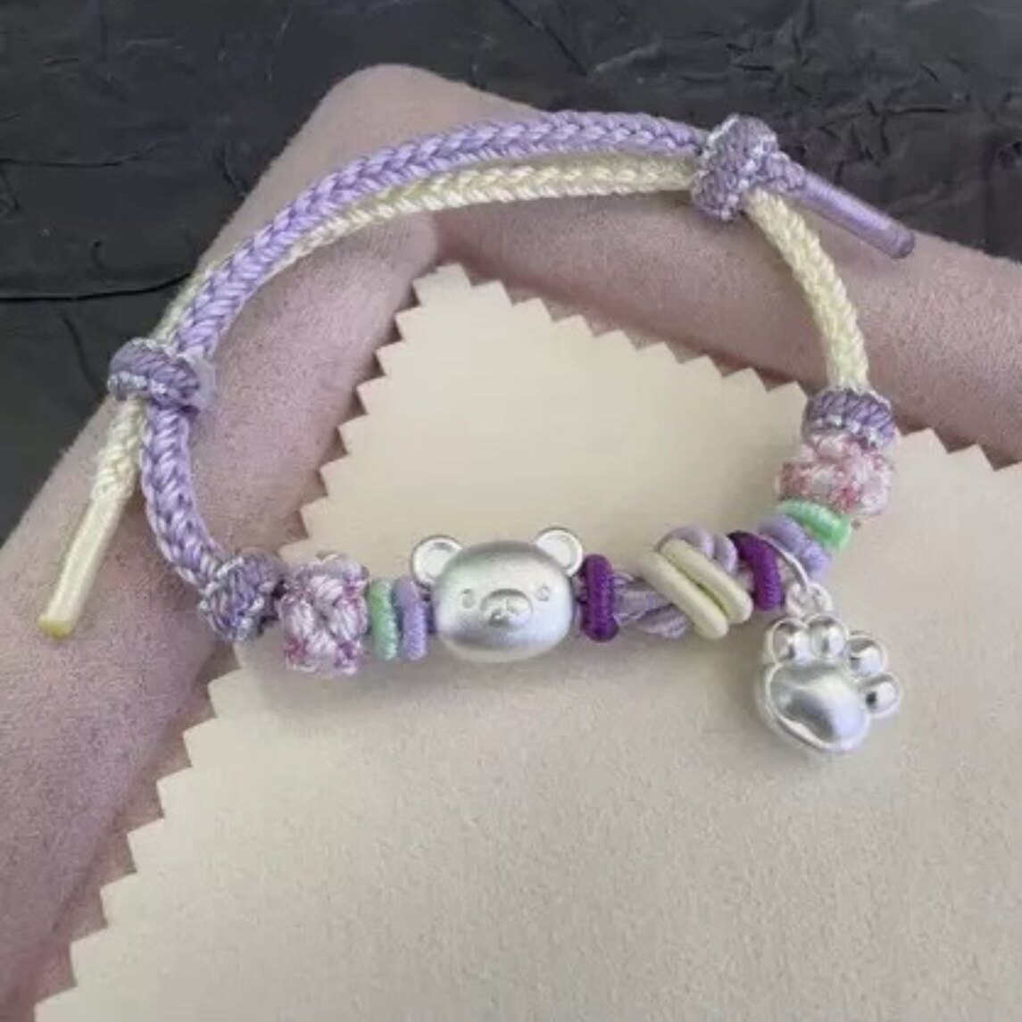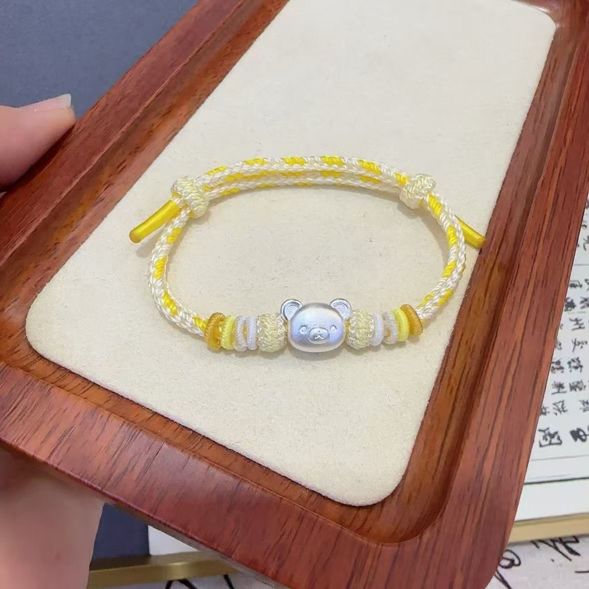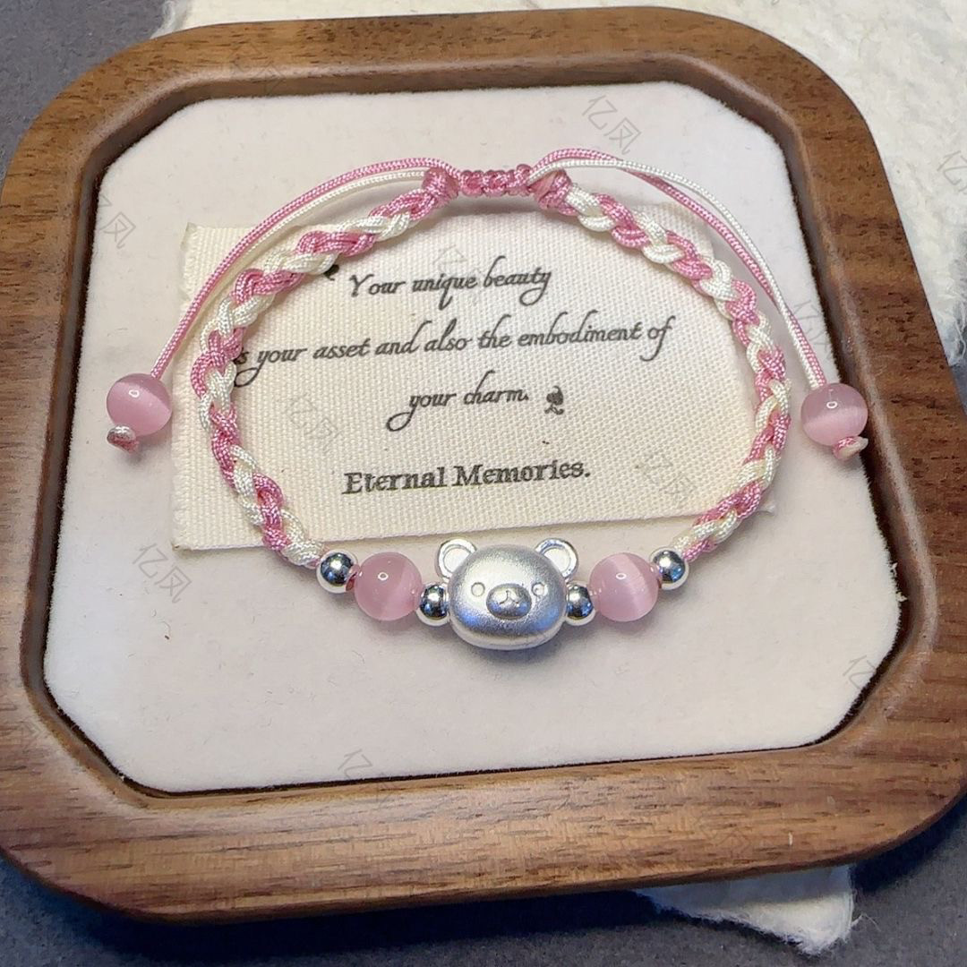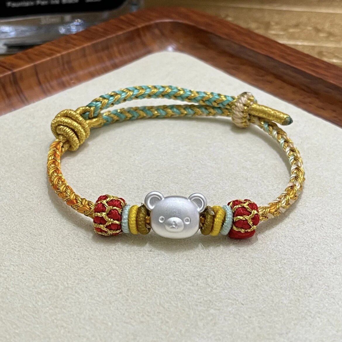 Pure Silver 999 Rilakkuma Bracelet with Cute Bear 3D Hard Silver Beads, Gift for Best Friend or Girlfriend