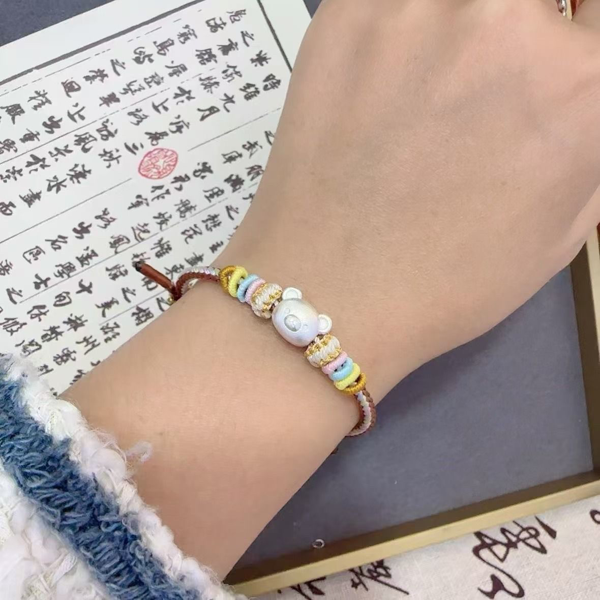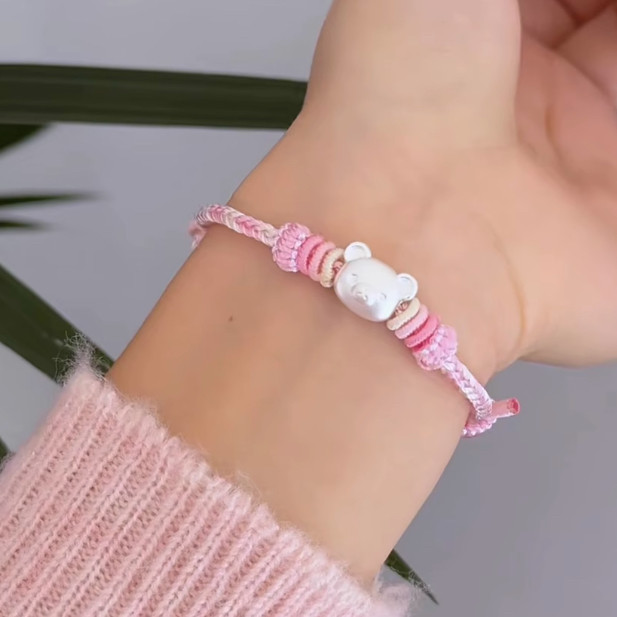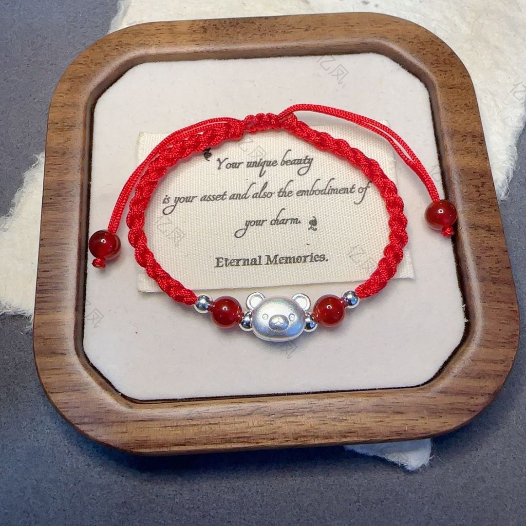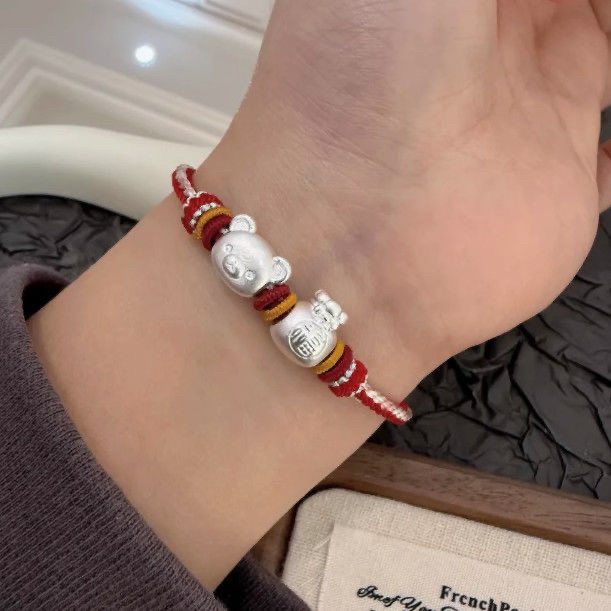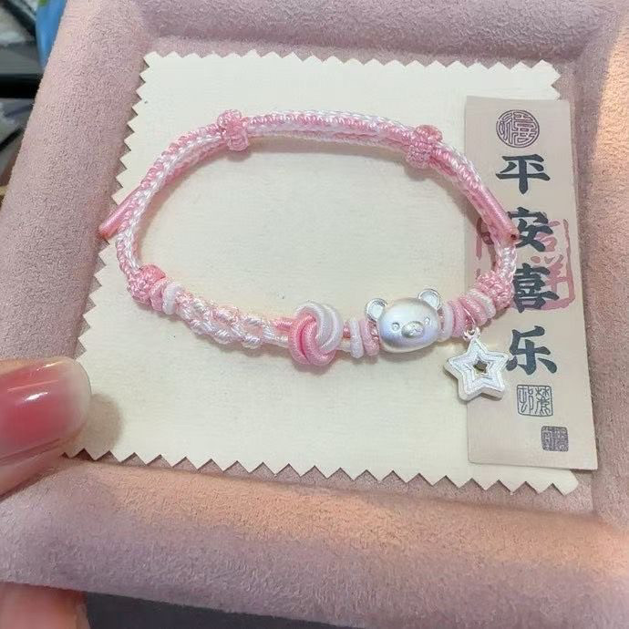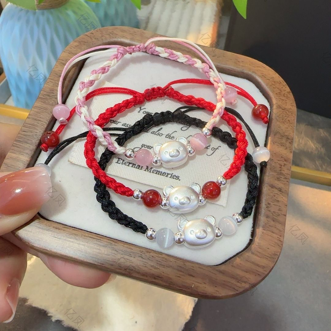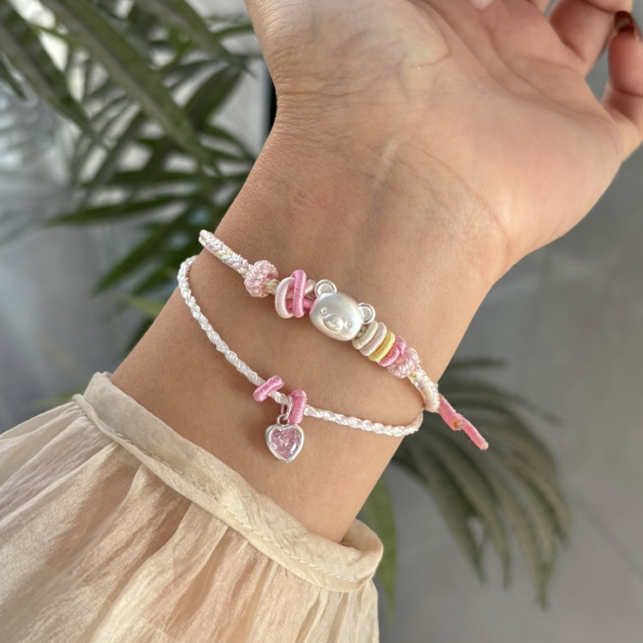 Pure Silver 999 Rilakkuma Bracelet with Cute Bear 3D Hard Silver Beads, Gift for Best Friend or Girlfriend