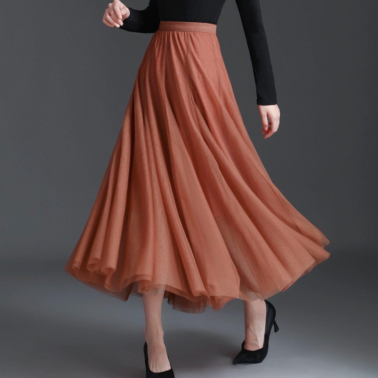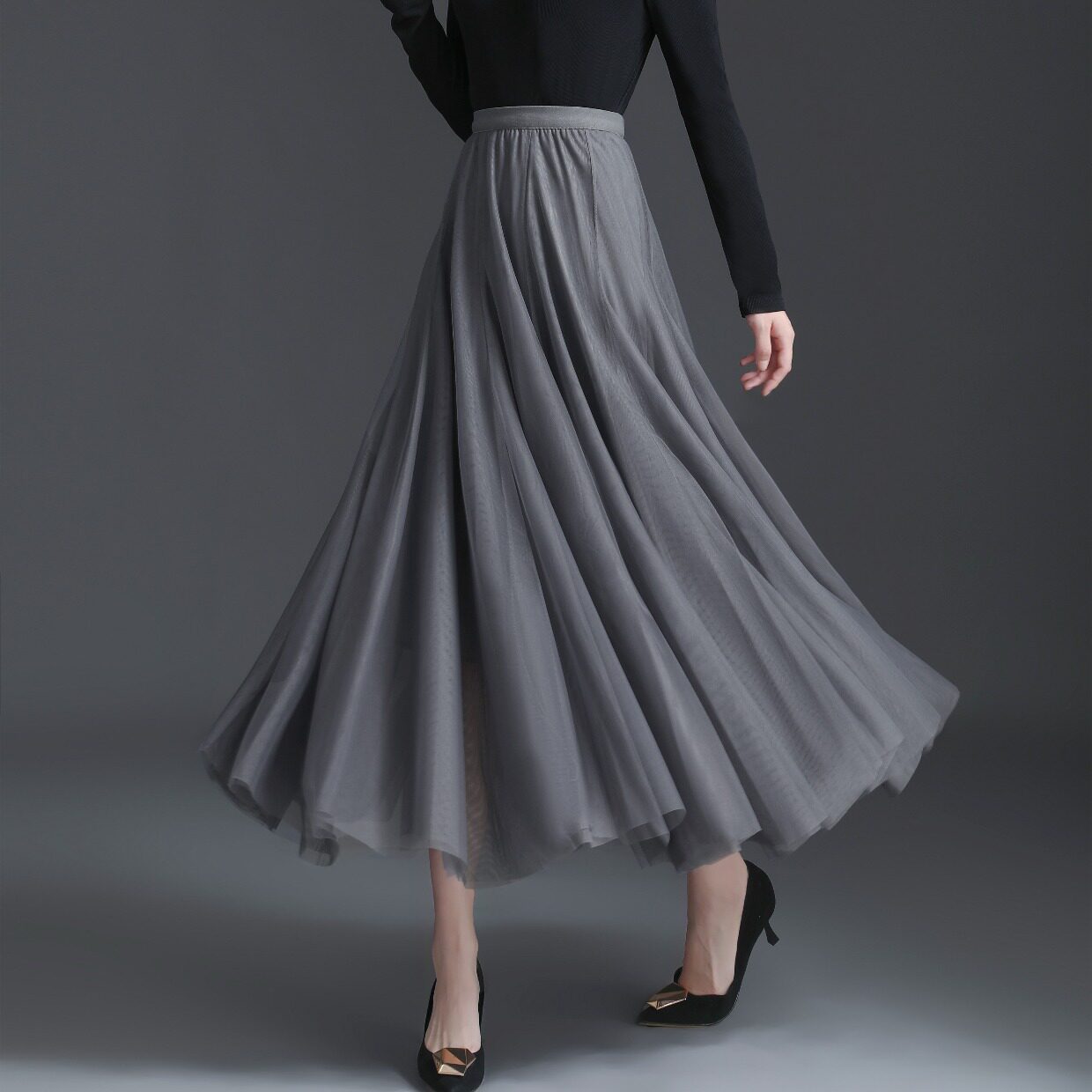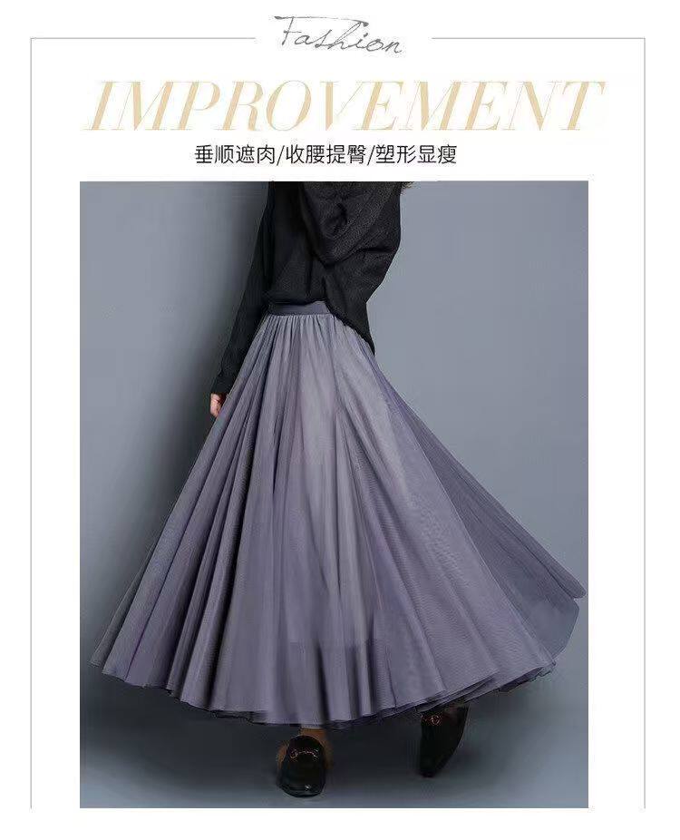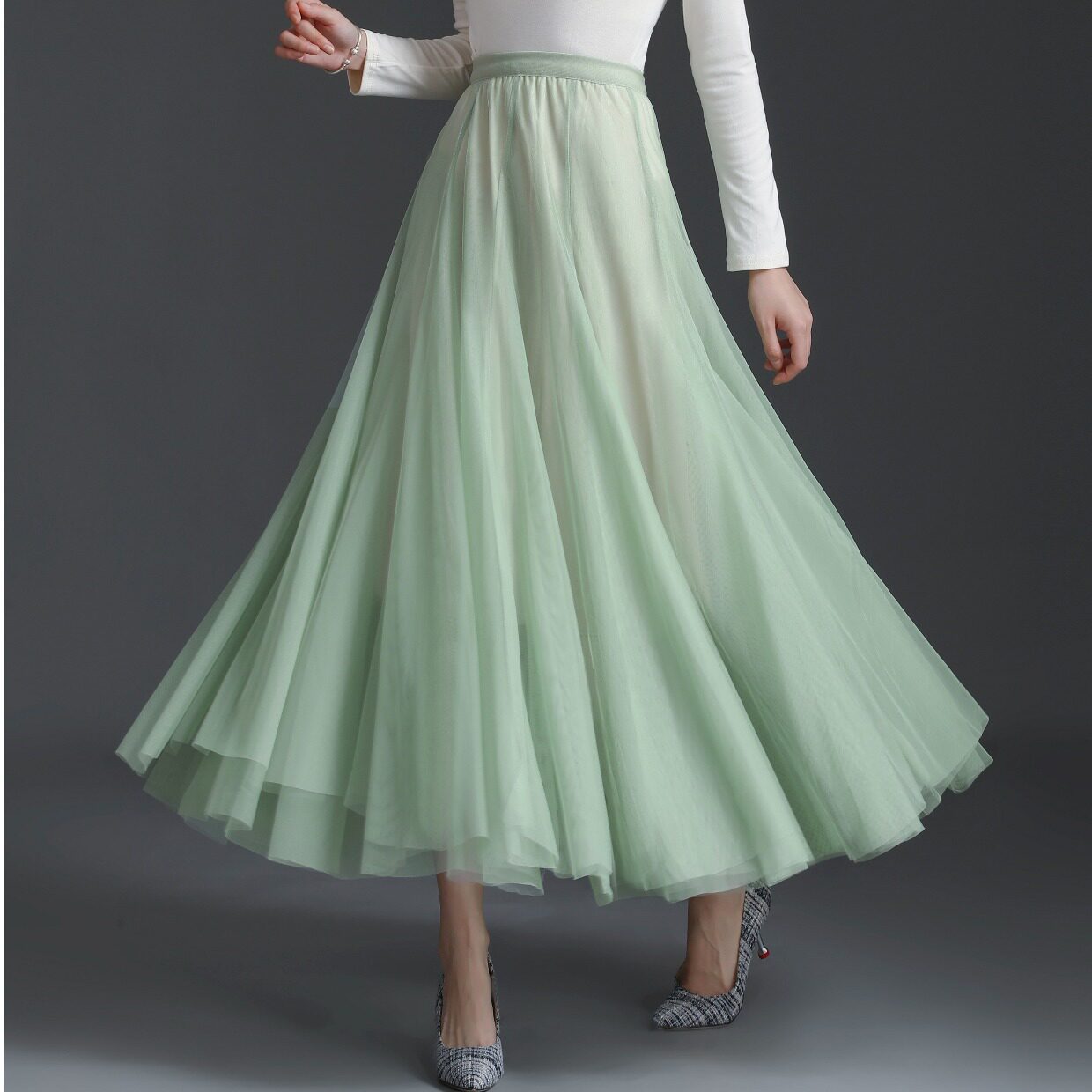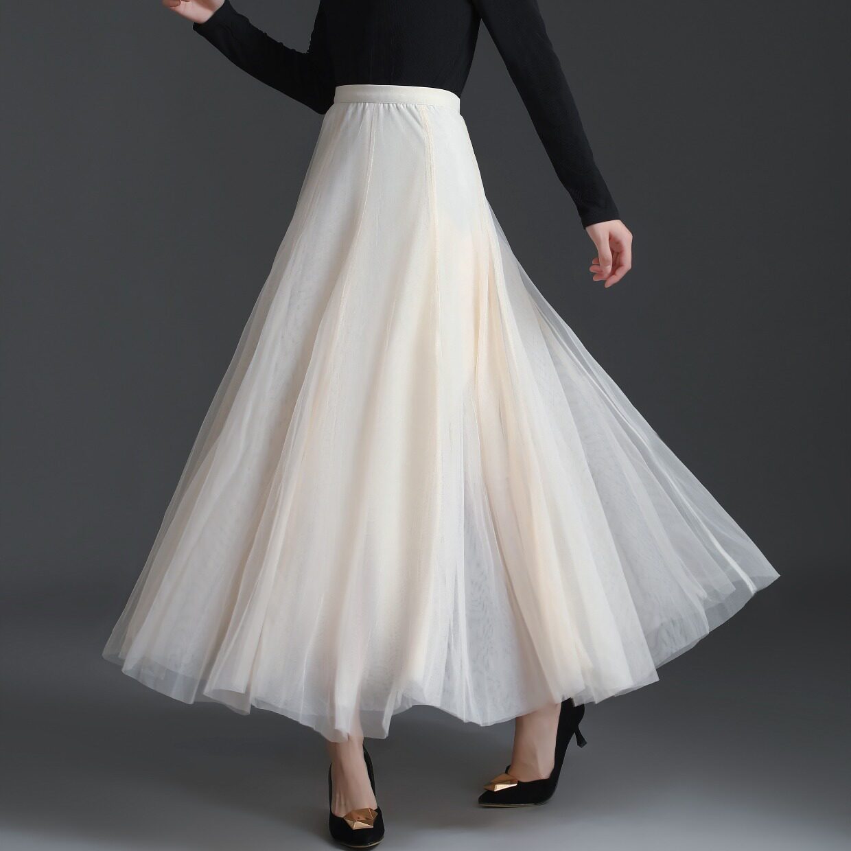 2026 Spring/Summer Mesh Skirt 12/20 Pieces A-Line Style 720-Degree Large Hem Mid-Length High-Waisted Drapey Skirt