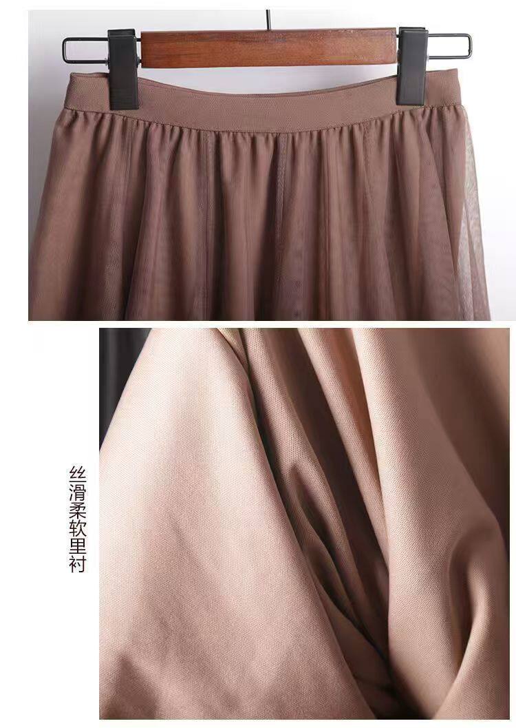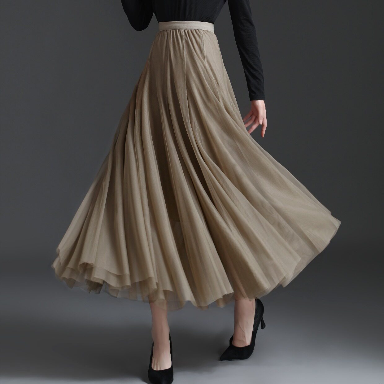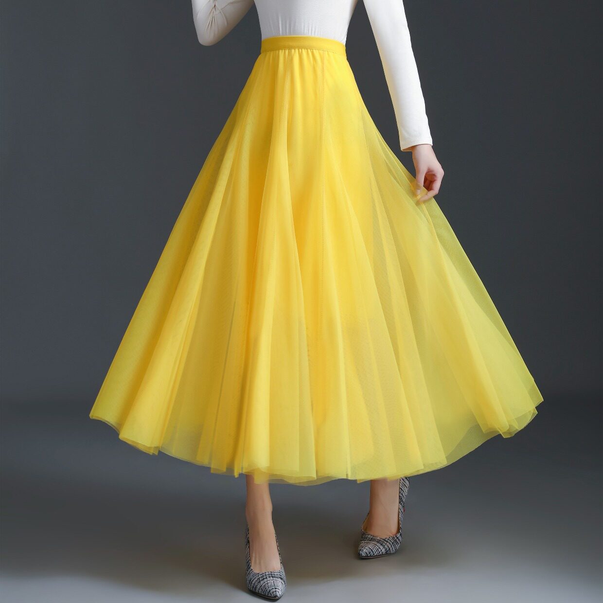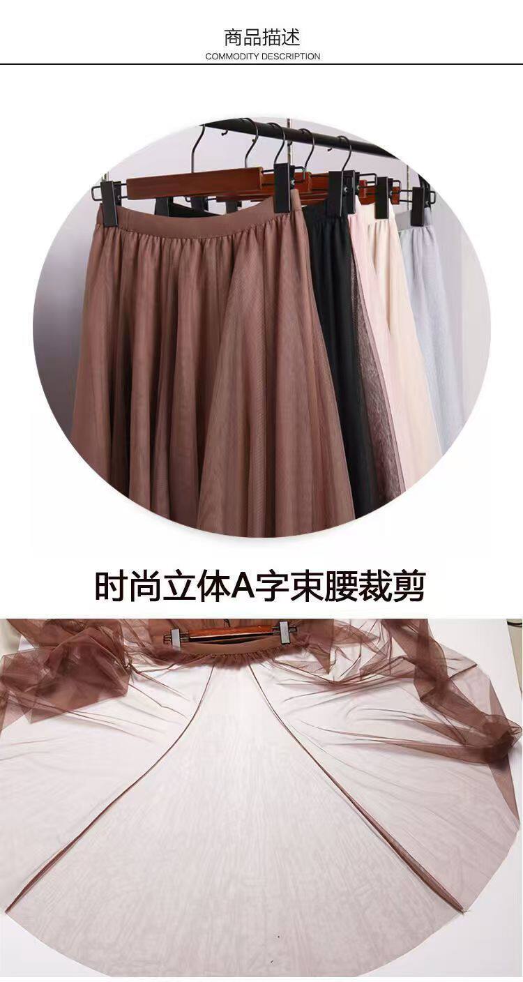 2026 Spring/Summer Mesh Skirt 12/20 Pieces A-Line Style 720-Degree Large Hem Mid-Length High-Waisted Drapey Skirt