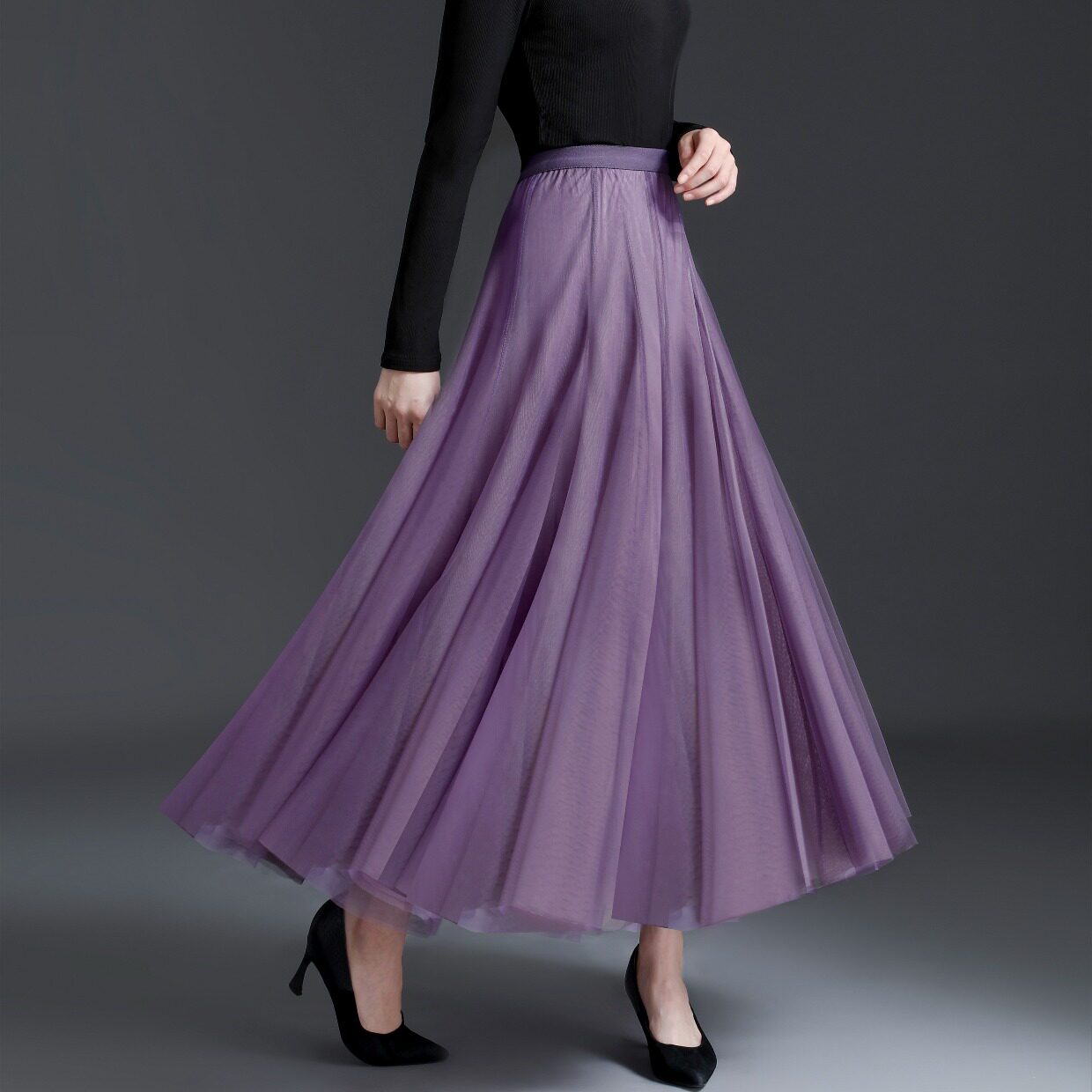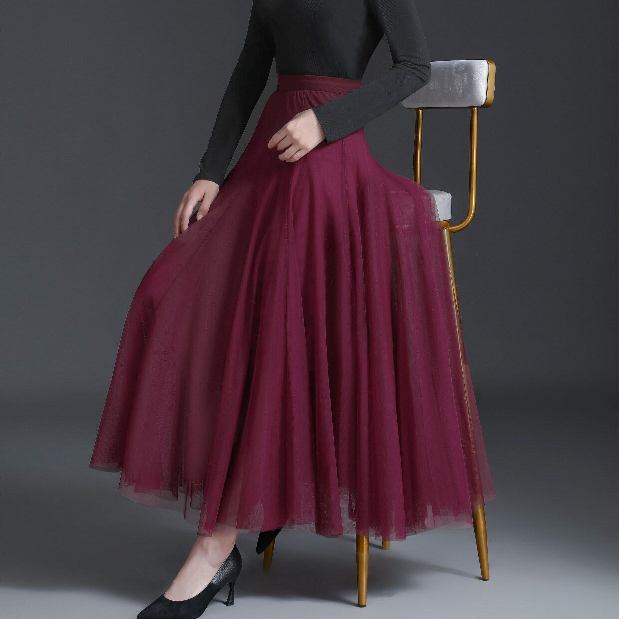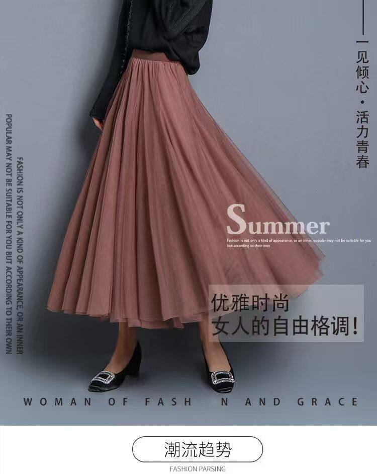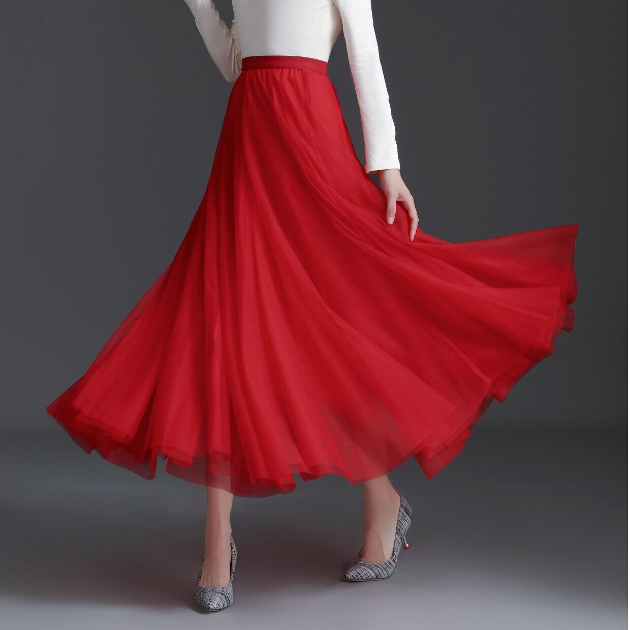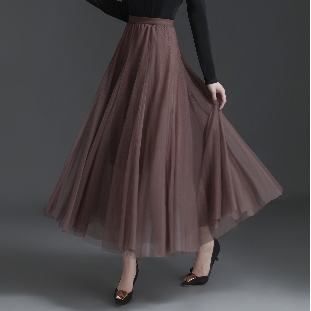 2026 Spring/Summer Mesh Skirt 12/20 Pieces A-Line Style 720-Degree Large Hem Mid-Length High-Waisted Drapey Skirt