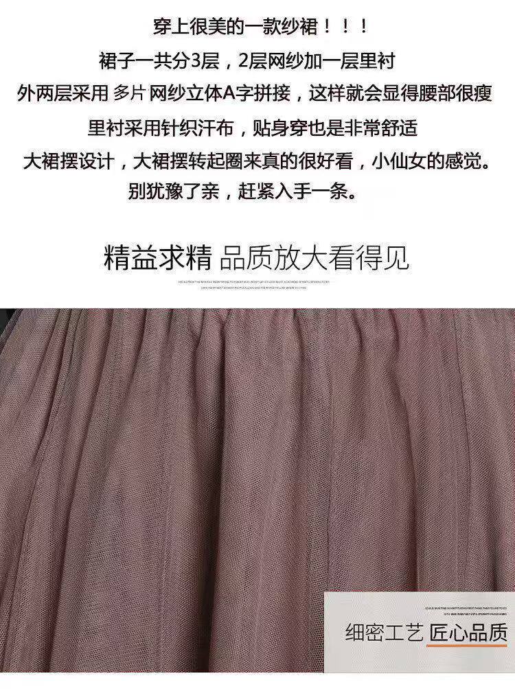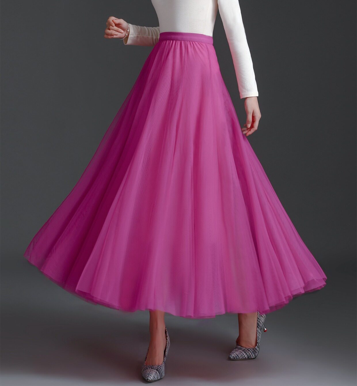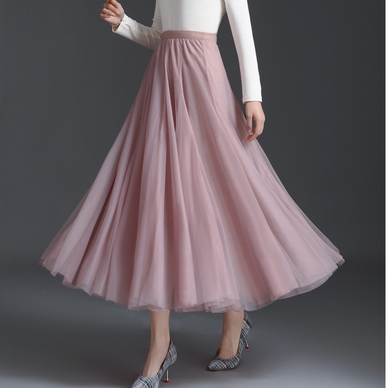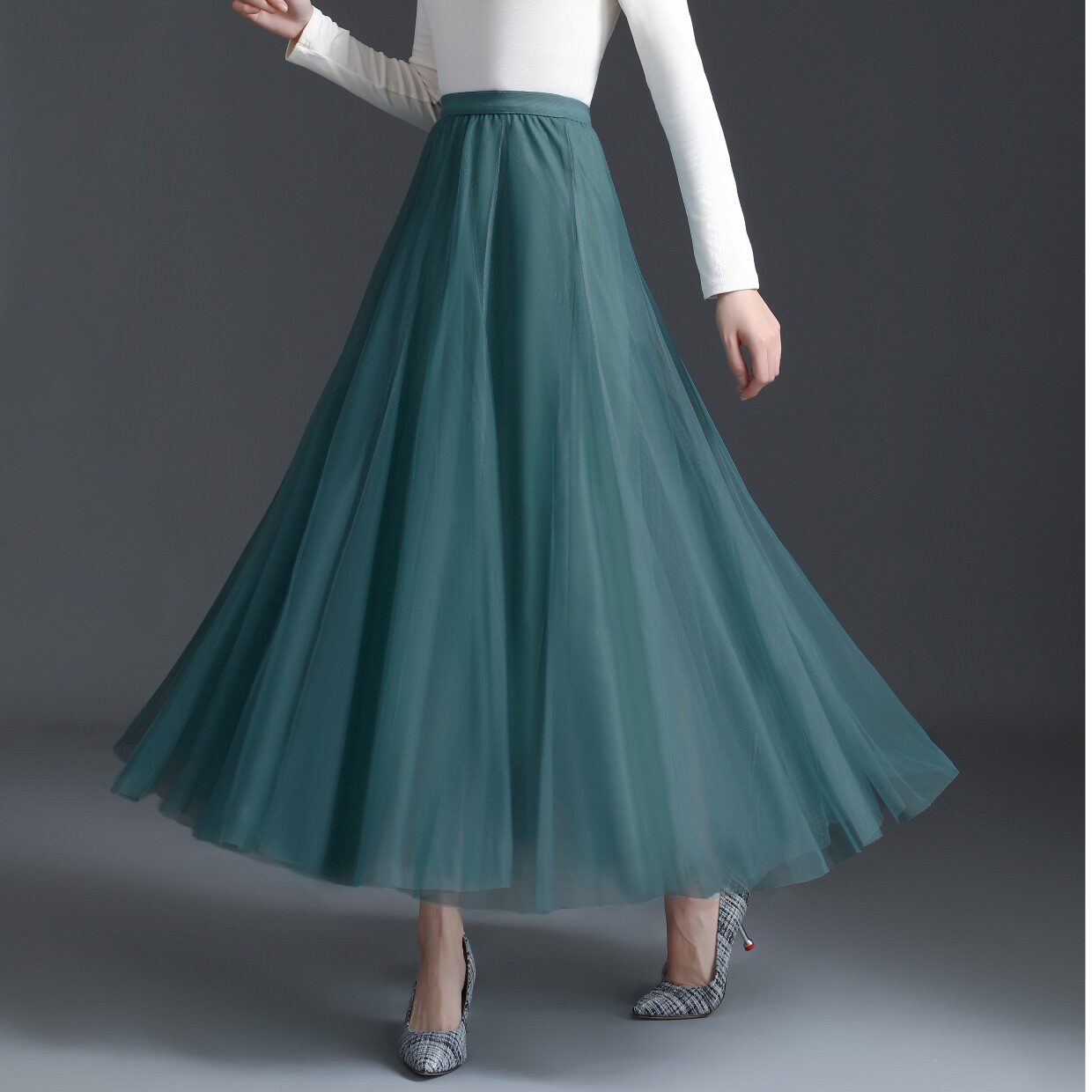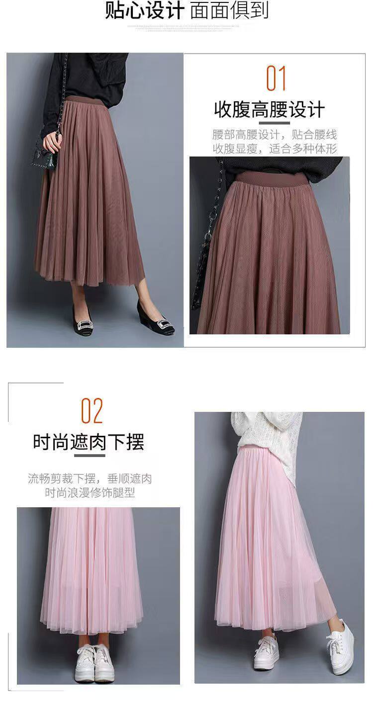 2026 Spring/Summer Mesh Skirt 12/20 Pieces A-Line Style 720-Degree Large Hem Mid-Length High-Waisted Drapey Skirt