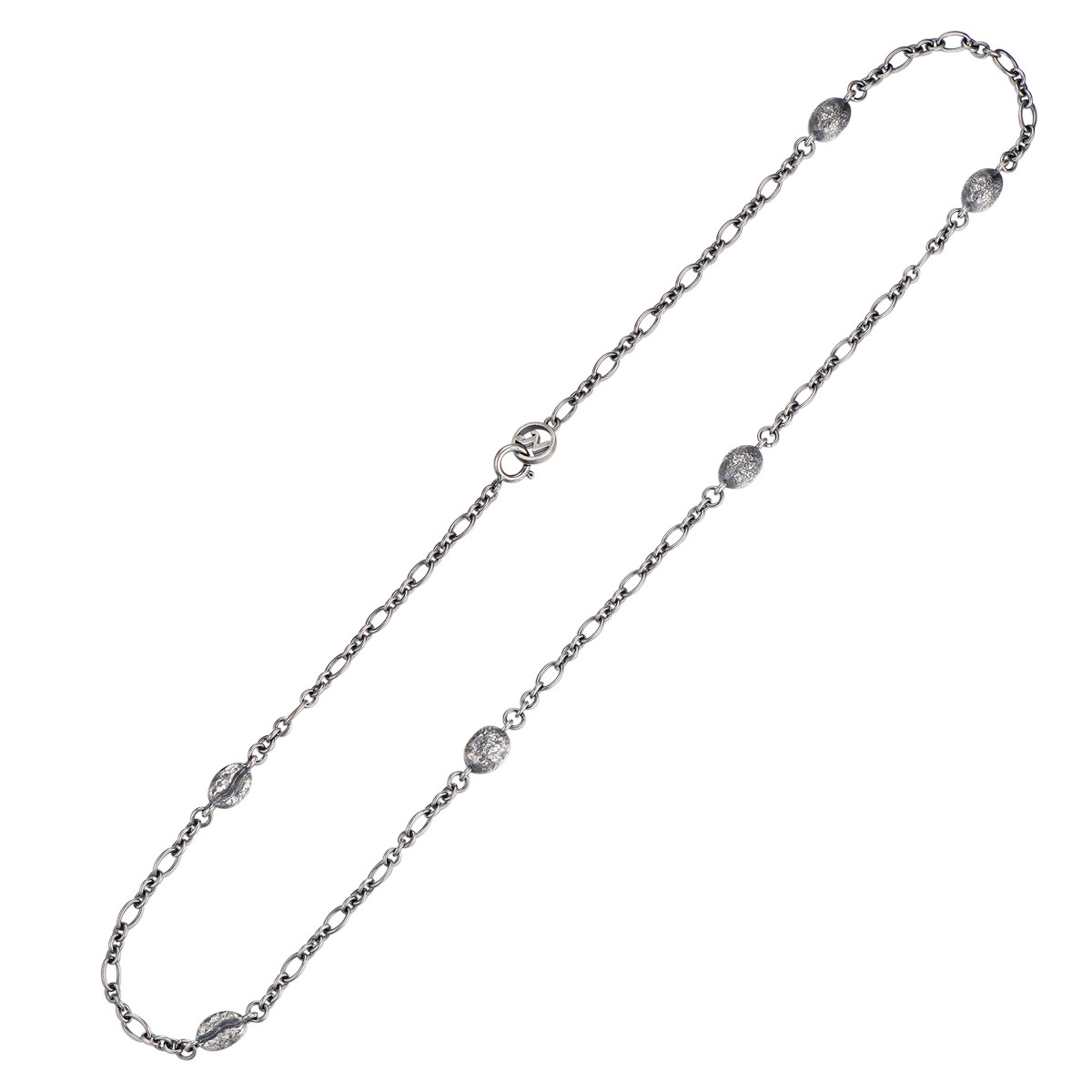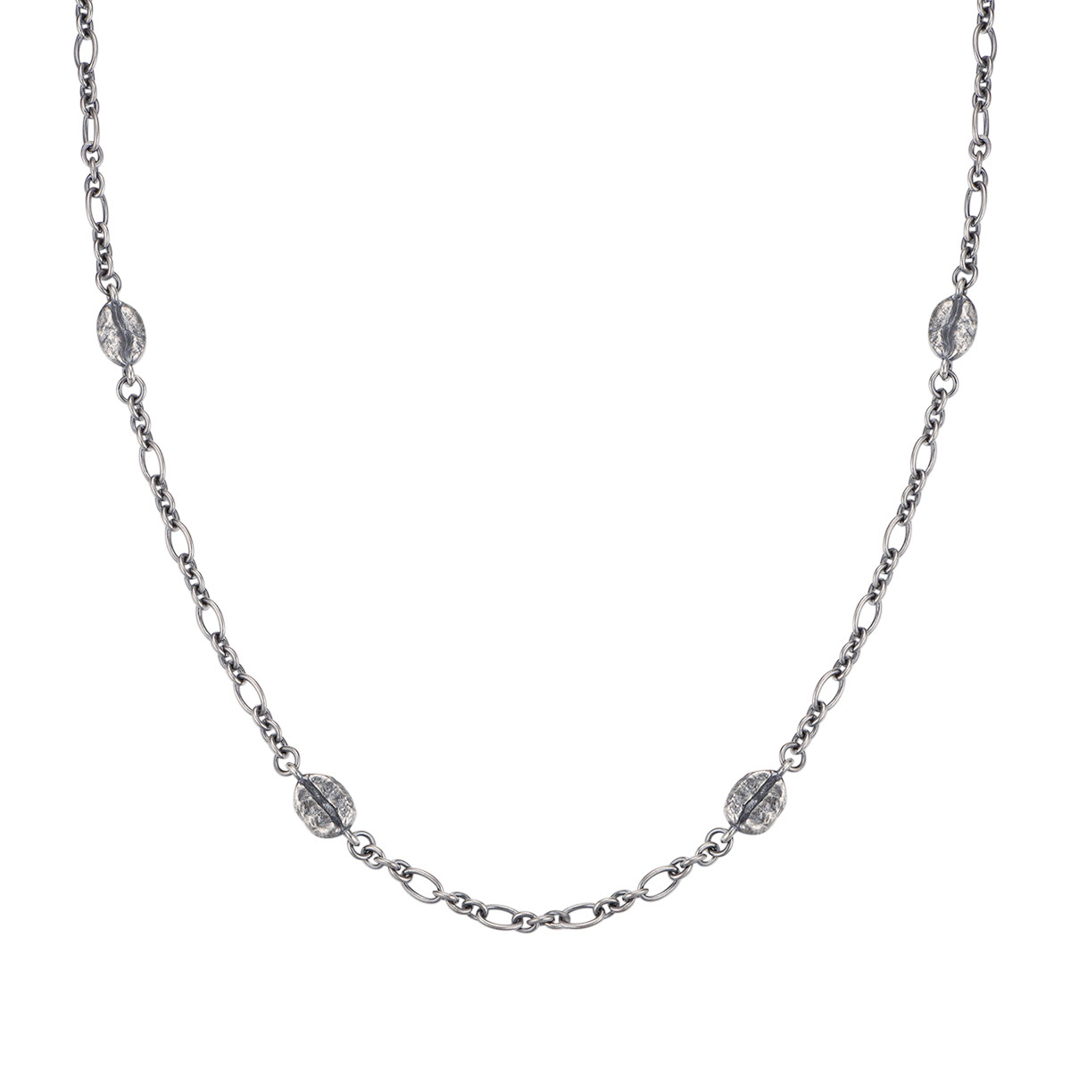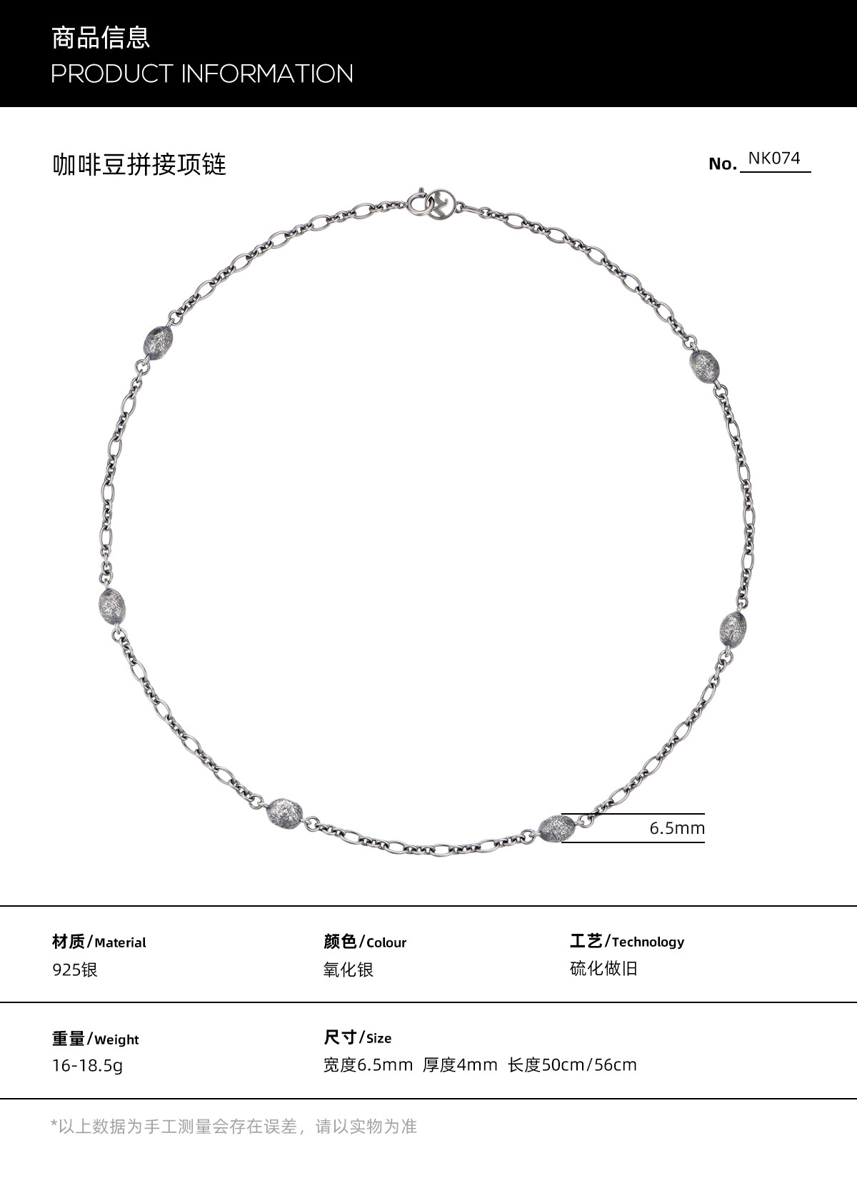 Janeng 925 Silver Coffee Bean Patchwork Necklace, Vintage Distressed Unisex Style, Summer Playful Matching Accessory