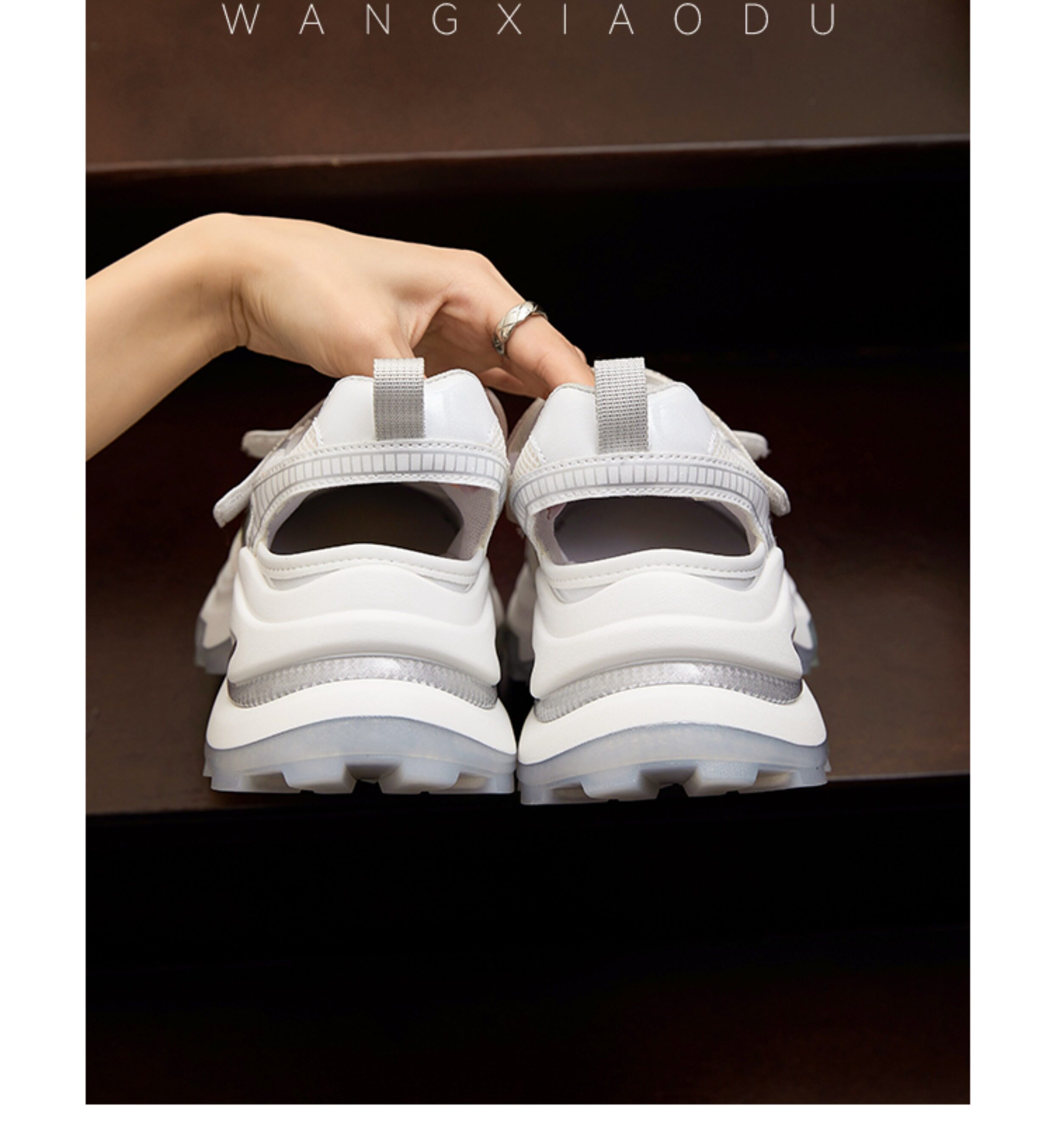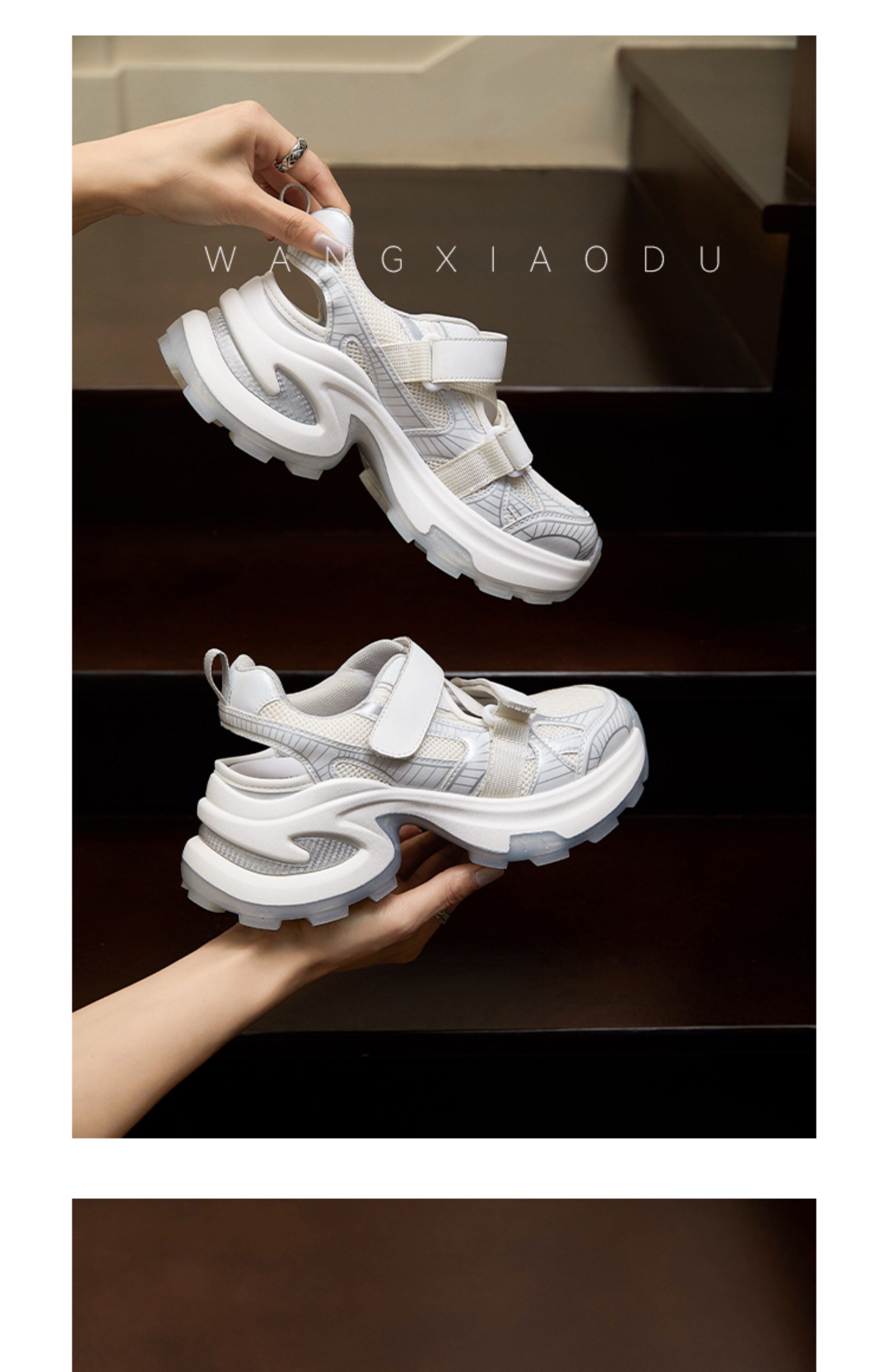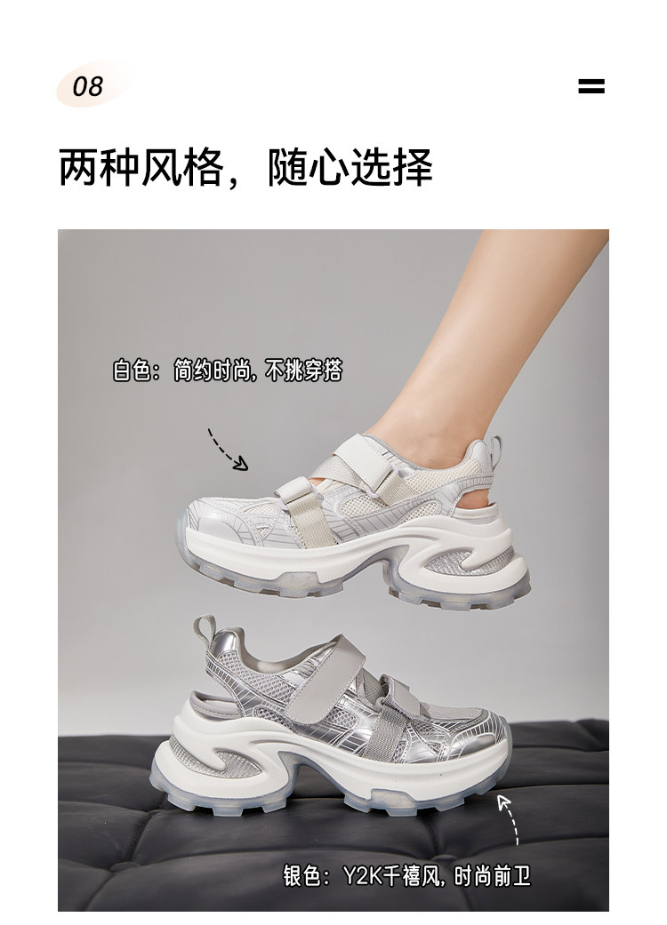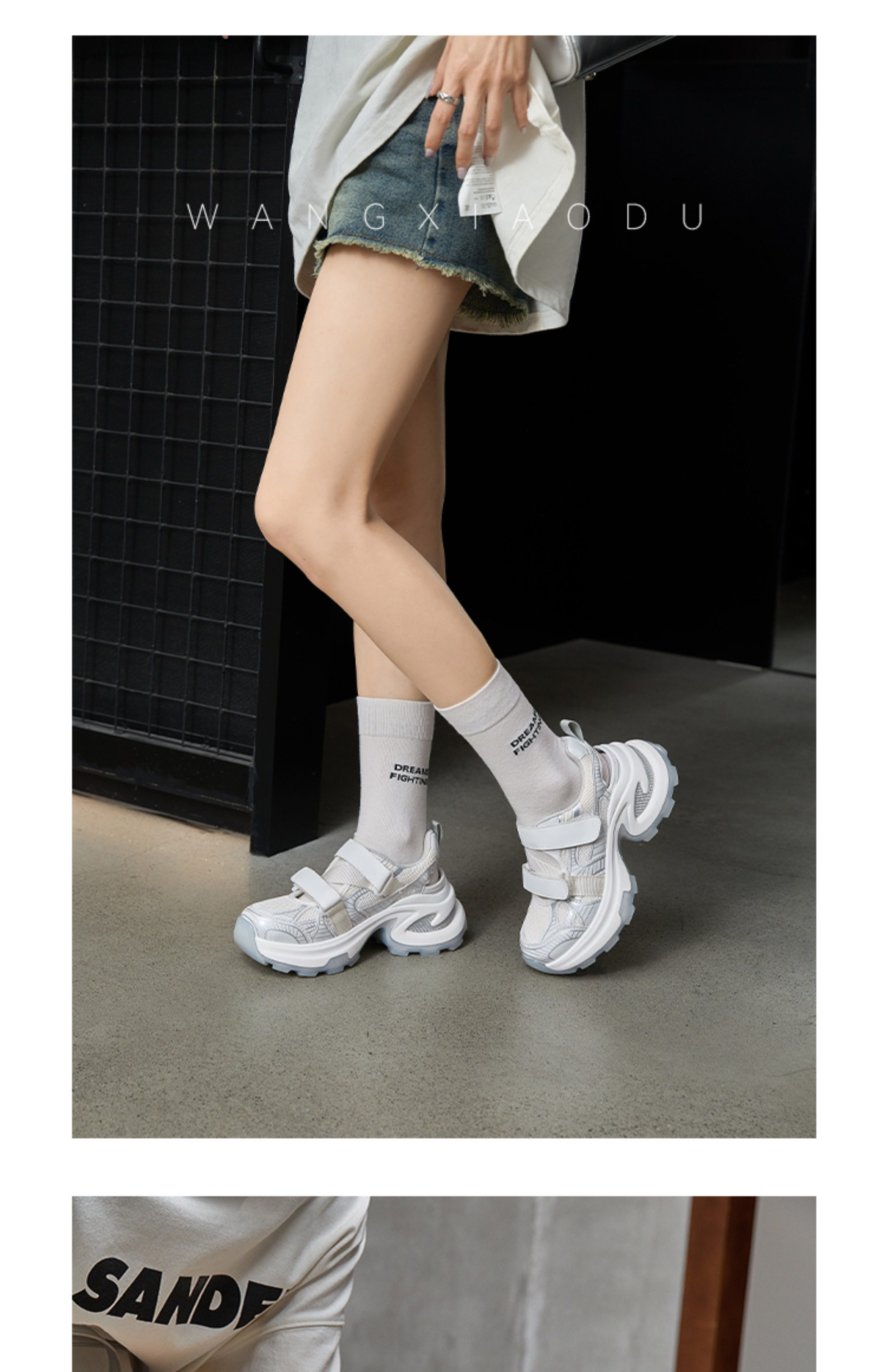 【Wang Xiaodu】At the Crossroads of Haijie Alley ○ 7.5cm Taller ~ Velcro Sports Sandals for Women, Silver Breathable Casual Shoes