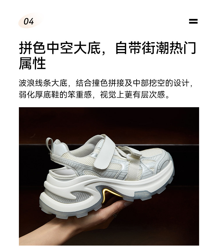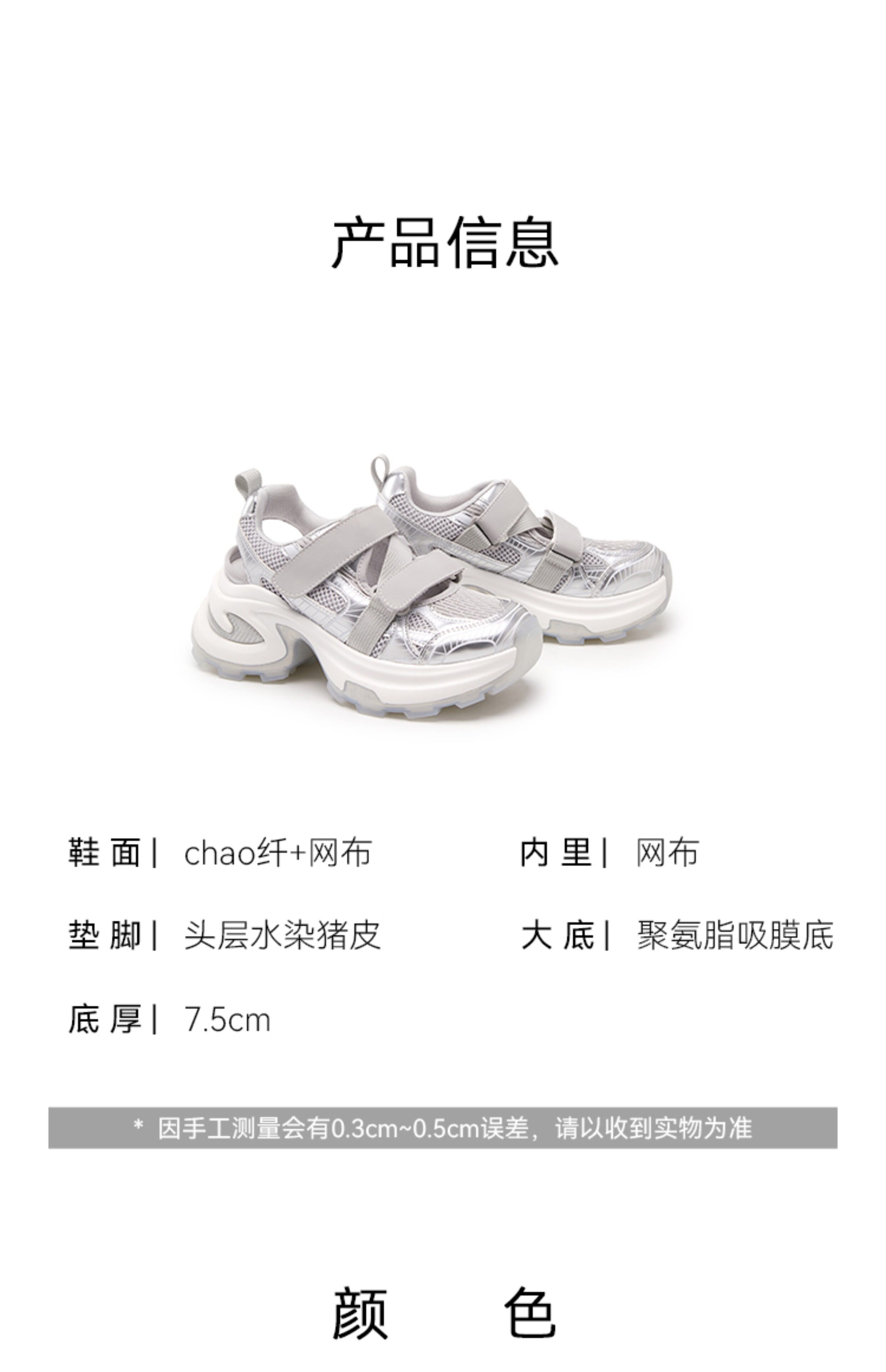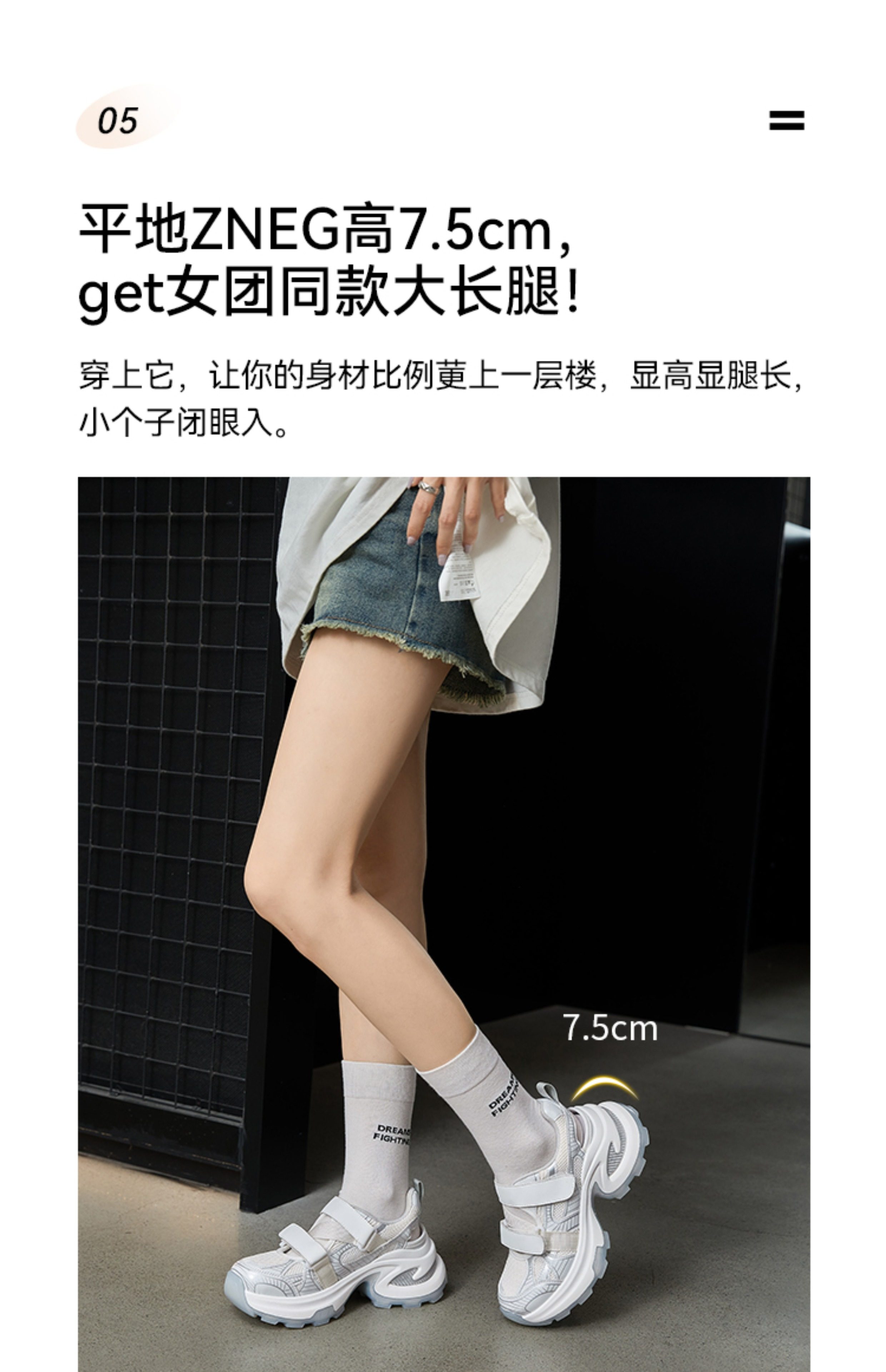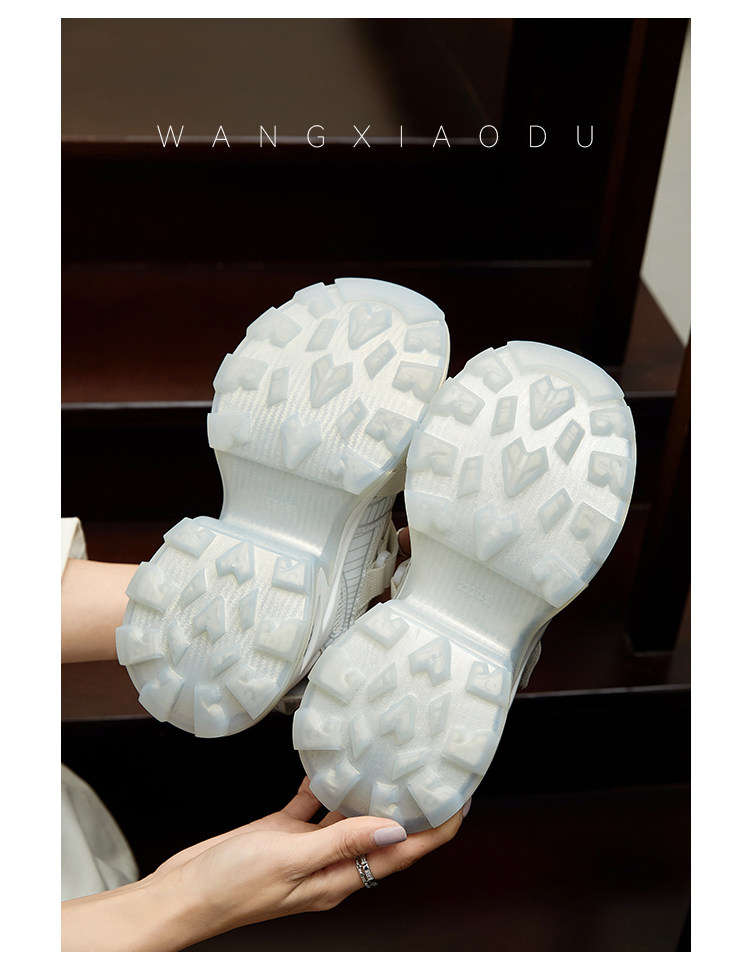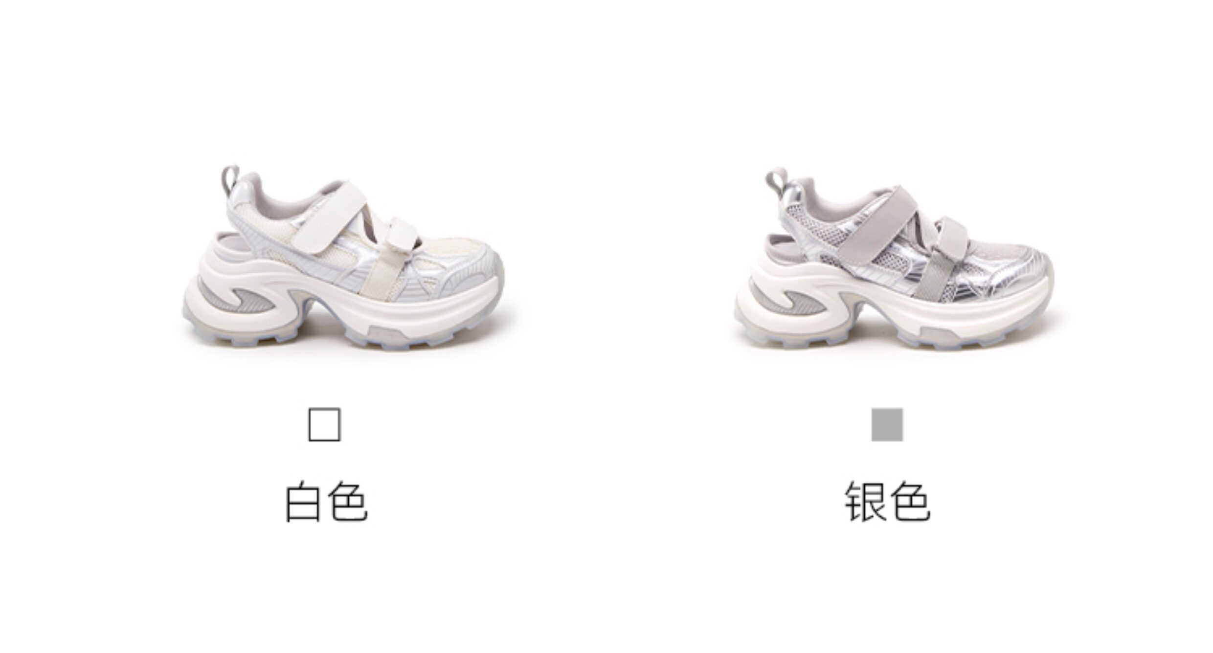 【Wang Xiaodu】At the Crossroads of Haijie Alley ○ 7.5cm Taller ~ Velcro Sports Sandals for Women, Silver Breathable Casual Shoes