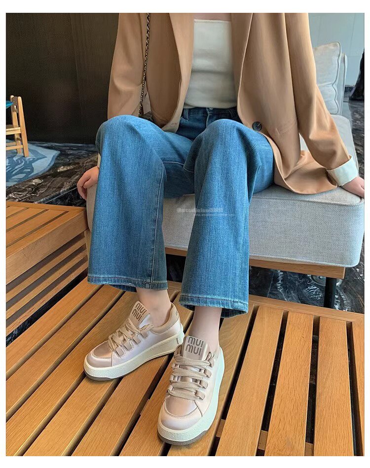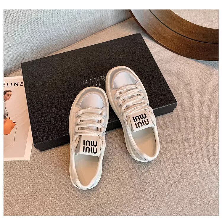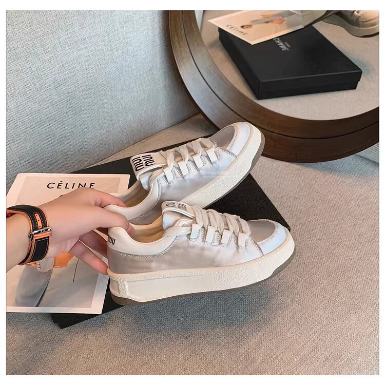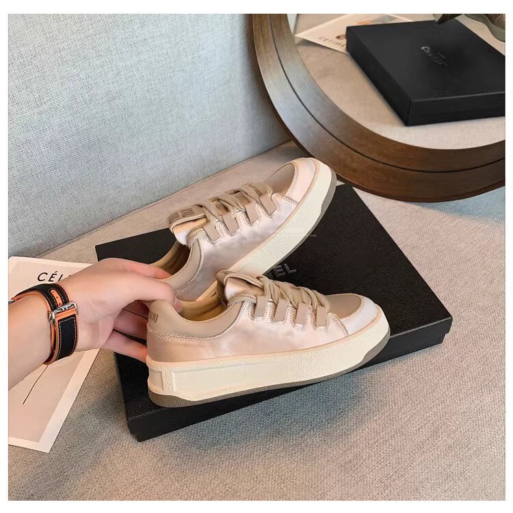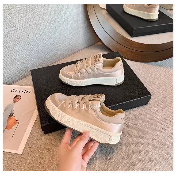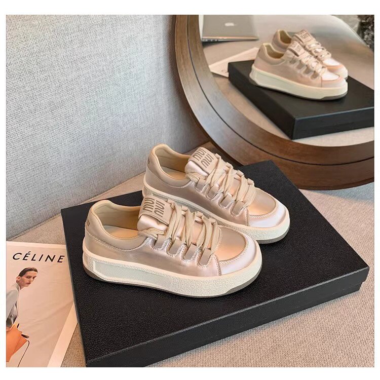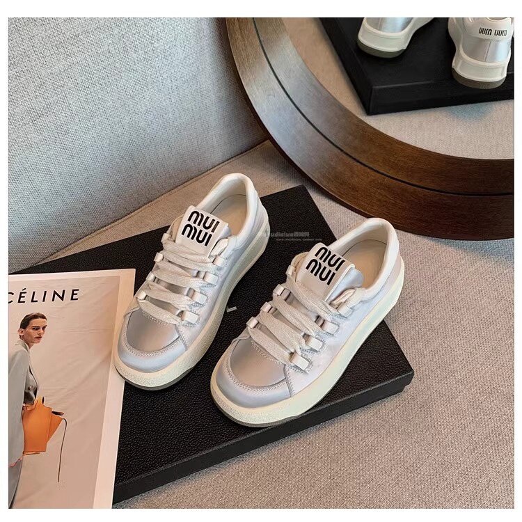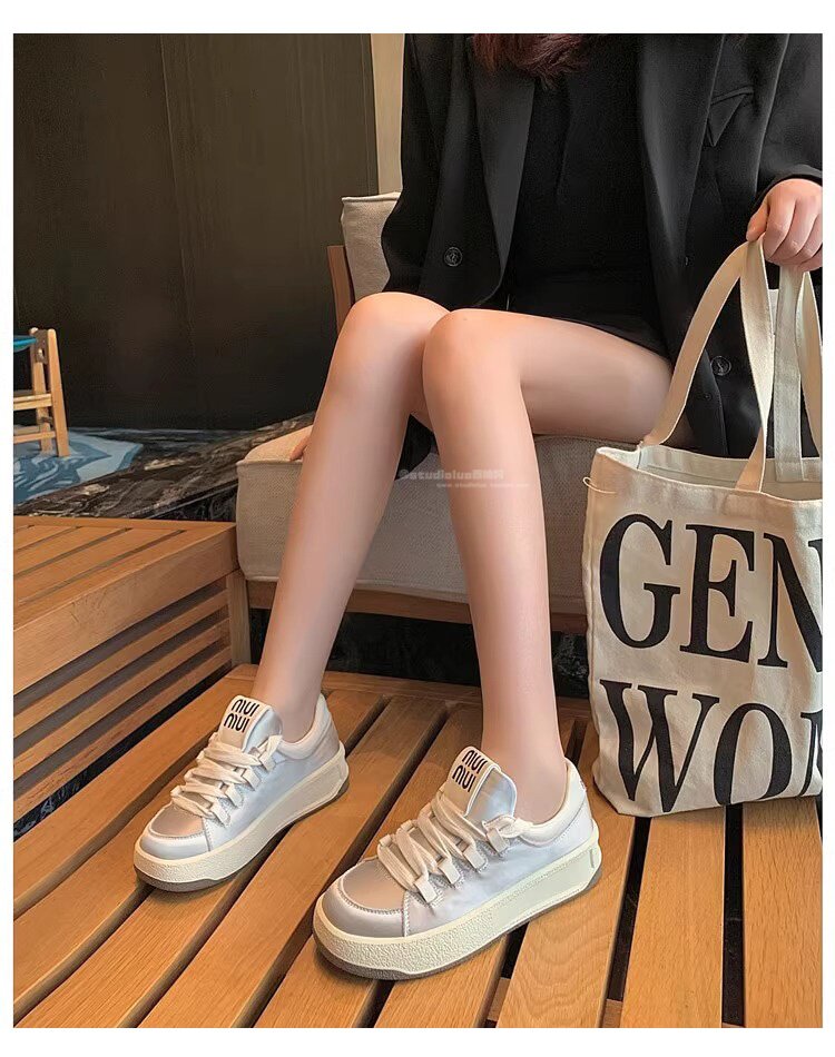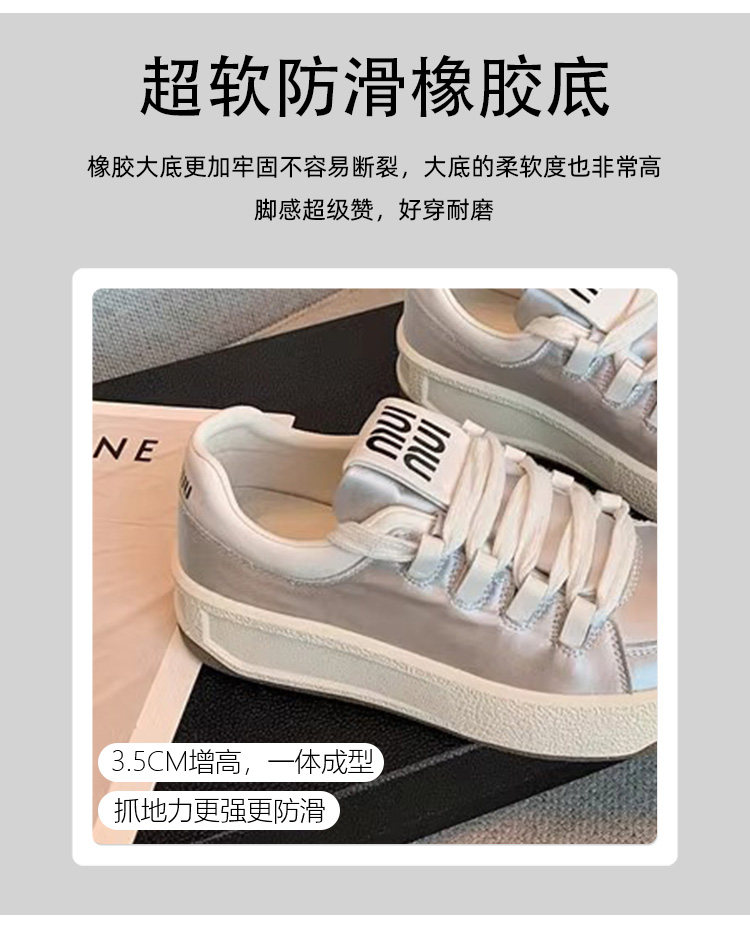 Hong Kong Style Thick-Soled Silver Sneakers for Women 2026 Spring/Summer New Genuine Leather Versatile Lace-Up Height-Increasing Fashion Casual Shoes